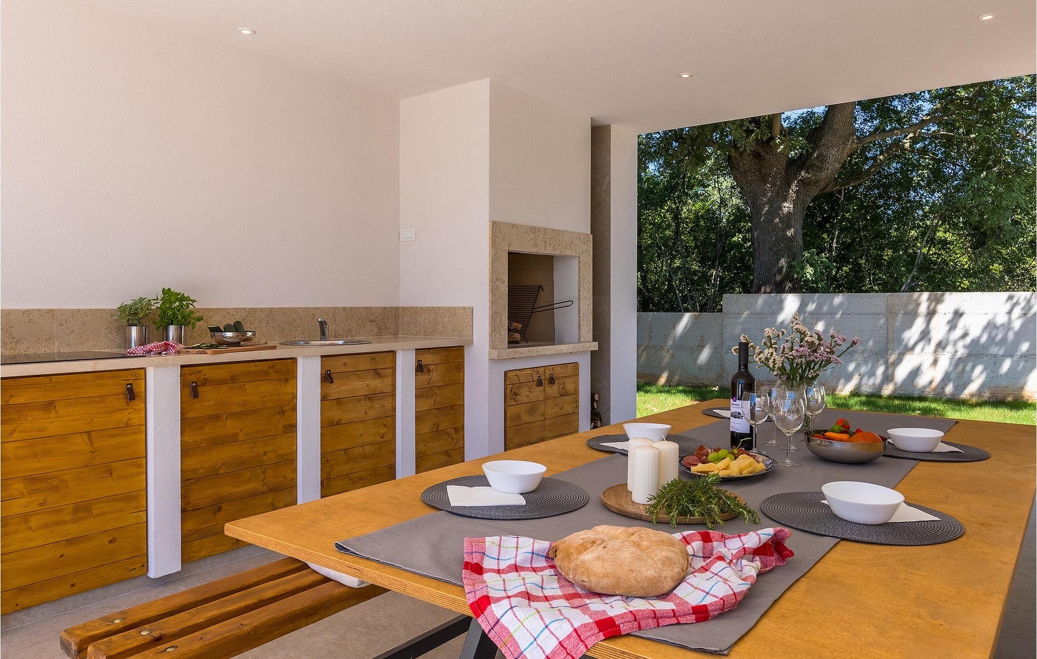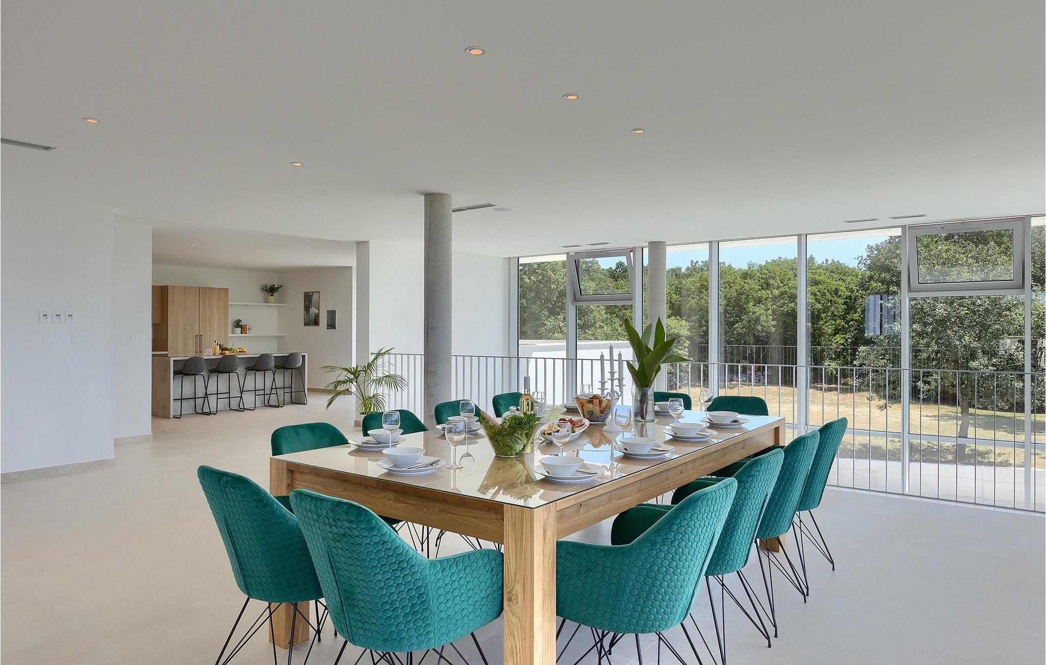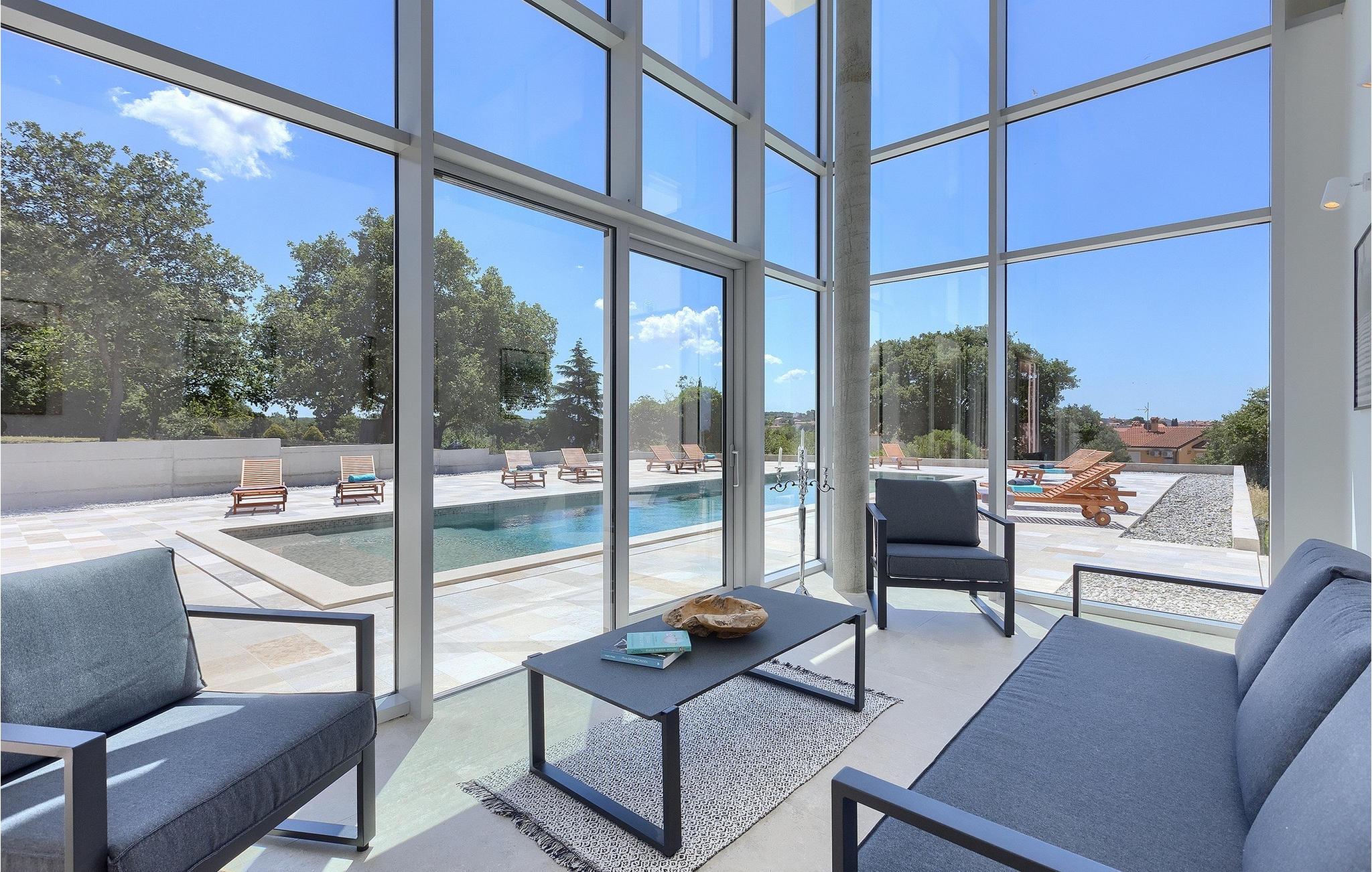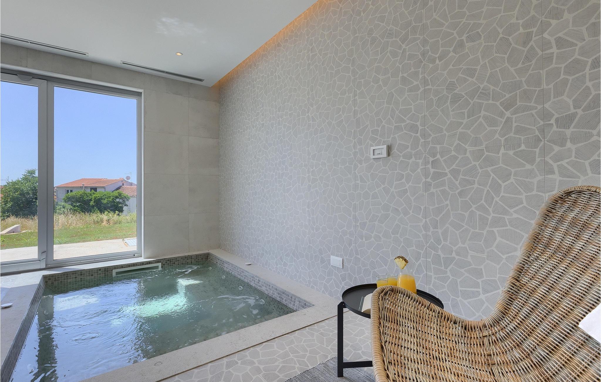 Amazing Villa Koko, beliggende i udkanten af Rovinjsko Selo, en lille by nær Rovinj, er det ideelle feriehus for op til 12 gæster, der søger efter ren afslapning og komfort. Villaen har en stor have med en stor privat pool, 12 hyggelige liggestole og en overdækket spiseplads med kulgrill, ideel til al fresco spisning på solrige dage. Interiøret, fordelt på 600 m2 og opdelt i to etager, består af i alt 6 soveværelser, hver med eget badeværelse og aircondition. 5 soveværelser er placeret i stueetagen, og et på øverste etage. Det fuldt udstyrede køkken med spiseplads og stuen ligger på øverste etage, hvilket giver en fantastisk udsigt over omgivelserne og havet. Masser af glasoverflader giver naturligt lys i interiøret, som er enkelt, men alligevel luksuriøst indrettet. For nogle mere afslappende øjeblikke står en stor indendørs jacuzzi og en sauna til din rådighed. For yderligere underholdning har villaen en biografsal udstyret med aircondition, stor rummelig sofa med ligge- og siddeområder. 75'' Smart TV med billedkvalitet og surroundhøjttalere vil forbedre det realistiske indtryk af hver film. Sammen med de varme popcorn fra maskinen i biografen er underholdning garanteret. Villa Koko giver alt for en skødesløs ferie i privatlivets fred i dit eget stykke paradis, mens alle faciliteter såsom restauranter og supermarkeder er inden for gåafstand. Lim-bugten er kun en kort køretur væk, såvel som den romantiske by Rovinj og dens omkringliggende strande. Denne villa er beliggende i Rovinjsko Selo, en rolig forstad til Rovinj. Karakteristisk for dette sted er de traditionelt byggede stenhuse og den smukke grønne marker, vinmarker og omkringliggende skove. Forstadens fantastiske beliggenhed er ideel til daglig udforskning af den antikke by Rovinj og dens unikke charme. Mærk byens fortryllelse i dens smalle middelaldergader og varme middelhavsomgivelser. Fra plateauet i hovedkirken St. Euphemia er der en vidunderlig udsigt over det åbne hav og talrige holme i det fjerne. Besøg andre seværdigheder såsom slottet på øen St. Andrija, franciskanerklosteret og bymurene. Rovinj er en af de mest romantiske byer i Kroatien med smukke solnedgange, der vil tage pusten fra dig. De bredere omgivelser byder på adskillige muligheder for rekreation: cykling, ridning, jogging...