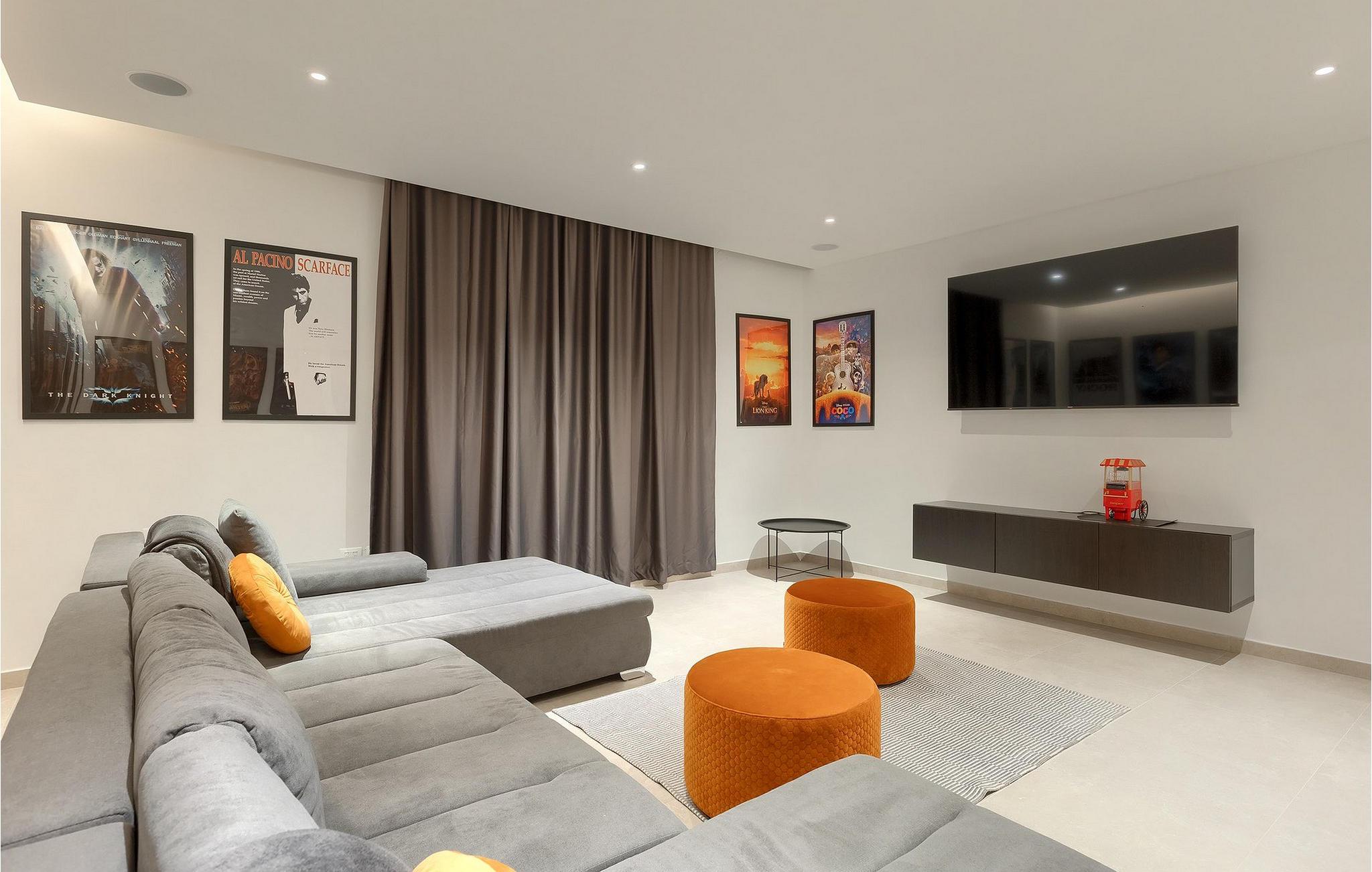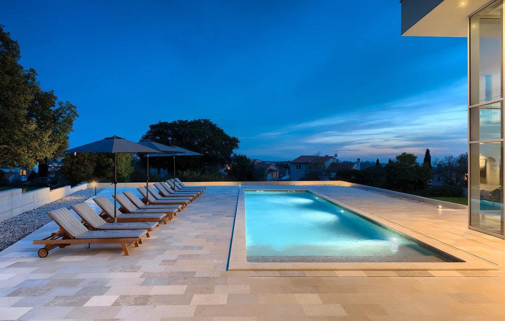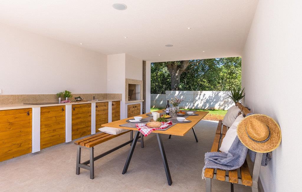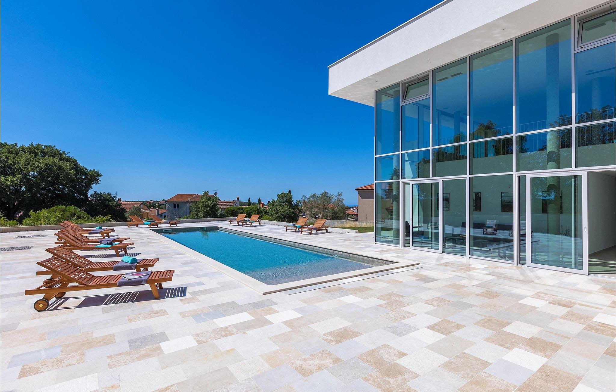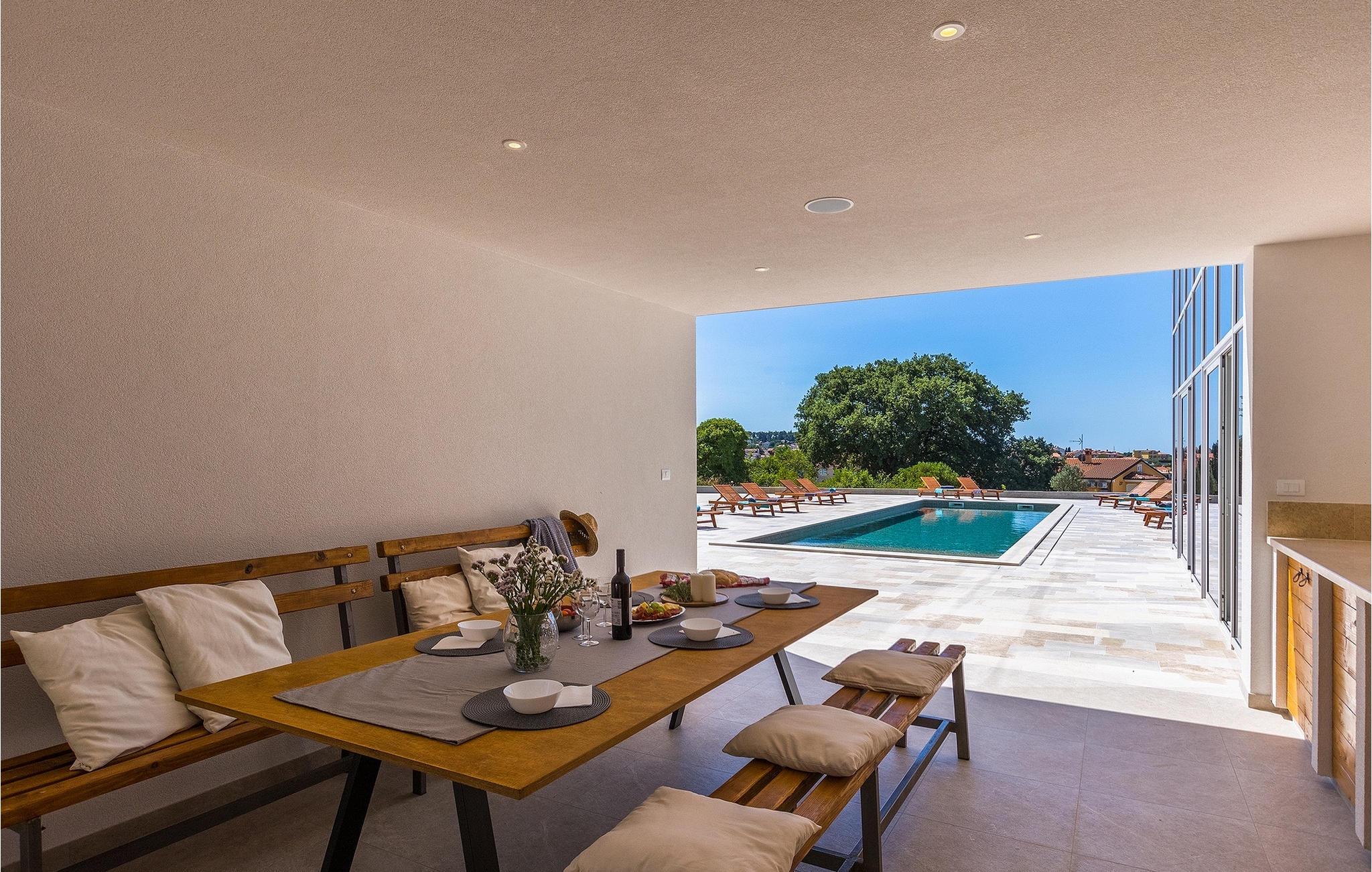 Amazing Villa Koko, beliggende i udkanten af Rovinjsko Selo, en lille by nær Rovinj, er det ideelle feriehus for op til 12 gæster, der søger efter ren afslapning og komfort. Villaen har en stor have med en stor privat pool, 12 hyggelige liggestole og en overdækket spiseplads med kulgrill, ideel til al fresco spisning på solrige dage. Interiøret, fordelt på 600 m2 og opdelt i to etager, består af i alt 6 soveværelser, hver med eget badeværelse og aircondition. 5 soveværelser er placeret i stueetagen, og et på øverste etage. Det fuldt udstyrede køkken med spiseplads og stuen ligger på øverste etage, hvilket giver en fantastisk udsigt over omgivelserne og havet. Masser af glasoverflader giver naturligt lys i interiøret, som er enkelt, men alligevel luksuriøst indrettet. For nogle mere afslappende øjeblikke står en stor indendørs jacuzzi og en sauna til din rådighed. For yderligere underholdning har villaen en biografsal udstyret med aircondition, stor rummelig sofa med ligge- og siddeområder. 75'' Smart TV med billedkvalitet og surroundhøjttalere vil forbedre det realistiske indtryk af hver film. Sammen med de varme popcorn fra maskinen i biografen er underholdning garanteret. Villa Koko giver alt for en skødesløs ferie i privatlivets fred i dit eget stykke paradis, mens alle faciliteter såsom restauranter og supermarkeder er inden for gåafstand. Lim-bugten er kun en kort køretur væk, såvel som den romantiske by Rovinj og dens omkringliggende strande. Denne villa er beliggende i Rovinjsko Selo, en rolig forstad til Rovinj. Karakteristisk for dette sted er de traditionelt byggede stenhuse og den smukke grønne marker, vinmarker og omkringliggende skove. Forstadens fantastiske beliggenhed er ideel til daglig udforskning af den antikke by Rovinj og dens unikke charme. Mærk byens fortryllelse i dens smalle middelaldergader og varme middelhavsomgivelser. Fra plateauet i hovedkirken St. Euphemia er der en vidunderlig udsigt over det åbne hav og talrige holme i det fjerne. Besøg andre seværdigheder såsom slottet på øen St. Andrija, franciskanerklosteret og bymurene. Rovinj er en af de mest romantiske byer i Kroatien med smukke solnedgange, der vil tage pusten fra dig. De bredere omgivelser byder på adskillige muligheder for rekreation: cykling, ridning, jogging...