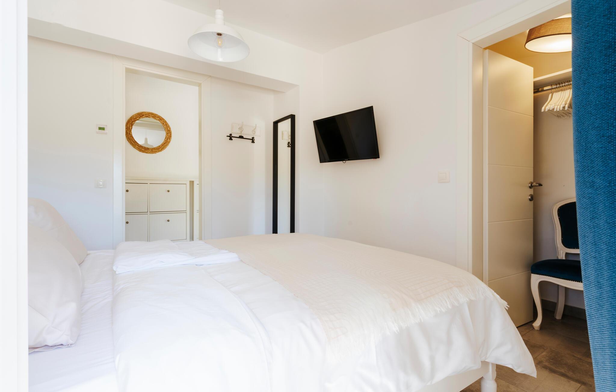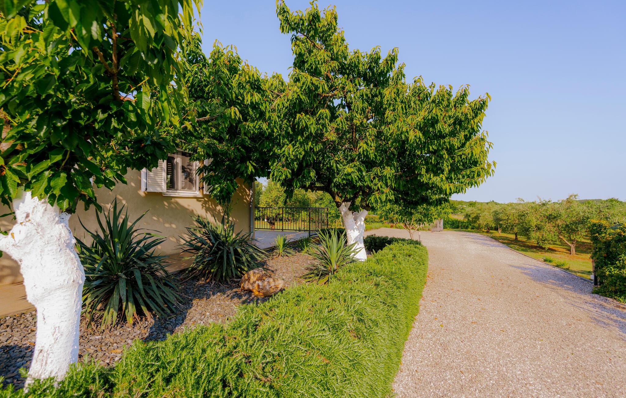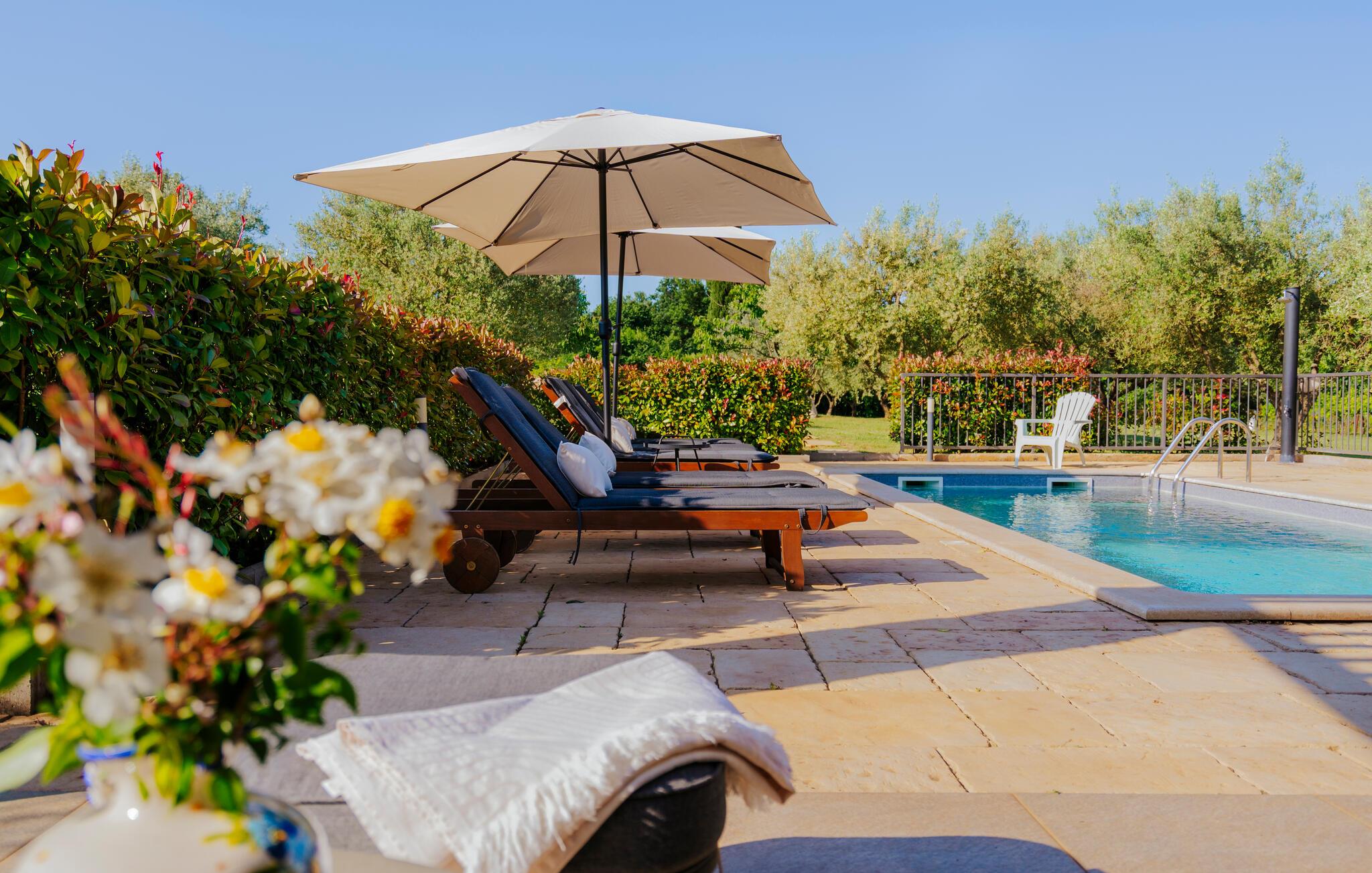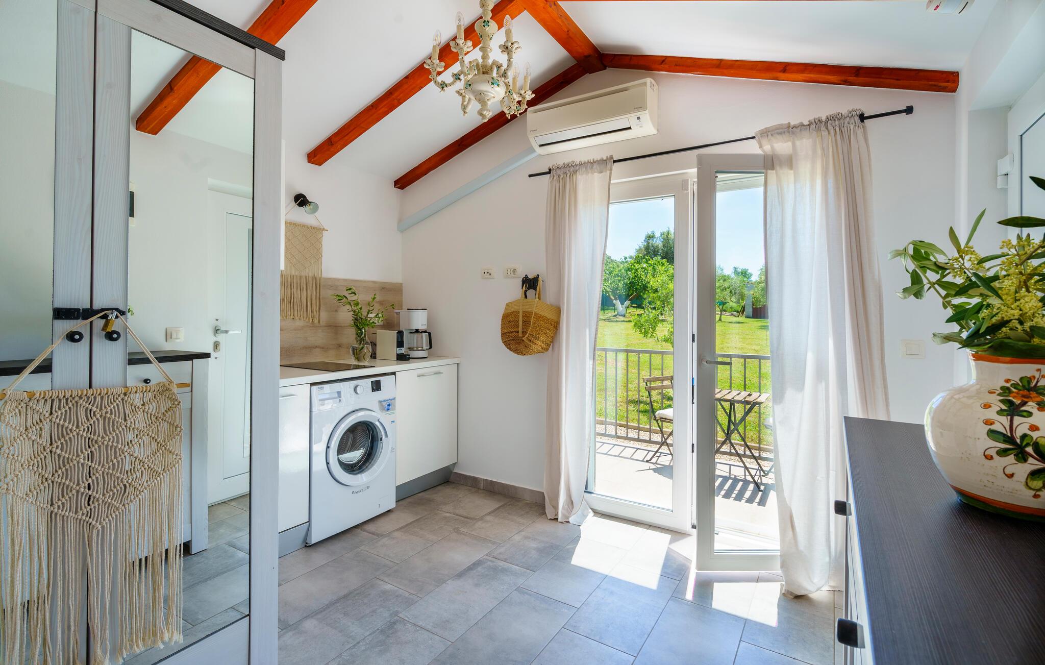Beliggende i fredelige omgivelser i udkanten af byen Rovinj, har den dejlige Villa Bazilika alt hvad du behøver for en afslappende ferie! Omgivet af uspoleret natur og alligevel kun 1 kilometer væk fra den smukke Adriaterhavskyst, er denne villa en oase af ro nær turisthotspottet Rovinj. Villaens charmerende stenterrasse er domineret af en forfriskende privat pool. Omgivet af hyggelige liggestole og oliventræer vil poolen hurtigt blive dit yndlingssted. Her kan du undslippe sommervarmen og slappe af med en kold drink i hånden, mens børnene slipper dampen ud i den store trampolin. Start din dag med en kop kaffe på Villa Bazilikas dejlige terrasse eller nyd en spændende bog i den hyggelige hængestol. Med i alt to smagfuldt indrettede soveværelser kan Villa Bazilika rumme op til fire personer. Det er det perfekte valg for en familie eller en mindre gruppe venner. Soveværelserne deler et badeværelse. Franske døre bringer rigeligt lys ind i den hyggelige stue, som er det perfekte sted at tilbringe eftermiddagen sammen med din kæreste. Stuen er forbundet med et fuldt udstyret køkken og spiseplads. Book Villa Bazilika og nyd din ferie omfavnet af den istriske sol og oliventræer!Villa Bazilika er beliggende i det maleriske bagland af byen Rovinj, kun en kilometer væk fra det krystalklare blå Adriaterhav. Beliggende i fredelige naturlige omgivelser tilbyder denne villa dig et perfekt tilflugtssted fra hverdagens stress og jag. Byen Rovinj, i dag en af de mest attraktive turistmål i Kroatien, var engang kun en lille fiskerlandsby. Rovinj er berømt for sit yderst gunstige mikroklima. De første "turister" kom til denne by for behandling og rehabilitering. Den gamle bydel er domineret af St. Euphemia-kirken, som anses for at være en af de smukkeste barokbygninger i Istrien. Fra dets tårn kan du nyde en smuk panoramaudsigt over byen og det åbne hav med talrige holme. Gå vild i Rovinjs charmerende smalle gader, mens du udforsker dens rige kulturarv og gastronomiske tilbud. Vi anbefaler alle fans af fritidsaktiviteter ved havet at prøve dykning, snorkling, kajaksejlads, windsurfing eller bare nyde en bådtur rundt om øerne.