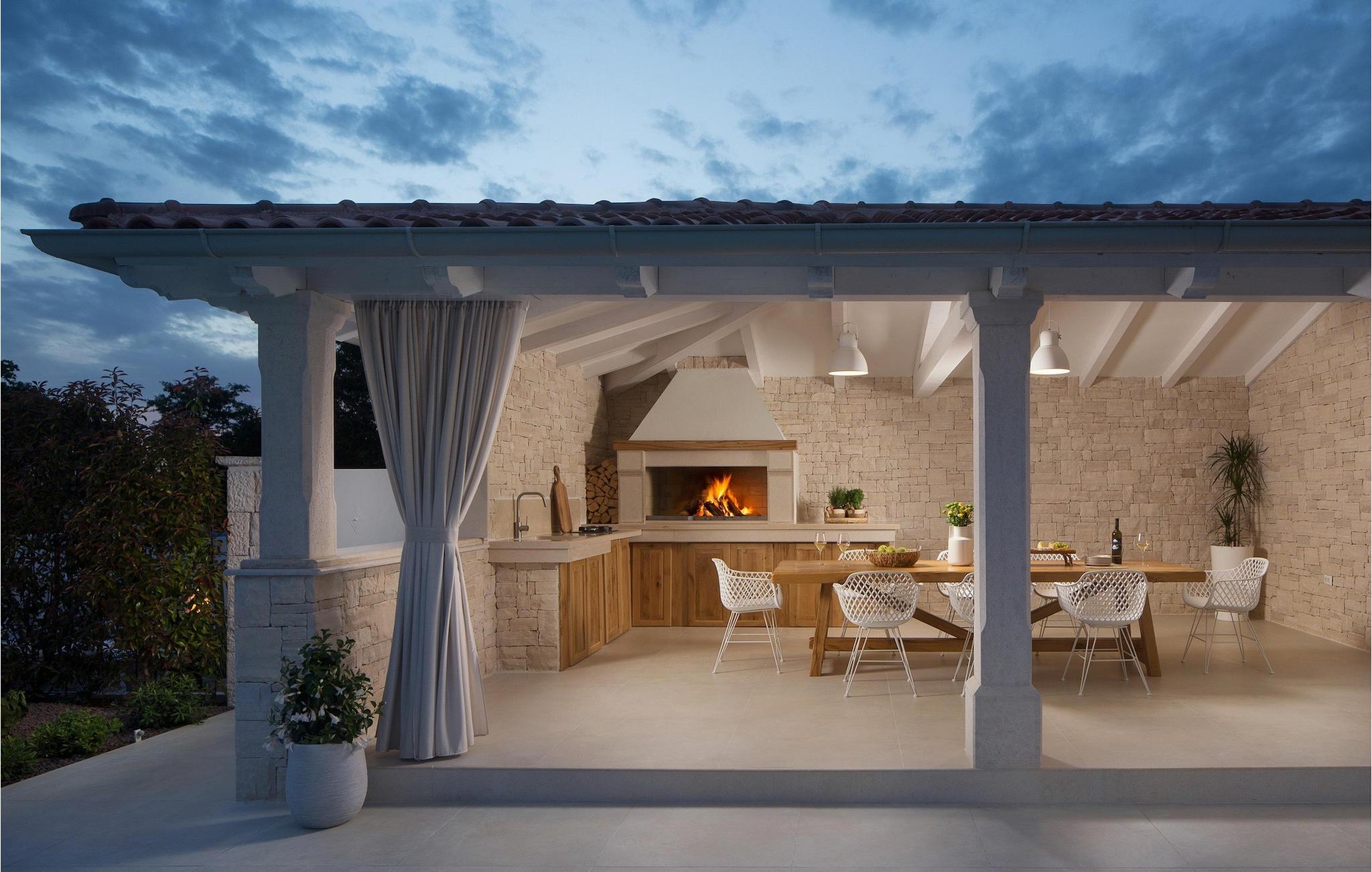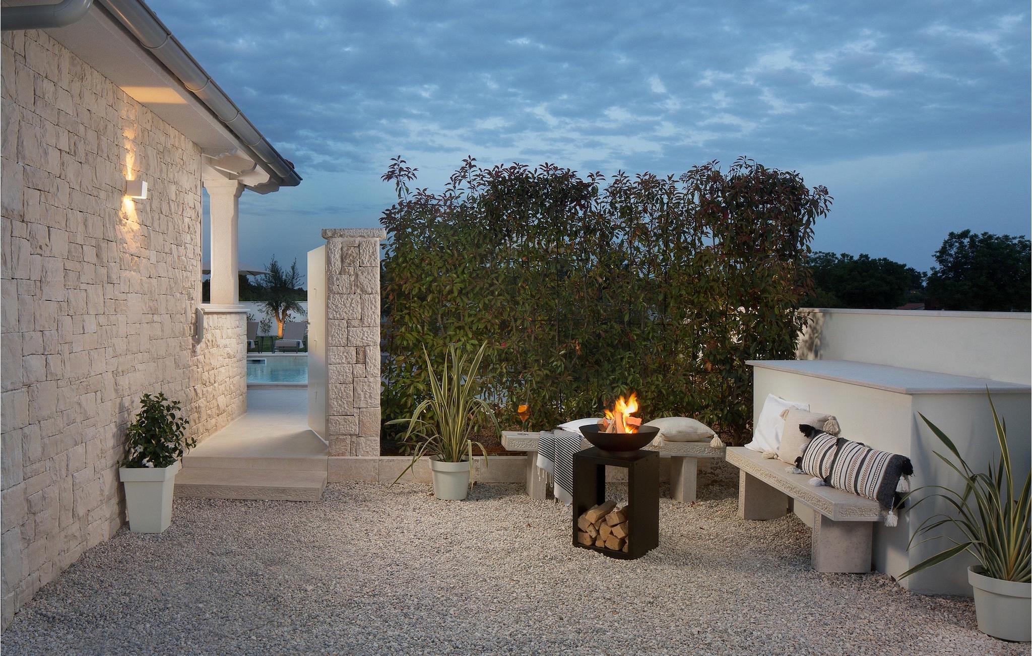 Im ersten Stock befinden sich drei Schlafzimmer. Die Zimmer sind geräumig und komfortabel. Jedes Zimmer verfügt über ein eigenes Bad, TV und ist klimatisiert. Alle Zimmer haben Zugang zum gemeinsamen Balkon, wo Sie sich mit dem Blick auf den Garten mit Pool und das Grün, das die Villa umgibt, entspannen können. Das vierte Zimmer befindet sich im Erdgeschoss und verfügt über ein eigenes Bad, TV und ist klimatisiert. Im Erdgeschoss befindet sich auch ein Wohnzimmer mit Kamin und TV, ein Essbereich und eine voll ausgestattete Küche, die in einem Open-Space-Konzept verbunden sind. Dieser Bereich ist auch klimatisiert und ideal für Ihren Urlaub. Der große Garten bietet verschiedene Orte zur Entspannung. An erster Stelle steht ein privater Pool mit Sonnenliegen. Entspannen Sie sich vom Schwimmen und Sonnenbaden auf dem schattigen Teil der Terrasse. Neben der Villa befindet sich auch ein überdachter Essbereich mit Esstisch und Grill, wo Sie Ihre Kochkünste ausprobieren können. Das Grundstück ist komplett eingezäunt und verfügt über einen privaten Parkplatz für 3 Autos. Buchen Sie Villa Simona Residence und nehmen Sie eine Pause vom hektischen Alltagsleben.Für alle Gäste, die Istrien und seine Schönheiten erkunden möchten, ist die Villa Simona Residence ein idealer Ausgangspunkt. Die Villa befindet sich in einer der schönsten Gegenden Istriens, in der Nähe von drei charmanten mittelalterlichen Städten - Žminj, Svetvincenat und Kanfanar. Sie können die Landschaft mit dem Fahrrad oder zu Fuß erkunden. In vielen lokalen Restaurants können Sie die traditionelle Istrische Küche probieren. Wenn Sie einige der lokalen Gerichte selbst zubereiten möchten, können Sie viele der Lebensmittel direkt bei den Einheimischen kaufen. Für Gäste, die Meeresfrüchte mögen, ist der nahe gelegene Lim-Kanal mit einem reichen Angebot an Fisch und berühmten Schalentieren wie Muscheln und Austern ein Muss. Wenn Sie den Trubel der Stadt erleben möchten, ist Rovinj, einst ein Fischerdorf und heute eines der bekanntesten Touristenzentren, nur 15 Autominuten entfernt. In der Umgebung von Rovinj finden Sie Wander- und Radwege, können verschiedene Wassersportarten genießen und sich an wunderschönen Stränden sonnen. Auch andere interessante touristische Ziele wie Porec, Novigrad oder Pula sind nicht weit entfernt.