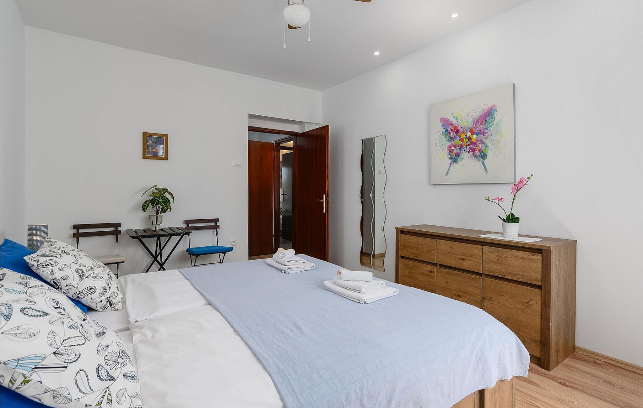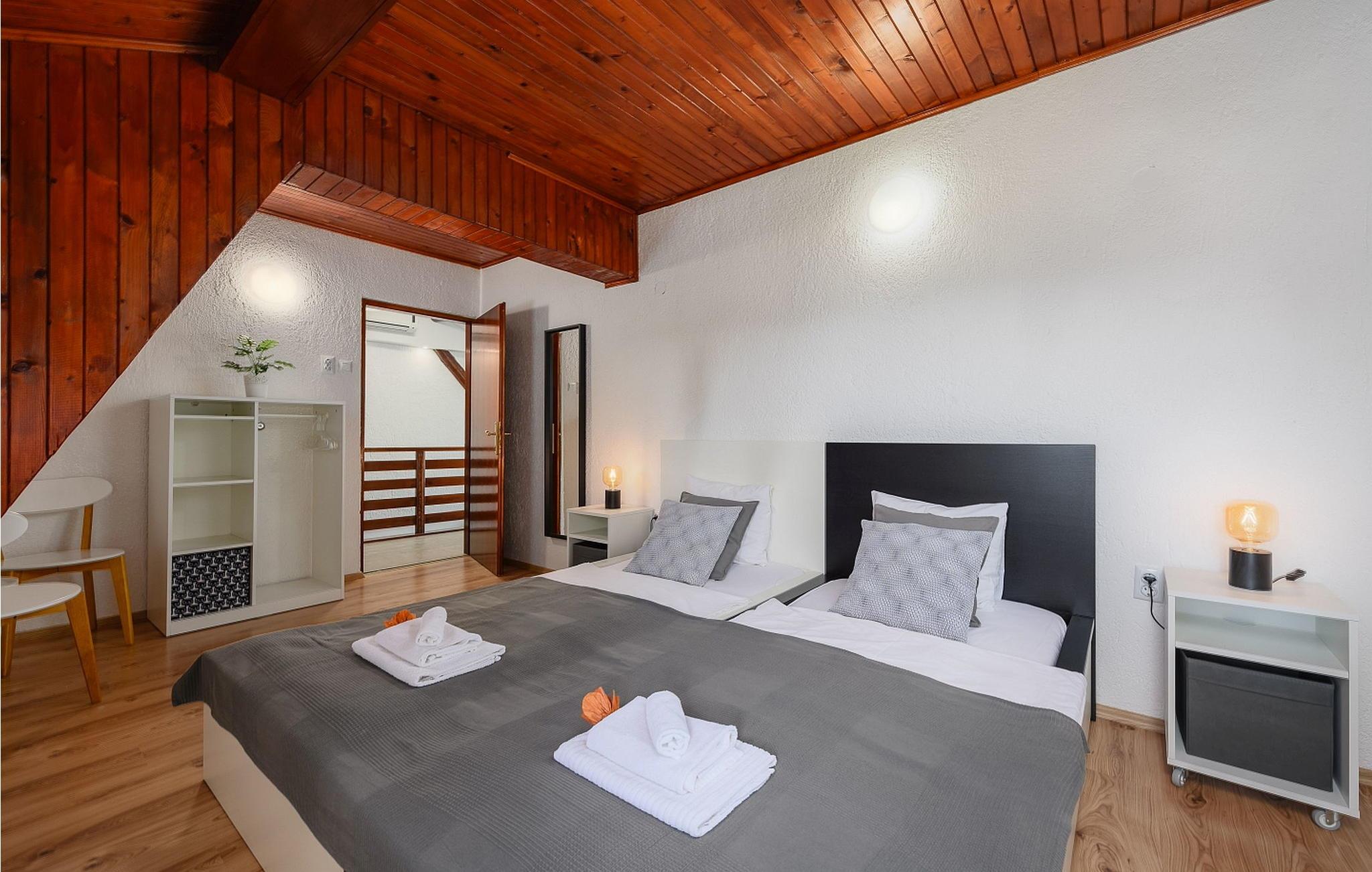 Casa Bizzarra er et feriehus, hvor gæsterne råder over første sal og en hems i et familiehus, der ligger i udkanten af Rovinj og kun ca. 400 m fra havet. Kun ca. 400 m fra huset er der en skøn strand og også en strand egnet til hunde. En cykelsti passerer nær huset. Huset er bygget i 1977 og renoveret i 2015. På grunden på 3000 kvm langs kanten af en gammel olivenlund råder gæsterne over egen have på 600 kvm med siddemøbler, grill og flere parkeringspladser. Husejere bor i husets stueetage. Feriehus til 10 gæster med et samlet boligareal på 178 kvm, fordelt på to etager. På første sal er der opholdsstue med udgang til to altaner, spisebord og legehjørne for børn, fuldt udstyret køkken, bad/toilet, to dobbeltværelser, hvorfra et med to separate senge til én person, bad/toilet og dobbeltværelse. soveværelse med eget bad/toilet. På hemsen er der to dobbeltværelser hvorfra det ene med to separate senge til én person, bad/toilet. Bemærk venligst, at denne ejendom ikke accepterer ungdomsgrupper eller polterabends. En ungdomsgruppe på denne ejendom er en gruppe bestående af personer på 26 år eller derunder. Book ikke denne ejendom, hvis du er en ungdomsgruppe eller et polterabend, da din reservation vil blive afvist efter booking, hvilket kan omfatte ved ankomst til ejendommen eller under dit ophold, og du vil ikke blive refunderet.