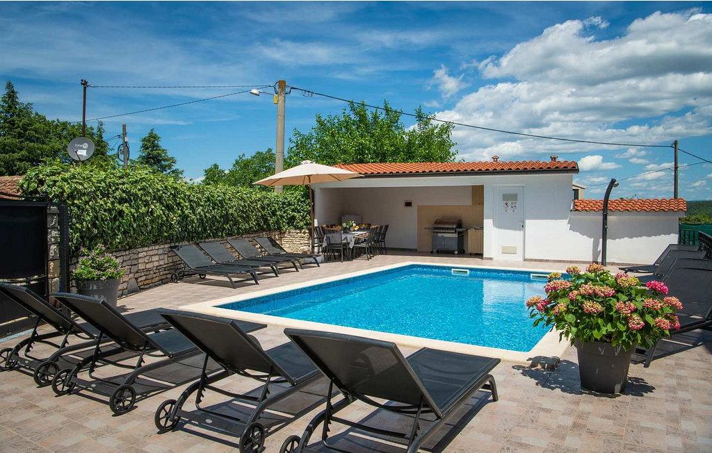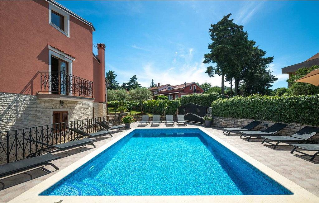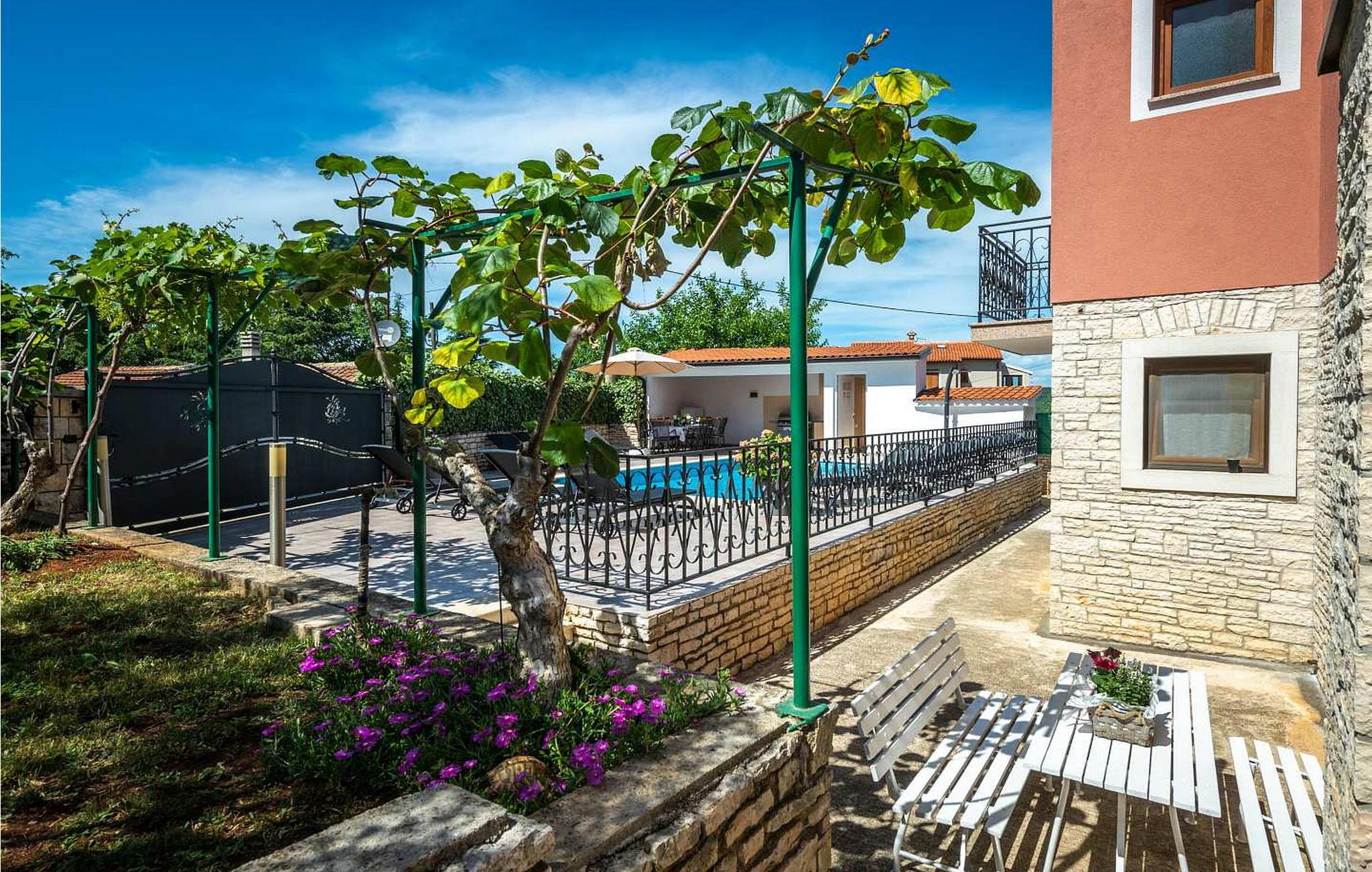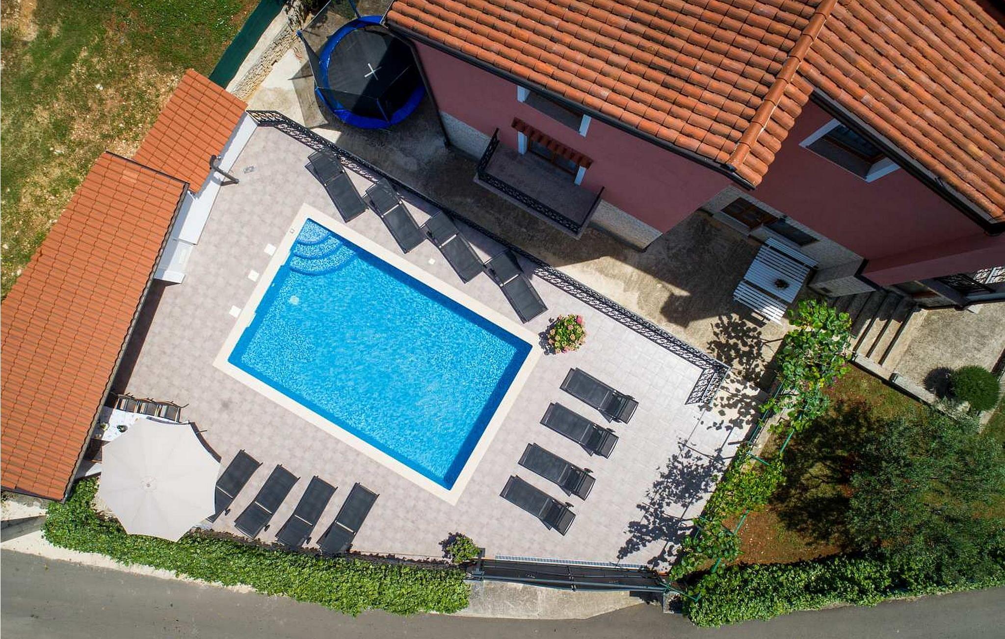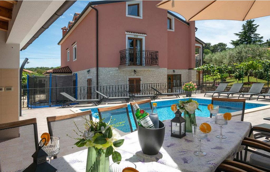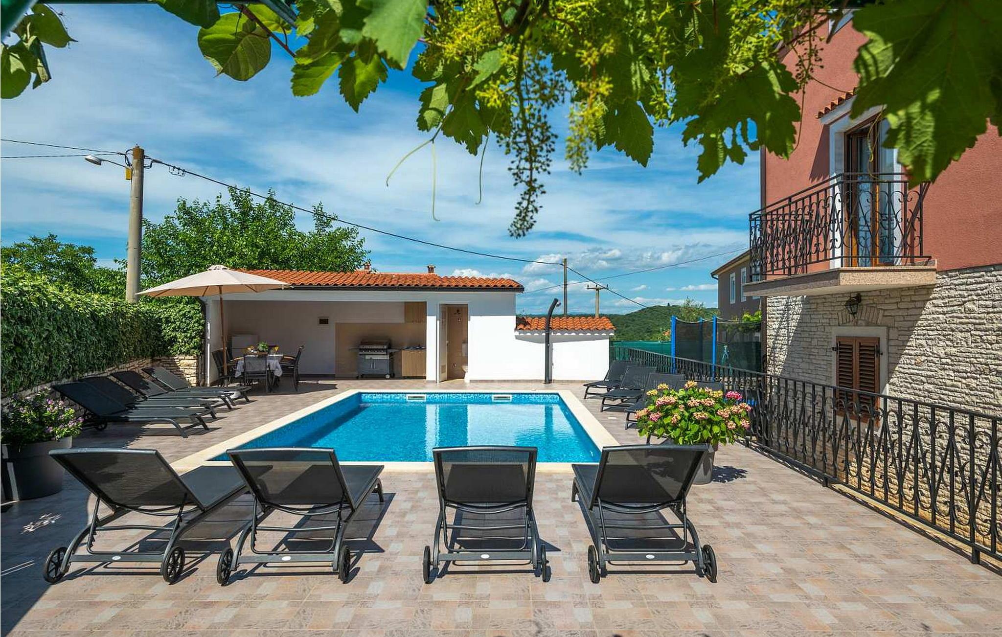 Villa Viktori er et komfortabelt feriehus beliggende i Rovinjsko Selo, kun 7 km fra det maleriske Rovinj og 8 km fra stranden. Huset blev bygget i 1999, renoveret i 2015 og tilbyder gæsterne et strejf af rustik og moderne stil, der vil tilfredsstille enhver smag. På sin egen lukkede grund på 1000 kvm tilbyder dette hus sine gæster en udendørs swimmingpool på 30 kvm, sommerkøkken med gasgrill og siddemøbler, separat toilet, trampolin, siddemøbler i skyggen af vinranker og parkeringsplads til 3 biler. Feriehus til 12 gæster med et boligareal på i alt 276 kvm fordelt på to etager. På første sal, der er indrettet i rustik stil, er der en airconditioneret opholdsstue med udgang til stor altan, udstyret køkken med spisebord, tre soveværelser med dobbeltsenge, hvoraf to med udgang til egen altan, bad/toilet, bruser /toilet. På trappen mellem første og anden sal er der en Orbitrac-cykel til gæsternes rådighed. På anden sal, der er indrettet med moderne møbler, er der et opholdsområde med aircondition, veludstyret køkken med spisebord, tre soveværelser med dobbeltsenge og to bruser/toiletter. Bemærk venligst, at denne ejendom ikke accepterer ungdomsgrupper eller polterabends. En ungdomsgruppe på denne ejendom er en gruppe bestående af personer på 26 år eller derunder. Book ikke denne ejendom, hvis du er en ungdomsgruppe eller et polterabend, da din reservation vil blive afvist efter booking, hvilket kan omfatte ved ankomst til ejendommen eller under dit ophold, og du vil ikke blive refunderet.