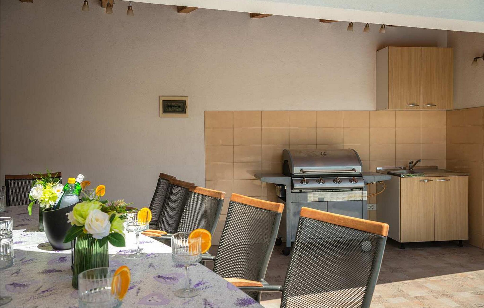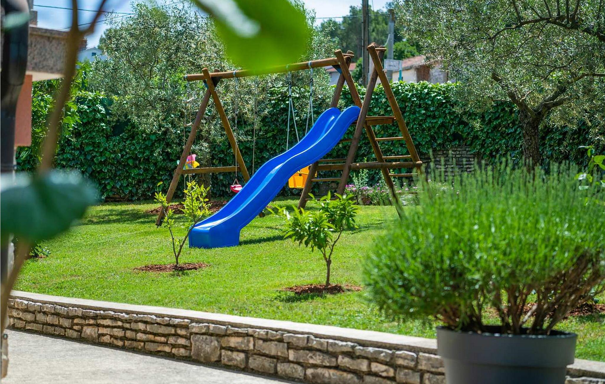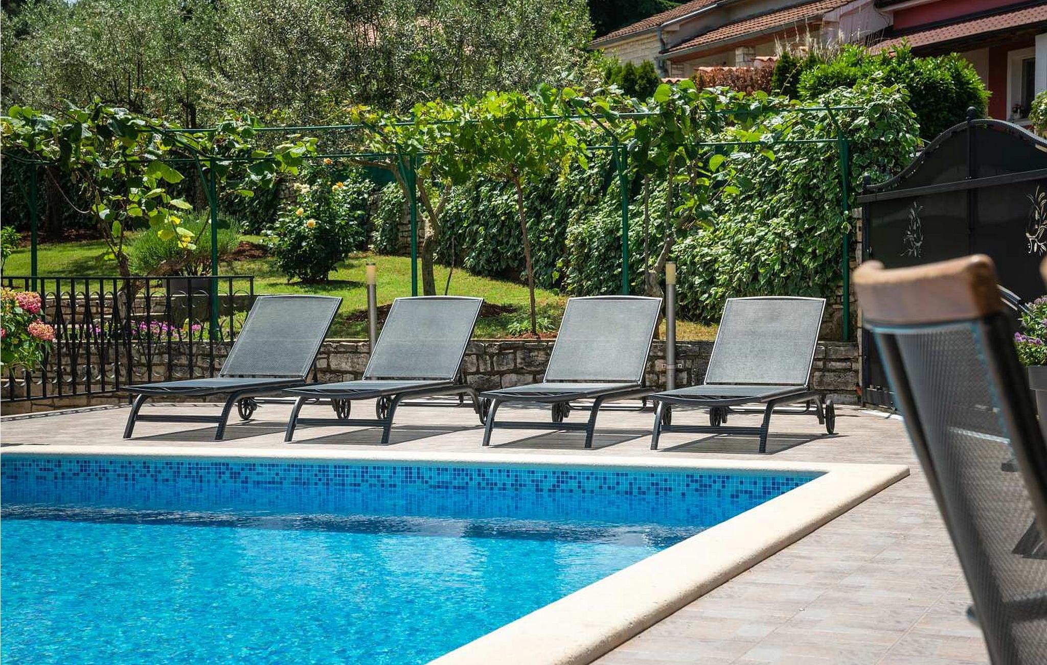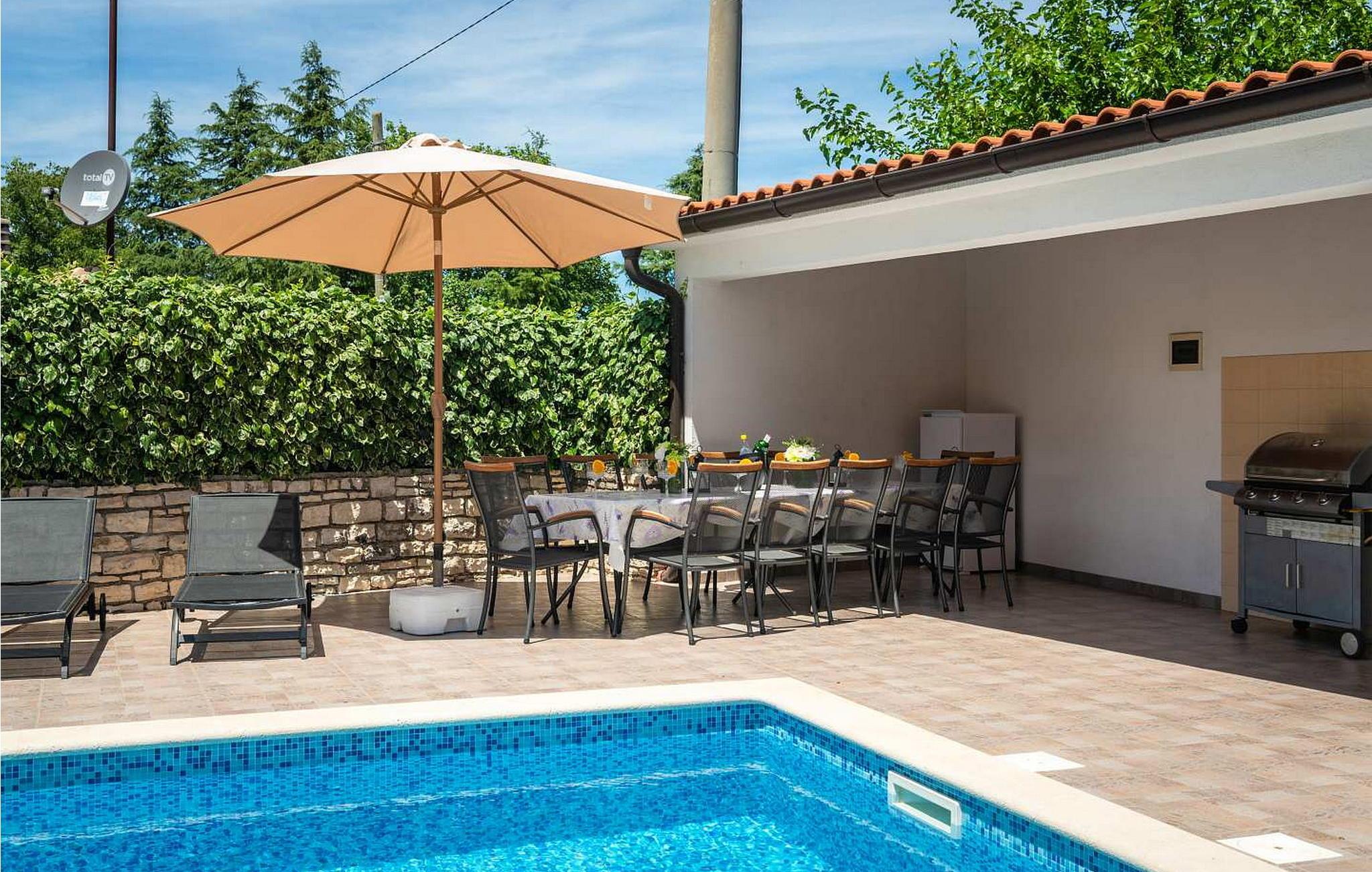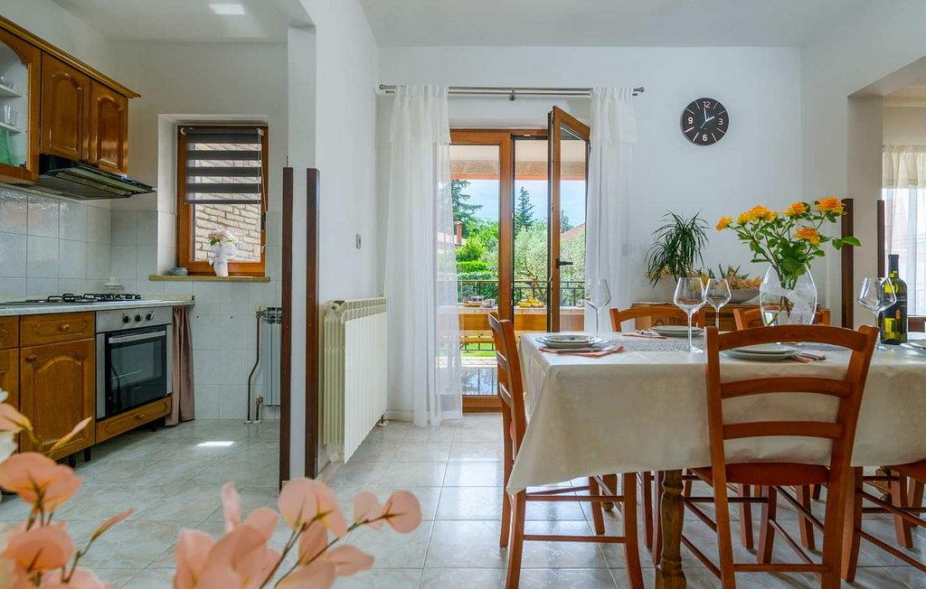 Villa Viktori er et komfortabelt feriehus beliggende i Rovinjsko Selo, kun 7 km fra det maleriske Rovinj og 8 km fra stranden. Huset blev bygget i 1999, renoveret i 2015 og tilbyder gæsterne et strejf af rustik og moderne stil, der vil tilfredsstille enhver smag. På sin egen lukkede grund på 1000 kvm tilbyder dette hus sine gæster en udendørs swimmingpool på 30 kvm, sommerkøkken med gasgrill og siddemøbler, separat toilet, trampolin, siddemøbler i skyggen af vinranker og parkeringsplads til 3 biler. Feriehus til 12 gæster med et boligareal på i alt 276 kvm fordelt på to etager. På første sal, der er indrettet i rustik stil, er der en airconditioneret opholdsstue med udgang til stor altan, udstyret køkken med spisebord, tre soveværelser med dobbeltsenge, hvoraf to med udgang til egen altan, bad/toilet, bruser /toilet. På trappen mellem første og anden sal er der en Orbitrac-cykel til gæsternes rådighed. På anden sal, der er indrettet med moderne møbler, er der et opholdsområde med aircondition, veludstyret køkken med spisebord, tre soveværelser med dobbeltsenge og to bruser/toiletter. Bemærk venligst, at denne ejendom ikke accepterer ungdomsgrupper eller polterabends. En ungdomsgruppe på denne ejendom er en gruppe bestående af personer på 26 år eller derunder. Book ikke denne ejendom, hvis du er en ungdomsgruppe eller et polterabend, da din reservation vil blive afvist efter booking, hvilket kan omfatte ved ankomst til ejendommen eller under dit ophold, og du vil ikke blive refunderet.