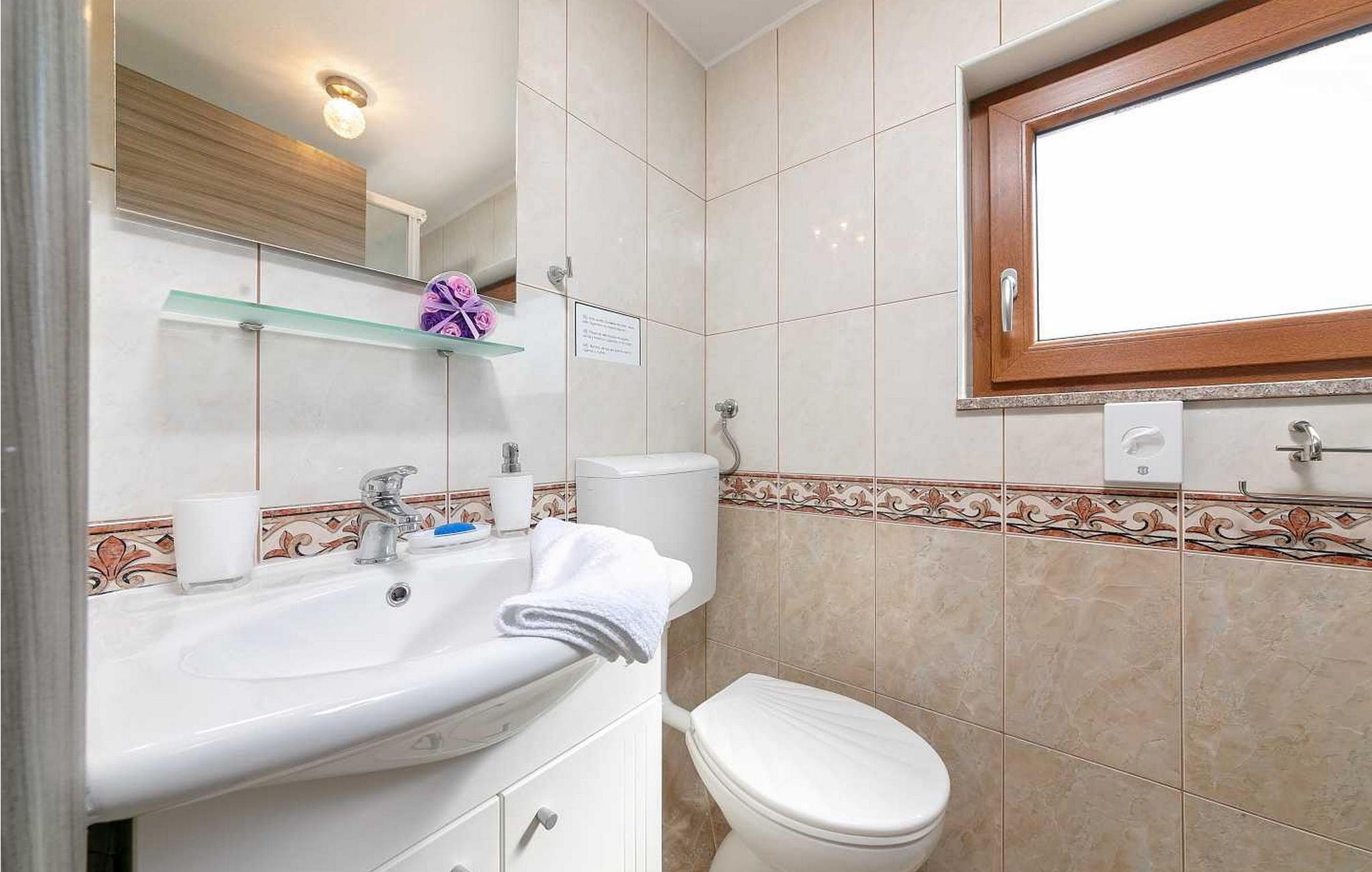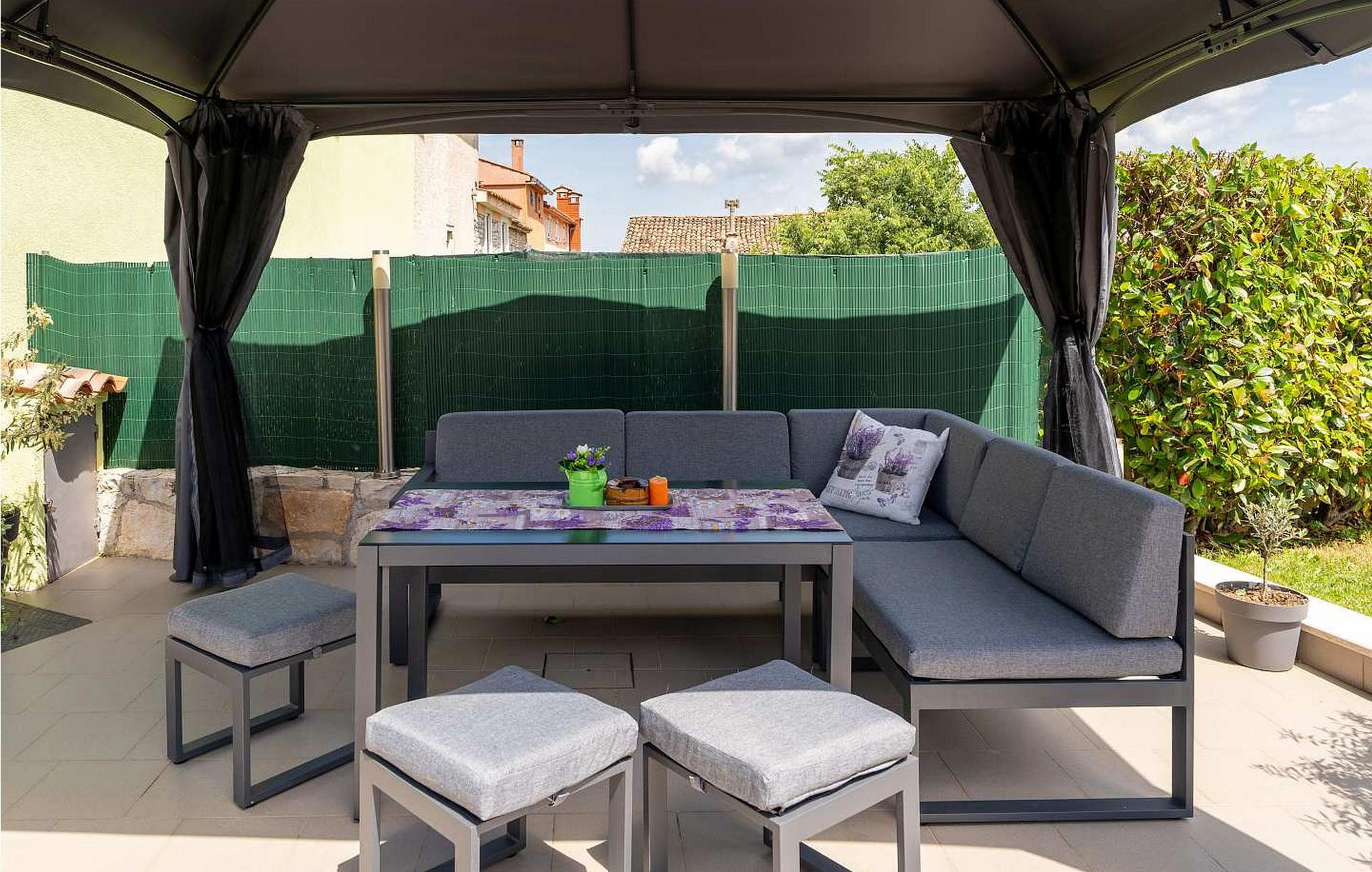 Villa Vittorio er et komfortabelt feriehus med swimmingpool i Rovinjsko selo, 7 km fra det maleriske Rovinj med den smukke gamle bymidte og dens forskellige tilbud inden for sport, forlystelser og gastrofaciliteter. I Rovinjsko selo, kun 5-6 minutter til fods, er der en butik, en restaurant, legeplads og andet. Villa Vittorio har en velholdt, fuldstændig lukket ejendom på 400 kvm med swimmingpool, stor overdækket terrasse med spisebord og sommerkøkken, liggestole og trampolin til de mindste. Sommerhus til 8 gæster med en samlet overflade på 150 kvm i to etager. Stueetagen består af en opholdsstue med aircondition med udstyret køkken, spisebord og siddegruppe, soveværelse med dobbeltseng med privat bad/toilet og endnu et bad/toilet. Første sal har to soveværelser med dobbeltseng, et soveværelse med dobbeltseng med eget bad/toilet og et bad/toilet i entreen. Der er klimaanlæg i hallen nok til at køle alle soveværelser på grund af de tykke stenvægge på 80 cm. Bemærk venligst, at denne ejendom ikke accepterer ungdomsgrupper eller polterabends. En ungdomsgruppe på denne ejendom er en gruppe bestående af personer på 26 år eller derunder. Book ikke denne ejendom, hvis du er en ungdomsgruppe eller et polterabend, da din reservation vil blive afvist efter booking, hvilket kan omfatte ved ankomst til ejendommen eller under dit ophold, og du vil ikke blive refunderet.