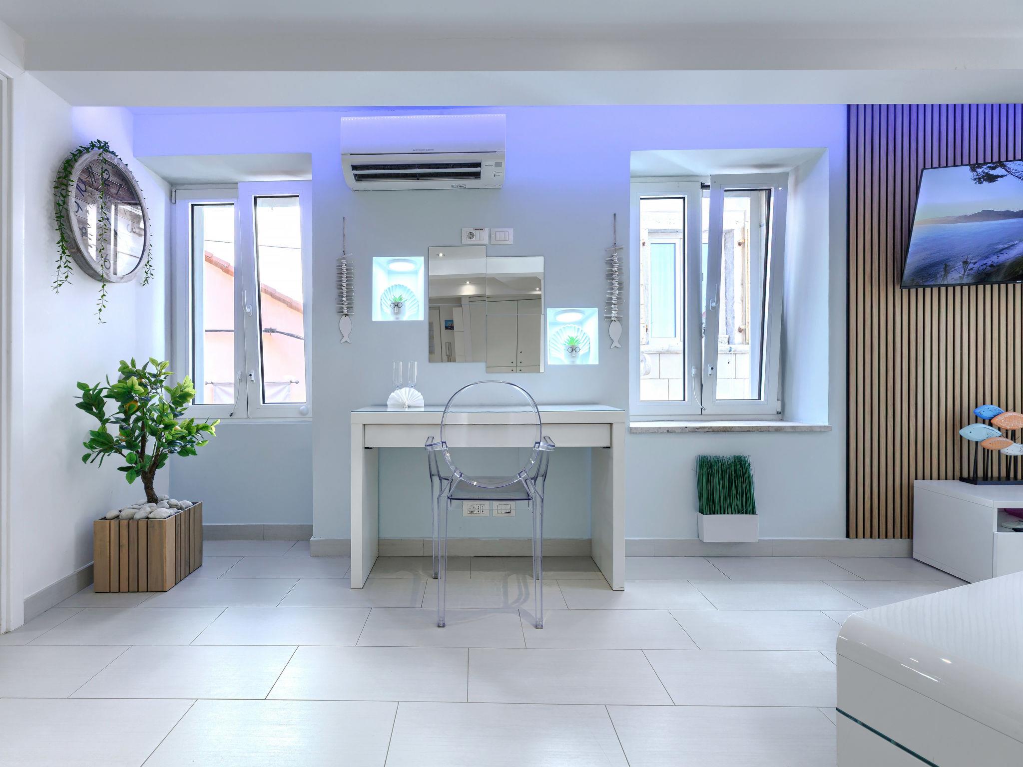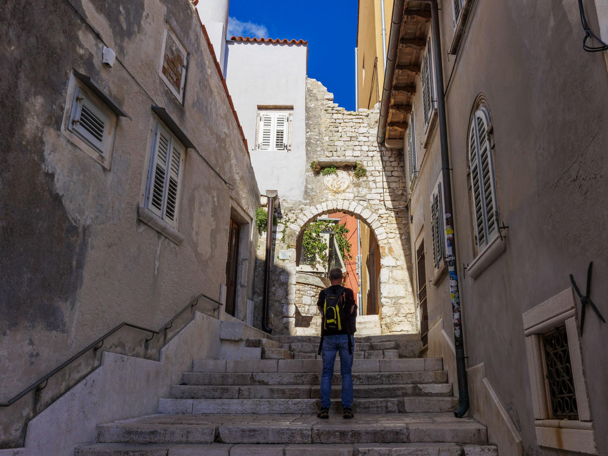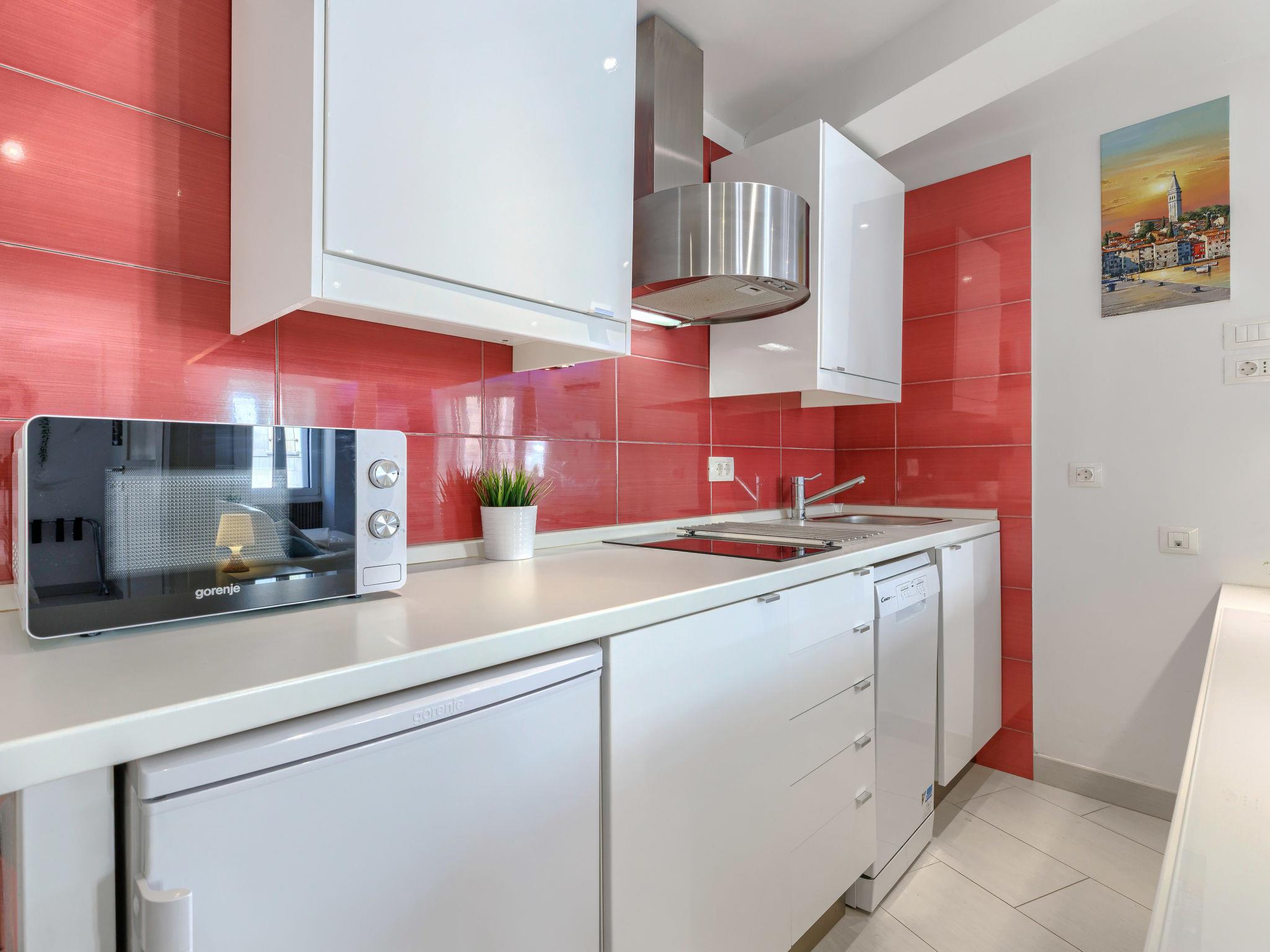 Apartment block. In the centre of Rovinj, 100 m from the sea, 100 m from the beach, in a pedestrian area. In the house: internet access. Available: bicycles (2). Motor access to 300 m from the house. Public parking 600 m extra. Shop, restaurant 100 m, café 10 m, bus stop 650 m, rocky beach 100 m, public bathing area 250 m. Please note: airfield 40 km from the property.