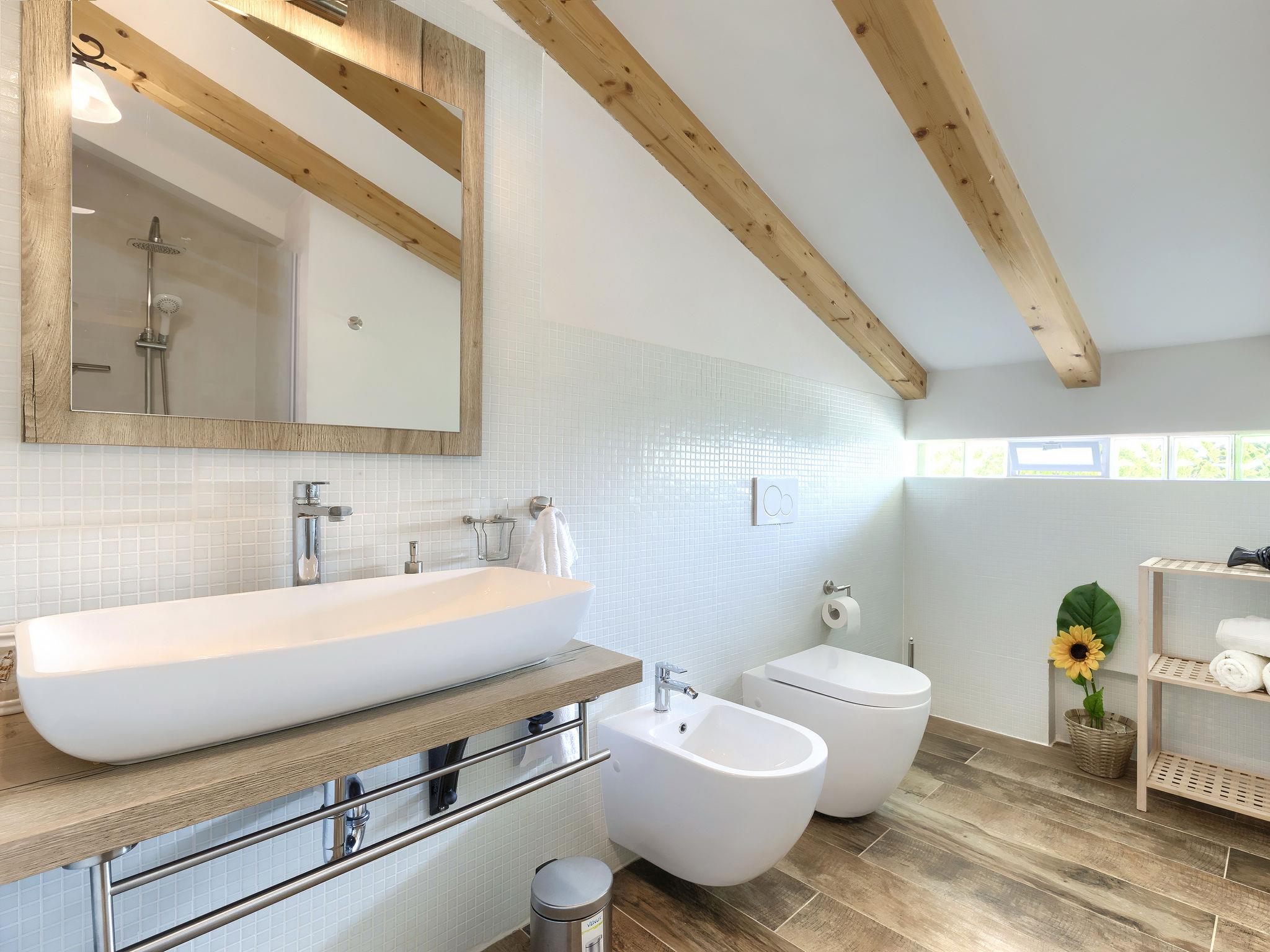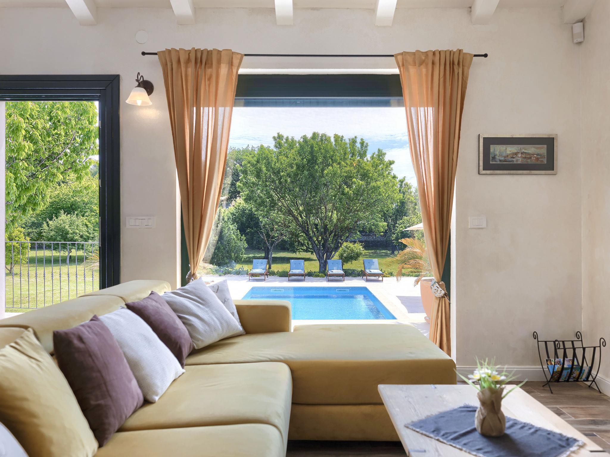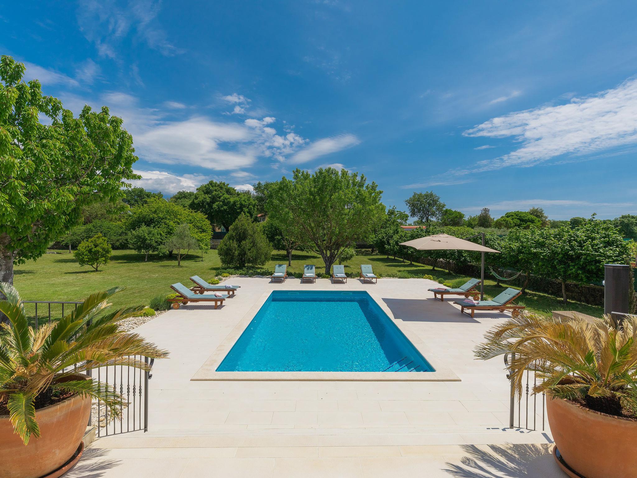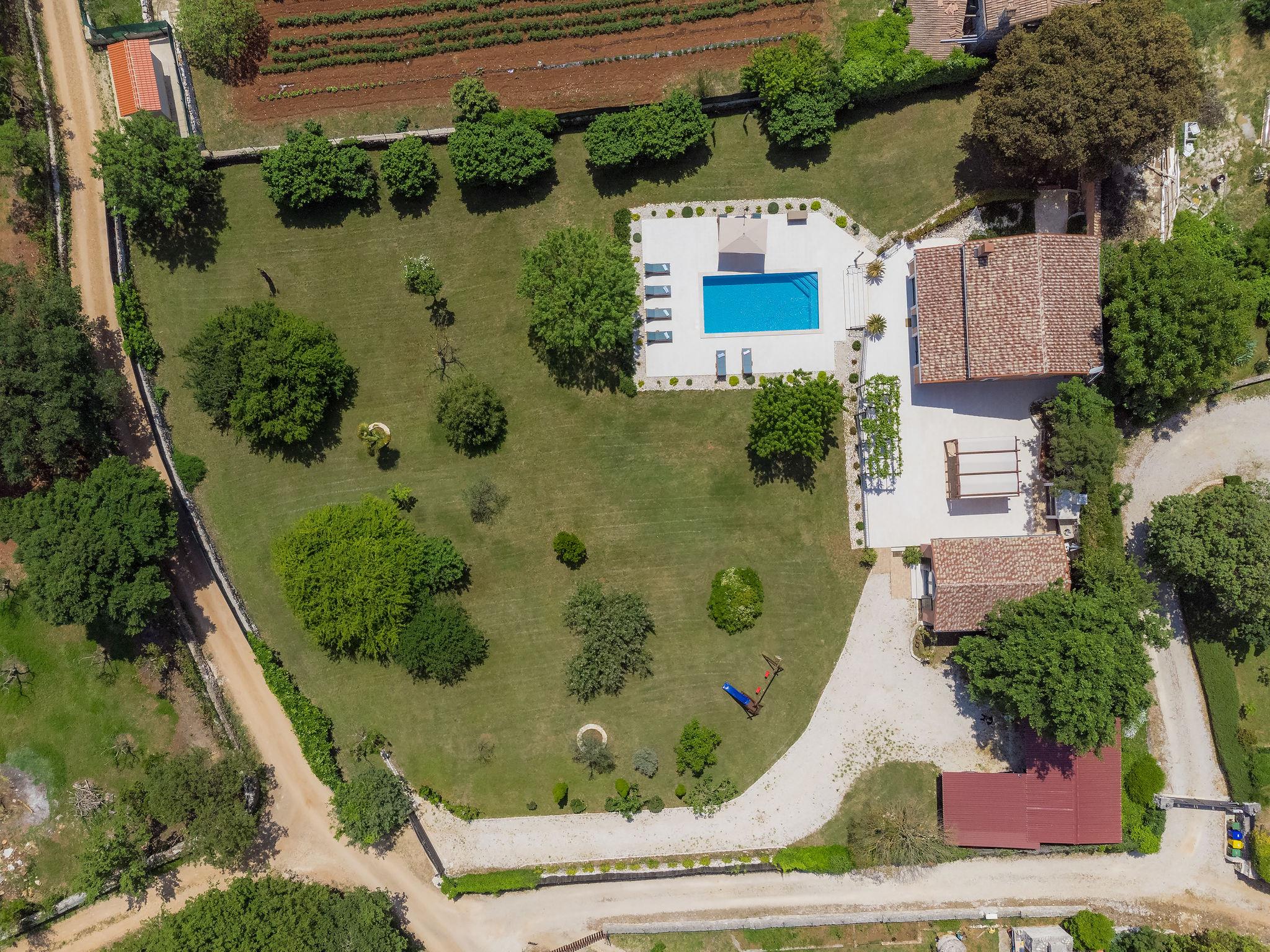 Child friendly, beautiful single-family house "Villa Bernard", 2 storeys. 3 km from the centre of Rovinj, in a quiet, sunny position, 500 m from the sea, 500 m from the beach. Private: property 3'000 m2 (fenced), garden with lawn and trees, swimming pool angular (8 x 4 m, depth 150 cm, seasonal availability: 01.May. - 15.Oct.) with internal staircase and salt-electrolysis pool-cleaning system. Outdoor shower, pergola (18 m2), garden furniture, barbecue, children's playground (slide, swing). In the house: internet access, trampoline, burglar alarm system, washing machine, tumble dryer. Motor access to the house (550 m via unmade road). Parking at the house on the premises. Shop, supermarket 500 m, restaurant 150 m, bus stop 2.6 km, pebble beach, rocky beach, outdoor swimming pool, public bathing area 500 m. Surf school, tennis 500 m, walking paths from the house 50 m, cycle lane 100 m. Please note: suitable for families. The owner does not accept any youth groups. Organizing a party is not allowed. The unit consists of big main house and small house, rented as one unit.