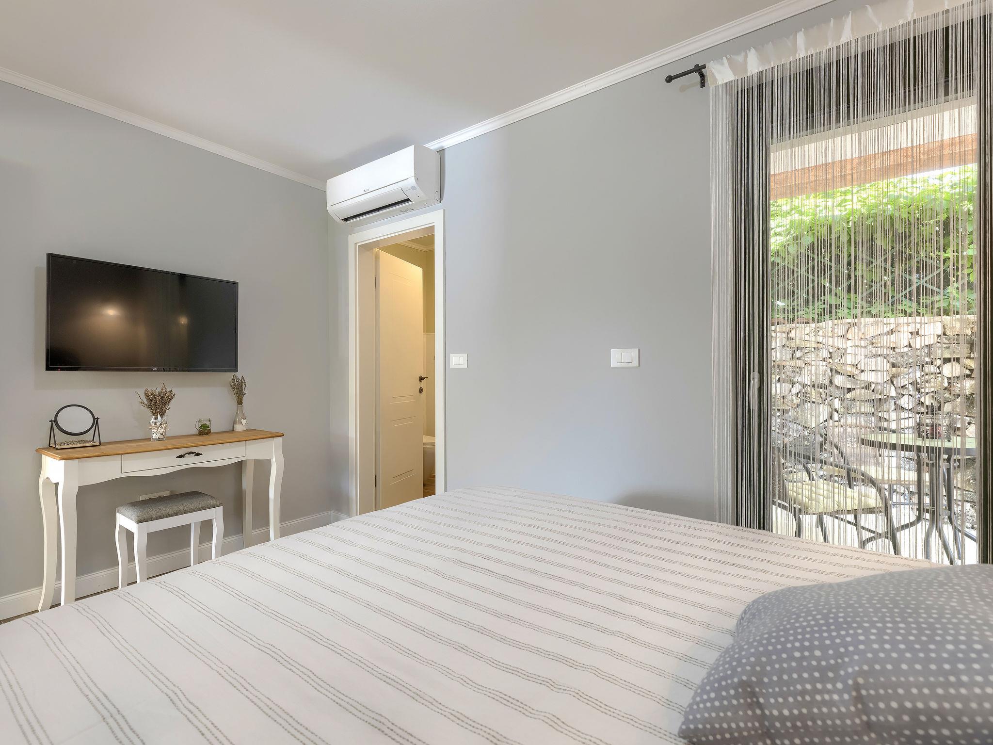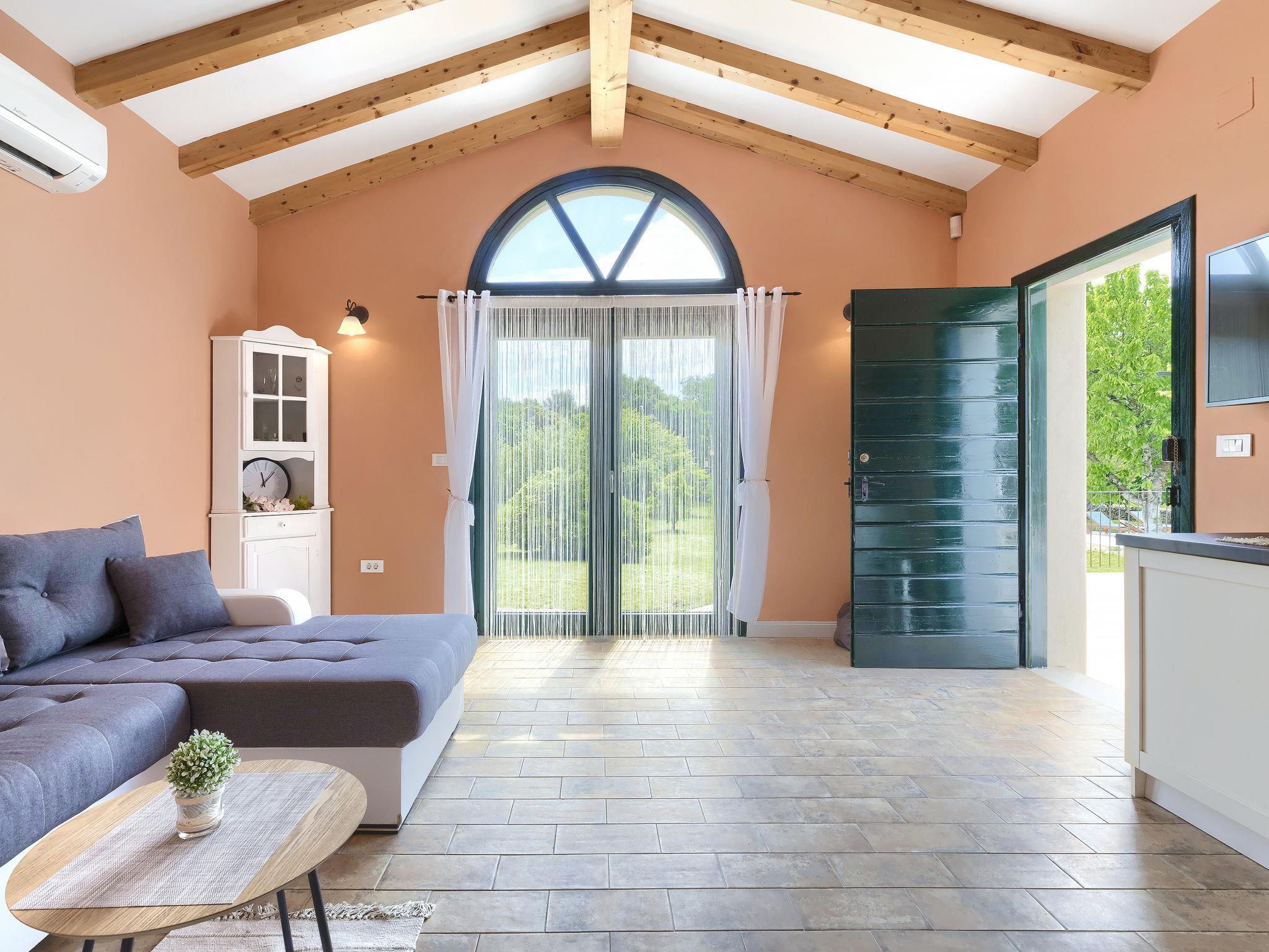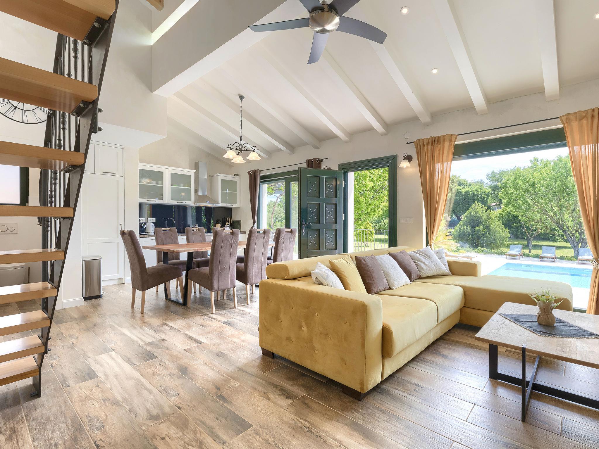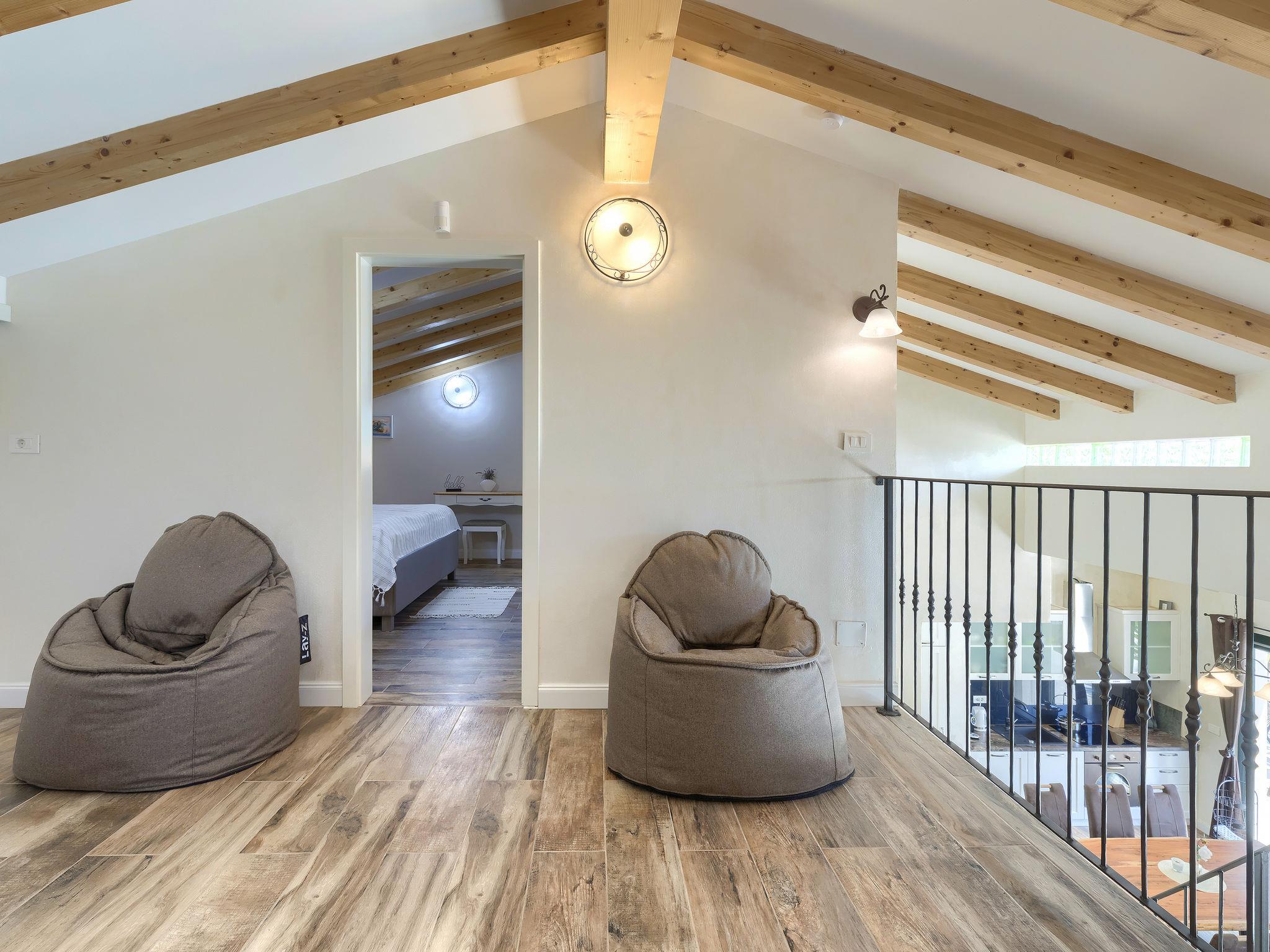 Child friendly, beautiful single-family house "Villa Bernard", 2 storeys. 3 km from the centre of Rovinj, in a quiet, sunny position, 500 m from the sea, 500 m from the beach. Private: property 3'000 m2 (fenced), garden with lawn and trees, swimming pool angular (8 x 4 m, depth 150 cm, seasonal availability: 01.May. - 15.Oct.) with internal staircase and salt-electrolysis pool-cleaning system. Outdoor shower, pergola (18 m2), garden furniture, barbecue, children's playground (slide, swing). In the house: internet access, trampoline, burglar alarm system, washing machine, tumble dryer. Motor access to the house (550 m via unmade road). Parking at the house on the premises. Shop, supermarket 500 m, restaurant 150 m, bus stop 2.6 km, pebble beach, rocky beach, outdoor swimming pool, public bathing area 500 m. Surf school, tennis 500 m, walking paths from the house 50 m, cycle lane 100 m. Please note: suitable for families. The owner does not accept any youth groups. Organizing a party is not allowed. The unit consists of big main house and small house, rented as one unit.
