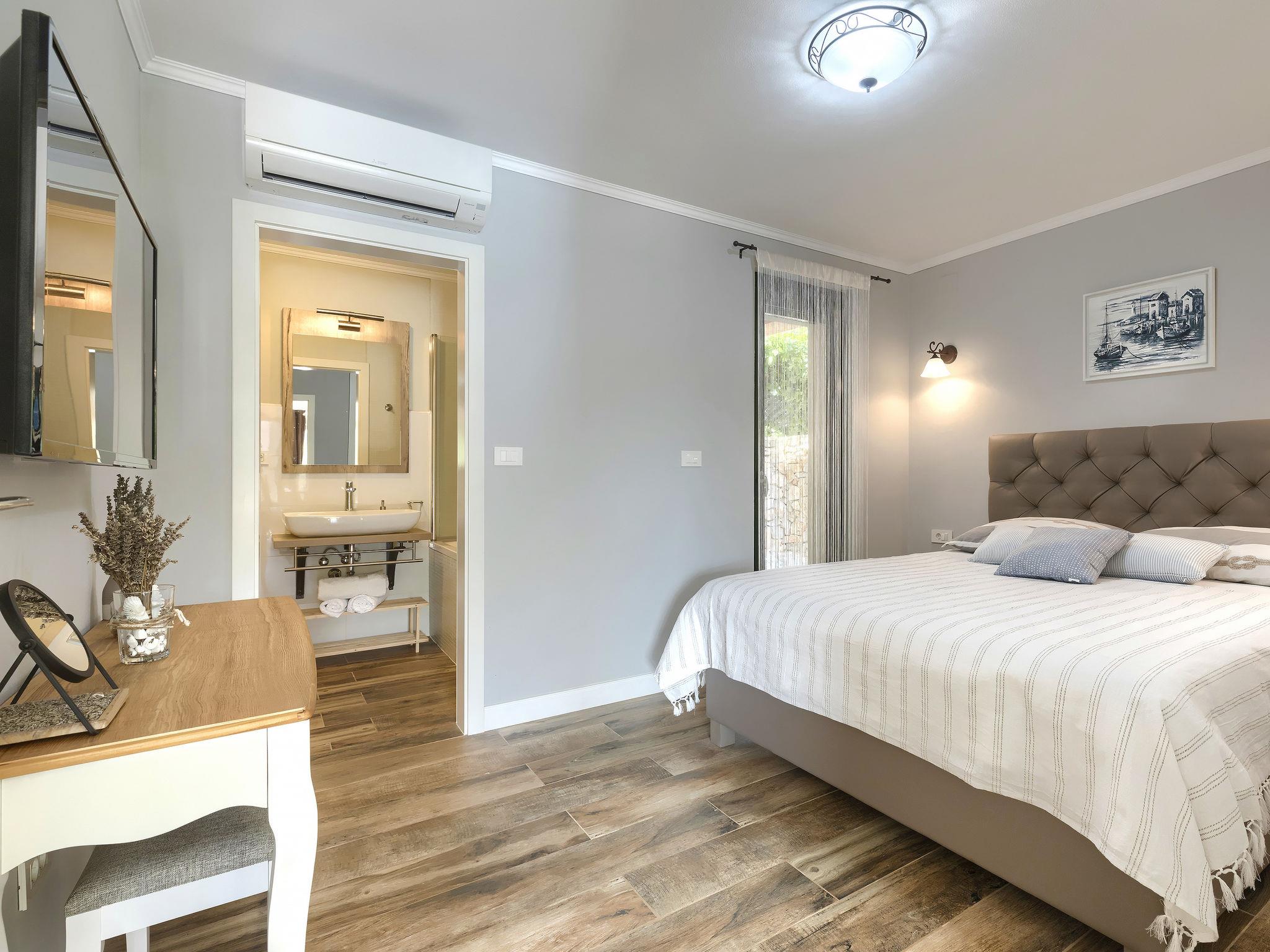 6-room house 200 m2 on 2 levels. Tasteful furnishings: living/dining room 20 m2 with 1 double sofabed (160 cm, length 200 cm), kitchen corner and satellite TV (flat screen), air conditioning. Exit to the terrace. 1 room with 1 double bed (2 x 90 cm, length 200 cm), shower/bidet/WC and satellite TV (flat screen), air conditioning. Living/dining room 35 m2 with satellite TV (flat screen), air conditioning. Exit to the terrace. 1 room with 1 double bed (2 x 90 cm, length 200 cm), bath/bidet/WC and satellite TV (flat screen), air conditioning. Exit to the terrace. 1 room with 2 beds (90 cm, length 200 cm), shower/bidet/WC and satellite TV (flat screen), air conditioning. Open kitchen (oven, dishwasher, 4 ceramic glass hob hotplates, microwave, freezer, electric coffee machine). Sep. WC. No heating option. Upper floor: open gallery with satellite TV (flat screen), air conditioning. 1 room with 1 double bed (2 x 90 cm, length 200 cm), shower/bidet/WC and satellite TV (flat screen), air conditioning. Terrace 30 m2, terrace 15 m2. Terrace furniture, deck chairs. View of the swimming pool. Facilities: safe, iron, baby cot, hair dryer. Internet (WiFi, free). Parking (roofed, 3 cars). Terrace 6 m2, roofed. One house with living/dining area, open kitchen, 1 bedroom on the ground floor. The other house with living/dining area, open kitchen, 2 bedrooms on the ground floor and open gallery, 1 bedroom on the first floor.