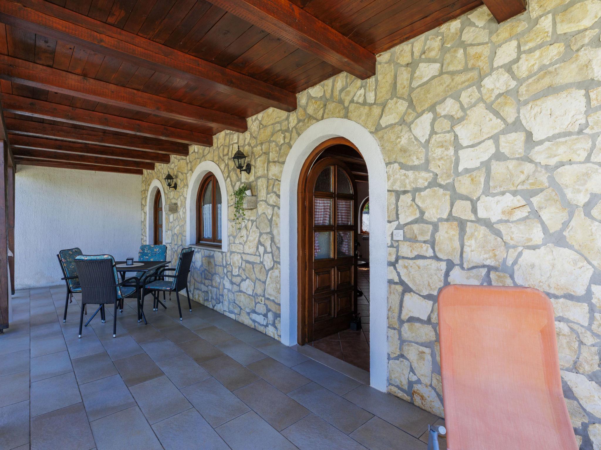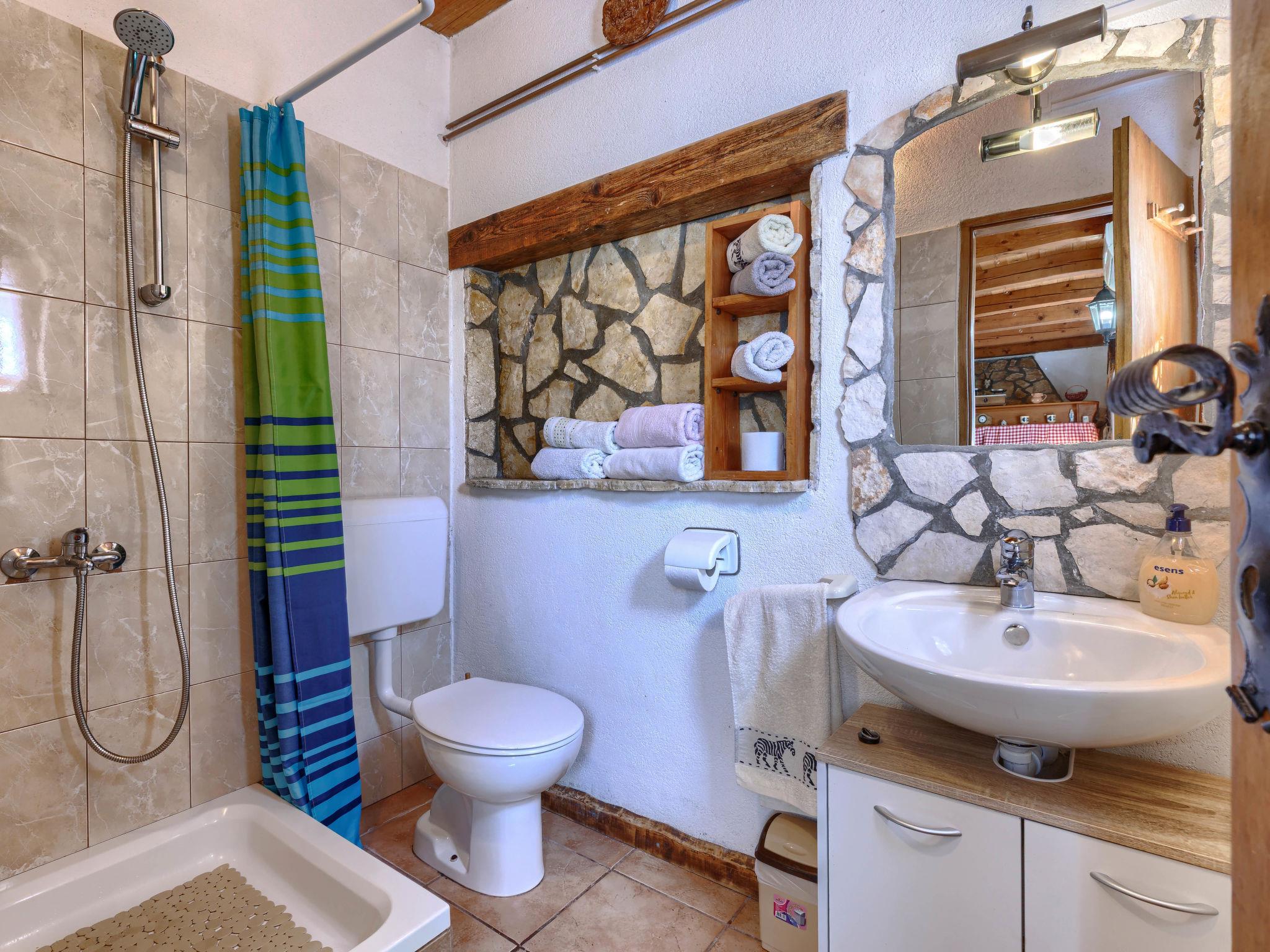 "Cekic", 2-room semi-detached house 55 m2. Living/dining room with 1 double sofabed, open-hearth fireplace, satellite TV and air conditioning. Exit to the terrace. 1 room with 1 double bed. Open kitchen (1 hot plate, oven, dishwasher, 3 gas rings, toaster, kettle, microwave, electric coffee machine). Shower/WC. Terrace 25 m2, roofed. Terrace furniture. Facilities: Internet (WiFi, free). Please note: non-smoking house.