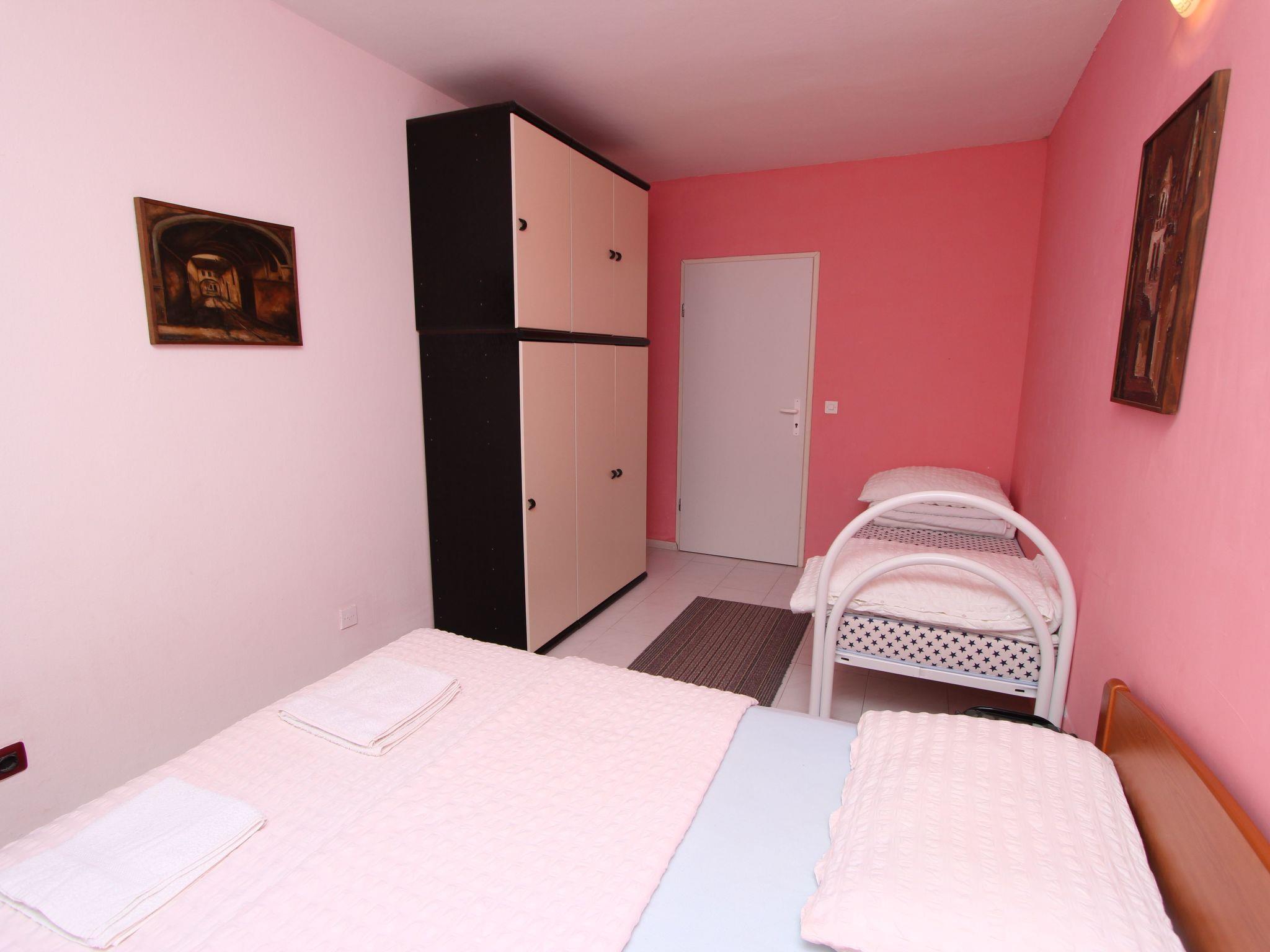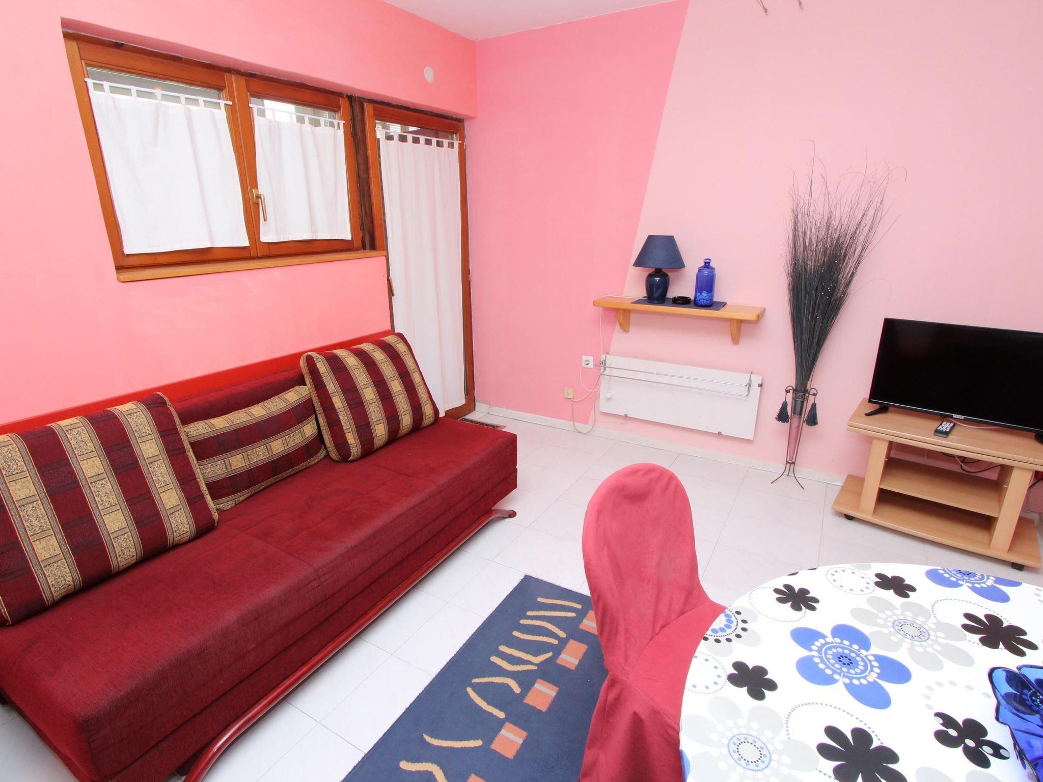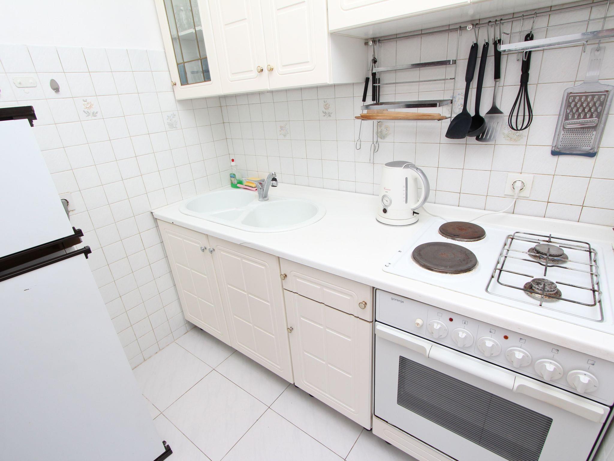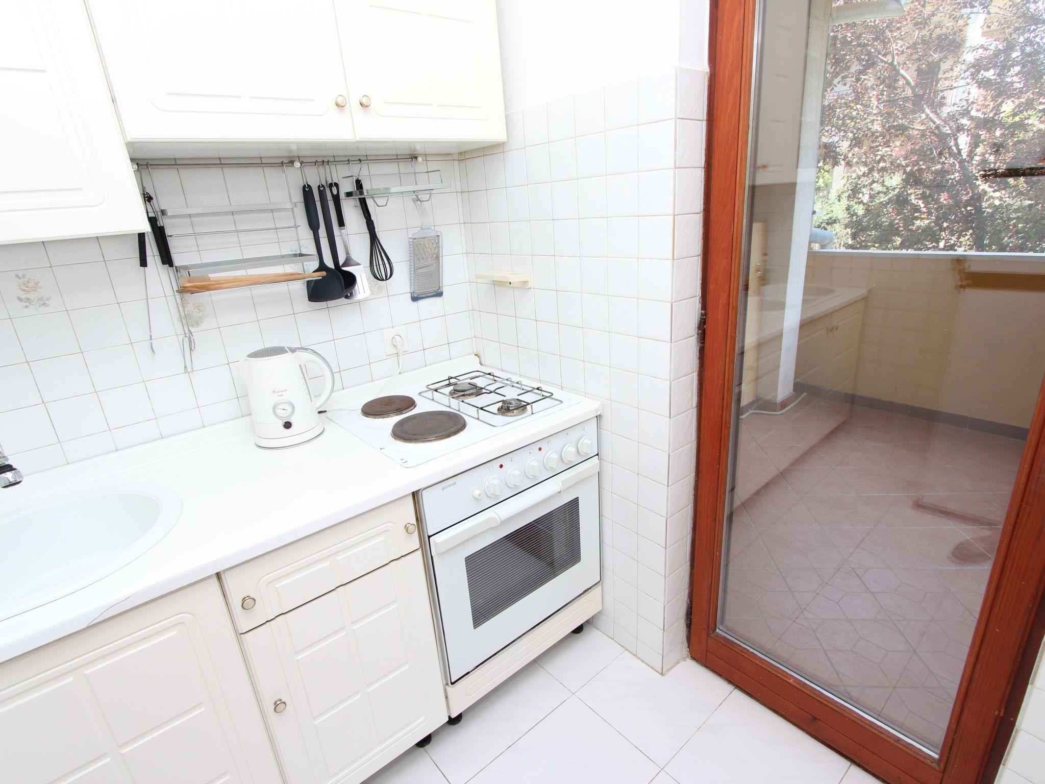 Inside the flat you will find a cosy ambience, which is further emphasised by the tiled floors. The accommodation is located on the first floor and has a functional and welcoming layout. Equipped with a bedroom with a double bed and a single bed, as well as a living area with a comfortable sofa, TV and dining table, the flat promises an unforgettable stay. The air conditioning in the living room ensures pleasant temperatures at any time of year. There is also a fully equipped kitchen with a gas and electric hob, oven, fridge with freezer compartment and kettle, leaving nothing to be desired.