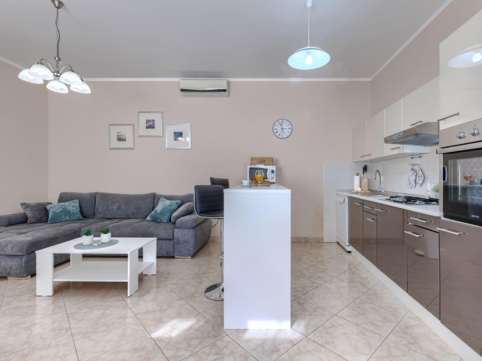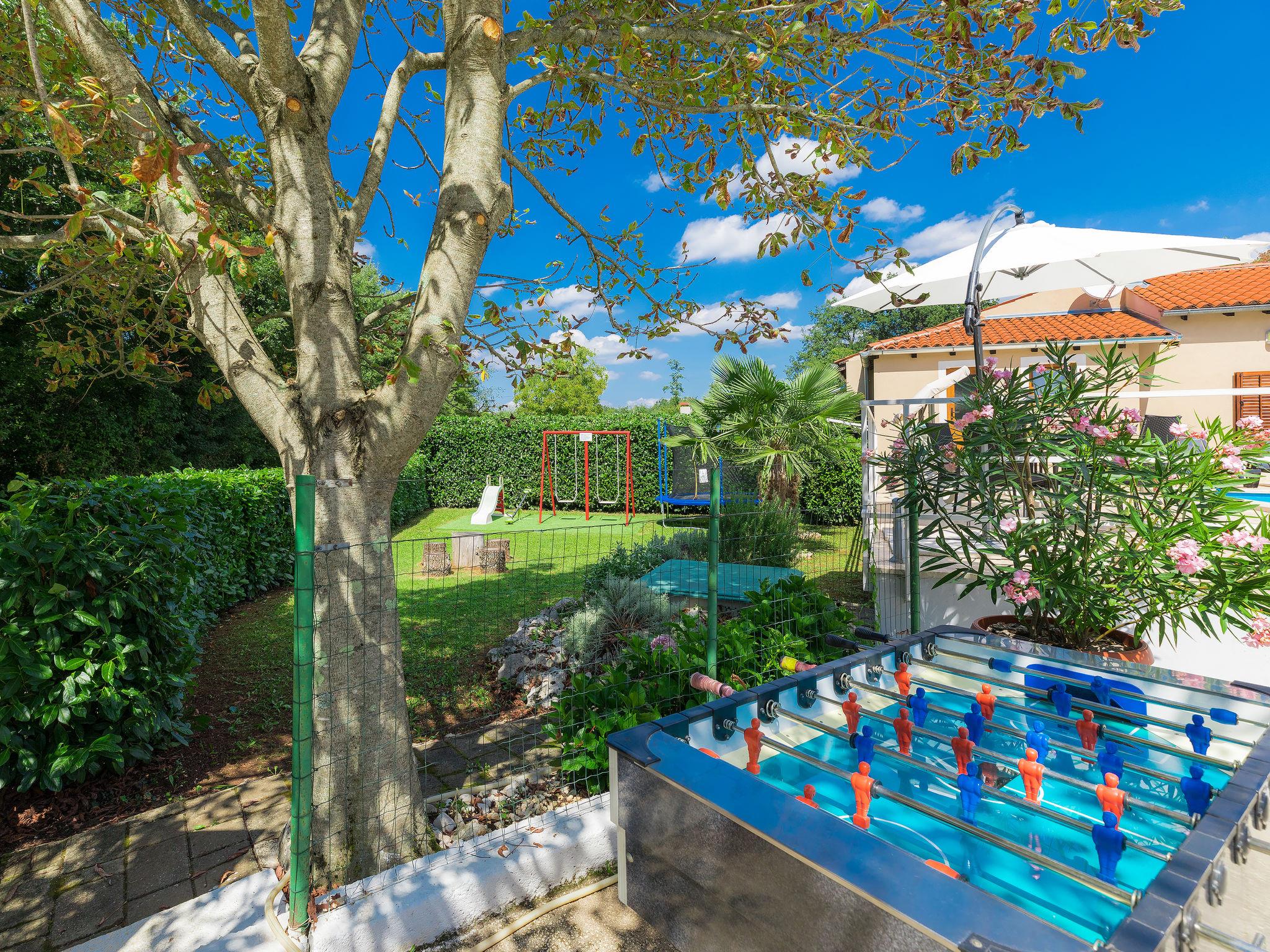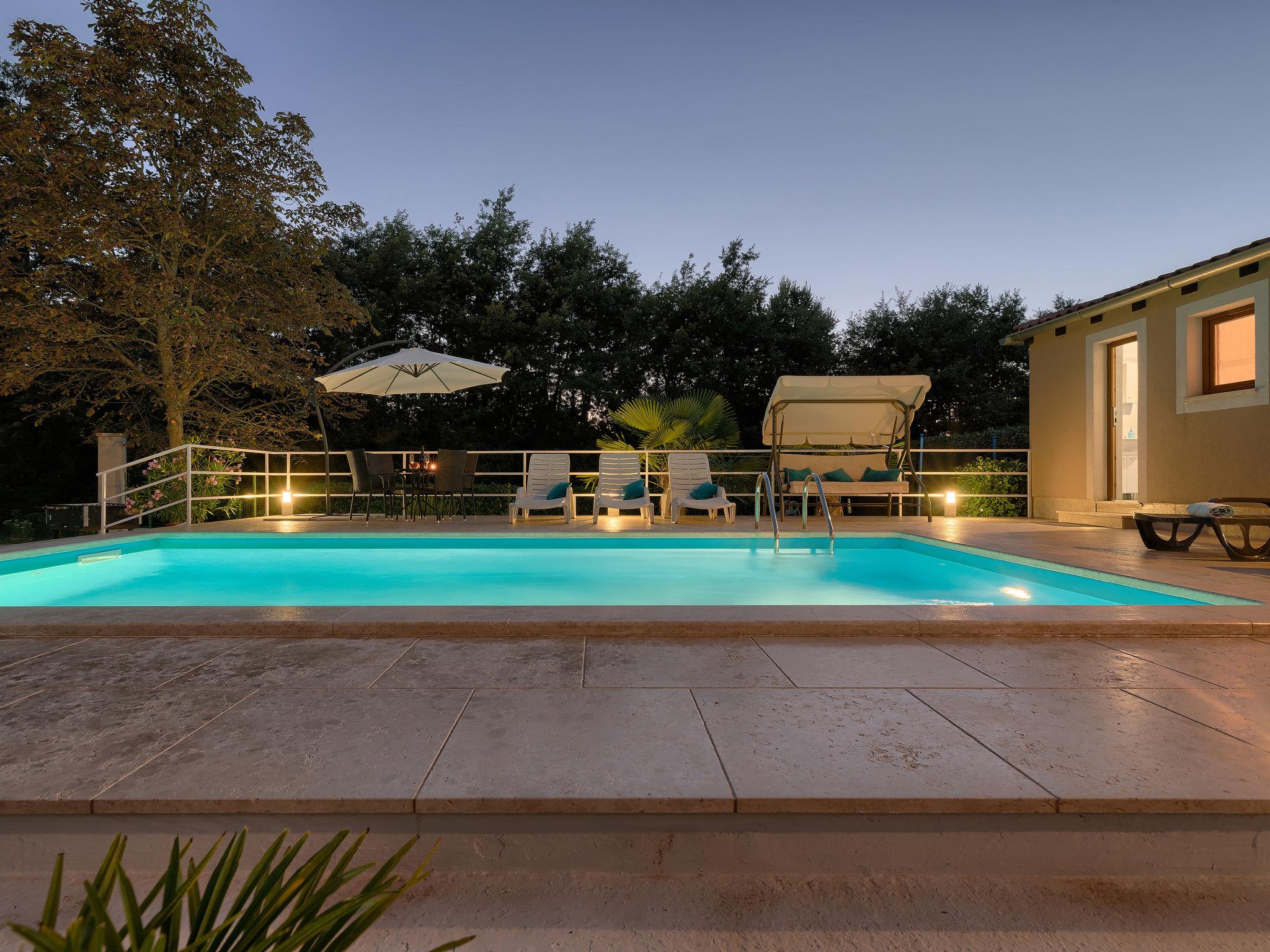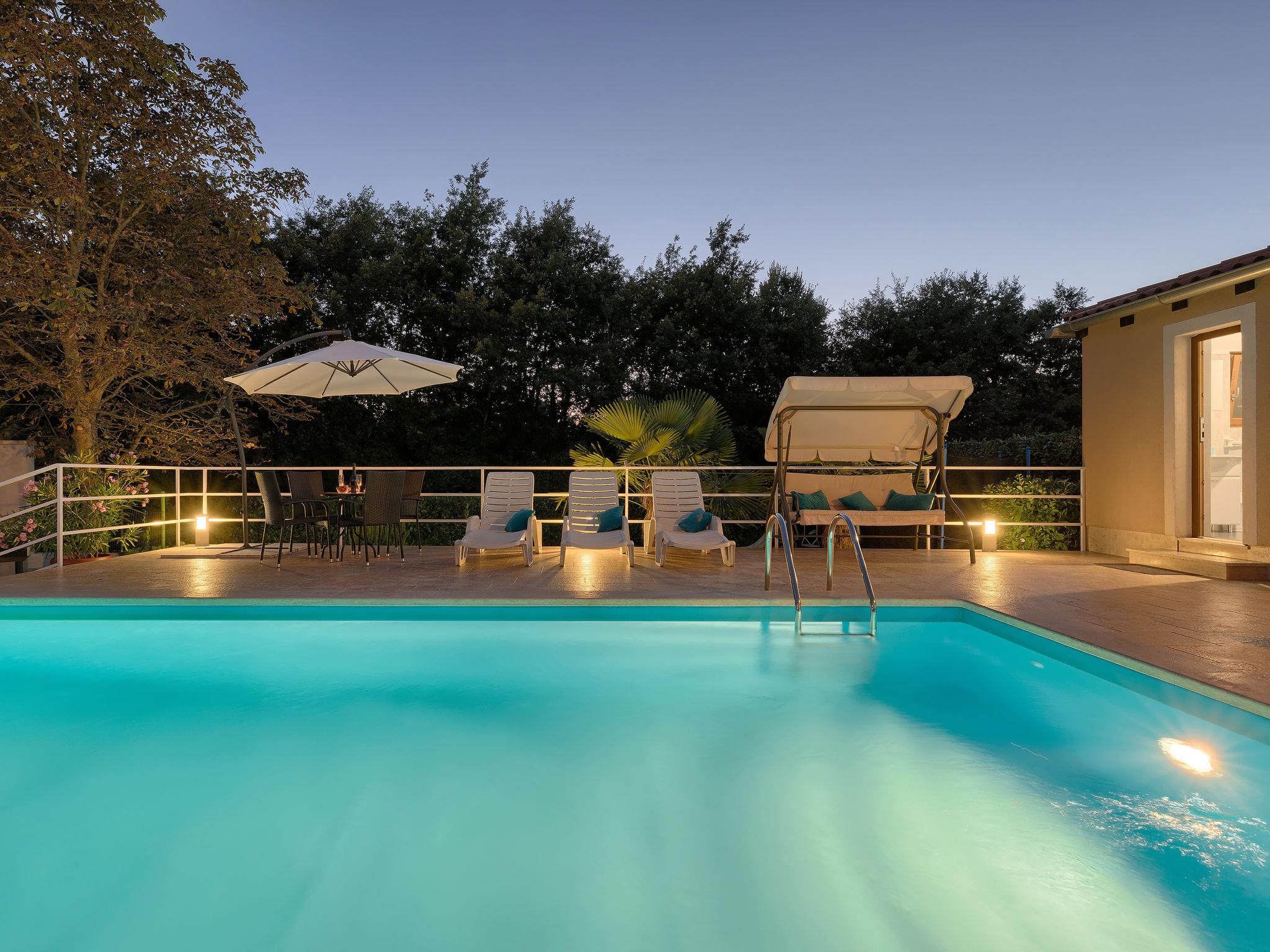 Single-family house "Liberat". In the hamlet Zgrablici 3 km from the centre of Žminj, 20 km from the sea. For shared use: property 5'000 m2 with lawn and plants. Private: swimming pool angular (7 x 3 m, 23 m2, depth 130 cm, seasonal availability: 15.May. - 30.Sep.). WC in the pool area, outdoor shower, arbour, terrace, garden furniture, barbecue, children's playground (slide, swing). In the house: internet access, washing machine. Parking on the premises. Shop 3 km, supermarket 3 km, restaurant 1 km, bus stop 4 km, rocky beach 28 km. Please note: the owner lives on the same property.