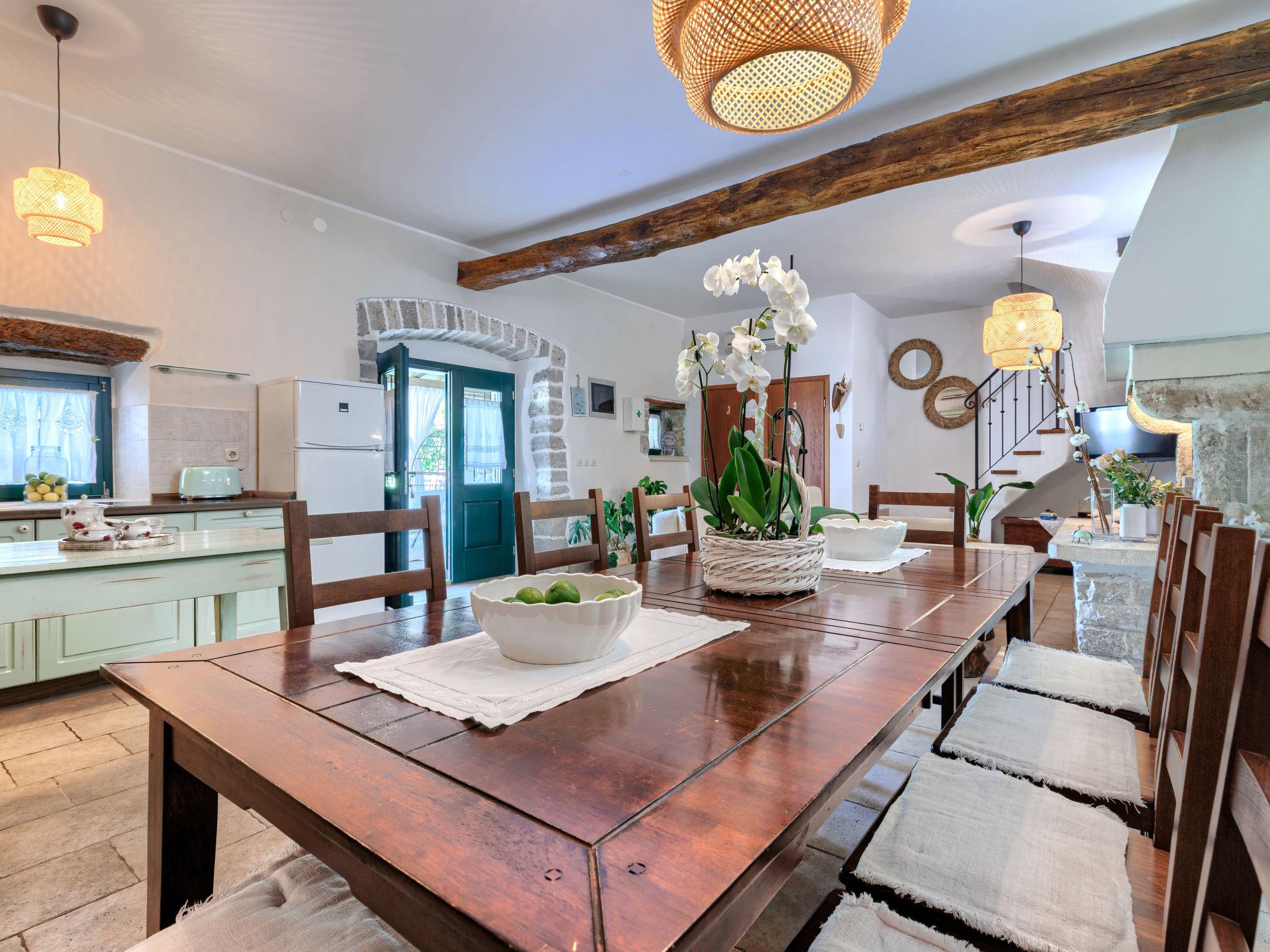 4-room house 140 m2 on 3 levels. Living/dining room with open-hearth fireplace and satellite TV (flat screen), air conditioning. Open kitchen (4 hot plates, oven, dishwasher, toaster, microwave, electric coffee machine). 2 sep. WC's. Upper floor: 1 room with 1 bed, 1 double bed, shower/WC and air conditioning. 1 room with 1 double bed, shower/WC and air conditioning. Top floor: 1 room with sloping ceilings with 4 beds, shower/WC and air conditioning. Terrace 30 m2, roofed. Terrace furniture, barbecue (portable), deck chairs. Facilities: washing machine. Internet (WiFi, free). Please note: non-smoking house. Maximum 2 pets/ dogs allowed. UP/I-335-03/24-01/1081