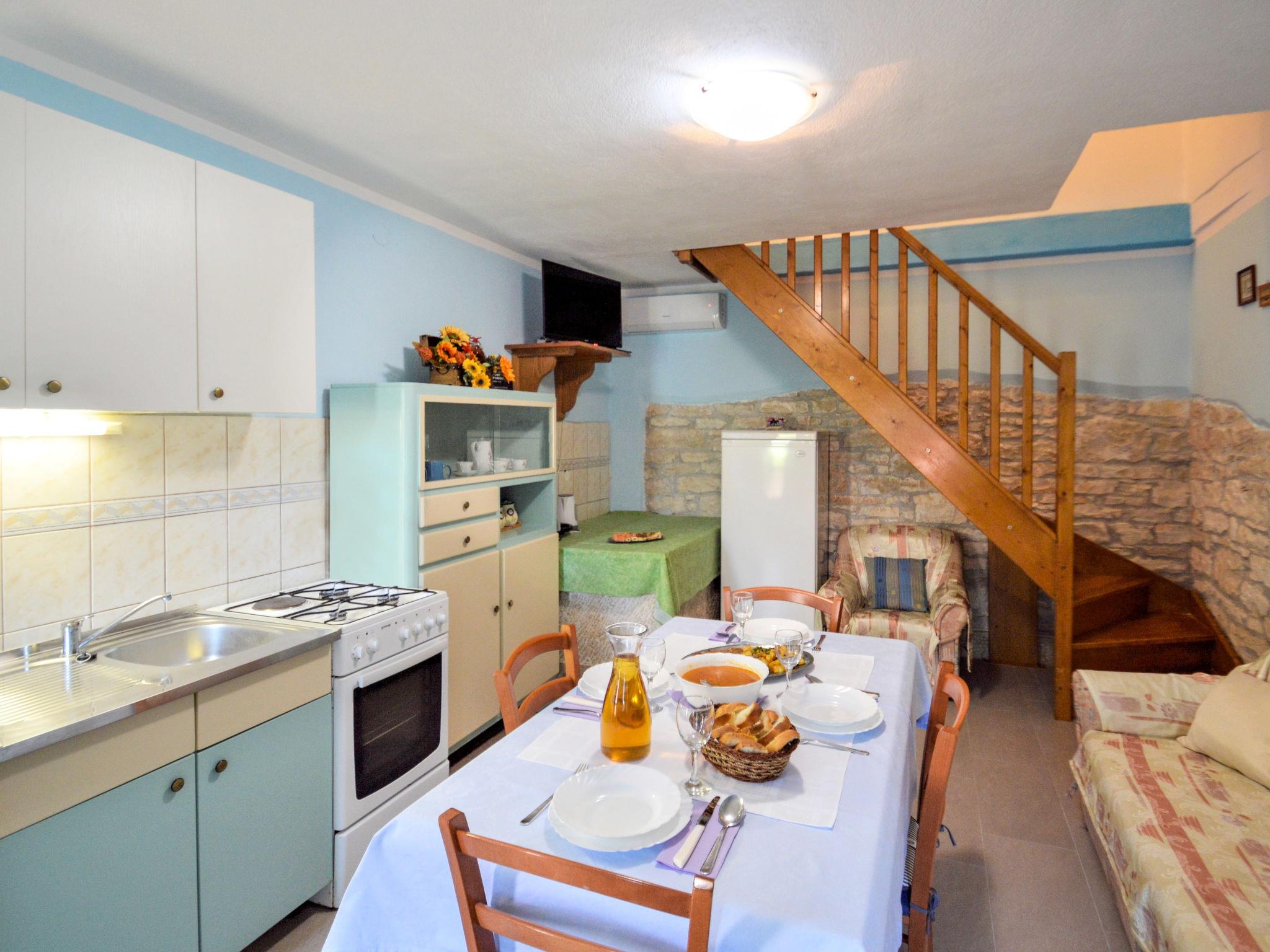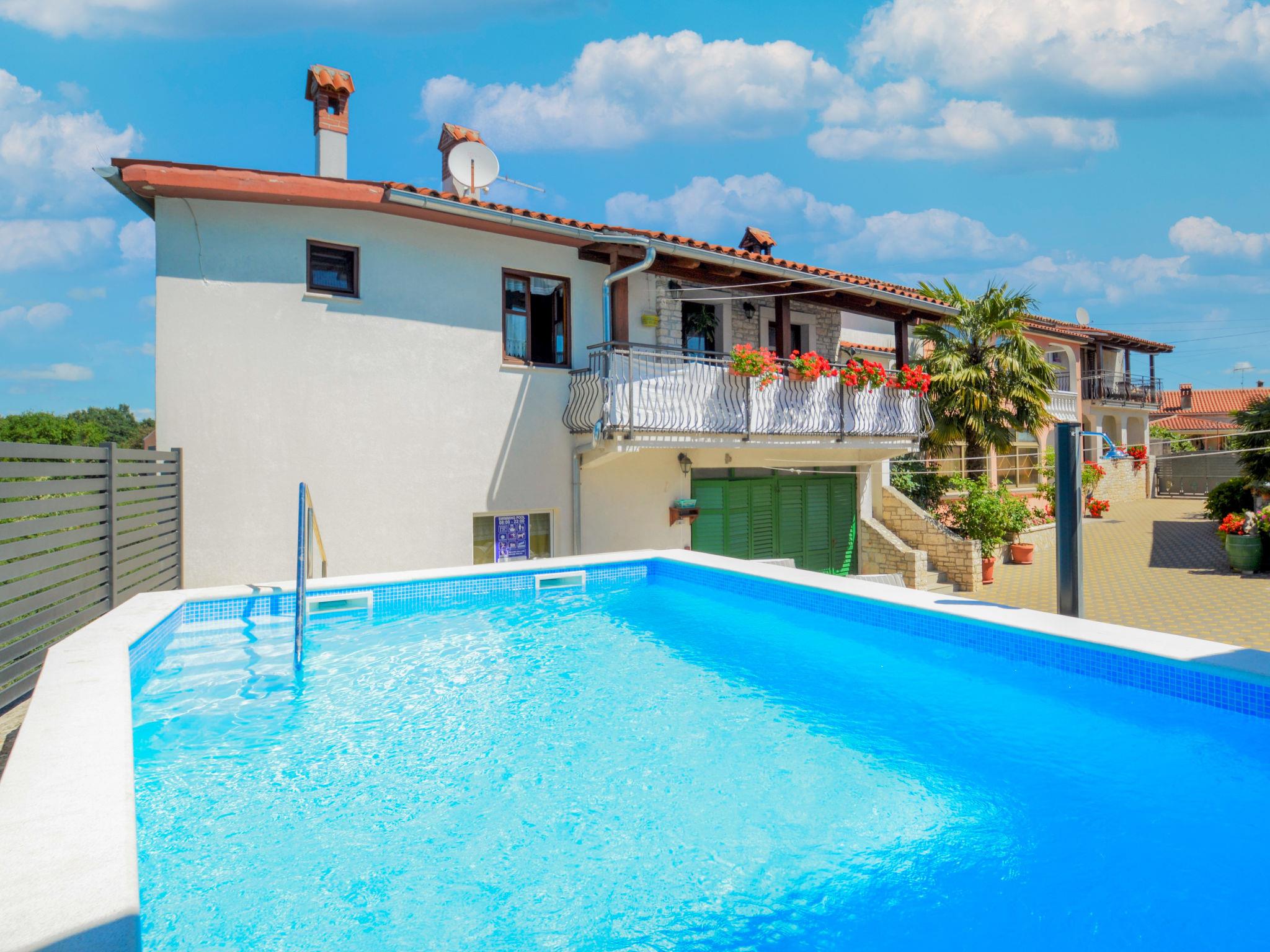 Semi-detached house "Milka 2", 2 storeys. In the hamlet Foli 20 km from the centre of Rovinj, 3 km from the centre of Svetivicenat, 17 km from the sea, in the countryside. For shared use: property 400 m2, garden with plants and trees, swimming pool (7 x 3 m, 24 m2, depth 130 cm, seasonal availability: 01.May. - 28.Oct.). In the house: internet access, washing machine (for shared use). Breakfast possible on request (extra). Parking at the house. Shop 3 km, bus stop 3.3 km, pebble beach 17 km. Please note: Property ref. HR2500.690.1 is situated on the same property.