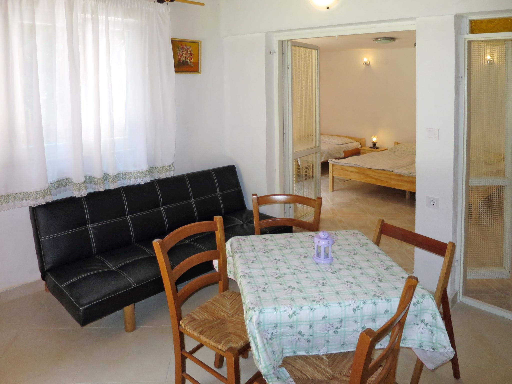 "Pineta", 2-room apartment 30 m2, on the ground floor. Living/dining room with satellite TV. Exit to the terrace. 1 room with 1 bed, 1 double bed and air conditioning. Open kitchen (4 gas rings, toaster, microwave, electric coffee machine). Shower/WC. No heating option. Terrace 15 m2, roofed. Terrace furniture. Facilities: washing machine. Internet (WiFi, free). Please note: non-smokers only. Maximum 2 pets/ dogs allowed.
