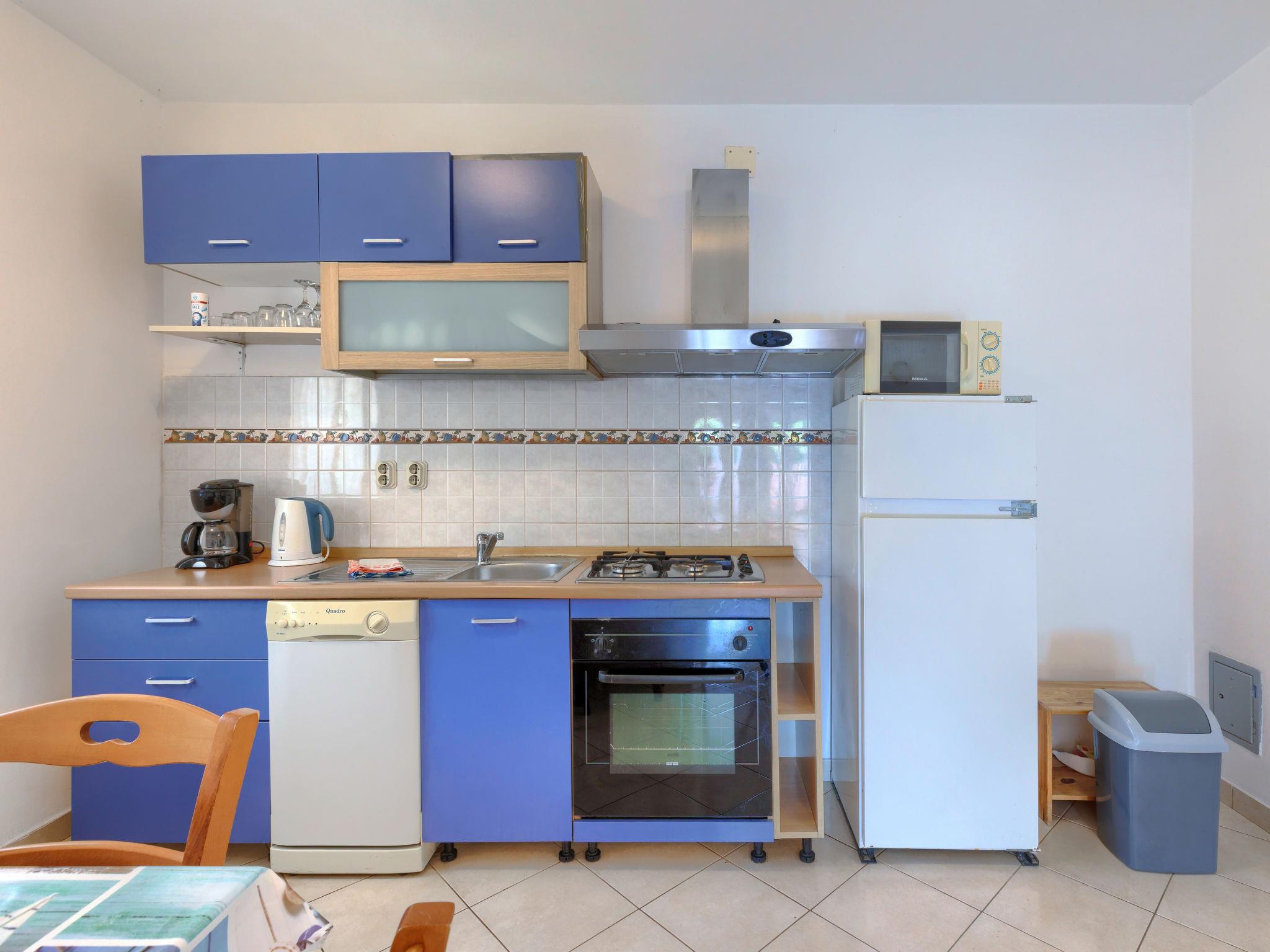 "Romantika", 3-room apartment 70 m2, on the ground floor. Living/dining room with 1 sofabed, satellite TV and air conditioning. Exit to the terrace. 1 room with 1 double bed. Exit to the balcony. 1 room with 1 double bed. Exit to the balcony. Open kitchen (4 hot plates, dishwasher, toaster, kettle, microwave, electric coffee machine) with dining table. 2 showers/WC. No heating option. 2 balconies 3 m2, terrace 14 m2, roofed. Terrace furniture, balcony furniture. Facilities: washing machine, hair dryer. Internet (WiFi, free). Please note: non-smoking house. Maximum 1 pet/ dog allowed. Private entrance.