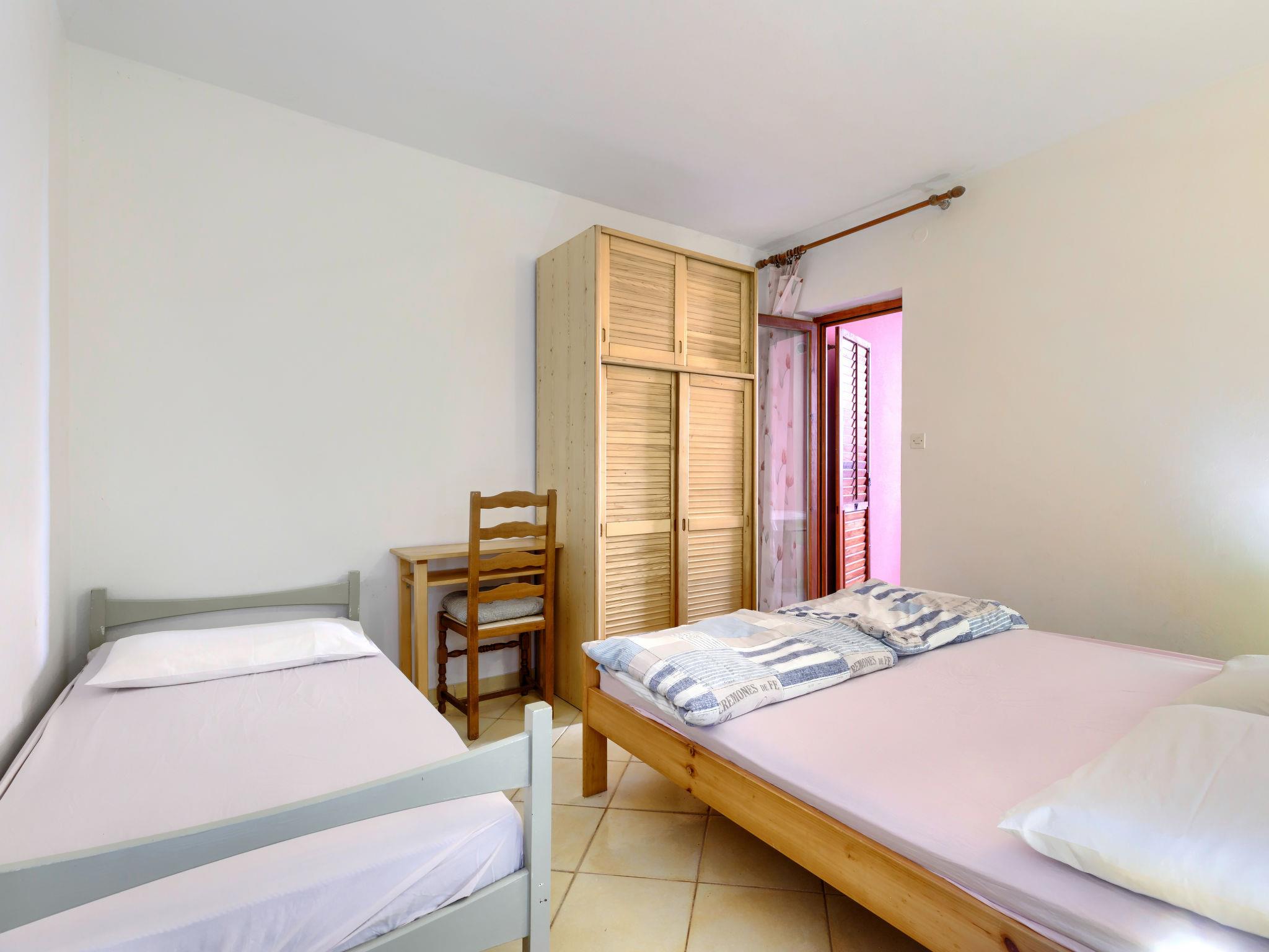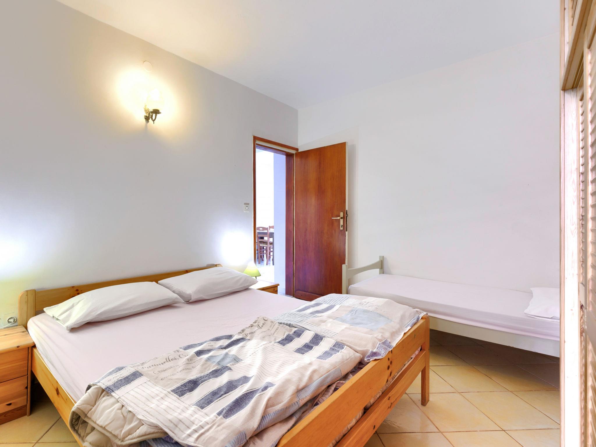 "Romantika", 3-room apartment 60 m2, on the ground floor. Living/dining room with satellite TV and air conditioning. Exit to the balcony. 1 room with 1 double bed. Exit to the balcony. 1 room with 1 bed and 1 double bed. Exit to the balcony. Open kitchen (dishwasher, 4 gas rings, toaster, kettle, microwave, electric coffee machine). Shower/WC. No heating option. Balcony 4 m2. Balcony furniture. Facilities: washing machine, hair dryer. Internet (WiFi, free). Please note: non-smoking house. Maximum 1 pet/ dog allowed.