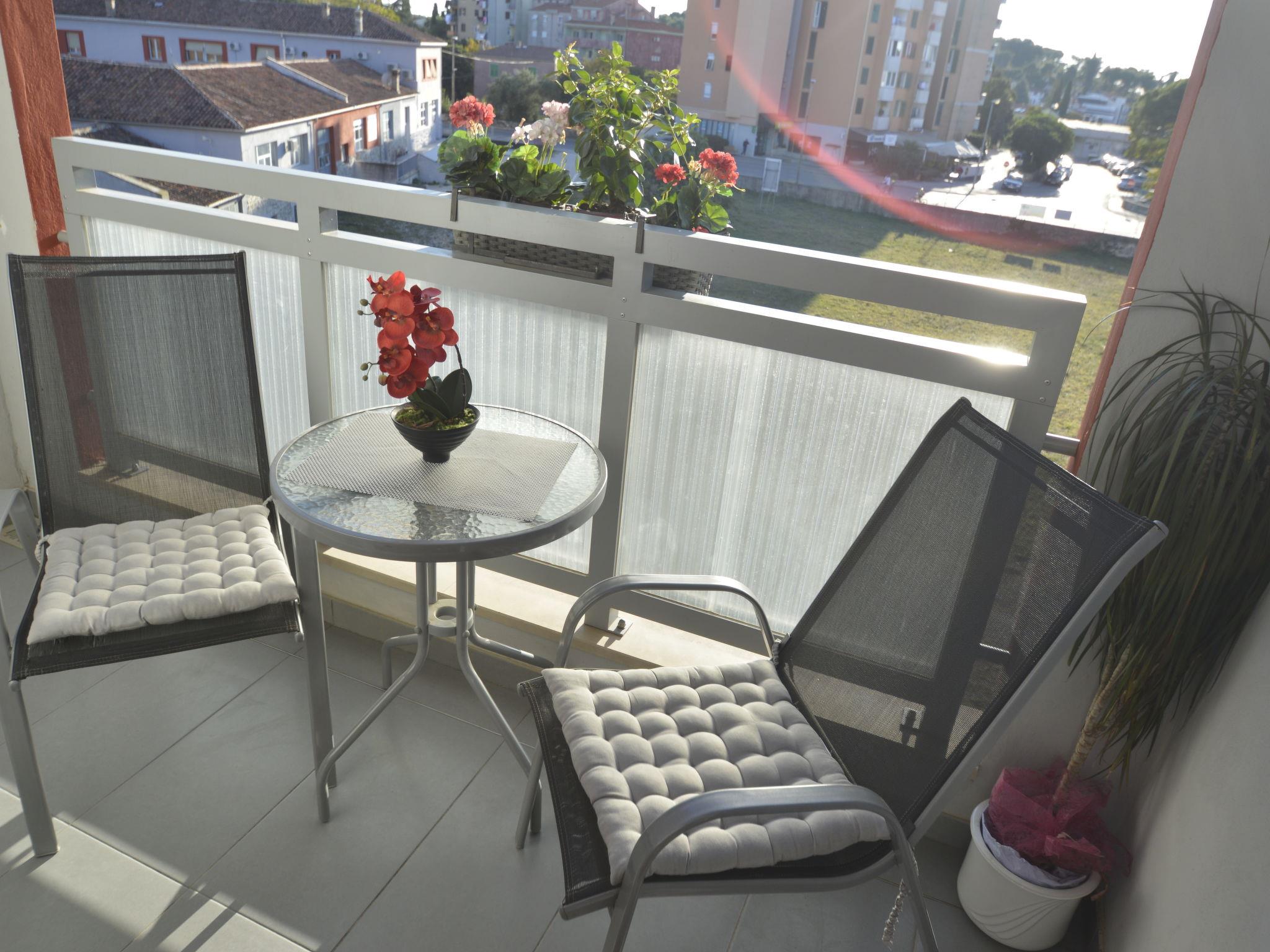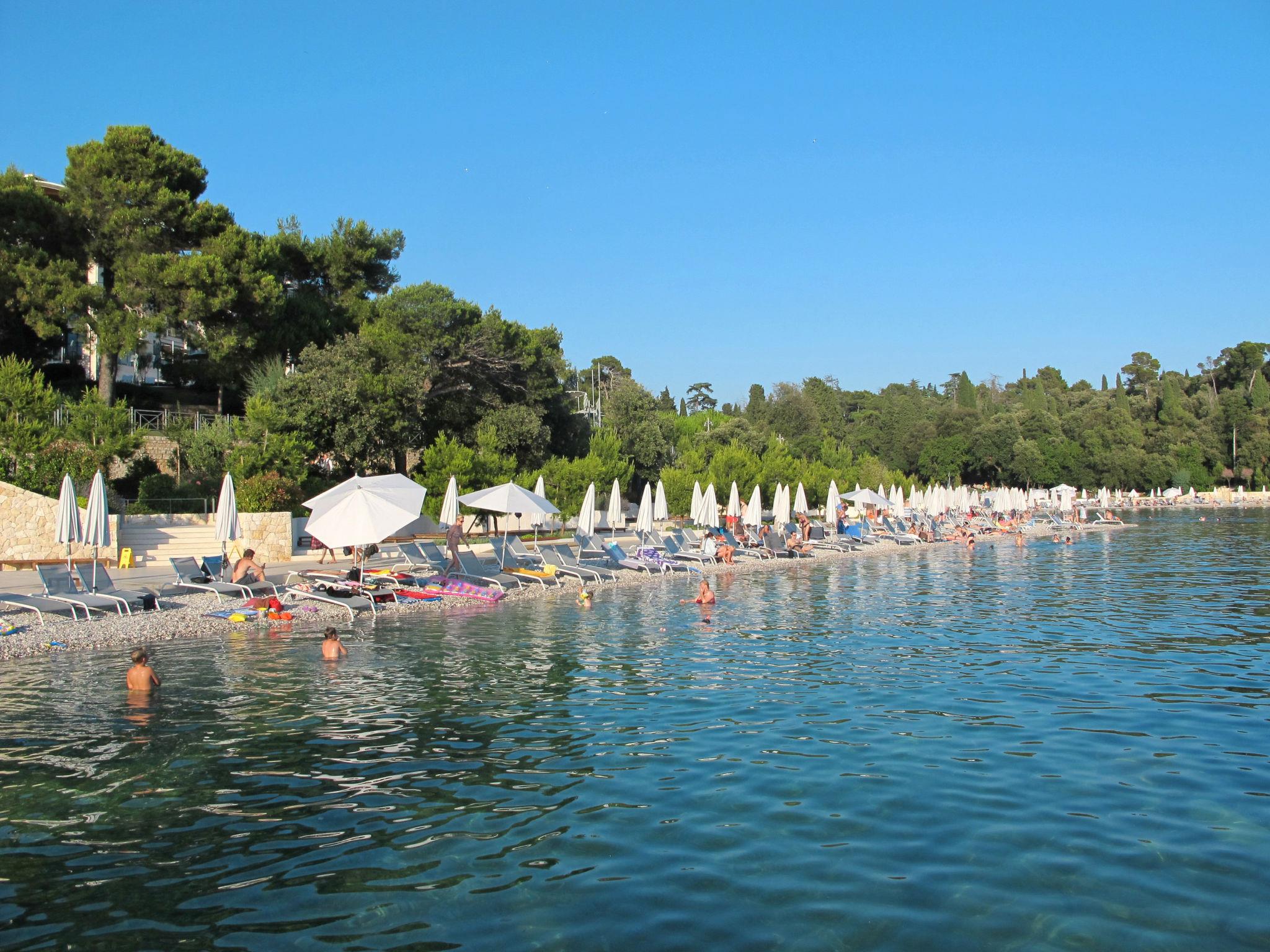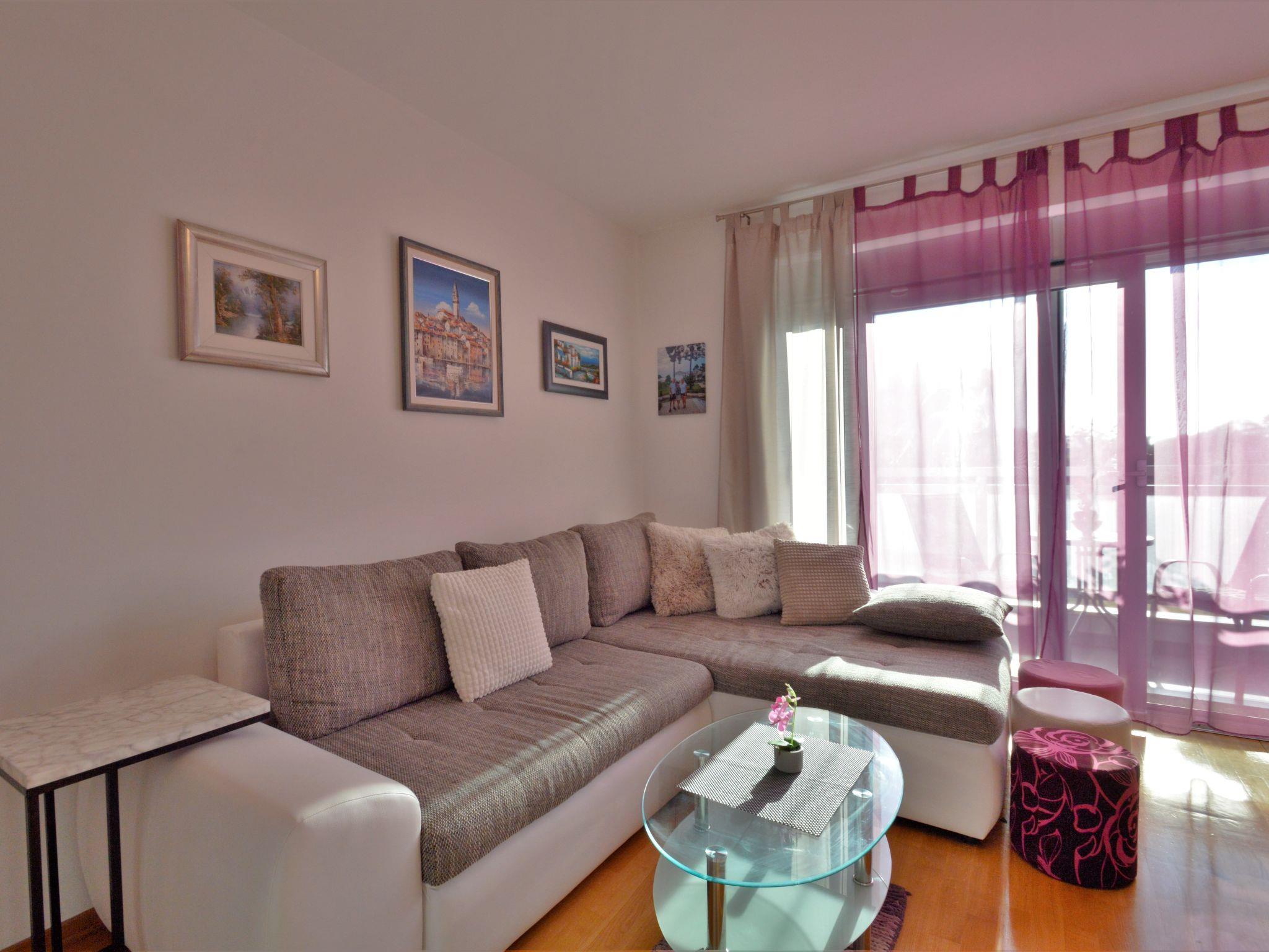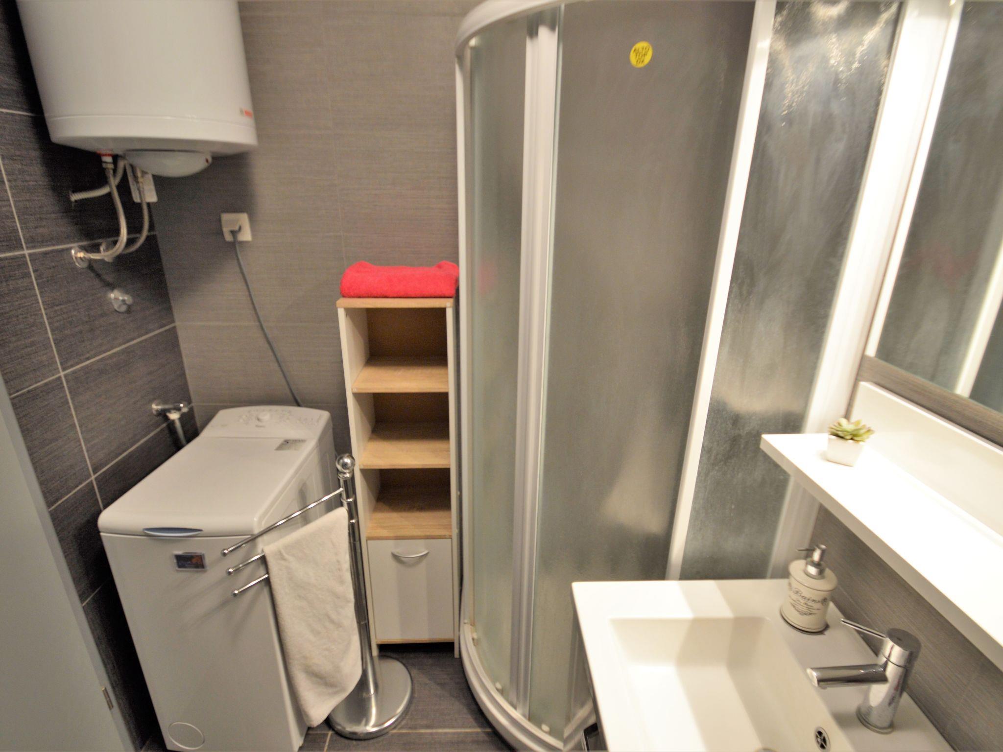 "Pinezic", 2-room apartment 45 m2 on 3rd floor. Living/dining room with 1 double sofabed (135 cm, length 200 cm), satellite TV and air conditioning. Exit to the balcony. 1 room with 1 double bed and air conditioning. Open kitchen (oven, dishwasher, 4 ceramic glass hob hotplates, toaster, kettle, microwave, freezer, electric coffee machine). Shower/WC. No heating option. Balcony 3 m2. Balcony furniture. Facilities: washing machine, iron. Internet (WiFi, free). Please note: non-smoking house.