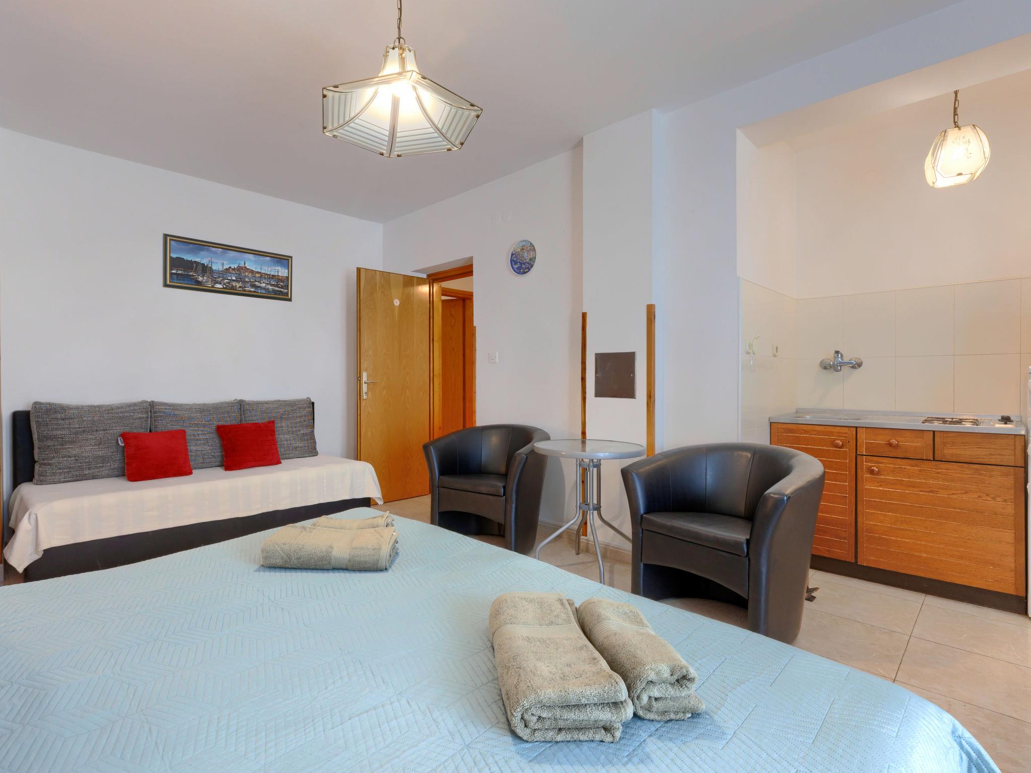 Apartment block "Alba". 1.5 km from the centre of Rovinj, 450 m from the sea, 450 m from the beach. For shared use: property 300 m2. In the house: internet access. Parking at the house. Shop 150 m, restaurant 2 km, bus stop 1.3 km, pebble beach 450 m. Tennis 600 m.