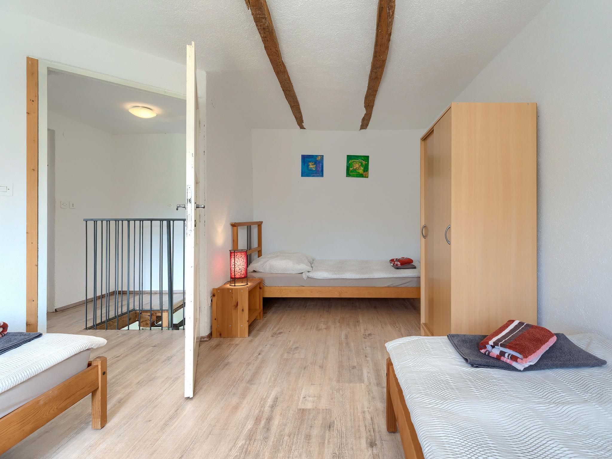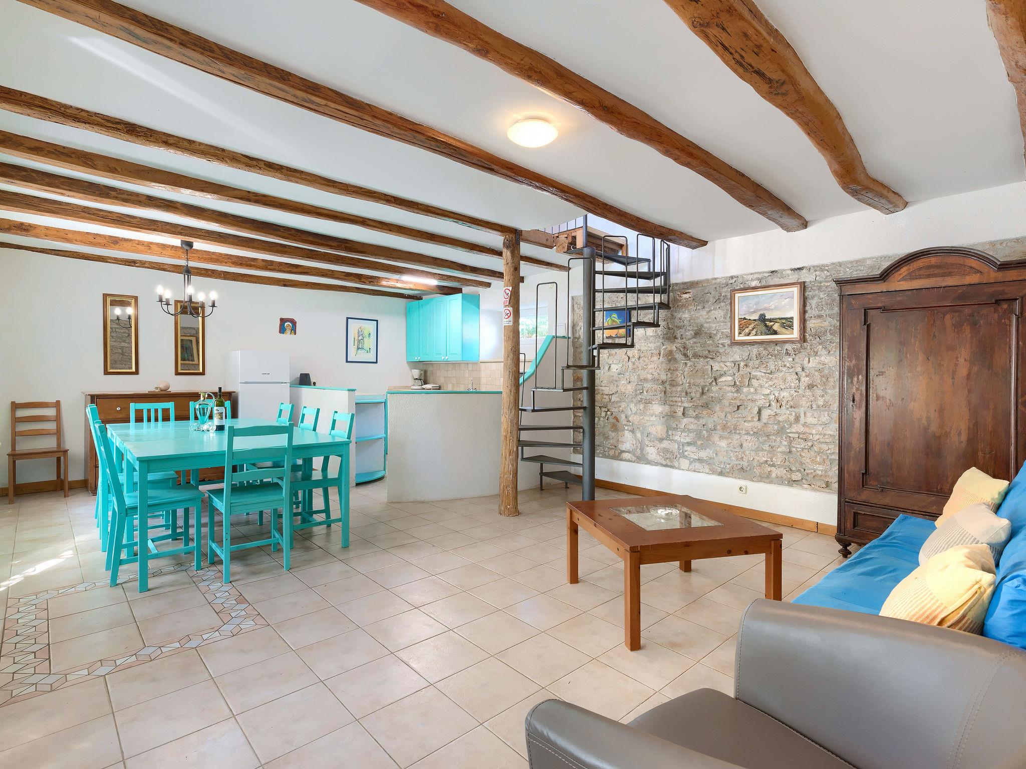 6-room house 125 m2 on 2 levels. Living/dining room. Living room with satellite TV. Open kitchen (1 hot plate, oven, dishwasher, 3 gas rings, toaster, kettle, microwave, electric coffee machine) with dining table, dining table. Exit to the terrace. Shower/WC. Upper floor: (spiral staircase), 1 room with 1 double bed. 1 room with 3 beds. (exterior staircase), 1 room with 1 double bed. Exit to the balcony. 1 room with 3 beds. 2 showers/WC. No heating option. Balcony, terrace 15 m2. Terrace furniture. Facilities: washing machine, dryer. Internet (WiFi, free). Please note: non-smoking house. Maximum 2 pets/ dogs allowed.