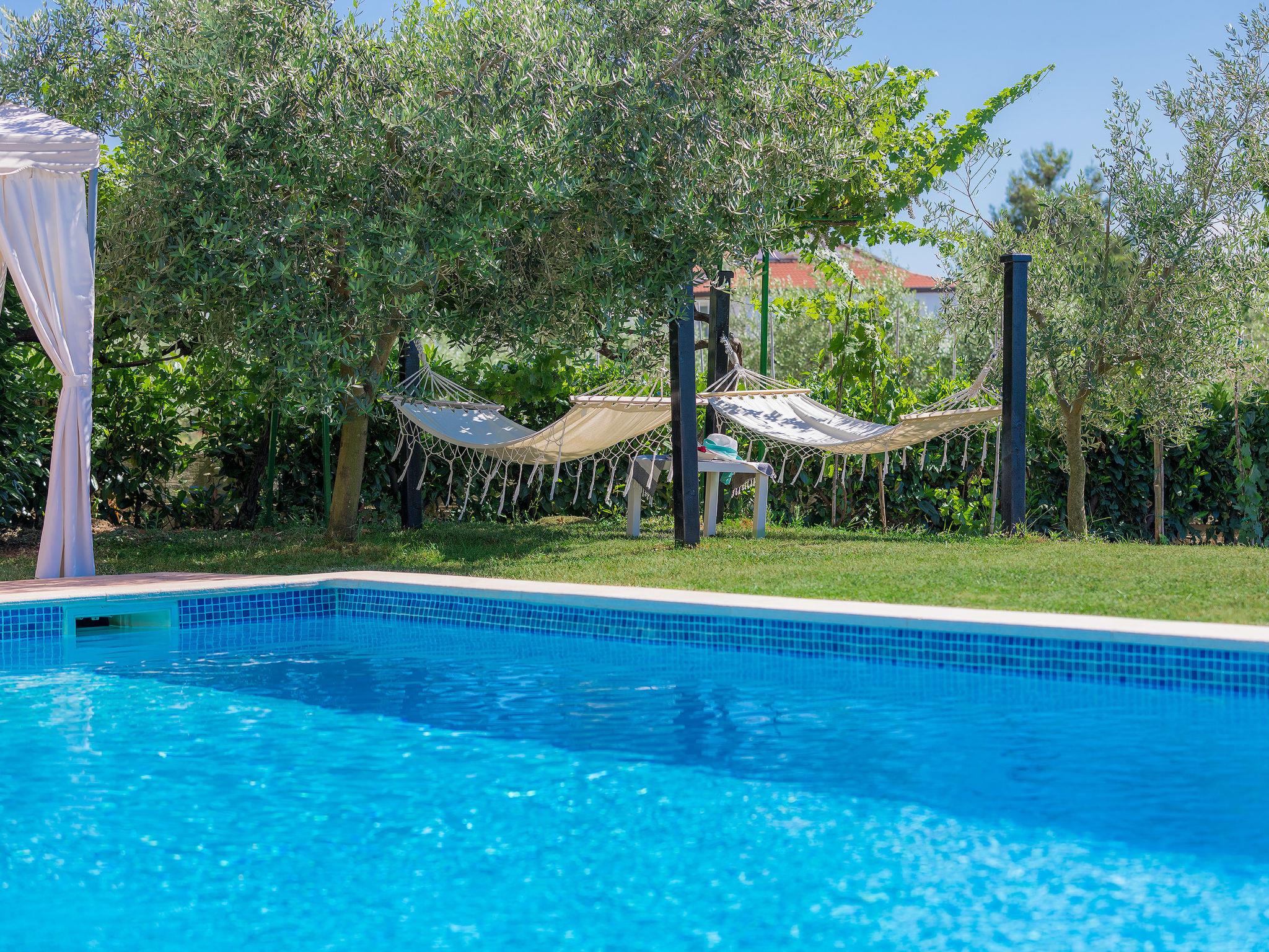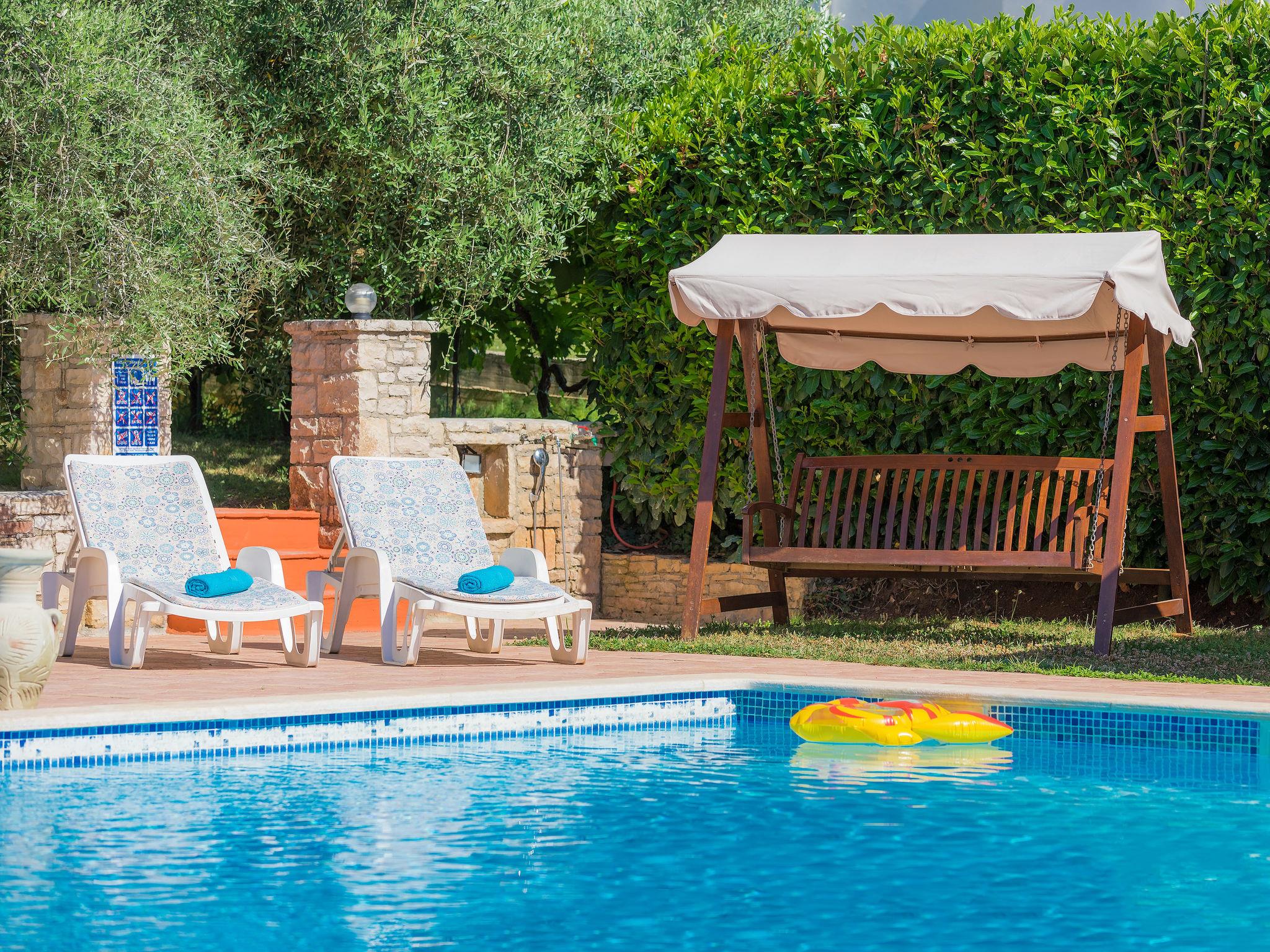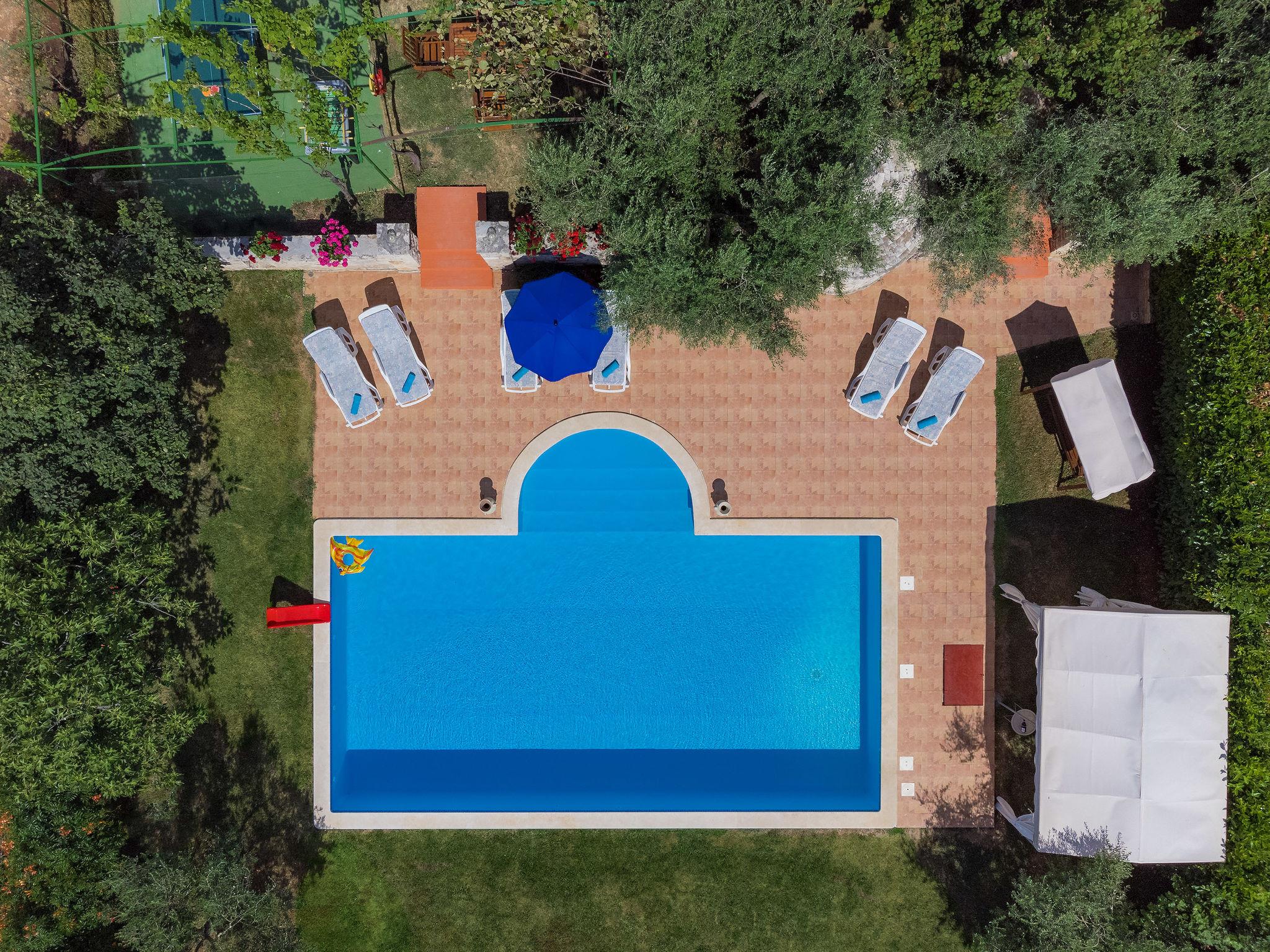 Apartment house "Ivan & Tina". 500 m from the centre of Kanfanar, 17 km from the centre of Rovinj, 17 km from the sea. For shared use: property 3'000 m2 with lawn and trees, swimming pool angular (10 x 5 m, depth 135 cm, seasonal availability: 23.May. - 26.Sep.) with internal staircase. Outdoor shower, table tennis, boccia, volleyball, badminton, arbour, terrace, garden furniture, barbecue (slide, swing, sandbox). In the house: internet access, table football, trampoline, storage room for bicycles. Parking on the premises. Shop 400 m, bus stop 600 m, pebble beach 17 km. Nearby attractions: Lim valley 6 km. The owner offers boat rental, fishing excursions and boat trips (extra charge, arrangements on the spot).