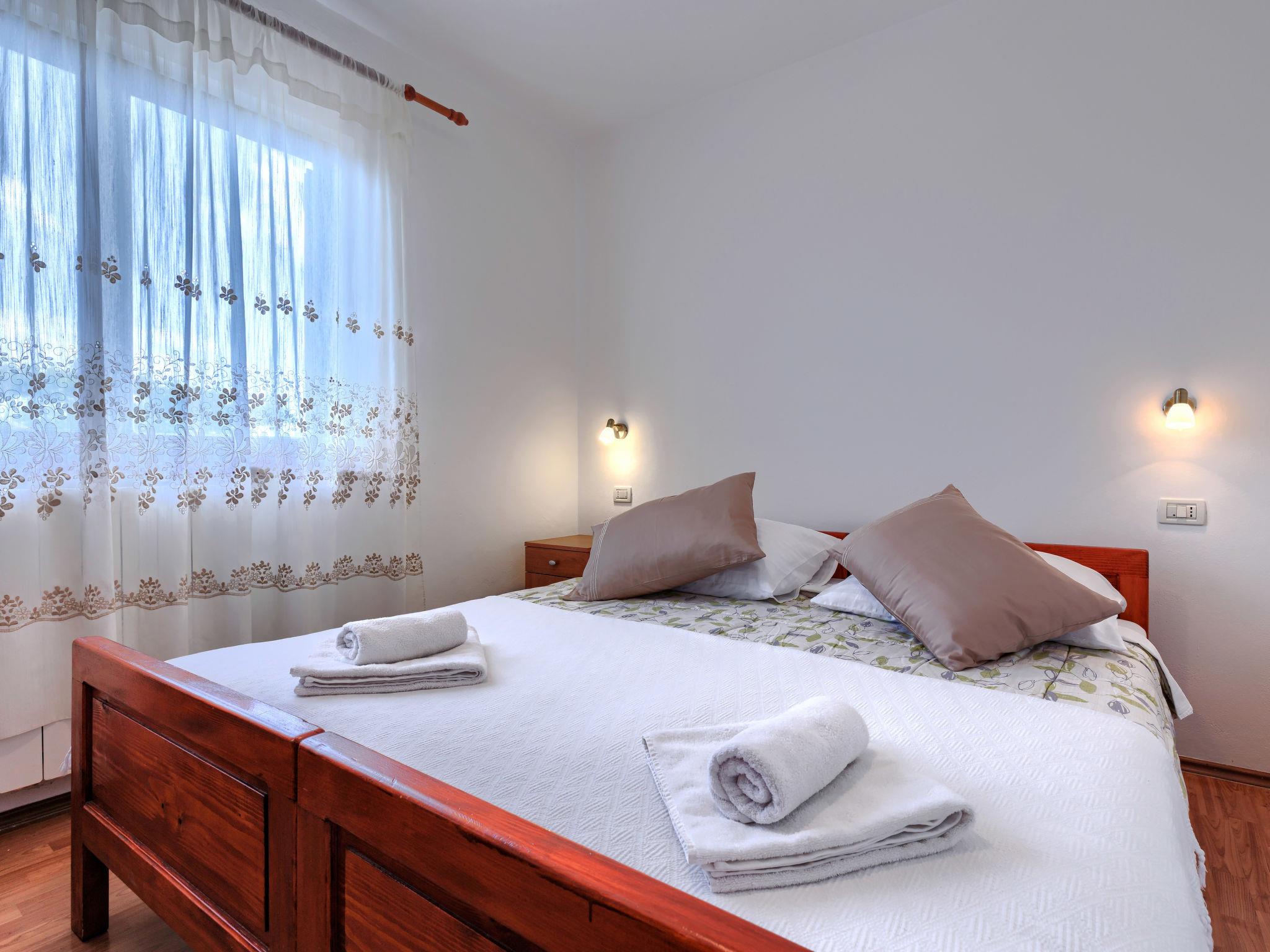 "Ivan & Tina", 3-room apartment 53 m2, on the ground floor. Living/dining room with 1 sofabed and satellite TV. Exit to the terrace. Entrance hall with air conditioning. 1 room with 2 beds. 1 room with 1 double bed. Open kitchen (4 hot plates, oven, toaster, kettle, electric coffee machine). Shower/bidet/WC. Forced-air heating. Terrace 35 m2. Terrace furniture. Facilities: washing machine. Internet (WiFi, free). Please note: non-smoking house. Private entrance.