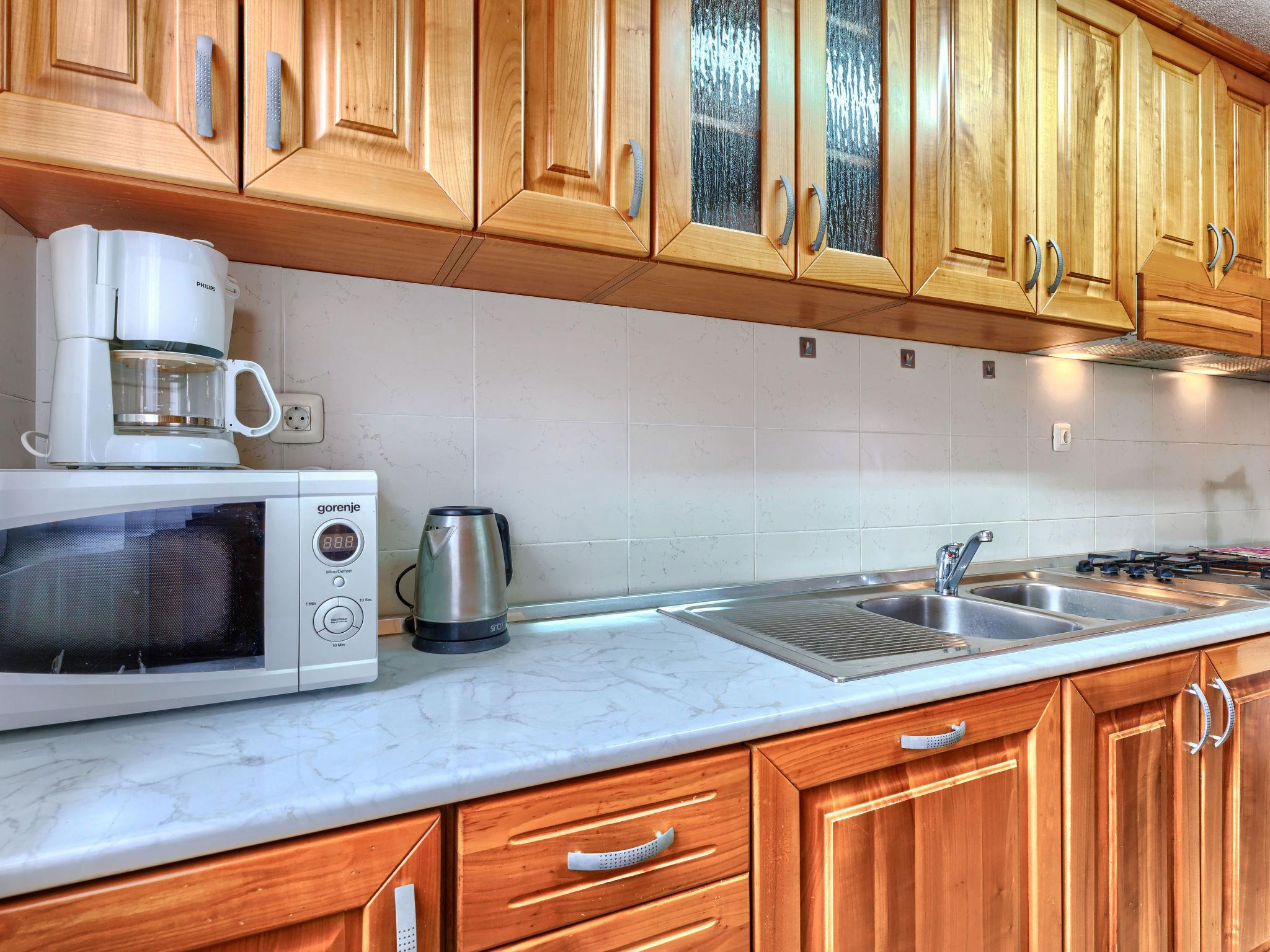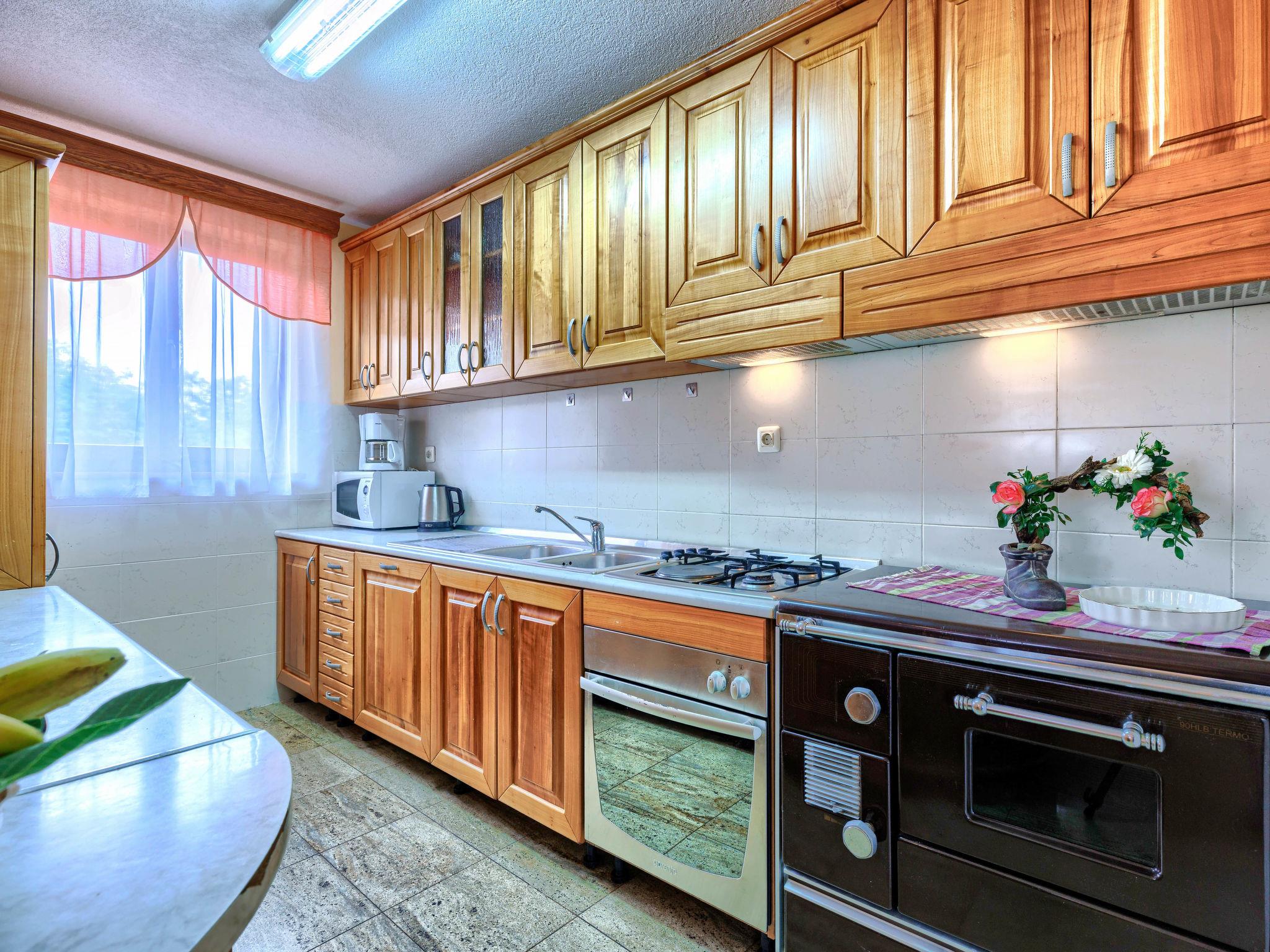 8-room terraced house 185 m2 on 2 levels. Living/dining room with satellite TV and air conditioning. Exit to the terrace. 2 rooms, each room with 1 double bed. Open kitchen (4 hot plates, oven, dishwasher, toaster, kettle, microwave, electric coffee machine). 2 showers/WC. Upper floor: living/dining room with satellite TV and air conditioning. Exit to the balcony. Living room. 2 rooms, each room with 1 double bed. 1 room with 2 beds and 1 double bed. Open kitchen (4 hot plates, oven, dishwasher, toaster, kettle, microwave, freezer). 2 showers/WC, sep. WC. Gas heating. 2 terraces covered. Terrace furniture, deck chairs. Facilities: washing machine, children's high chair, baby cot. Internet (WiFi, free). Please note: non-smoking house. Maximum 3 pets/ dogs allowed. Private entrance. No internal connecting door between the separated properties. The unit consists of a terraced house and an apartment on the first floor rented as one unit. Terraced house with living / dining room, open kitchen, 2 bedrooms on the ground floor and 1 bedroom on the first floor. Apartment on the first floor with living / dining area, open kitchen and 2 bedrooms. When there are less than the maximum number of guests staying at the property, not all of the housing units will be available for use.