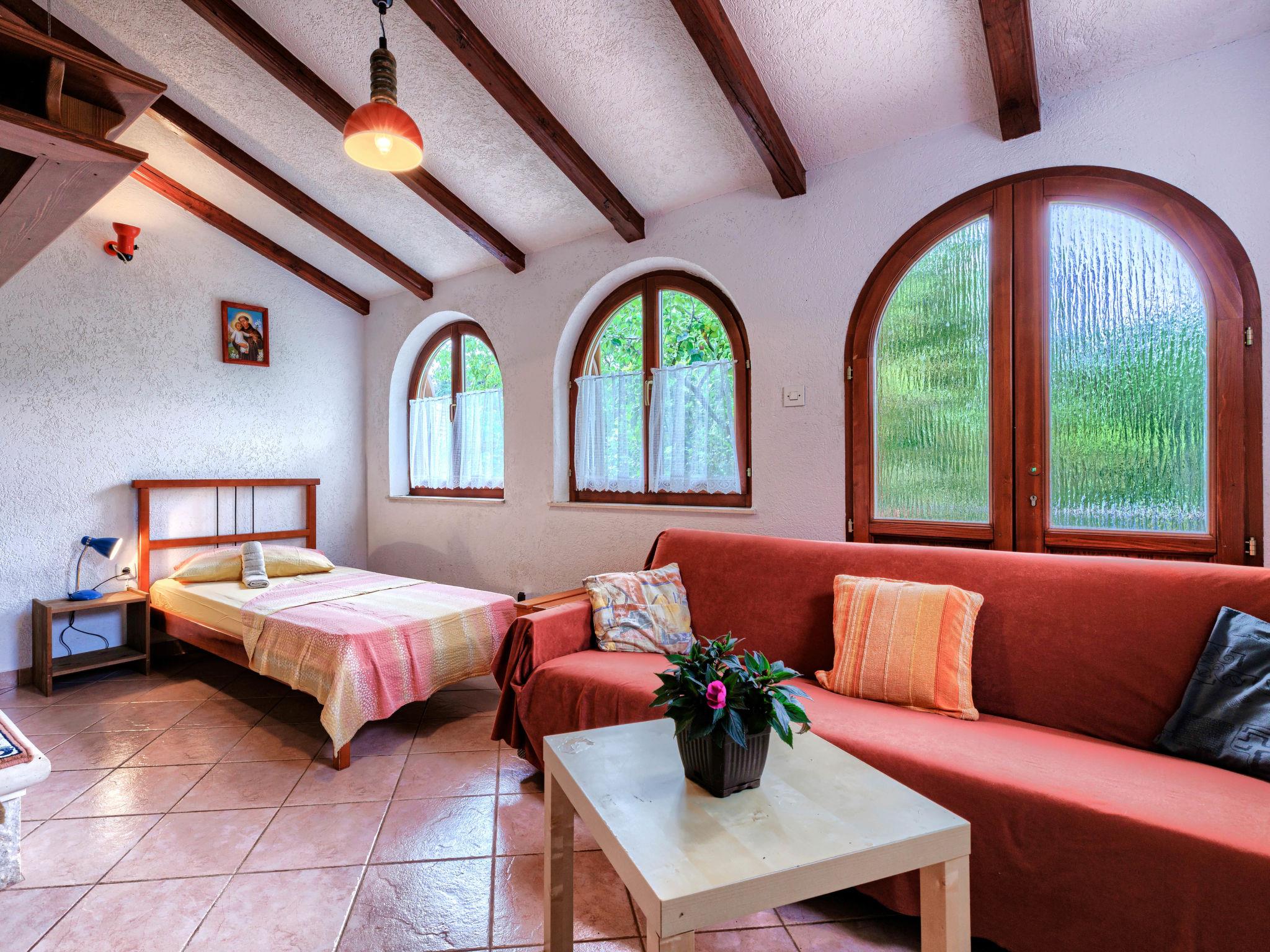 Terraced house "Edi", 2 storeys. 25 km from the centre of Rovinj, 1.4 km from the centre of Žminj, in a secluded position, 20 km from the sea, in the countryside. For shared use: property 1'500 m2 with trees. Private: swimming pool (10 x 5 m, depth 120 cm, seasonal availability: 15.May. - 07.Oct.). Outdoor shower, terrace, barbecue. In the house: internet access, washing machine. Parking on the premises. Shop 1.4 km, restaurant 1.4 km, bus stop 1.6 km, pebble beach 25 km. Marina 25 km, tennis 1 km, riding stable 3 km. Please note: Property ref. HR2500.714.1 is situated on the same property.