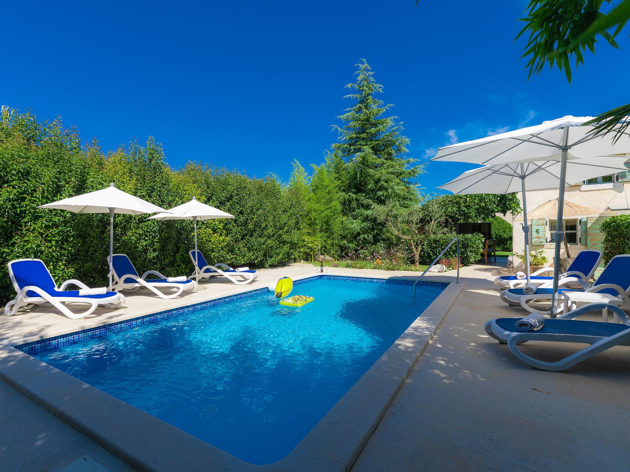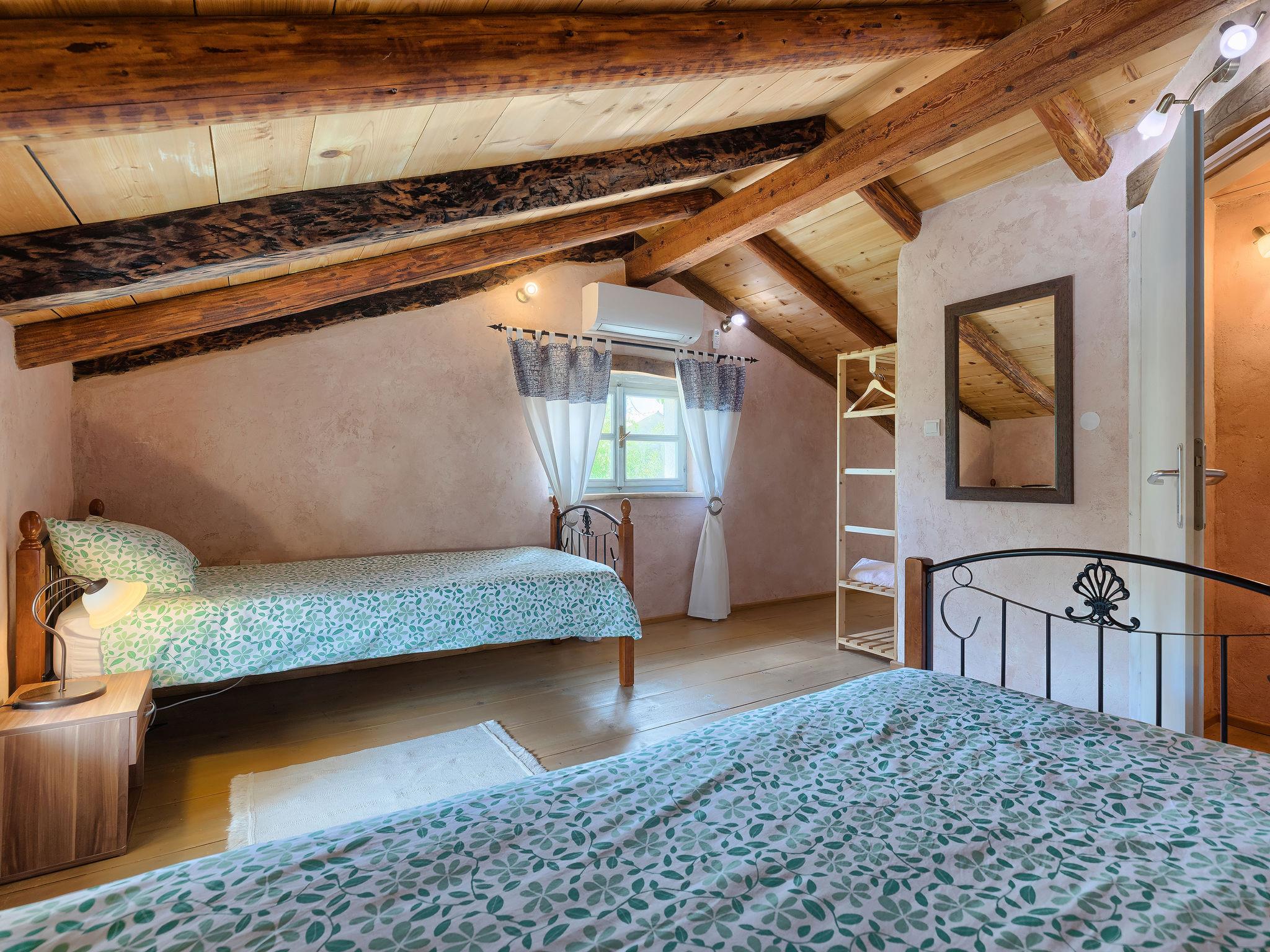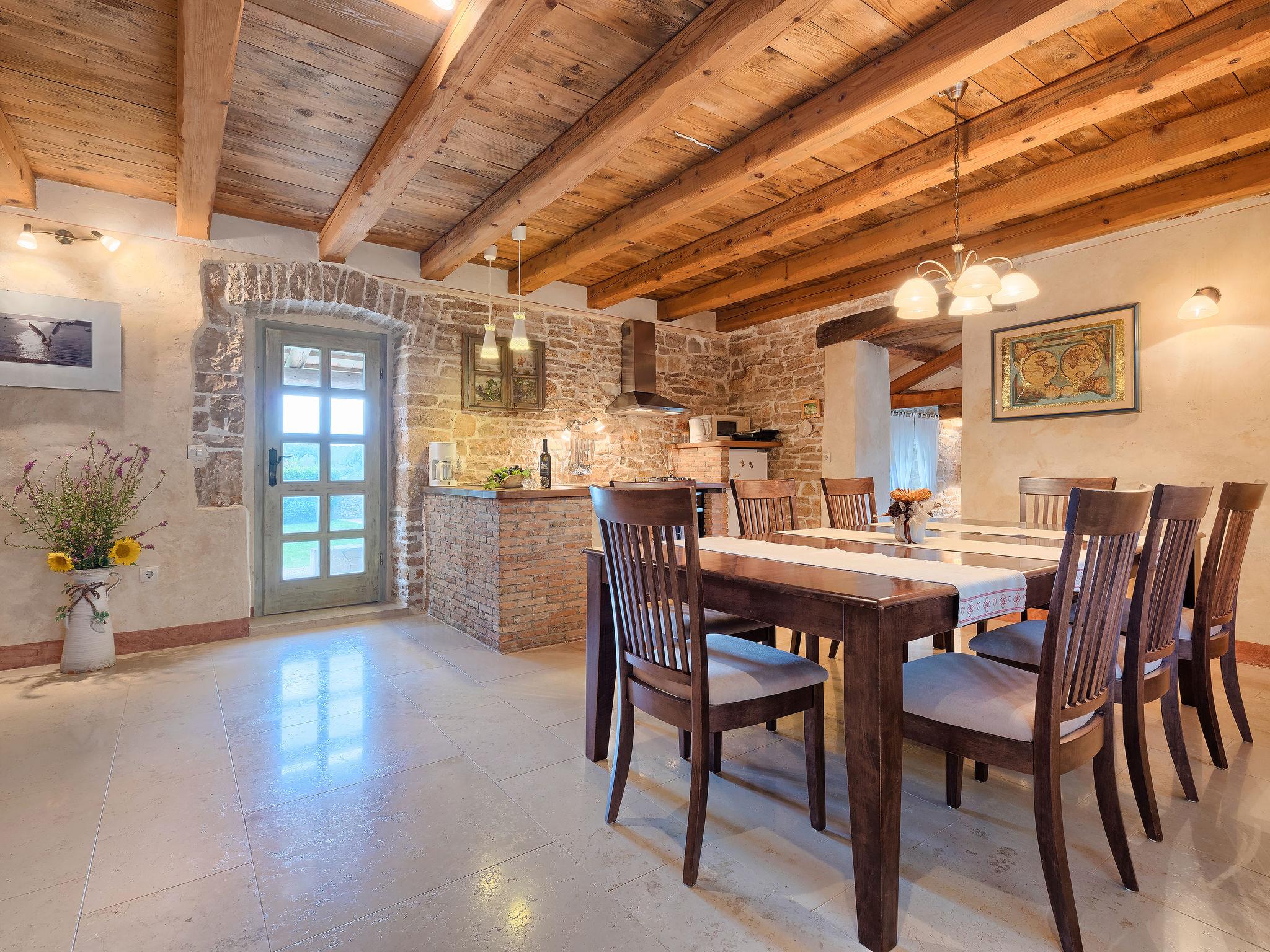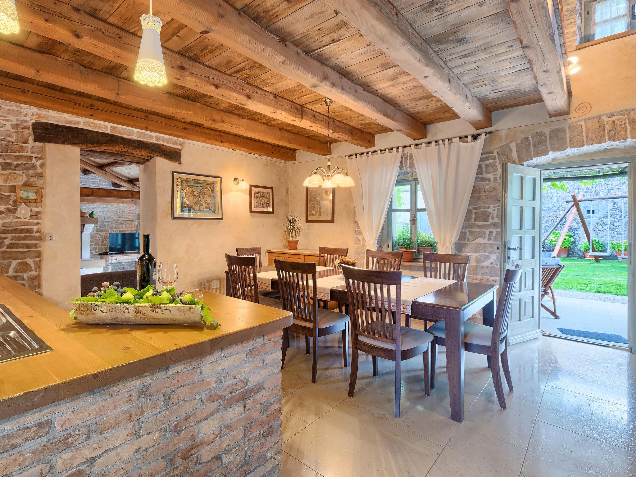 Single-family house "Hrelja". 5 km from the centre of Zminj, 15 km from the centre of Pazin, 25 km from the centre of Rovinj, 25 km from the sea. Private: property 1'800 m2 (fenced) with lawn and trees, swimming pool (7 x 3 m, 24 m2, depth 135 cm, seasonal availability: 01.May. - 05.Nov.). Outdoor shower, table tennis, volleyball, volleyball court, terrace (15 m2), garden furniture, barbecue (swing). In the house: bicycles available. Parking (for 2 cars) on the premises. Shop 1 km, supermarket 6 km, bus stop 6.4 km, rocky beach 25 km. Marina 30 km.