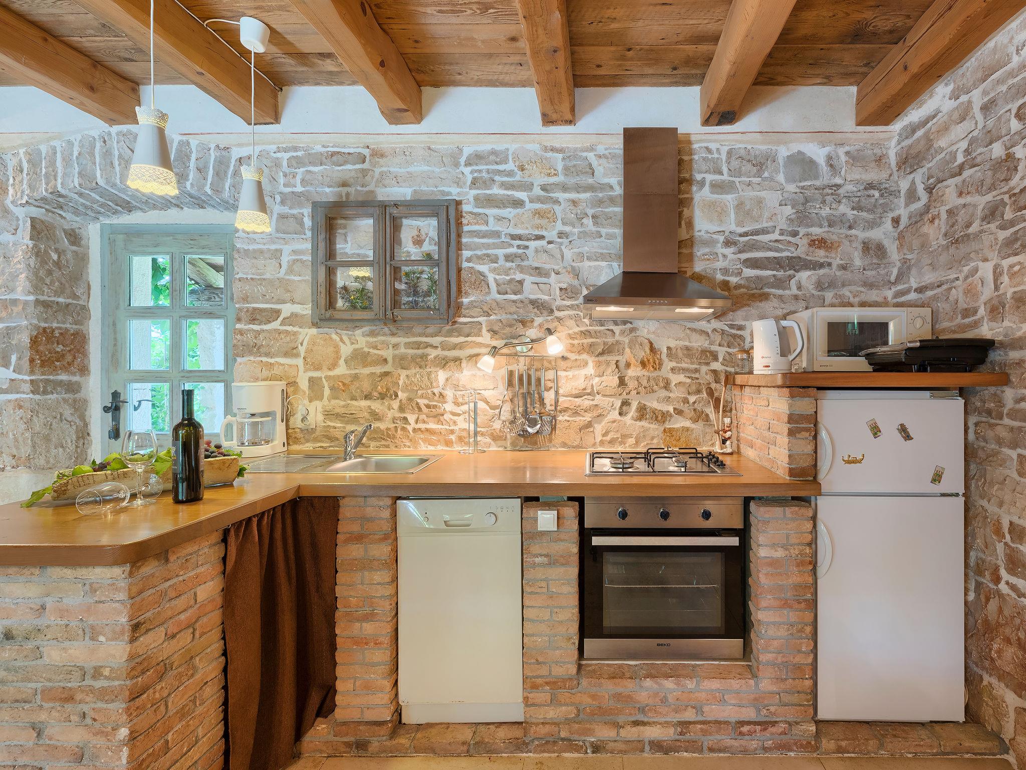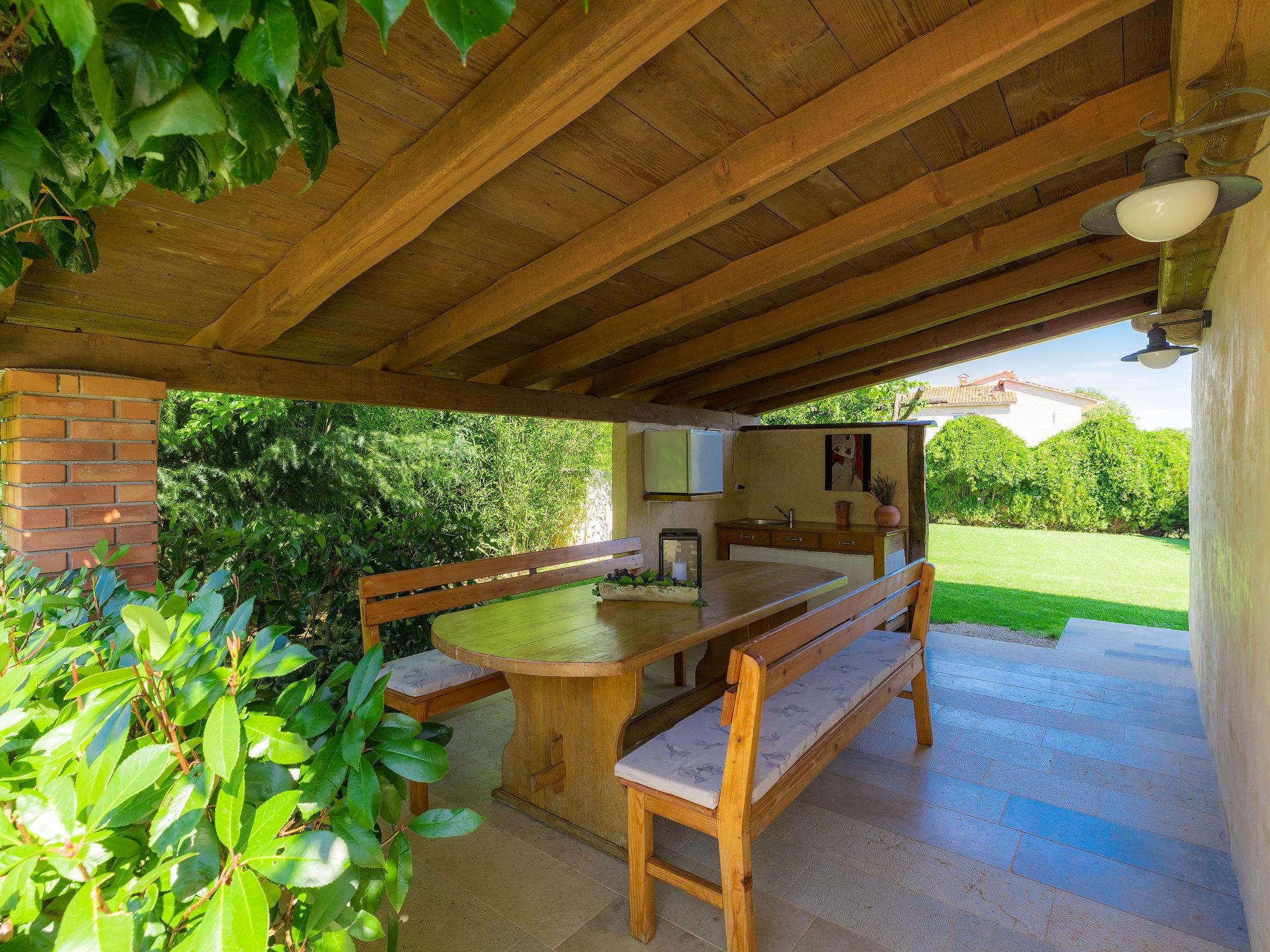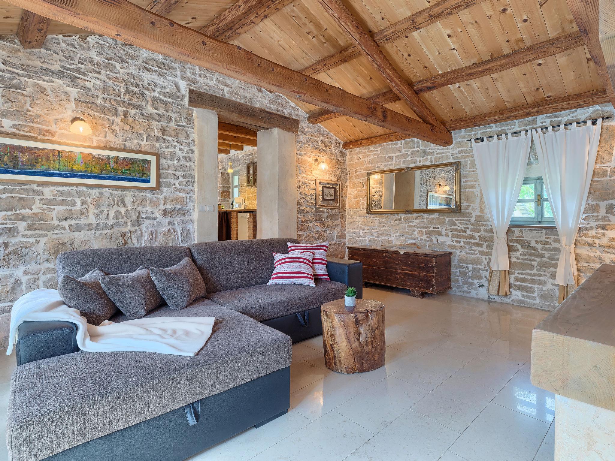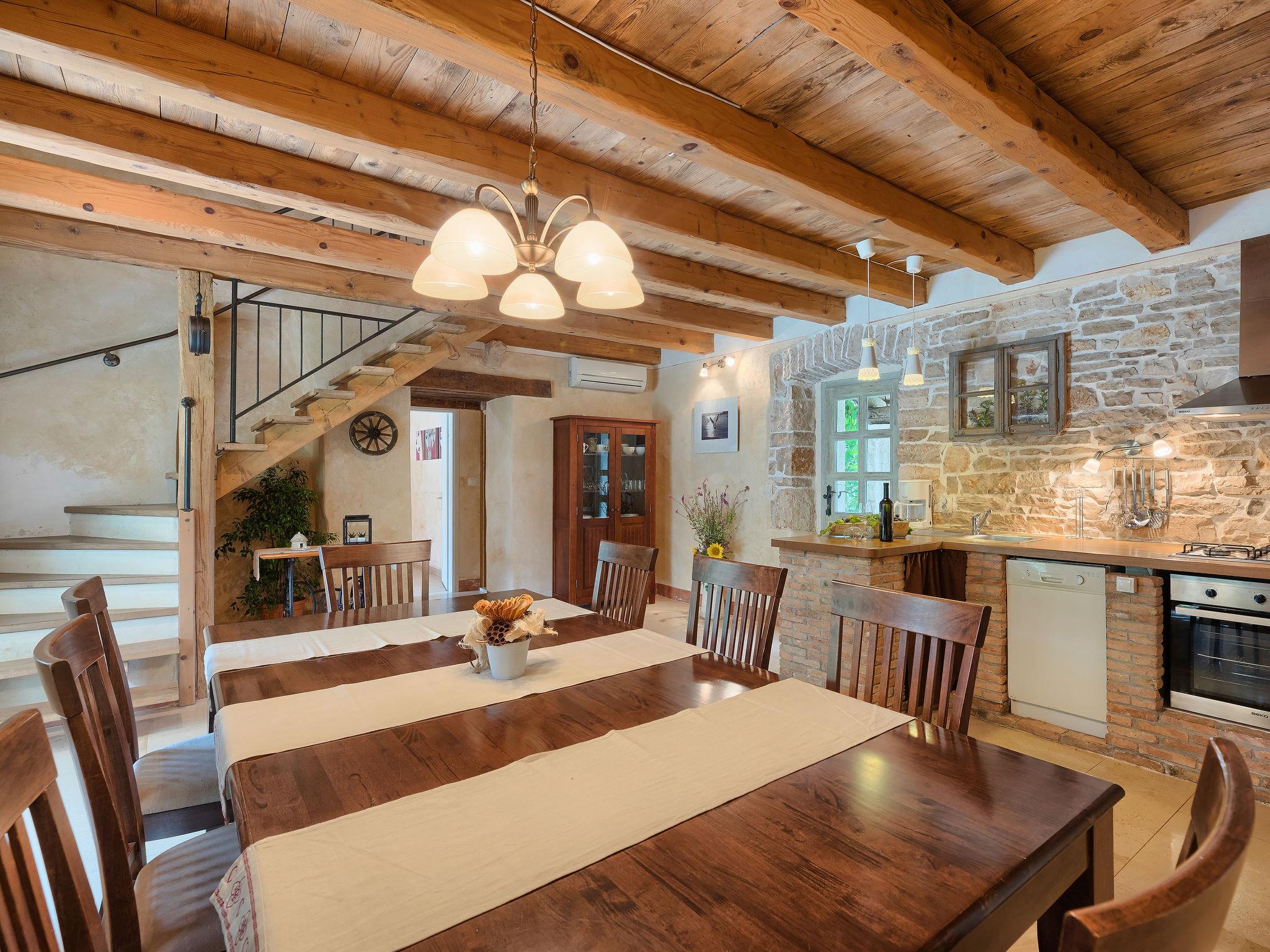 Single-family house "Hrelja". 5 km from the centre of Zminj, 15 km from the centre of Pazin, 25 km from the centre of Rovinj, 25 km from the sea. Private: property 1'800 m2 (fenced) with lawn and trees, swimming pool (7 x 3 m, 24 m2, depth 135 cm, seasonal availability: 01.May. - 05.Nov.). Outdoor shower, table tennis, volleyball, volleyball court, terrace (15 m2), garden furniture, barbecue (swing). In the house: bicycles available. Parking (for 2 cars) on the premises. Shop 1 km, supermarket 6 km, bus stop 6.4 km, rocky beach 25 km. Marina 30 km.