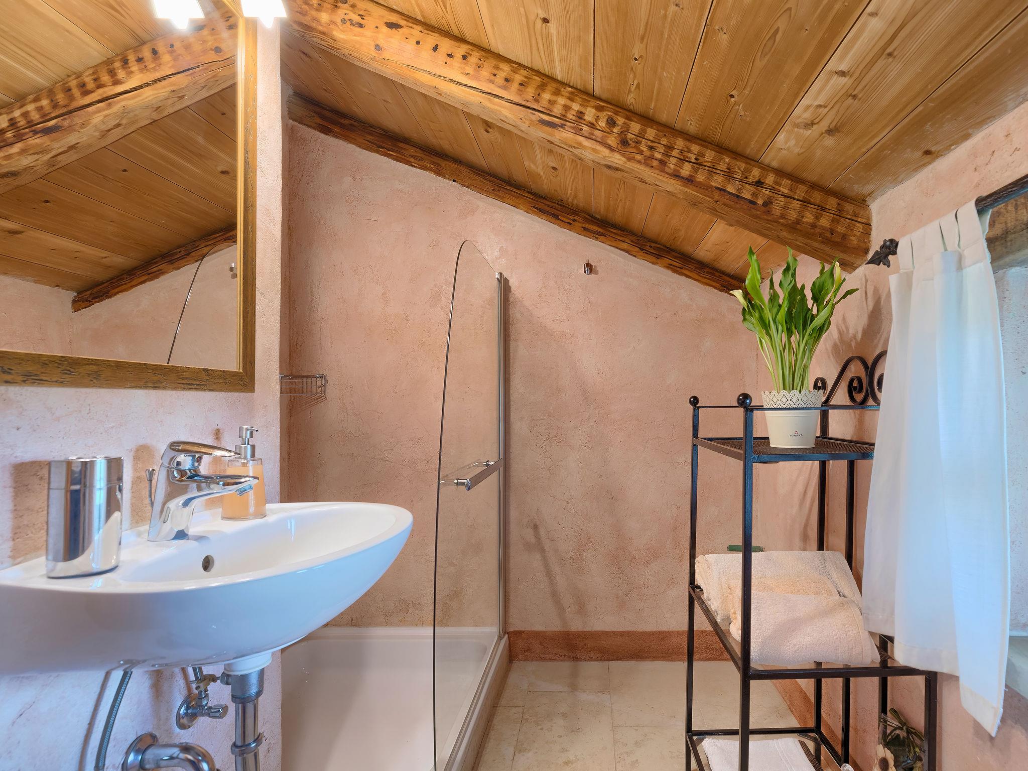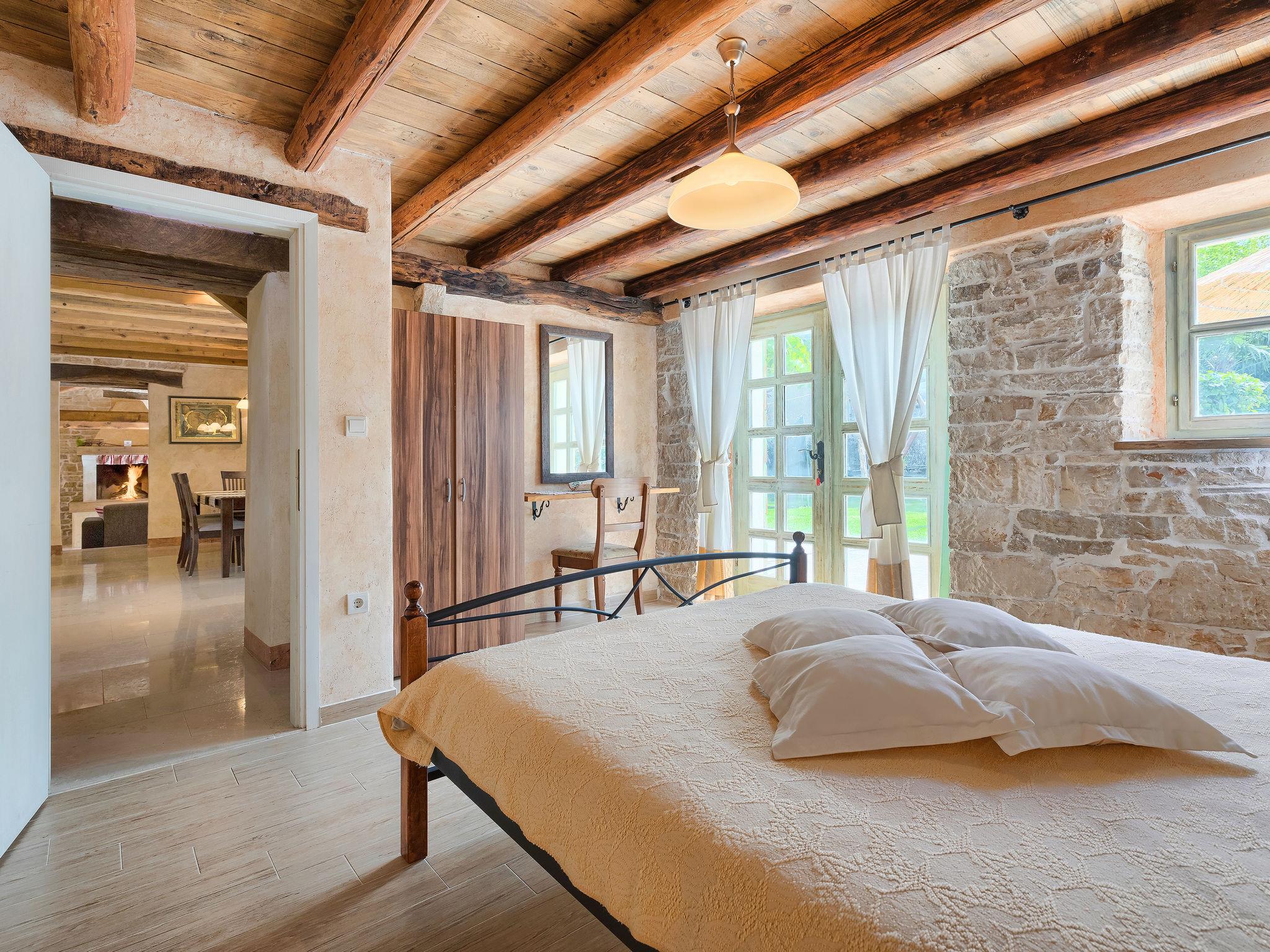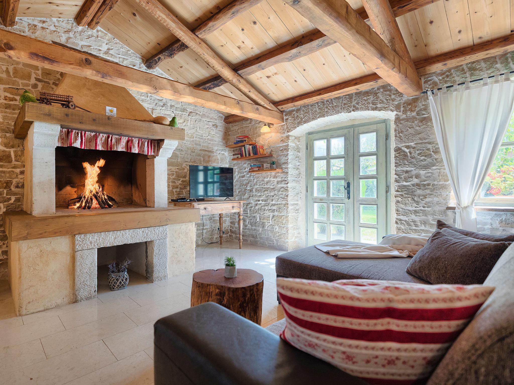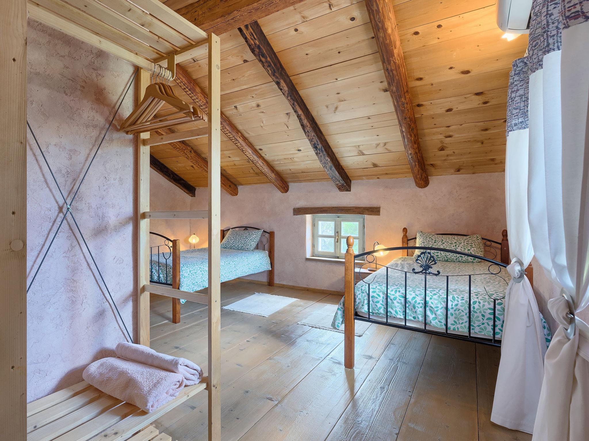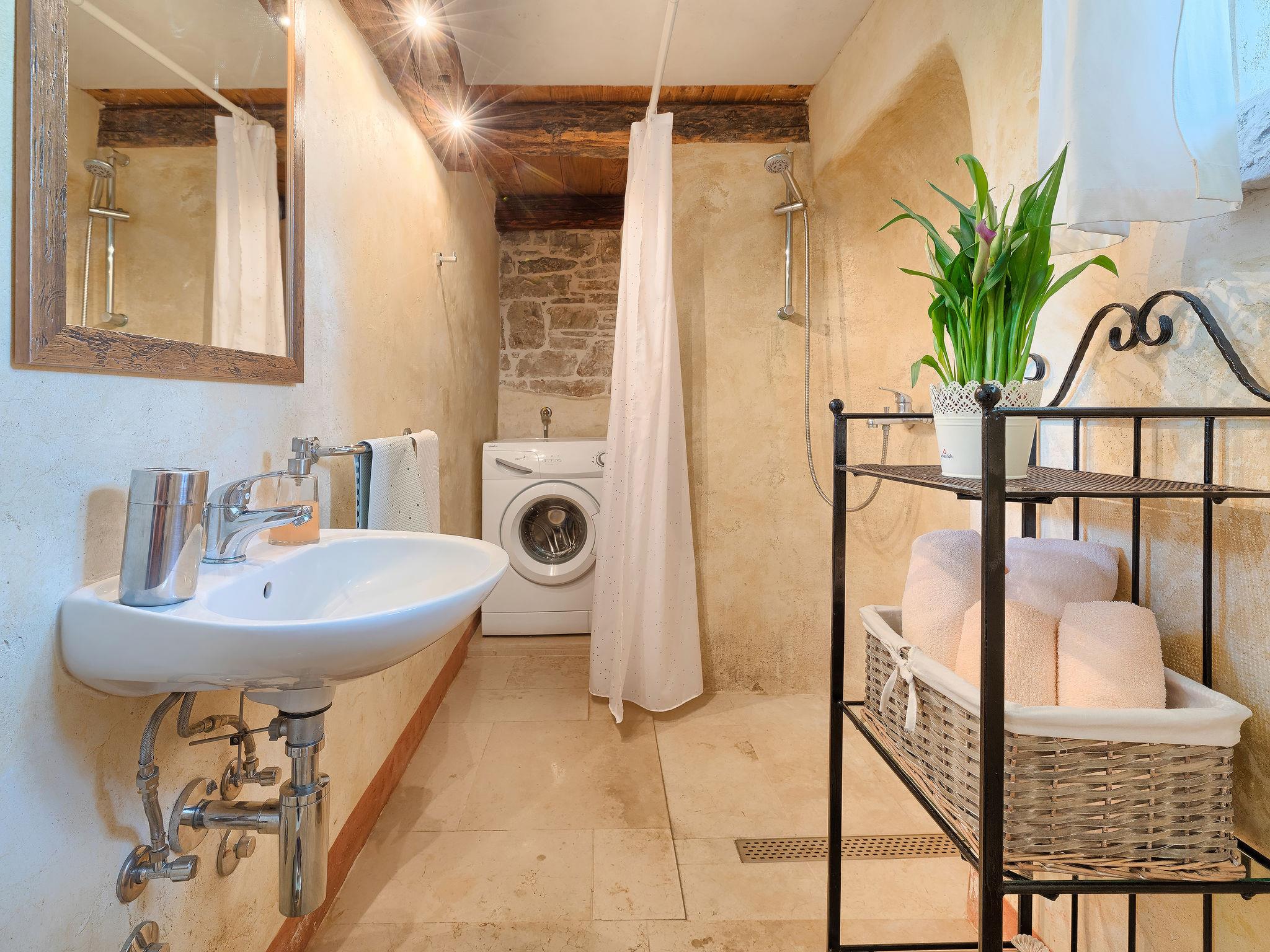Single-family house "Hrelja". 5 km from the centre of Zminj, 15 km from the centre of Pazin, 25 km from the centre of Rovinj, 25 km from the sea. Private: property 1'800 m2 (fenced) with lawn and trees, swimming pool (7 x 3 m, 24 m2, depth 135 cm, seasonal availability: 01.May. - 05.Nov.). Outdoor shower, table tennis, volleyball, volleyball court, terrace (15 m2), garden furniture, barbecue (swing). In the house: bicycles available. Parking (for 2 cars) on the premises. Shop 1 km, supermarket 6 km, bus stop 6.4 km, rocky beach 25 km. Marina 30 km.