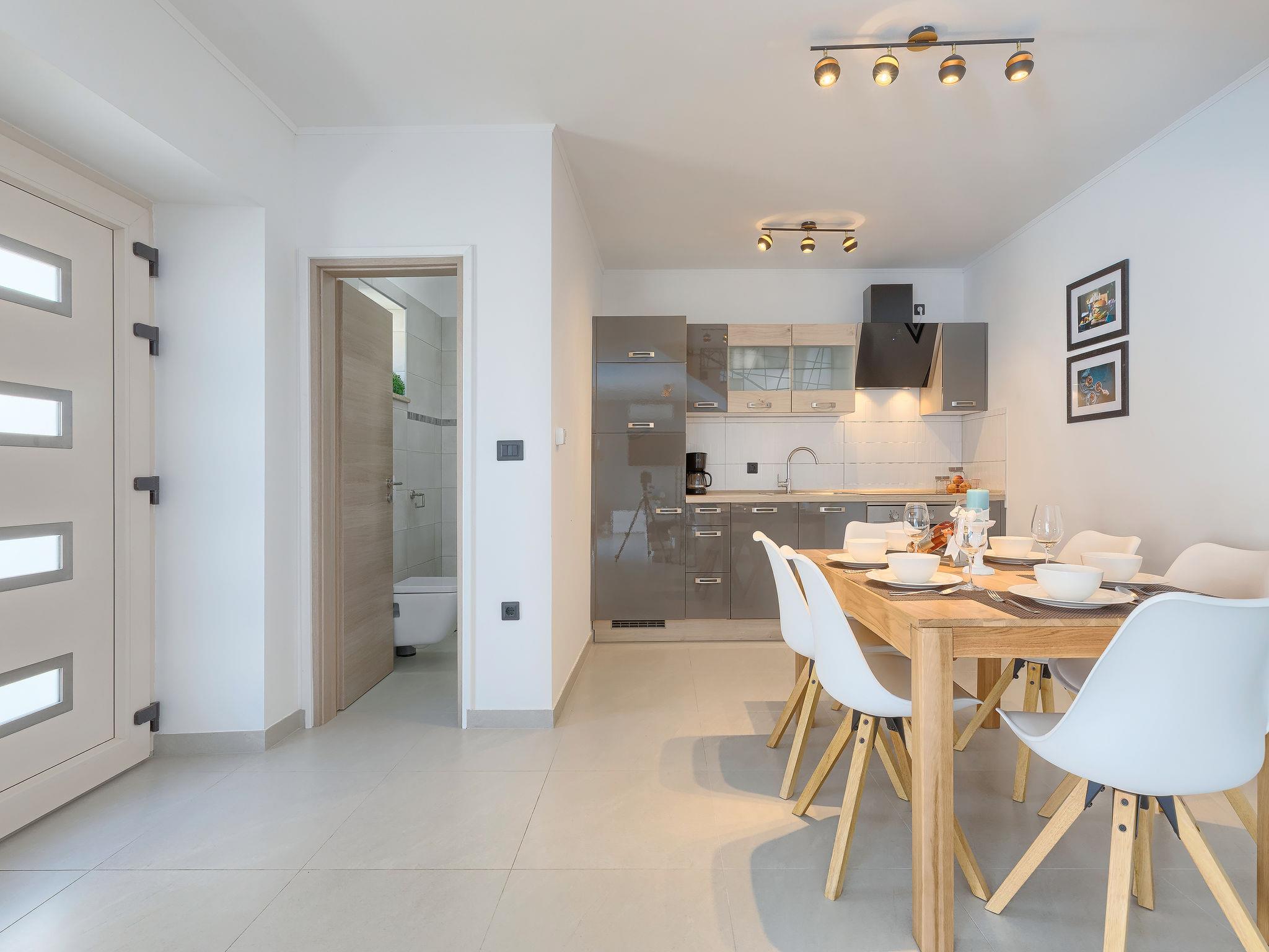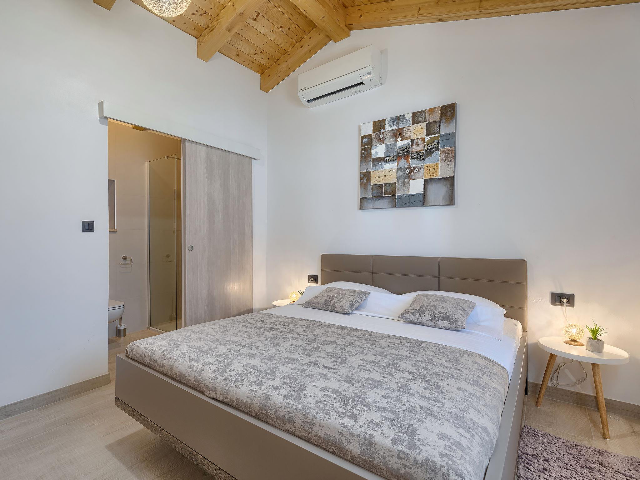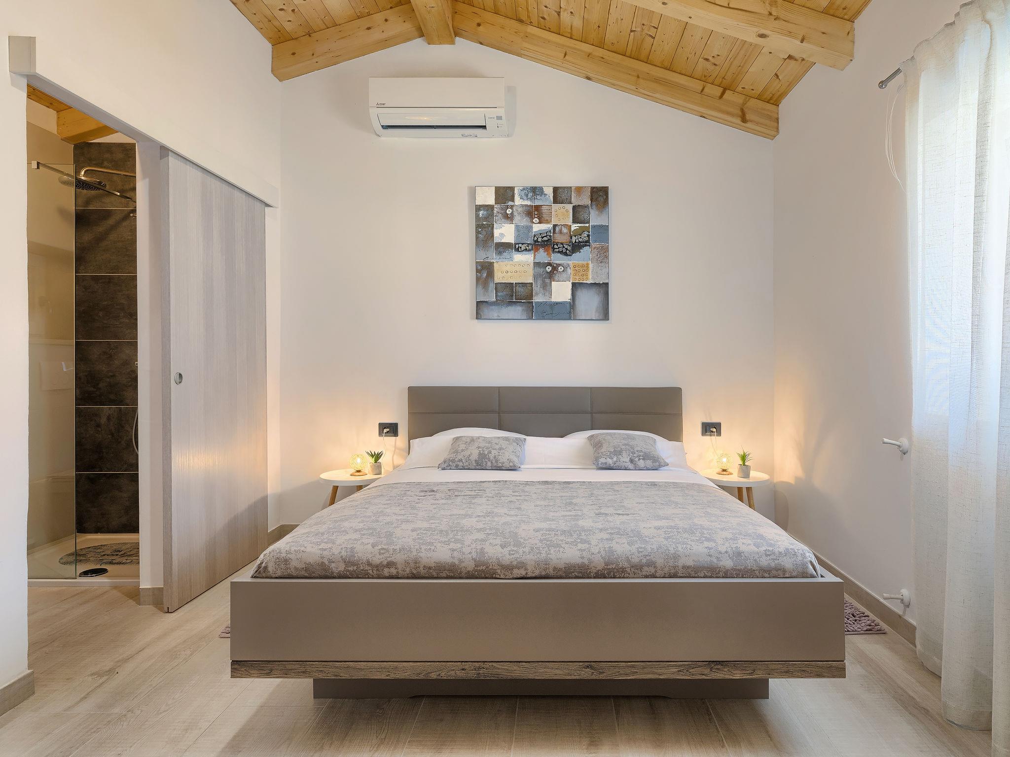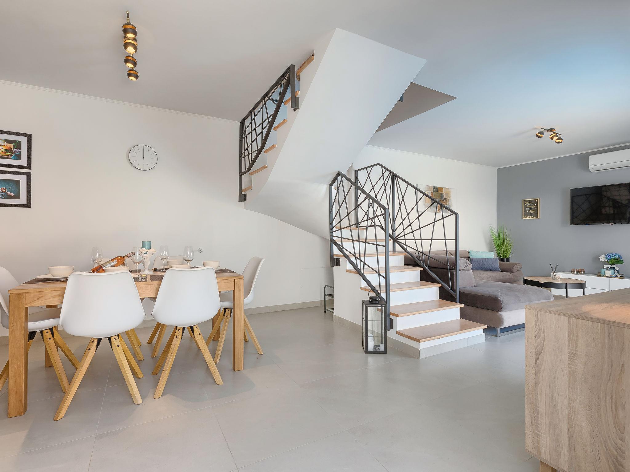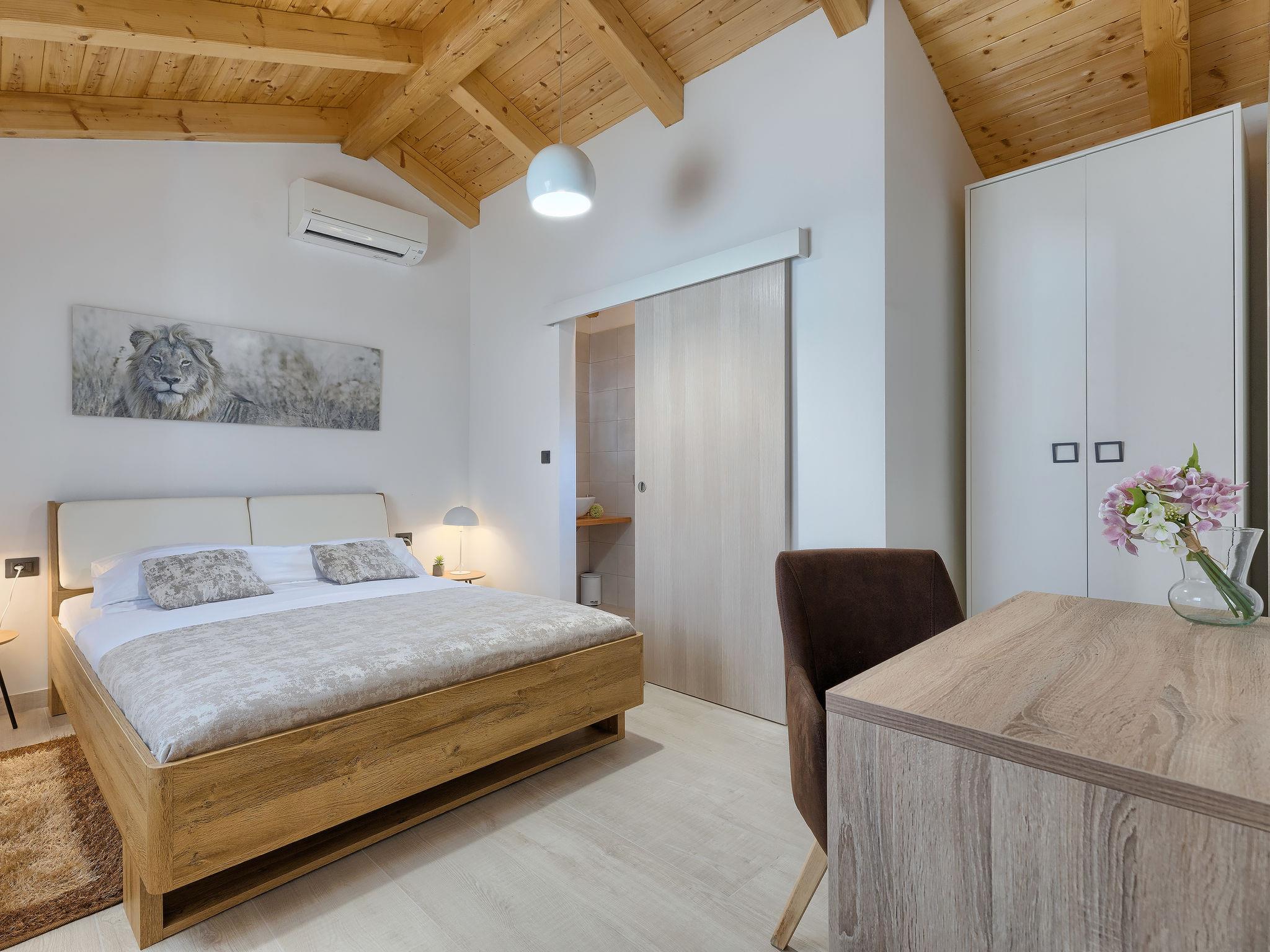Single-family house "Villa Karmen", 2 storeys, renovated in 2019. In the hamlet Gljušcici 6 km from the centre of Žminj, 30 km from the centre of Rovinj, 28 km from the sea. Private: property 400 m2 (fenced), swimming pool angular (7 x 3 m, 24 m2, depth 130 cm, seasonal availability: 01.May. - 14.Oct.) with internal staircase. Outdoor shower, table tennis, terrace, garden furniture. In the house: internet access, washing machine. Parking (for 3 cars) on the premises. Shop 500 m, restaurant 1 km, bus stop 6.1 km, rocky beach 28 km.