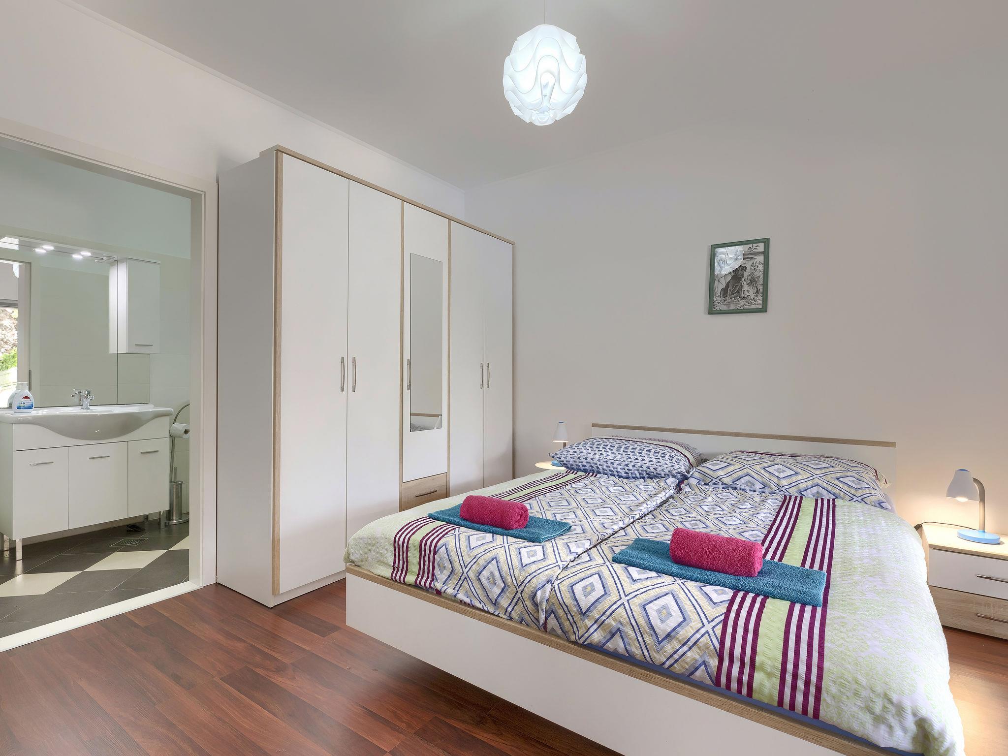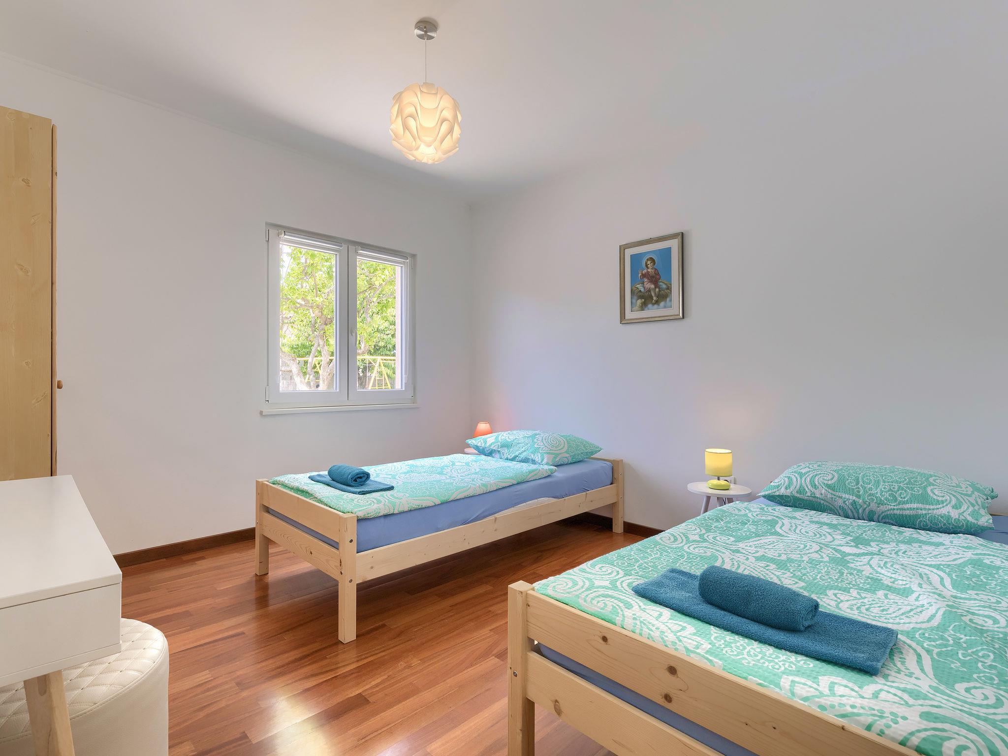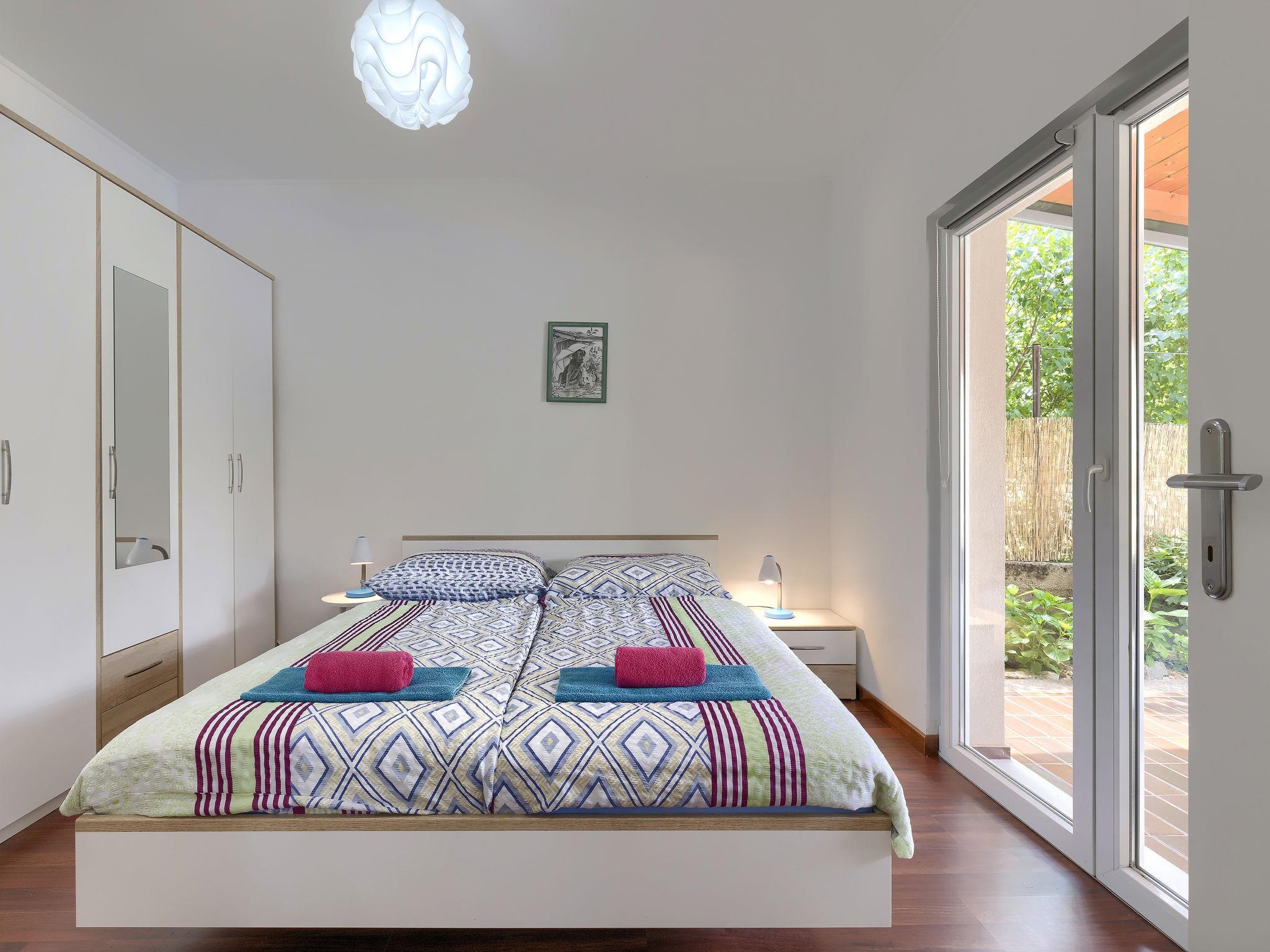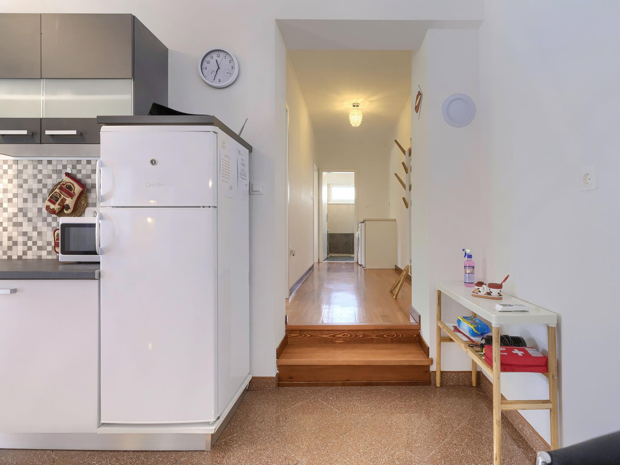 4-room house 90 m2. Living/dining room with satellite TV (flat screen), air conditioning. Exit to the terrace. 1 room with 1 double bed. 2 rooms, each room with 2 beds. Open kitchen (oven, dishwasher, 4 ceramic glass hob hotplates, toaster, kettle, microwave, freezer, electric coffee machine). 2 showers/WC. No heating option. Deck chairs. Facilities: children's high chair, baby cot. Internet (WiFi, free). Please note: non-smoking house. Maximum 2 pets/ dogs allowed.