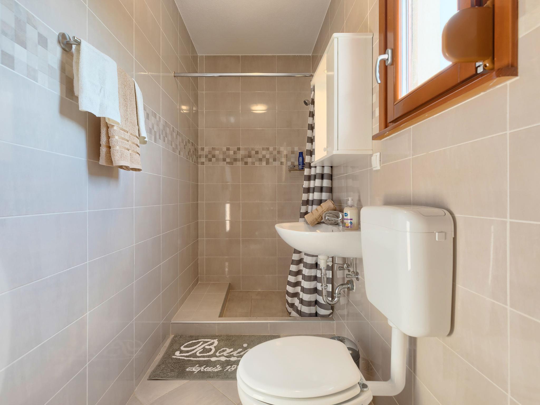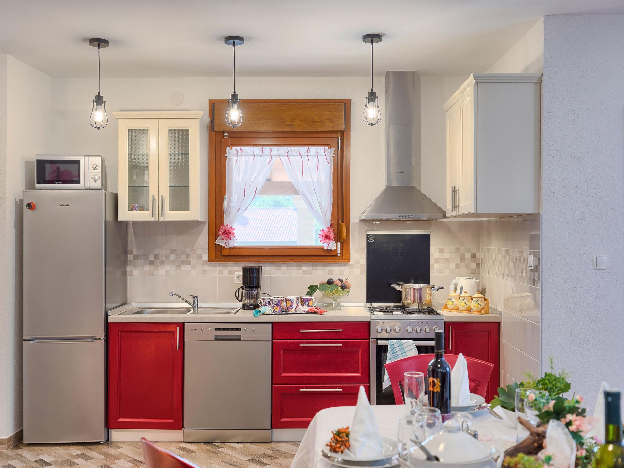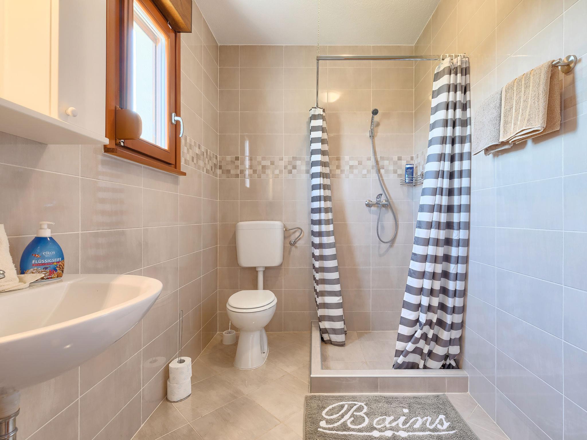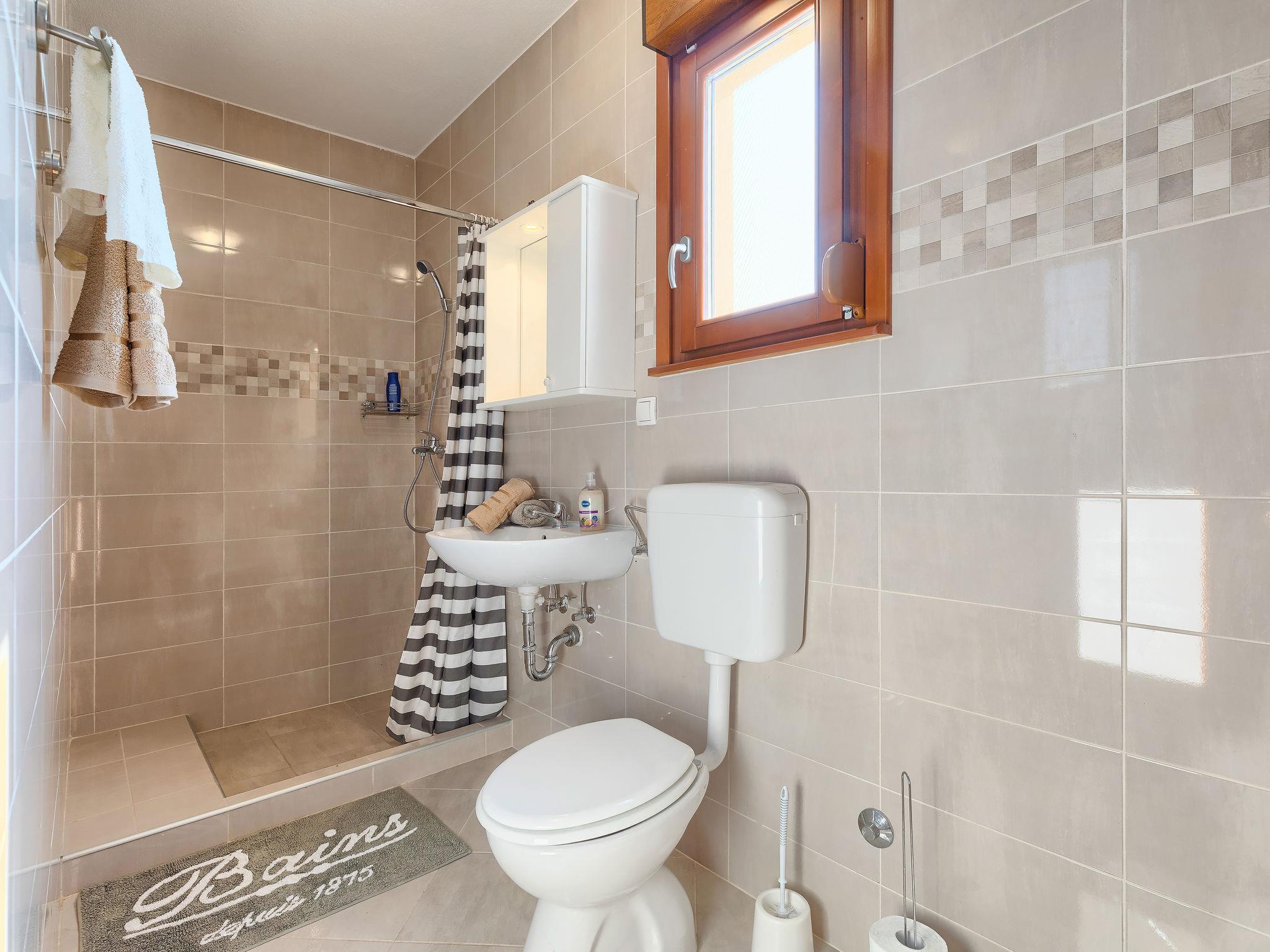 4-room house 95 m2. Living/dining room with satellite TV (flat screen), air conditioning. Exit to the terrace. 3 rooms, each room with 1 double bed and shower/WC. Open kitchen (1 hot plate, oven, dishwasher, 3 gas rings, toaster, kettle, microwave, freezer, electric coffee machine). Sep. WC. No heating option. Terrace 22 m2, roofed. Terrace furniture, deck chairs. Facilities: children's high chair, baby cot. Internet (WiFi, free). Please note: non-smoking house. Maximum 2 pets/ dogs allowed.