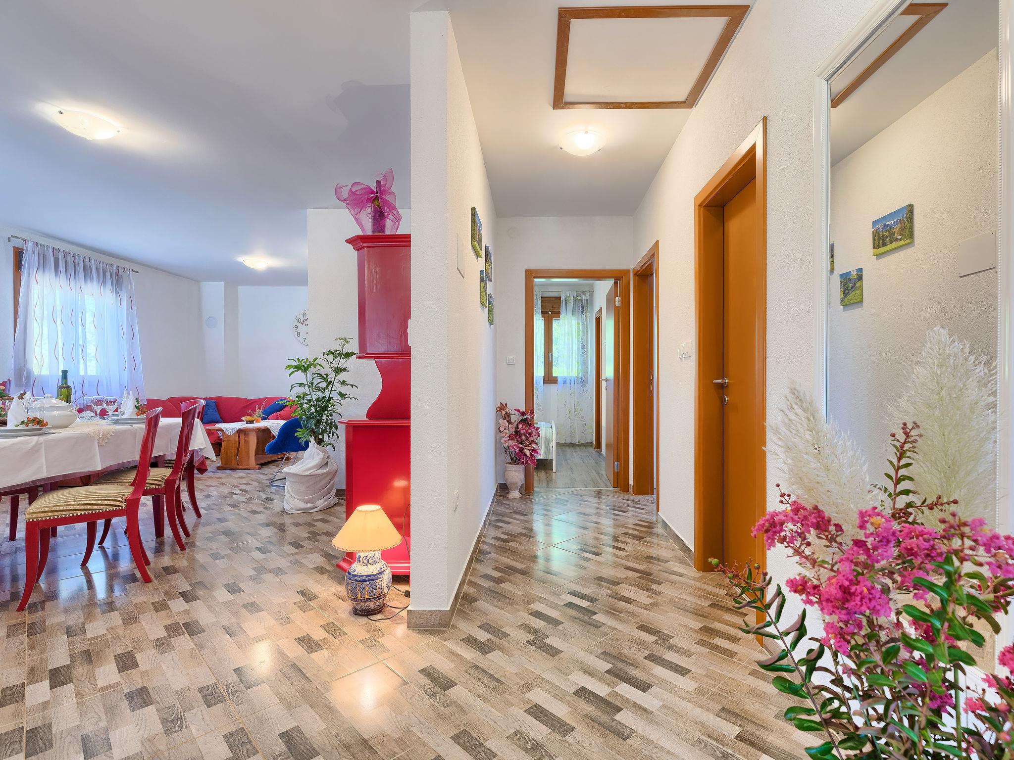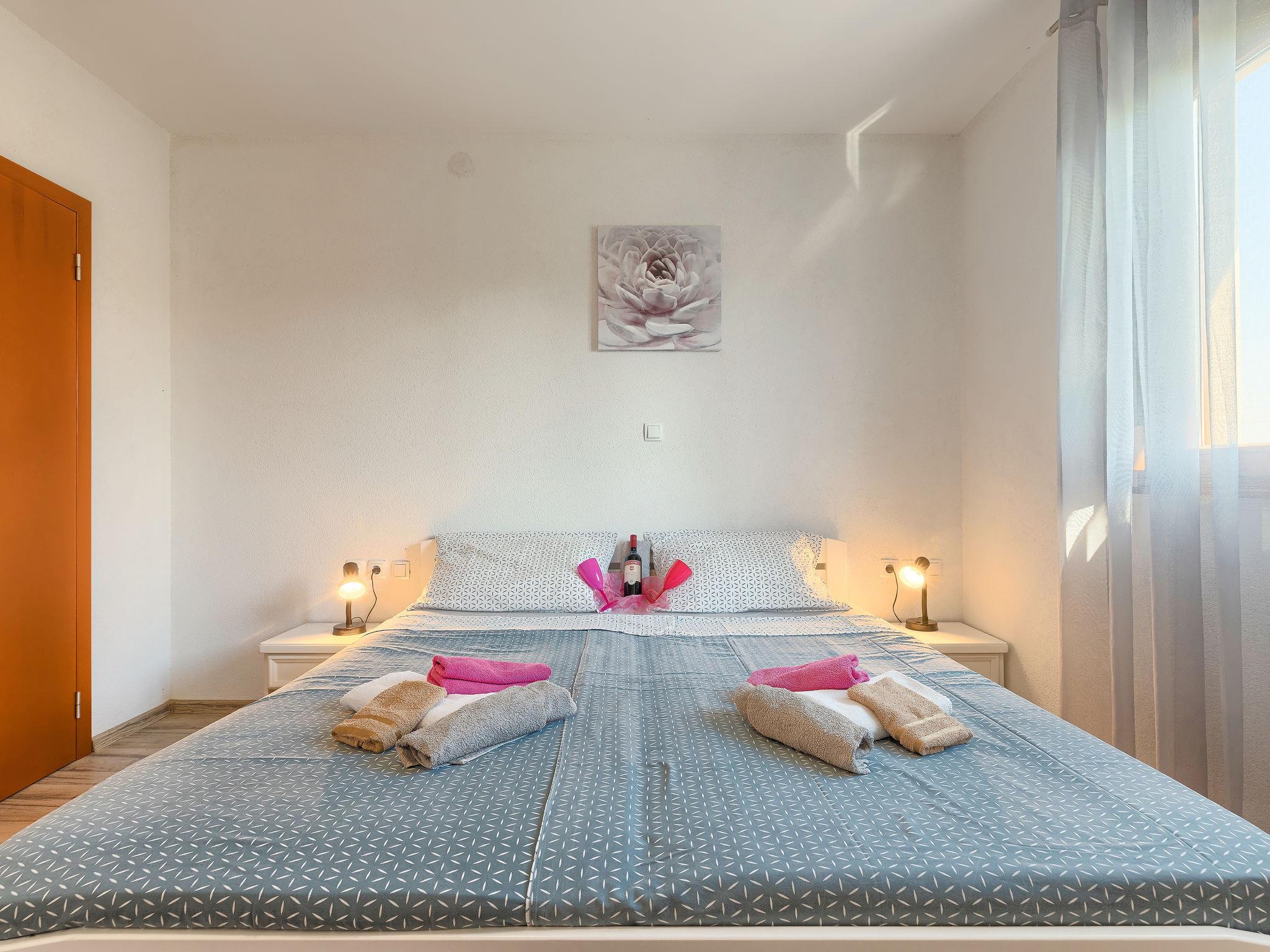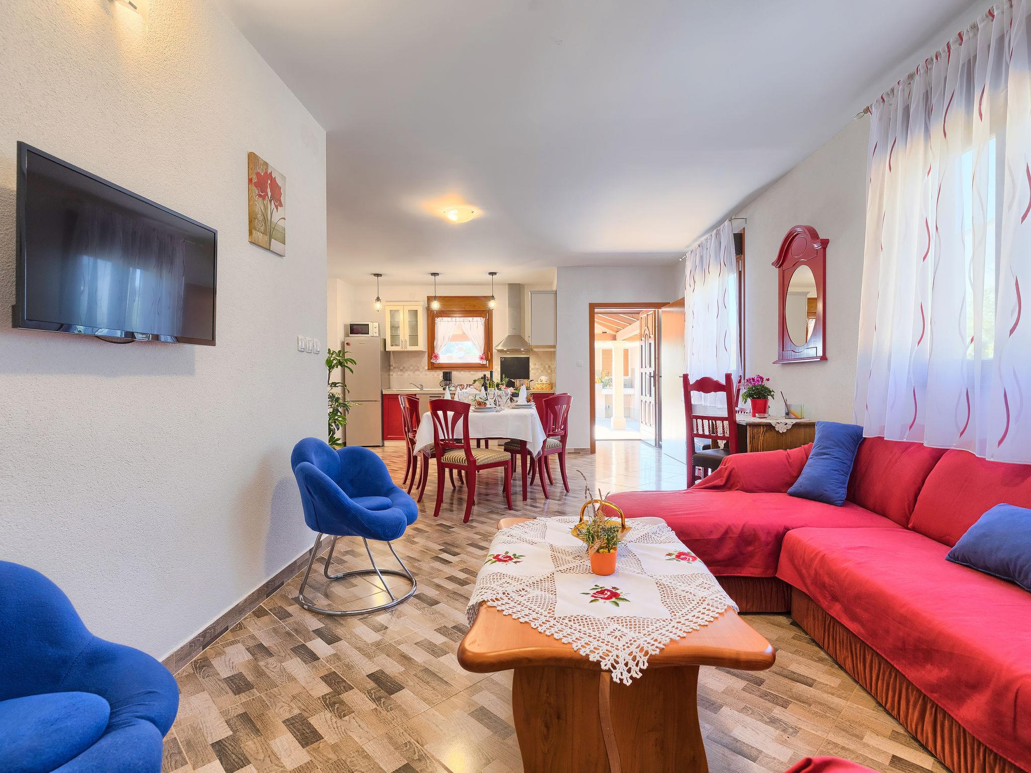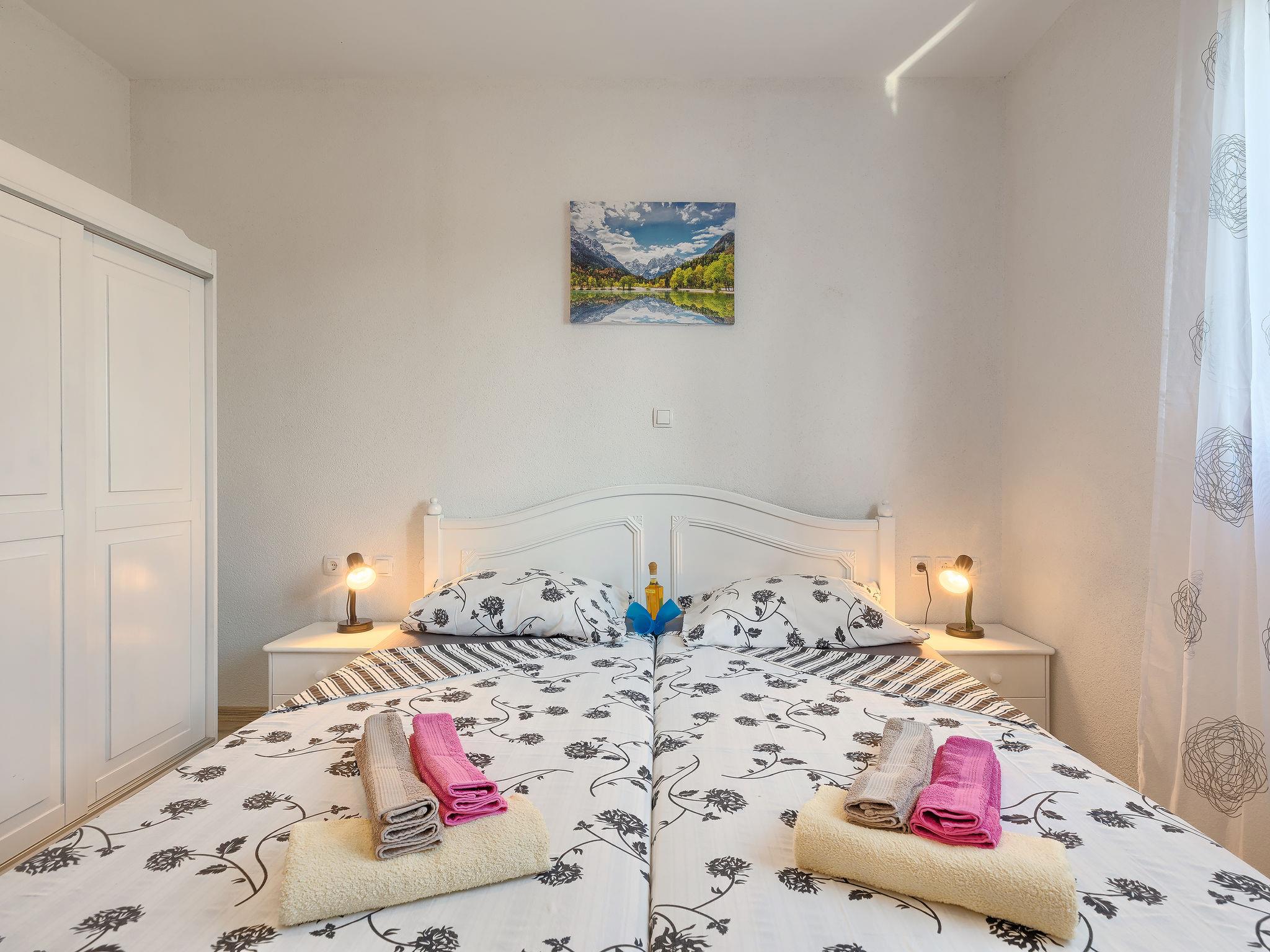 4-room house 95 m2. Living/dining room with satellite TV (flat screen), air conditioning. Exit to the terrace. 3 rooms, each room with 1 double bed and shower/WC. Open kitchen (1 hot plate, oven, dishwasher, 3 gas rings, toaster, kettle, microwave, freezer, electric coffee machine). Sep. WC. No heating option. Terrace 22 m2, roofed. Terrace furniture, deck chairs. Facilities: children's high chair, baby cot. Internet (WiFi, free). Please note: non-smoking house. Maximum 2 pets/ dogs allowed.
