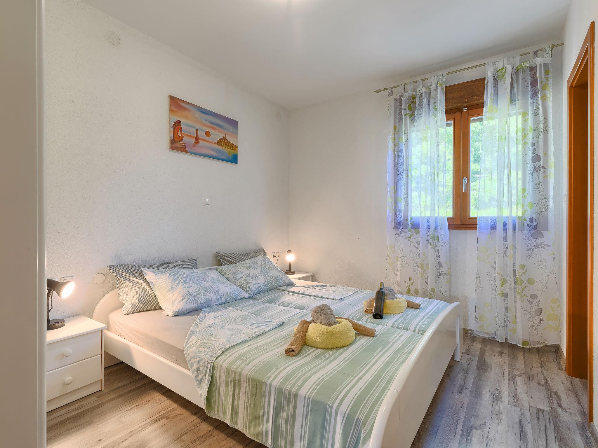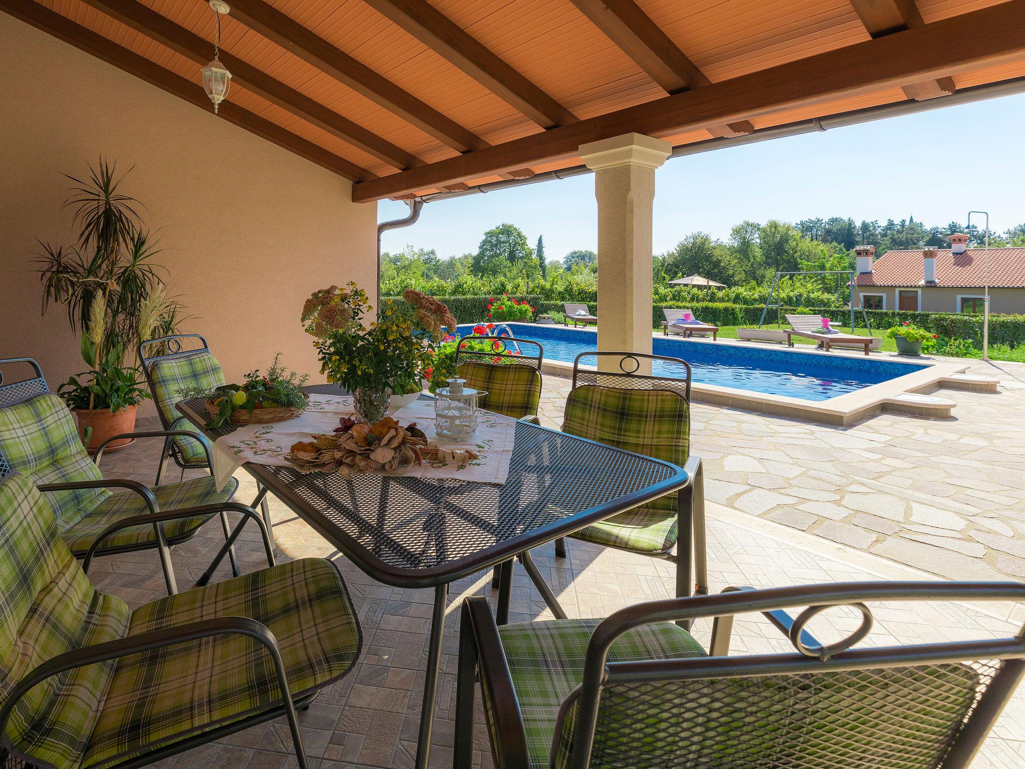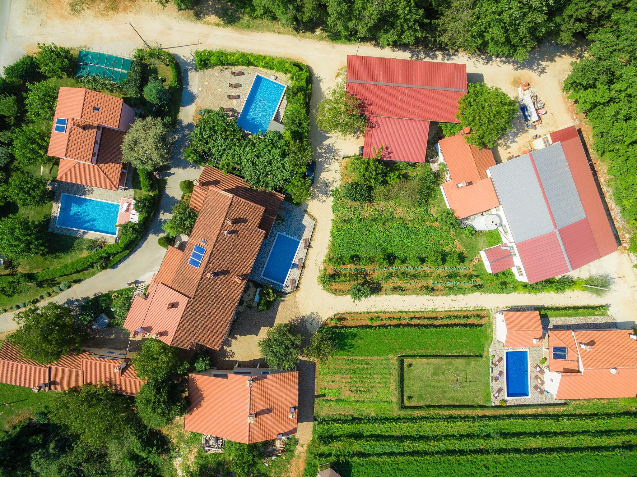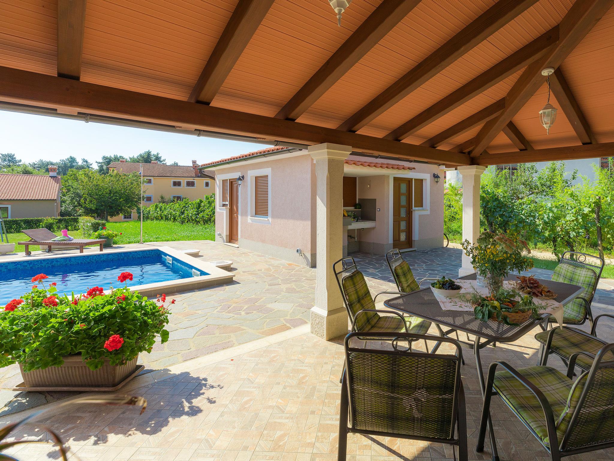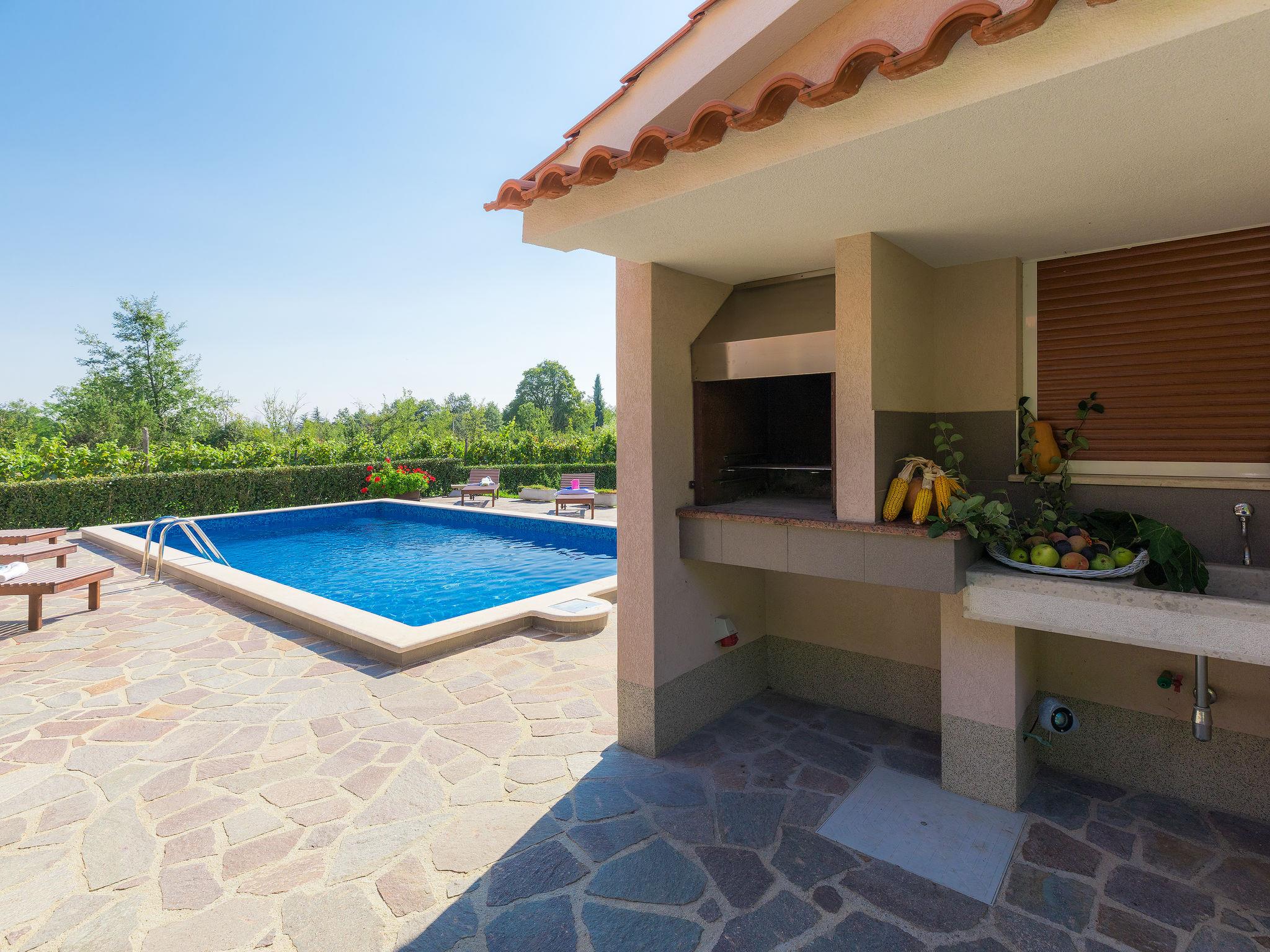 Single-family house "Villa Mihael", built in 2019. In the hamlet Laginji 1.4 km from the centre of Žminj, 25 km from the centre of Rovinj, 27 km from the sea. Private: property 600 m2 with lawn, swimming pool angular (8 x 4 m, depth 140 cm, seasonal availability: 15.May. - 07.Oct.). Outdoor shower, terrace, barbecue. In the house: internet access, washing machine. Parking (for 2 cars) on the premises. Shop 1.4 km, restaurant 1.4 km, bus stop 1.7 km, pebble beach 27 km. Marina 25 km. Please note: airfield 38 km from the property.