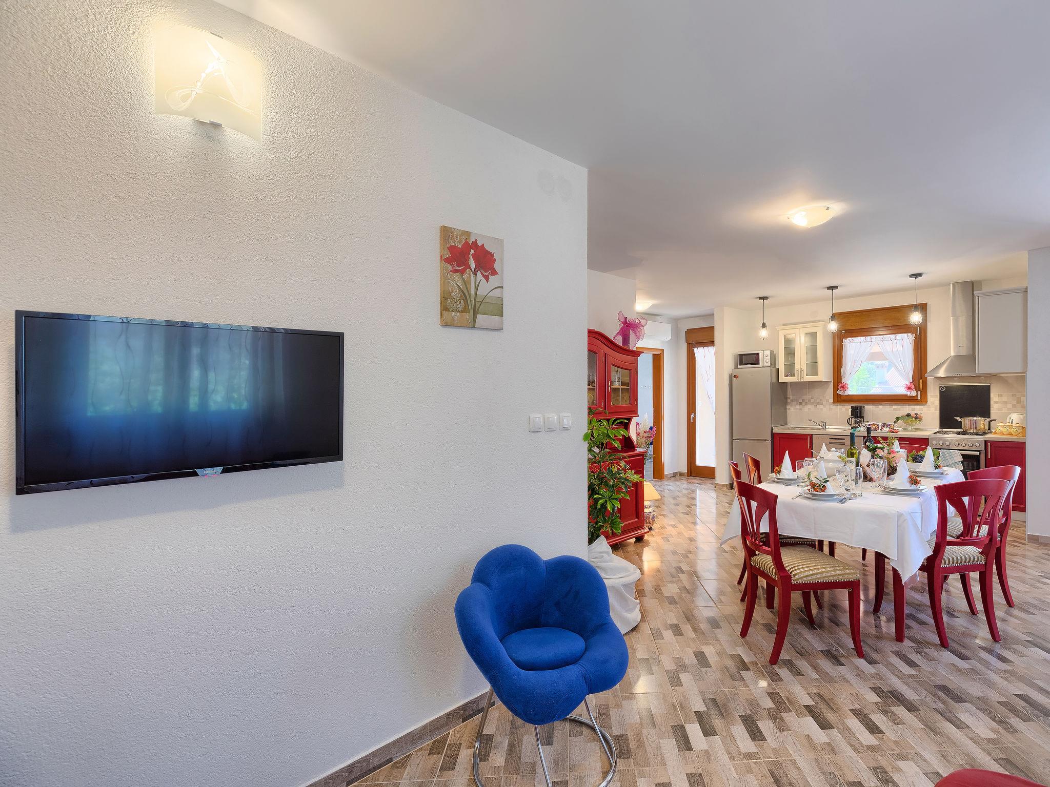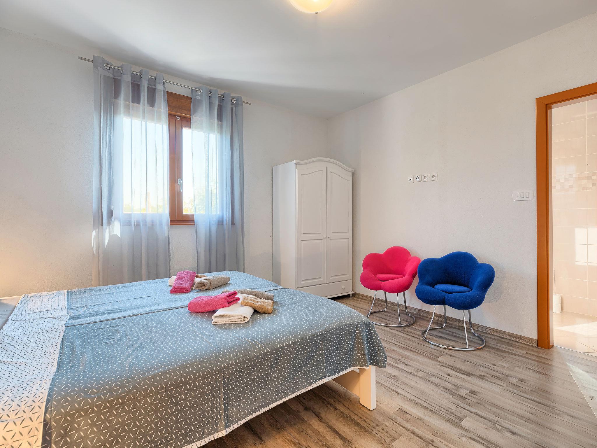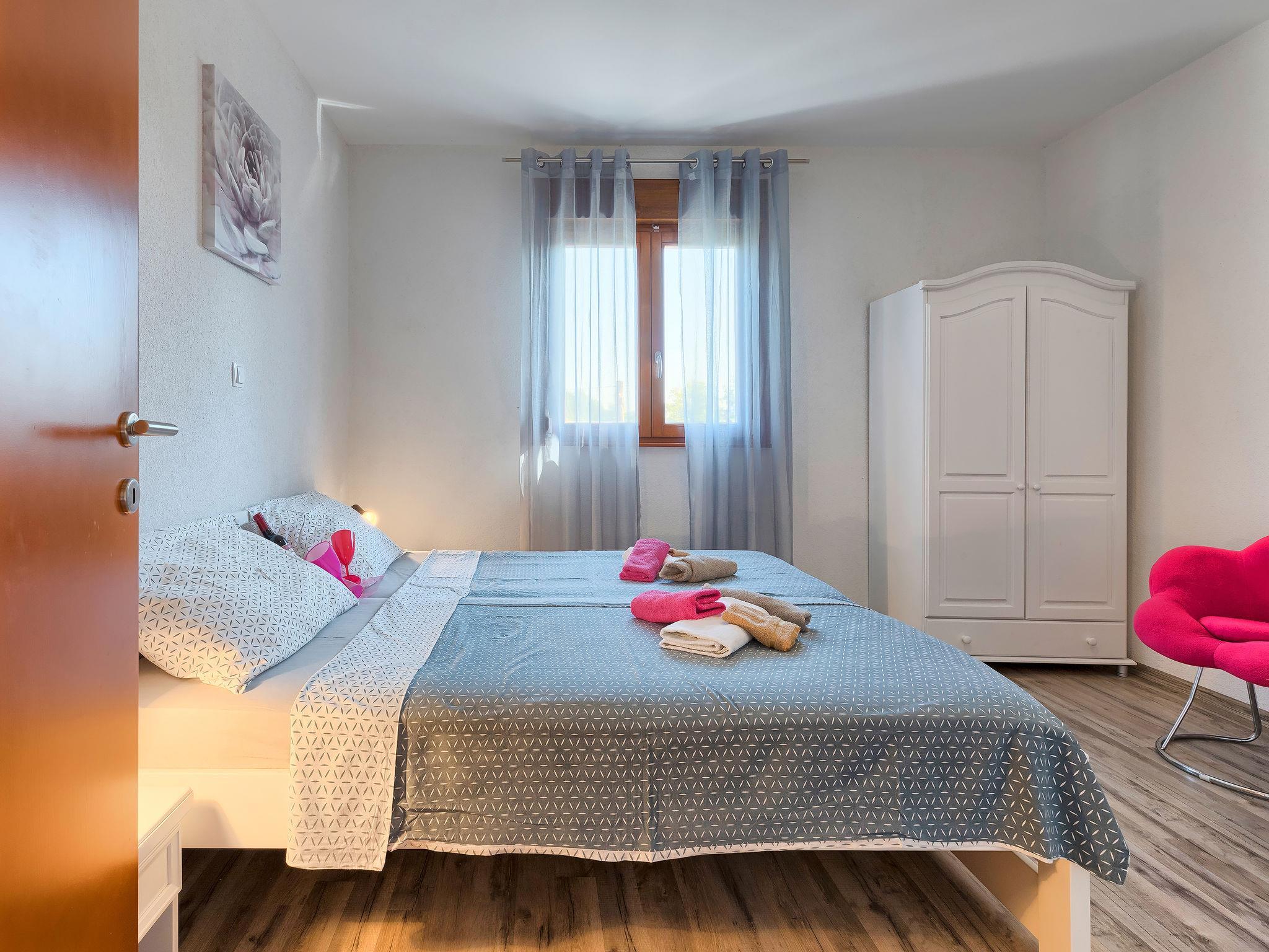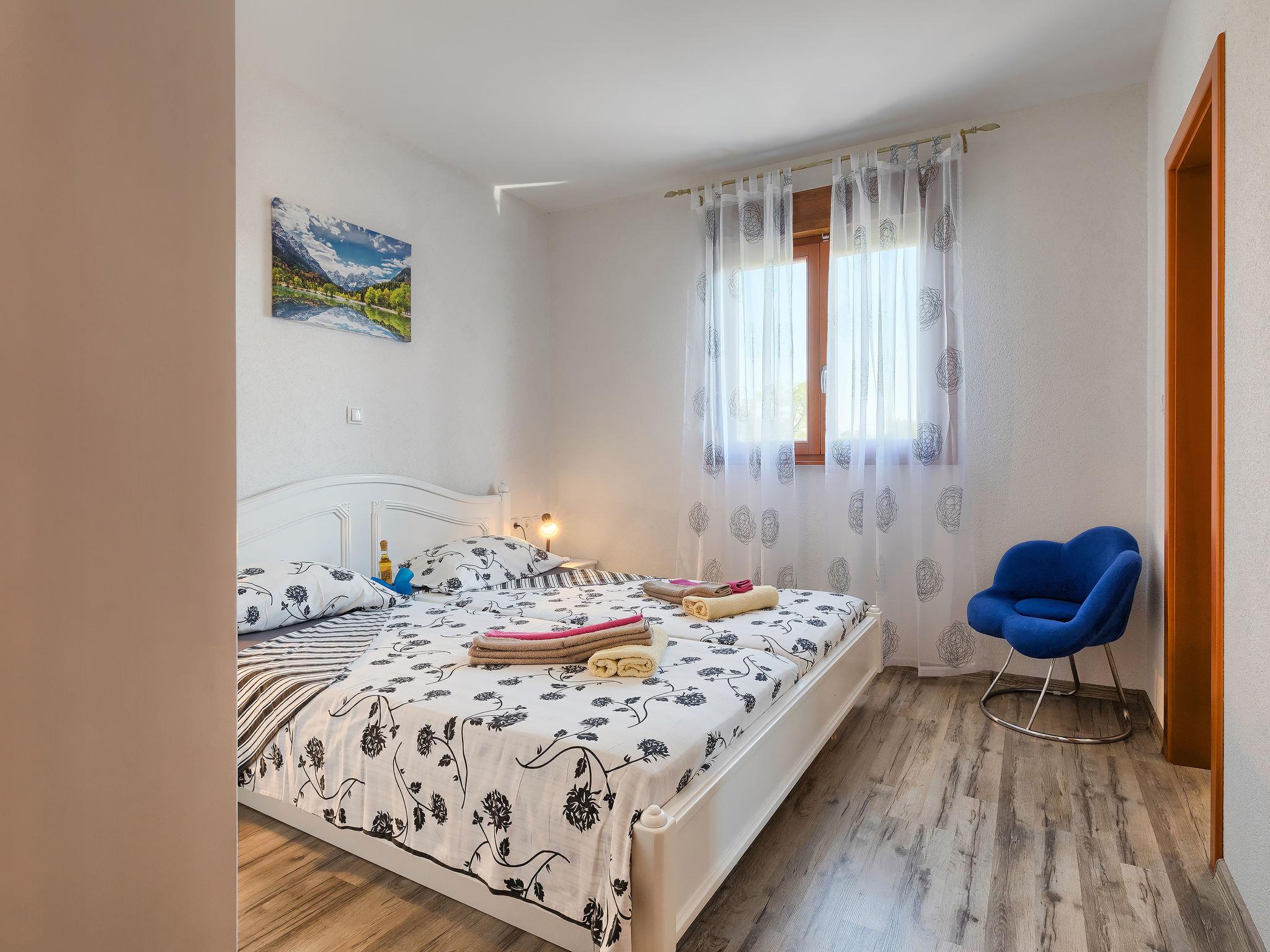 Single-family house "Villa Mihael", built in 2019. In the hamlet Laginji 1.4 km from the centre of Žminj, 25 km from the centre of Rovinj, 27 km from the sea. Private: property 600 m2 with lawn, swimming pool angular (8 x 4 m, depth 140 cm, seasonal availability: 15.May. - 07.Oct.). Outdoor shower, terrace, barbecue. In the house: internet access, washing machine. Parking (for 2 cars) on the premises. Shop 1.4 km, restaurant 1.4 km, bus stop 1.7 km, pebble beach 27 km. Marina 25 km. Please note: airfield 38 km from the property.