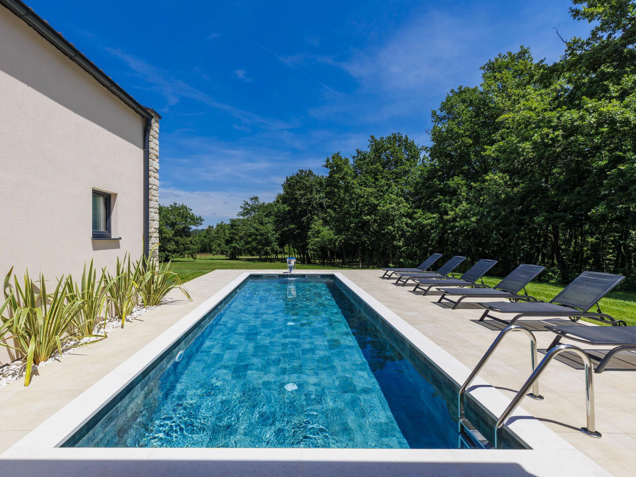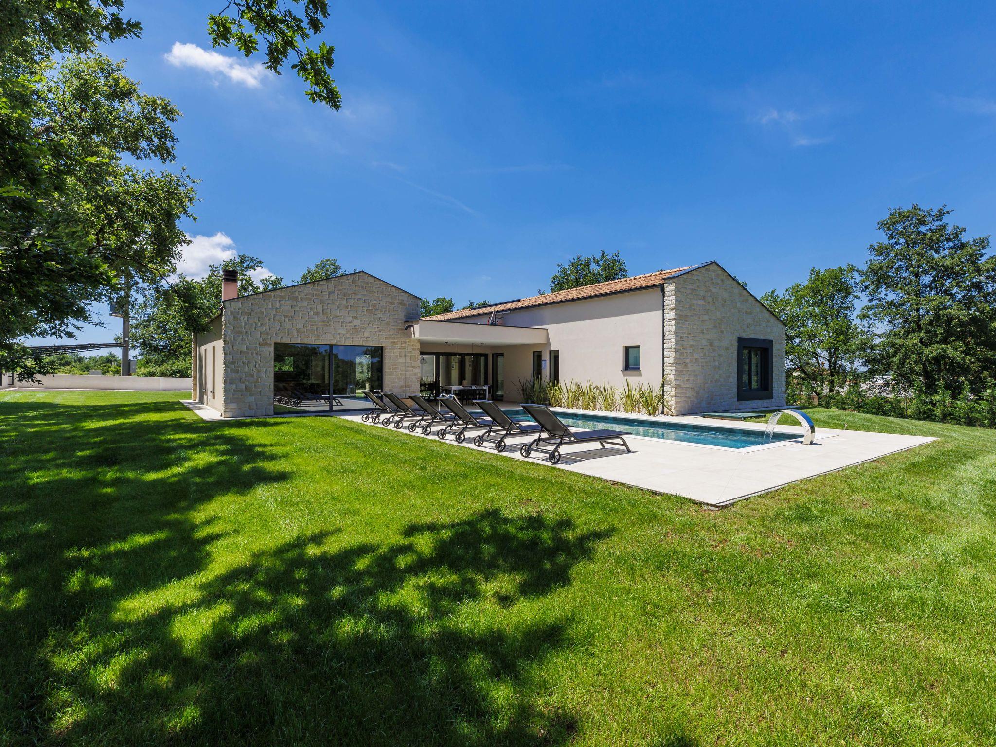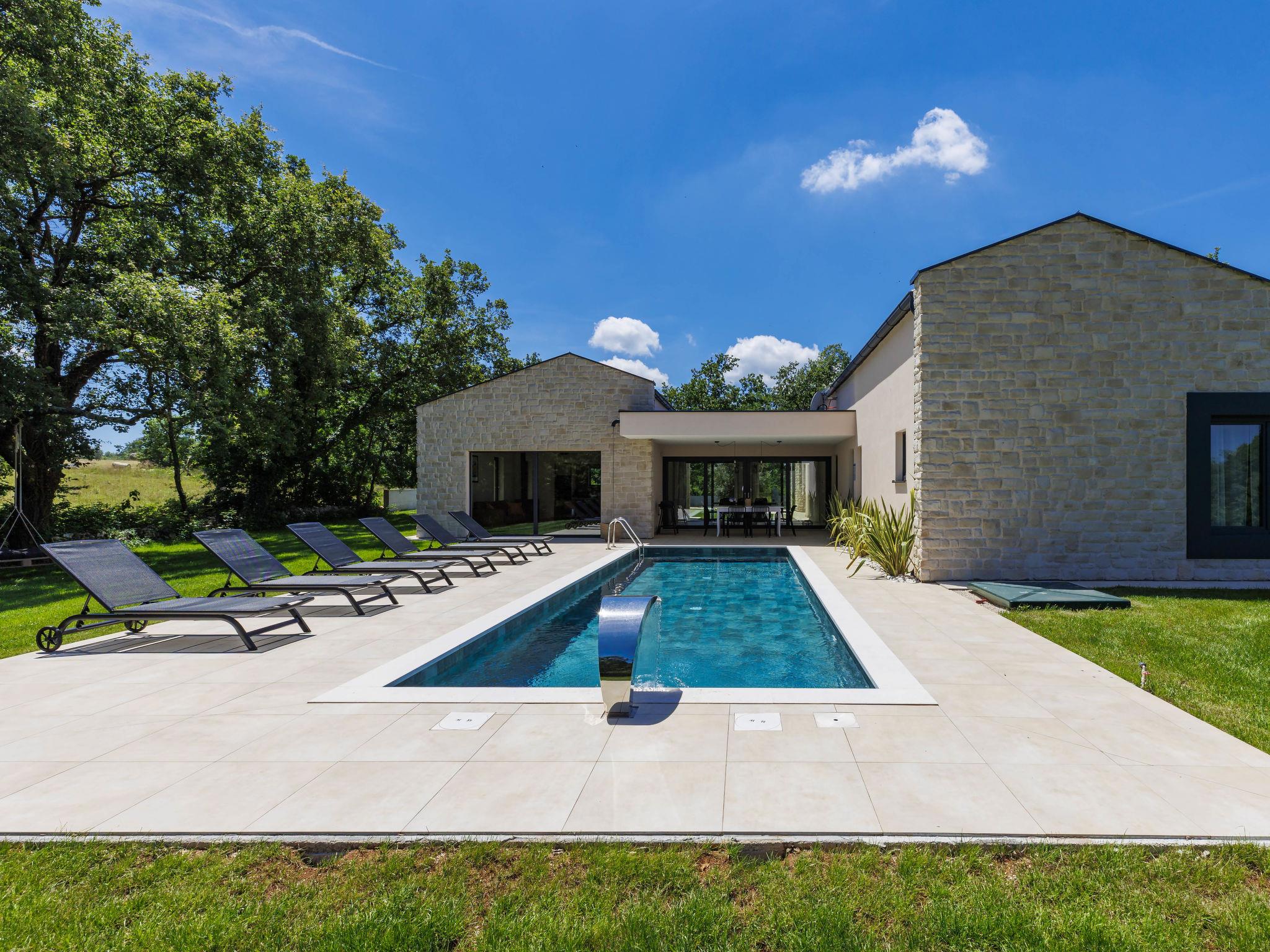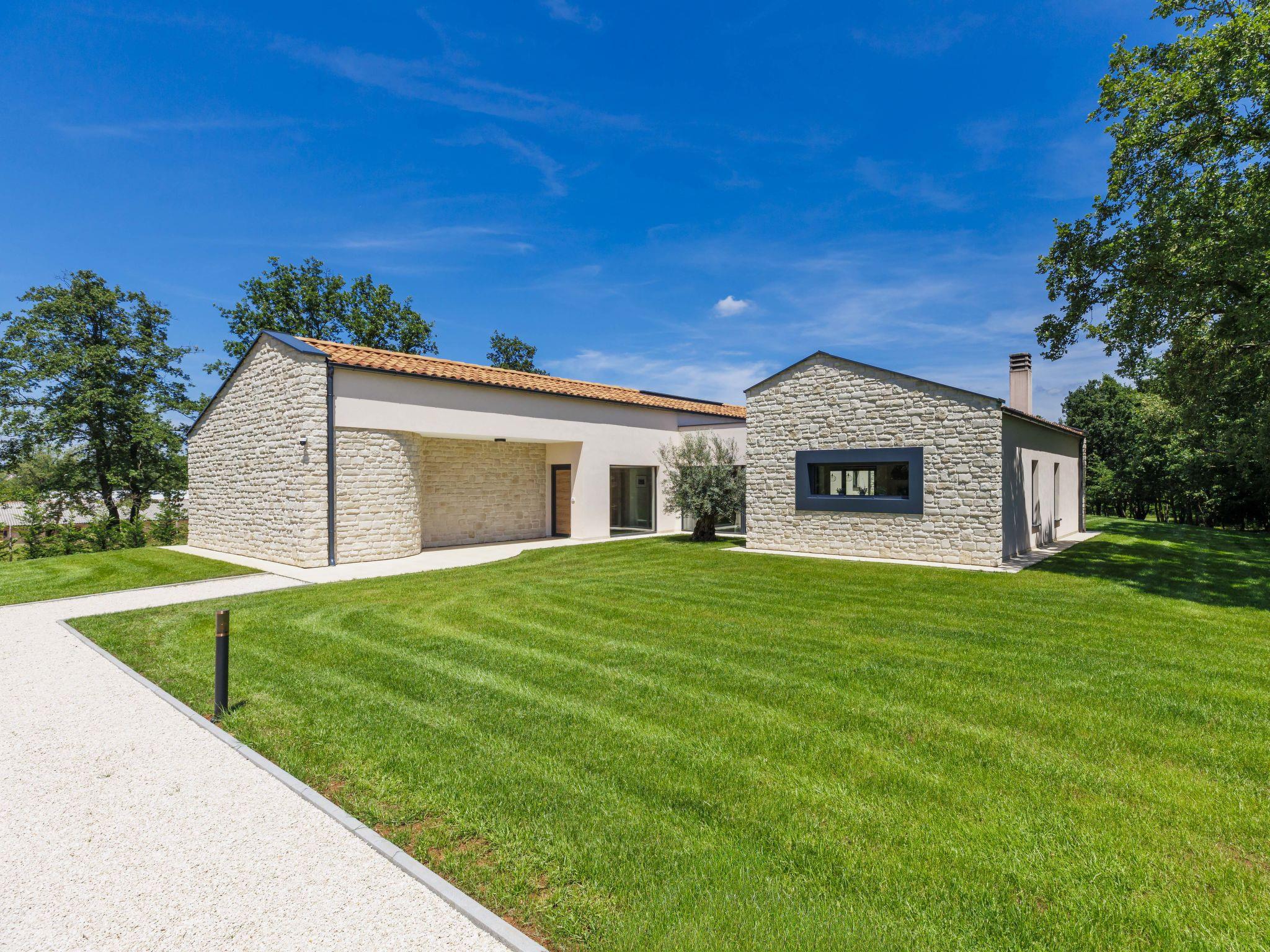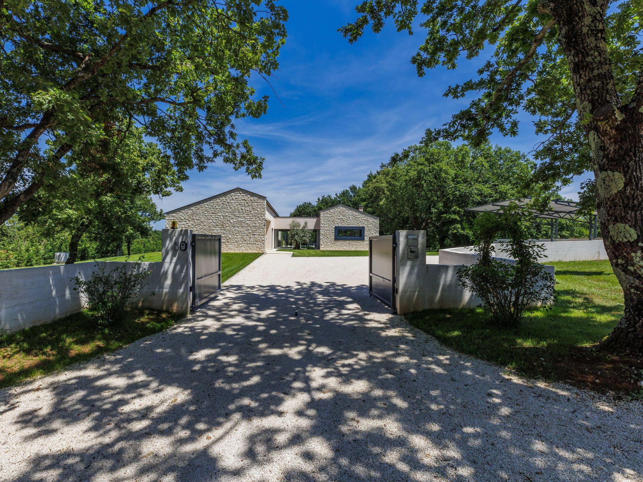 Luxurious villa "Ana", detached, built in 2023. In a hamlet 1.4 km from the centre of Žminj, 25 km from the centre of Rovinj, 25 km from the sea. Private: property 7'200 m2, swimming pool angular (10 x 3 m, 32 m2, seasonal availability: 11.May. - 28.Sep.) with internal staircase. Outdoor shower, garden furniture, barbecue. In the house: internet access, washing machine. Parking (for 2 cars) at the house on the premises. Shop 1.4 km, supermarket 2.5 km, restaurant 1.4 km, bus stop 1.7 km, pebble beach 25 km. Marina 25 km. Please note: airfield 38 km from the property.