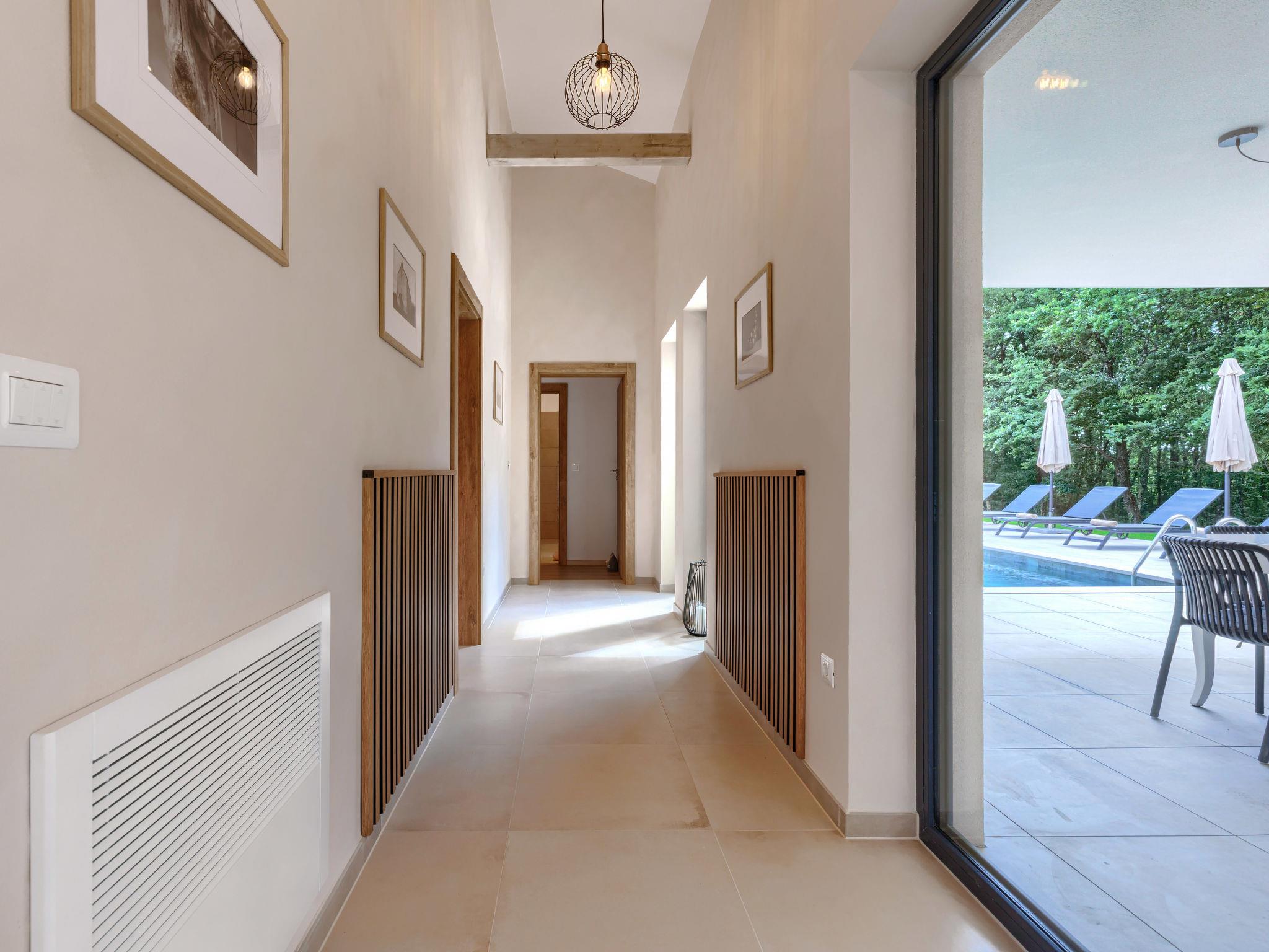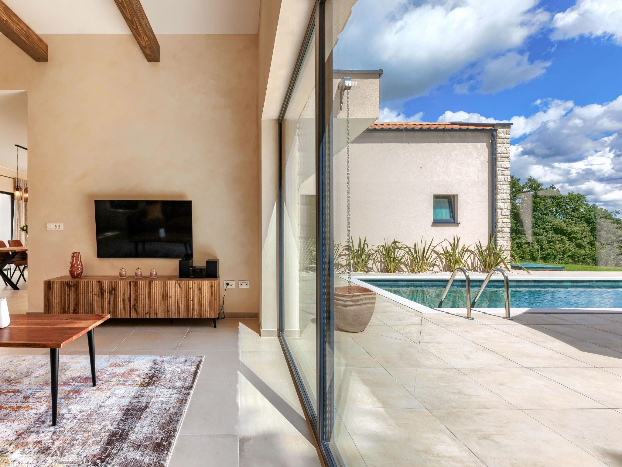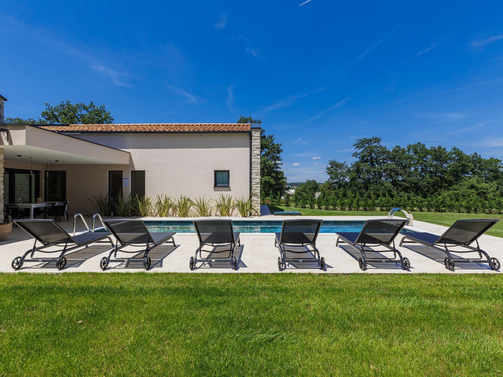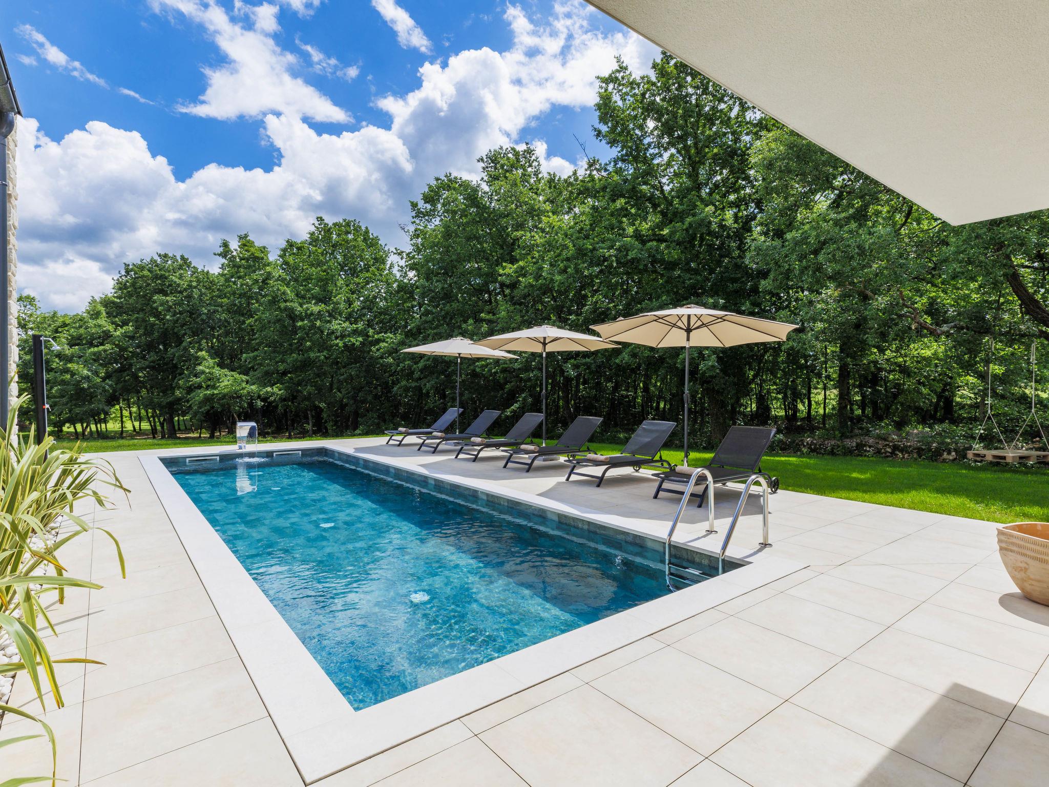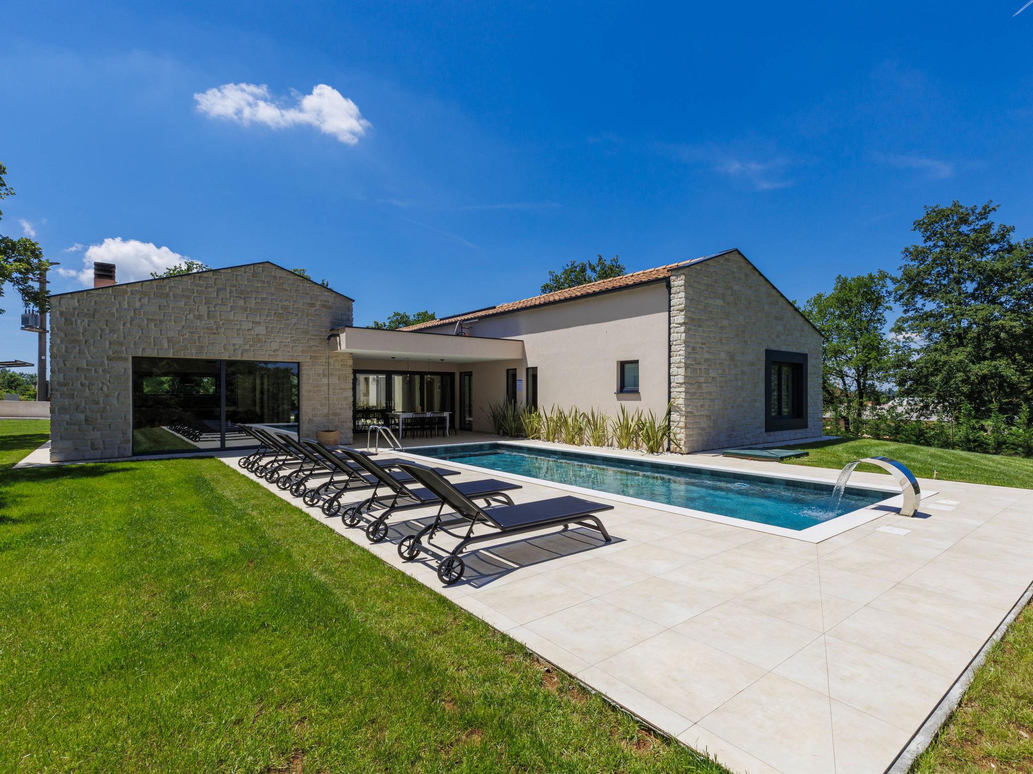 Luxurious villa "Ana", detached, built in 2023. In a hamlet 1.4 km from the centre of Žminj, 25 km from the centre of Rovinj, 25 km from the sea. Private: property 7'200 m2, swimming pool angular (10 x 3 m, 32 m2, seasonal availability: 11.May. - 28.Sep.) with internal staircase. Outdoor shower, garden furniture, barbecue. In the house: internet access, washing machine. Parking (for 2 cars) at the house on the premises. Shop 1.4 km, supermarket 2.5 km, restaurant 1.4 km, bus stop 1.7 km, pebble beach 25 km. Marina 25 km. Please note: airfield 38 km from the property.