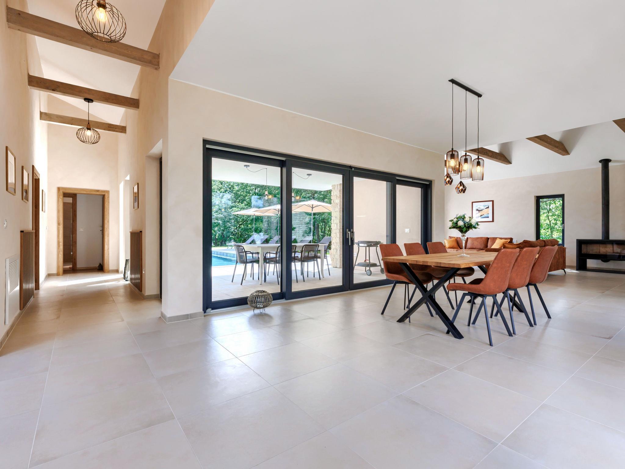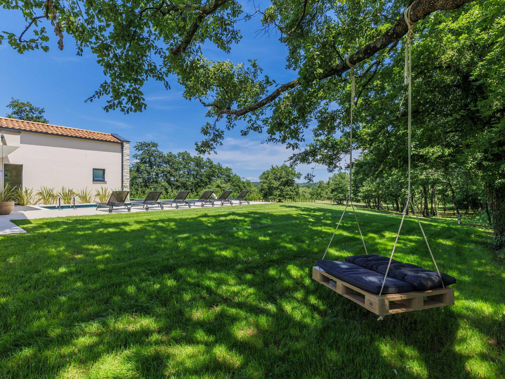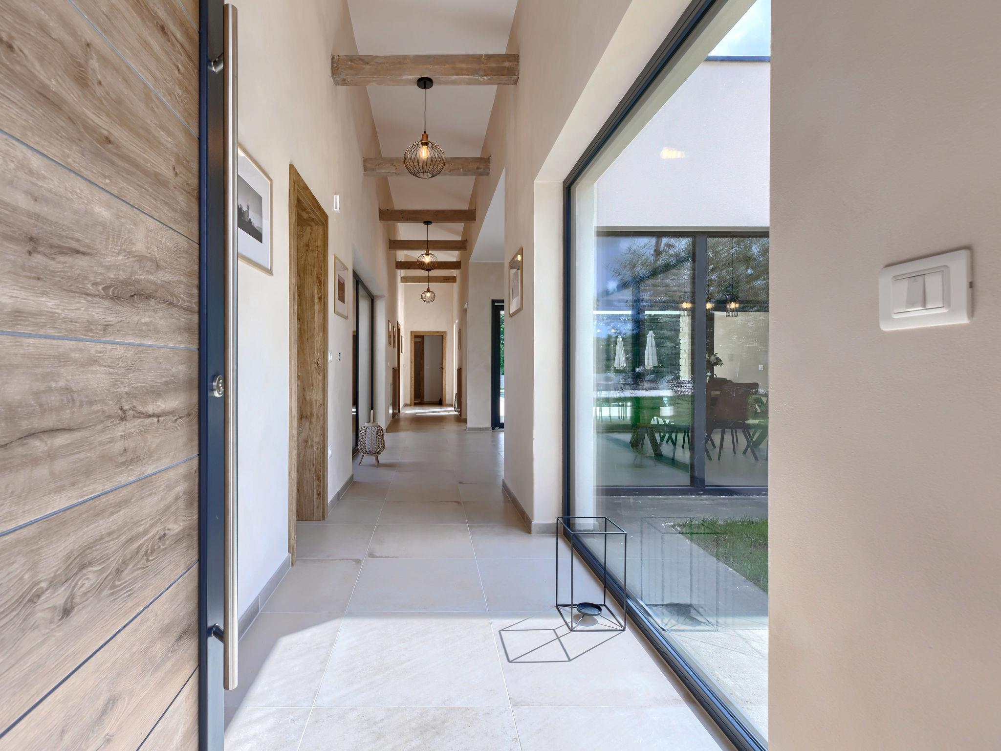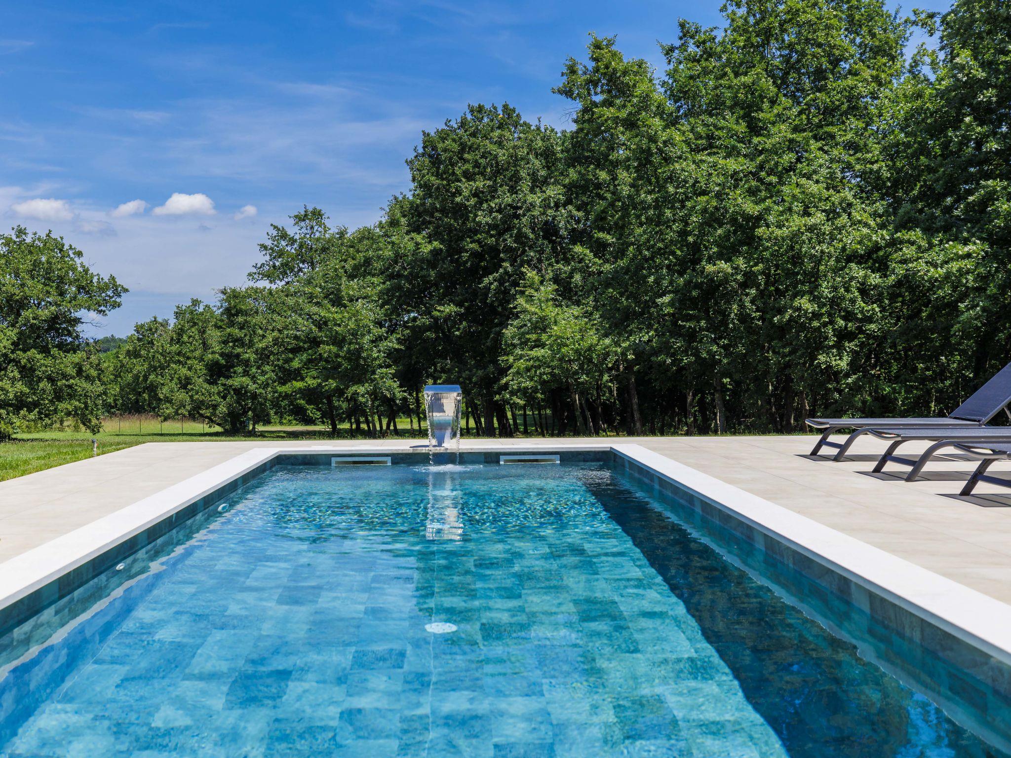 Luxurious villa "Ana", detached, built in 2023. In a hamlet 1.4 km from the centre of Žminj, 25 km from the centre of Rovinj, 25 km from the sea. Private: property 7'200 m2, swimming pool angular (10 x 3 m, 32 m2, seasonal availability: 11.May. - 28.Sep.) with internal staircase. Outdoor shower, garden furniture, barbecue. In the house: internet access, washing machine. Parking (for 2 cars) at the house on the premises. Shop 1.4 km, supermarket 2.5 km, restaurant 1.4 km, bus stop 1.7 km, pebble beach 25 km. Marina 25 km. Please note: airfield 38 km from the property.