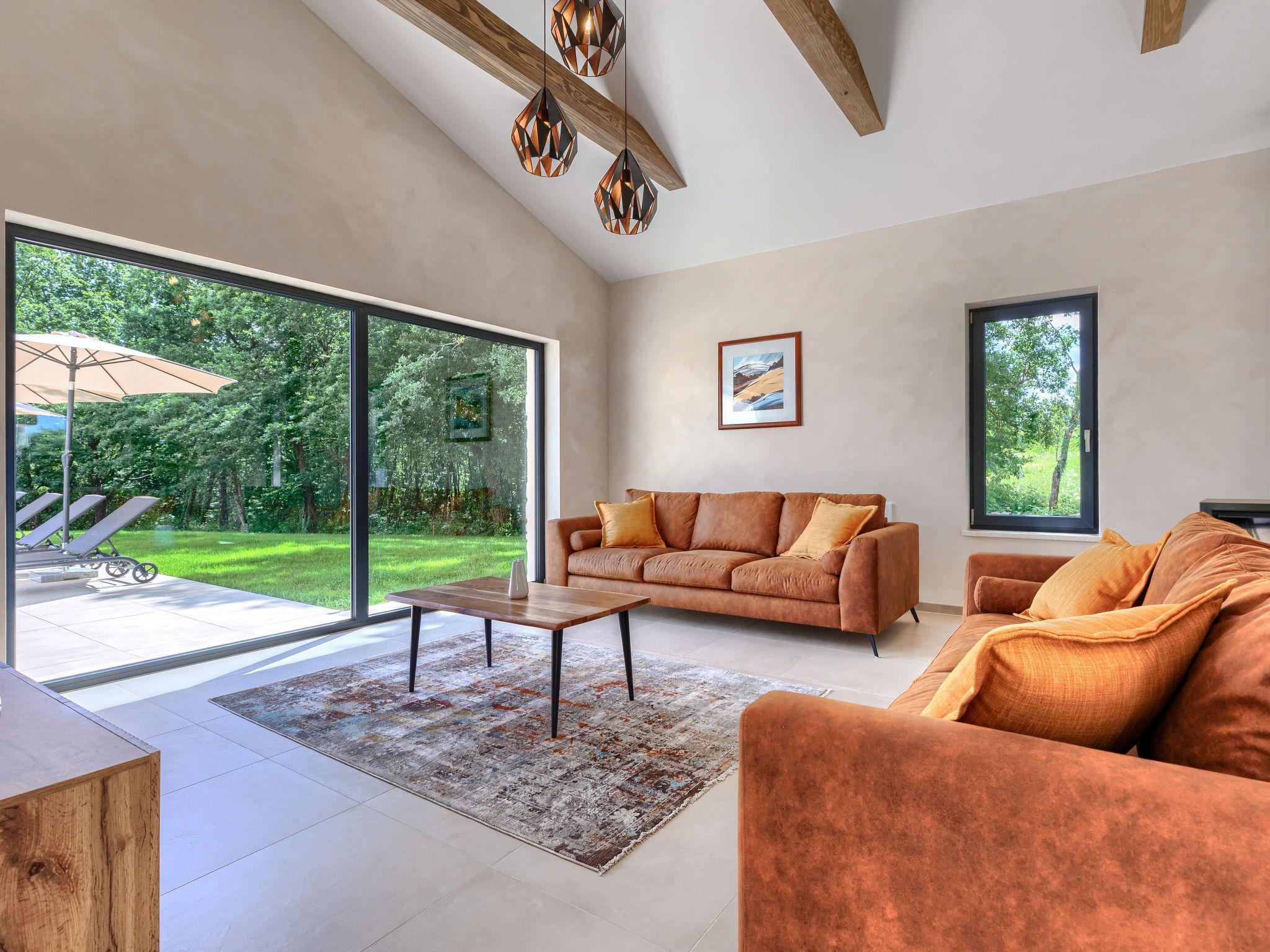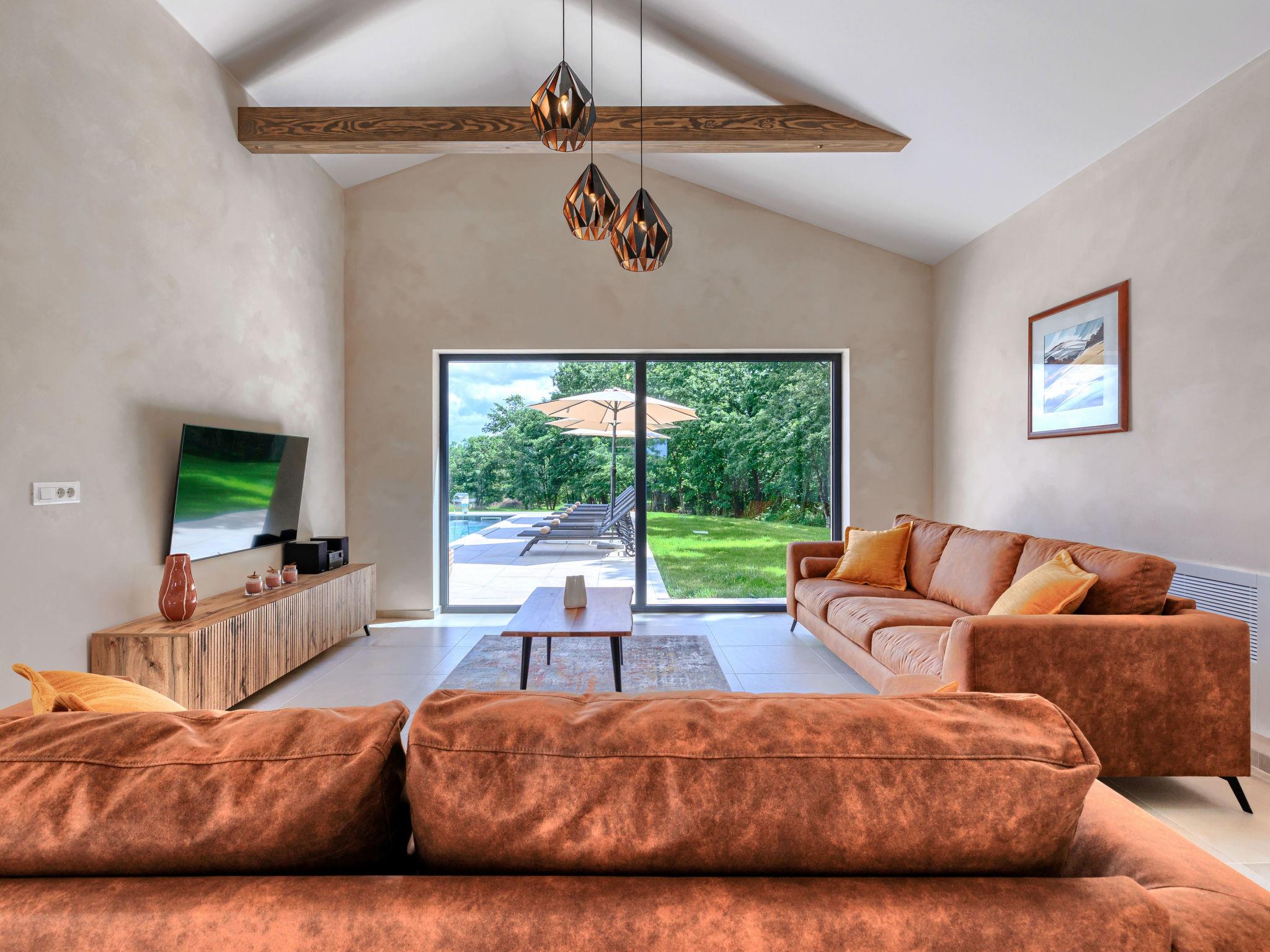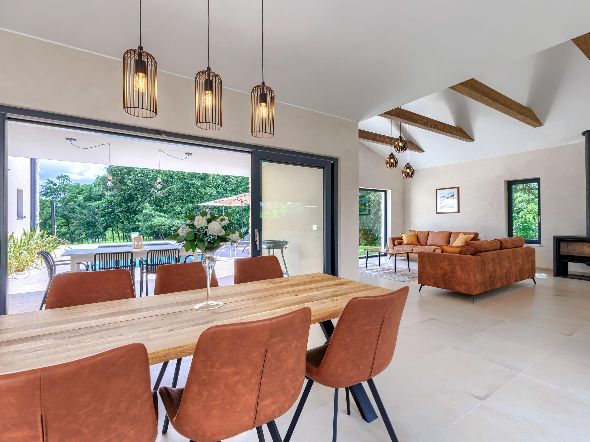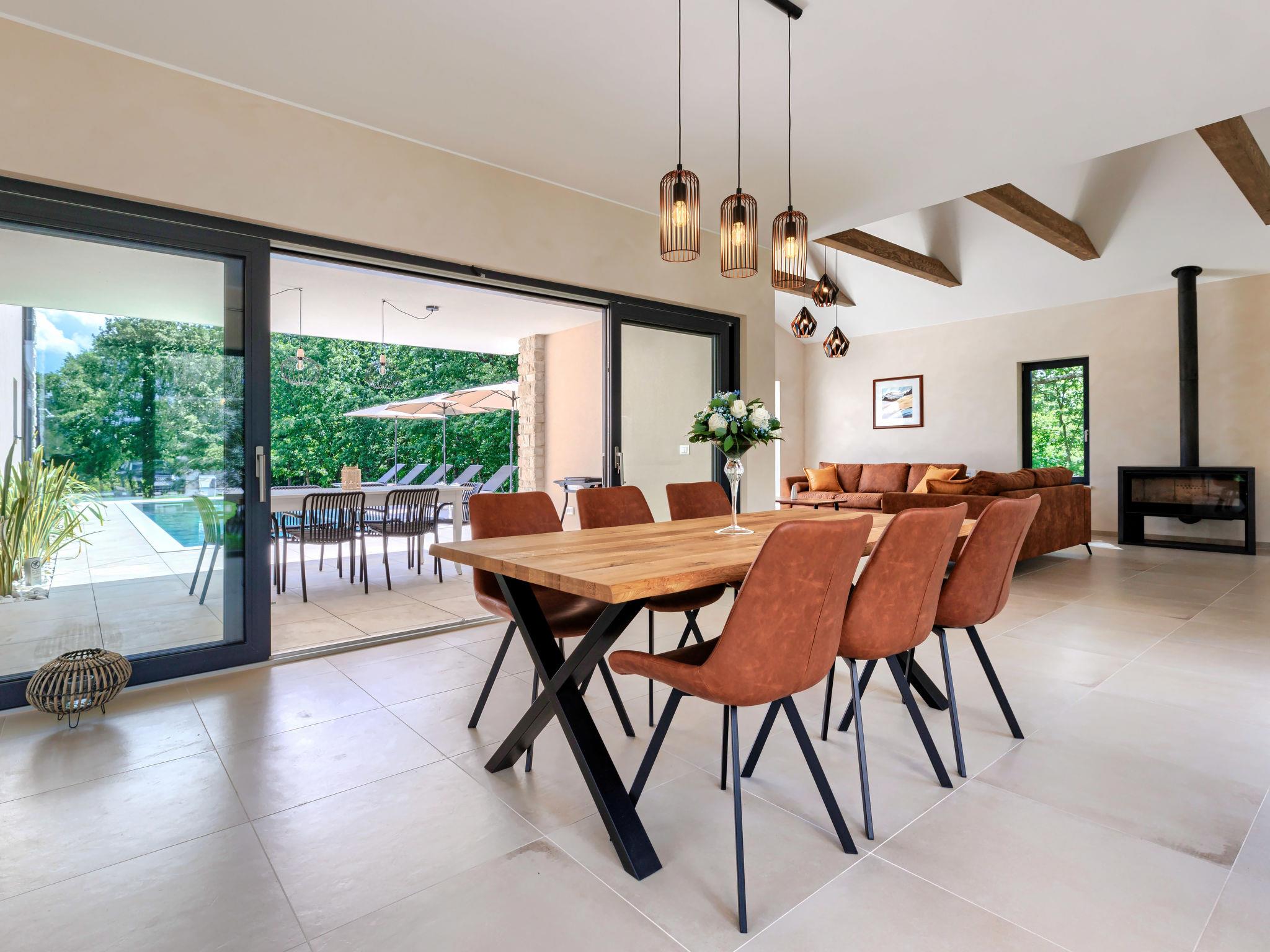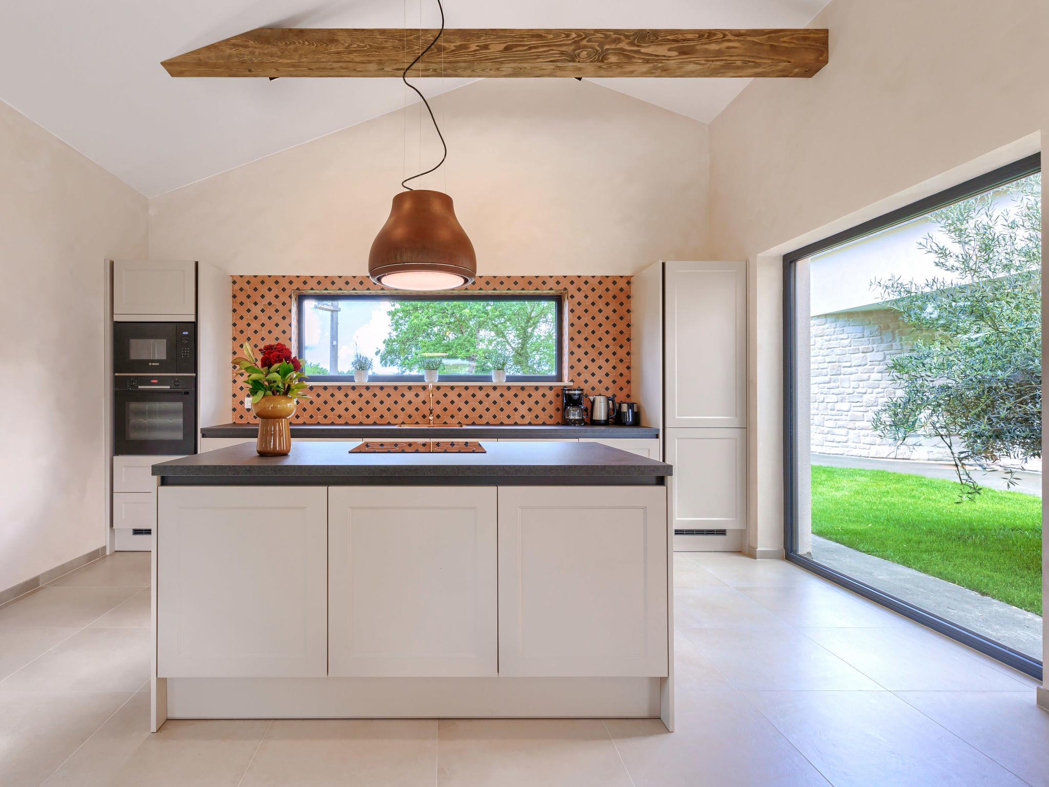 Luxurious villa "Ana", detached, built in 2023. In a hamlet 1.4 km from the centre of Žminj, 25 km from the centre of Rovinj, 25 km from the sea. Private: property 7'200 m2, swimming pool angular (10 x 3 m, 32 m2, seasonal availability: 11.May. - 28.Sep.) with internal staircase. Outdoor shower, garden furniture, barbecue. In the house: internet access, washing machine. Parking (for 2 cars) at the house on the premises. Shop 1.4 km, supermarket 2.5 km, restaurant 1.4 km, bus stop 1.7 km, pebble beach 25 km. Marina 25 km. Please note: airfield 38 km from the property.
