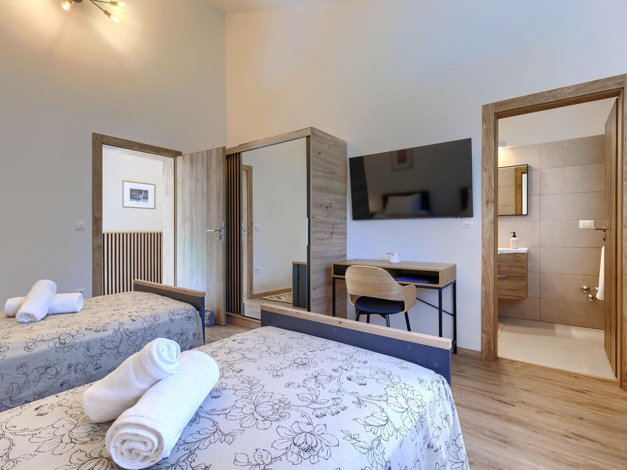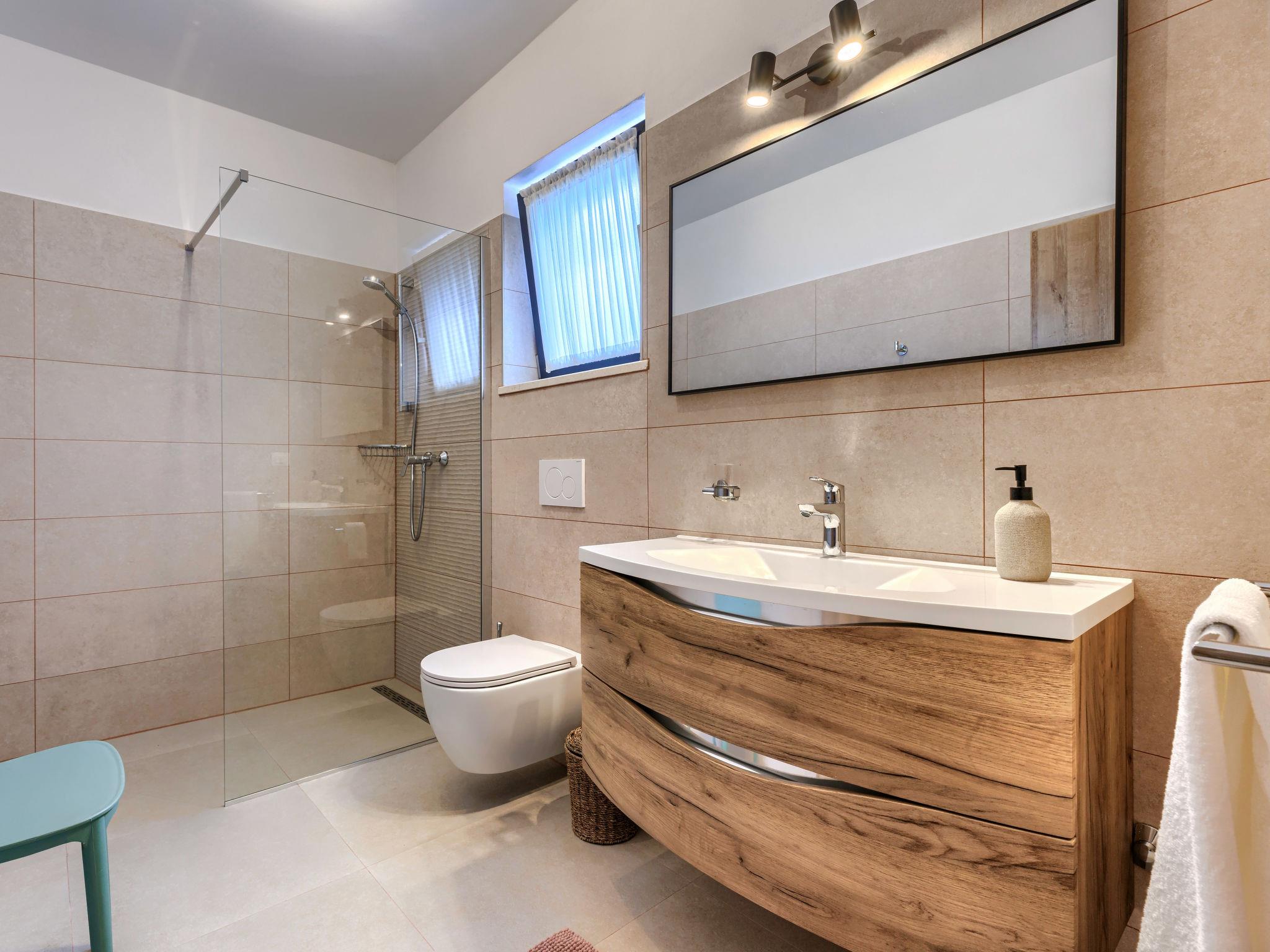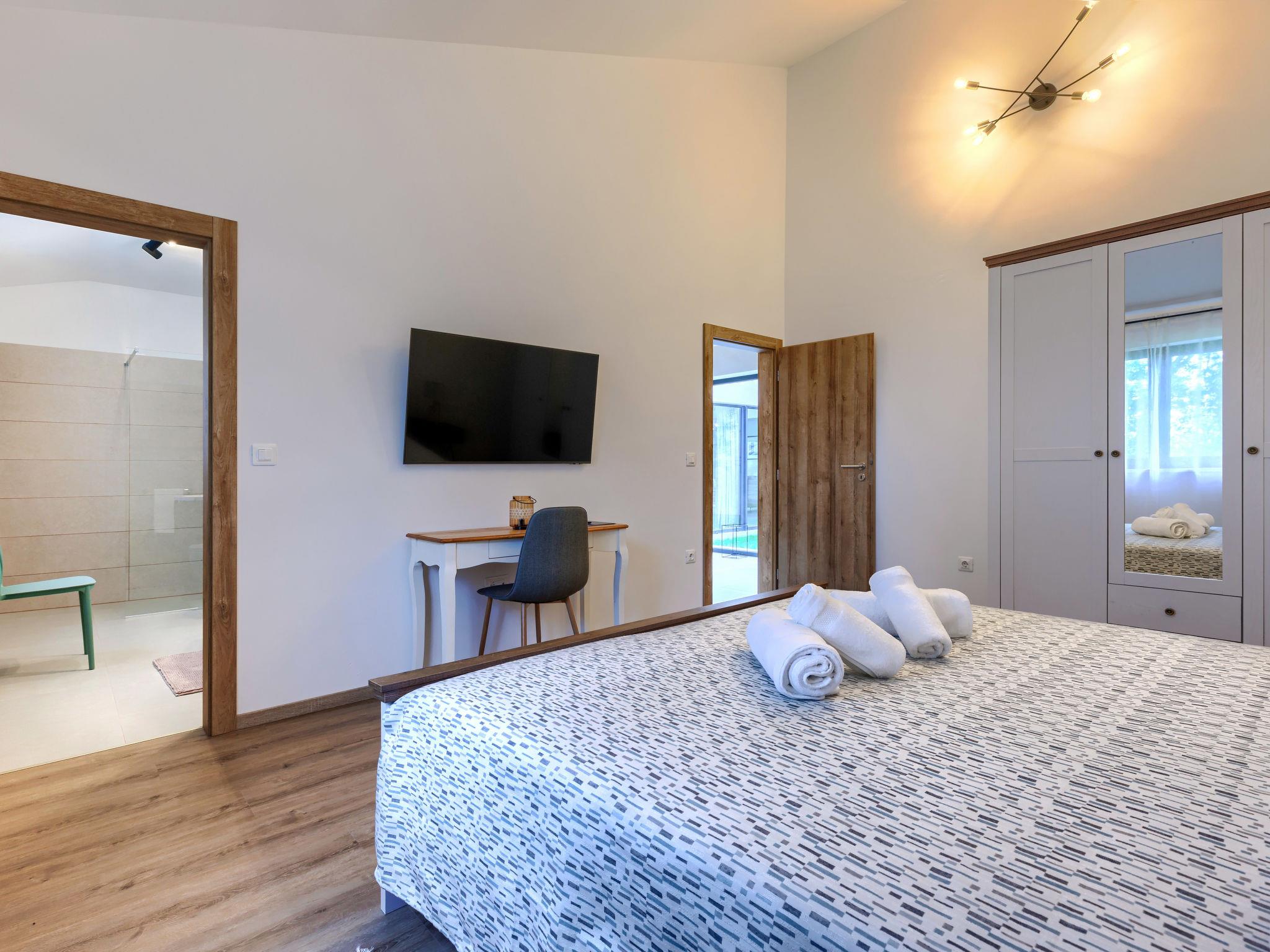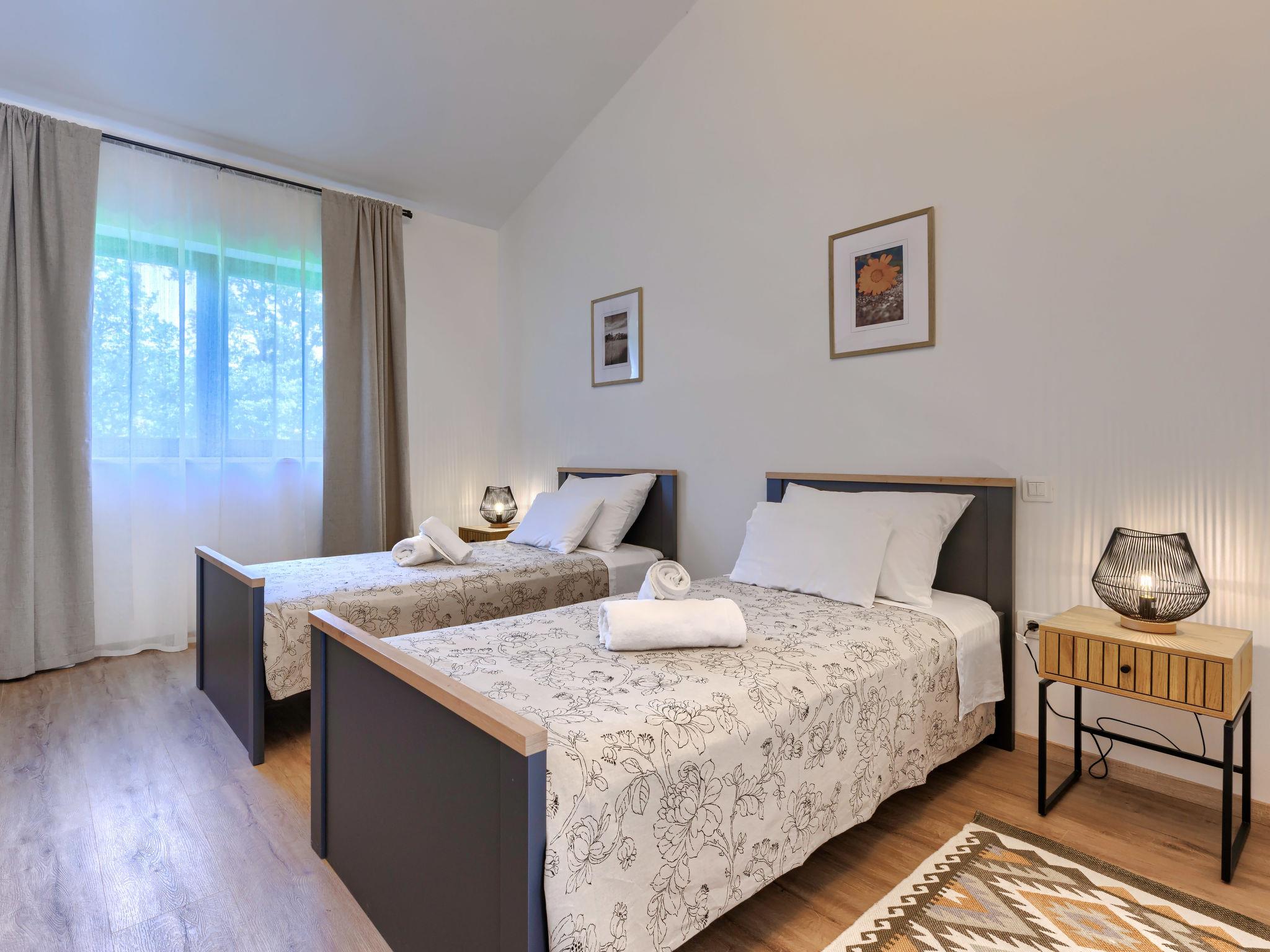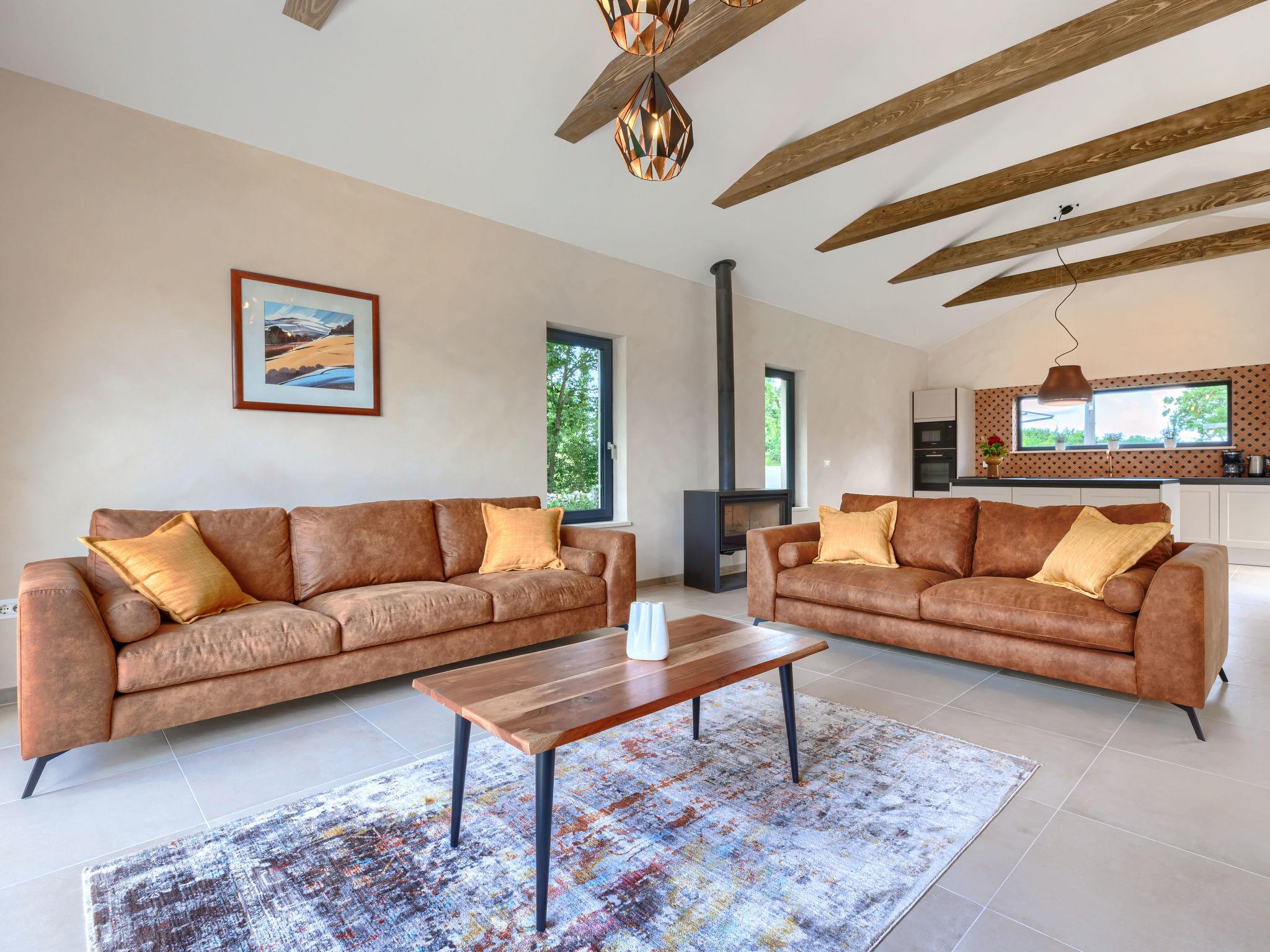 Luxurious villa "Ana", detached, built in 2023. In a hamlet 1.4 km from the centre of Žminj, 25 km from the centre of Rovinj, 25 km from the sea. Private: property 7'200 m2, swimming pool angular (10 x 3 m, 32 m2, seasonal availability: 11.May. - 28.Sep.) with internal staircase. Outdoor shower, garden furniture, barbecue. In the house: internet access, washing machine. Parking (for 2 cars) at the house on the premises. Shop 1.4 km, supermarket 2.5 km, restaurant 1.4 km, bus stop 1.7 km, pebble beach 25 km. Marina 25 km. Please note: airfield 38 km from the property.