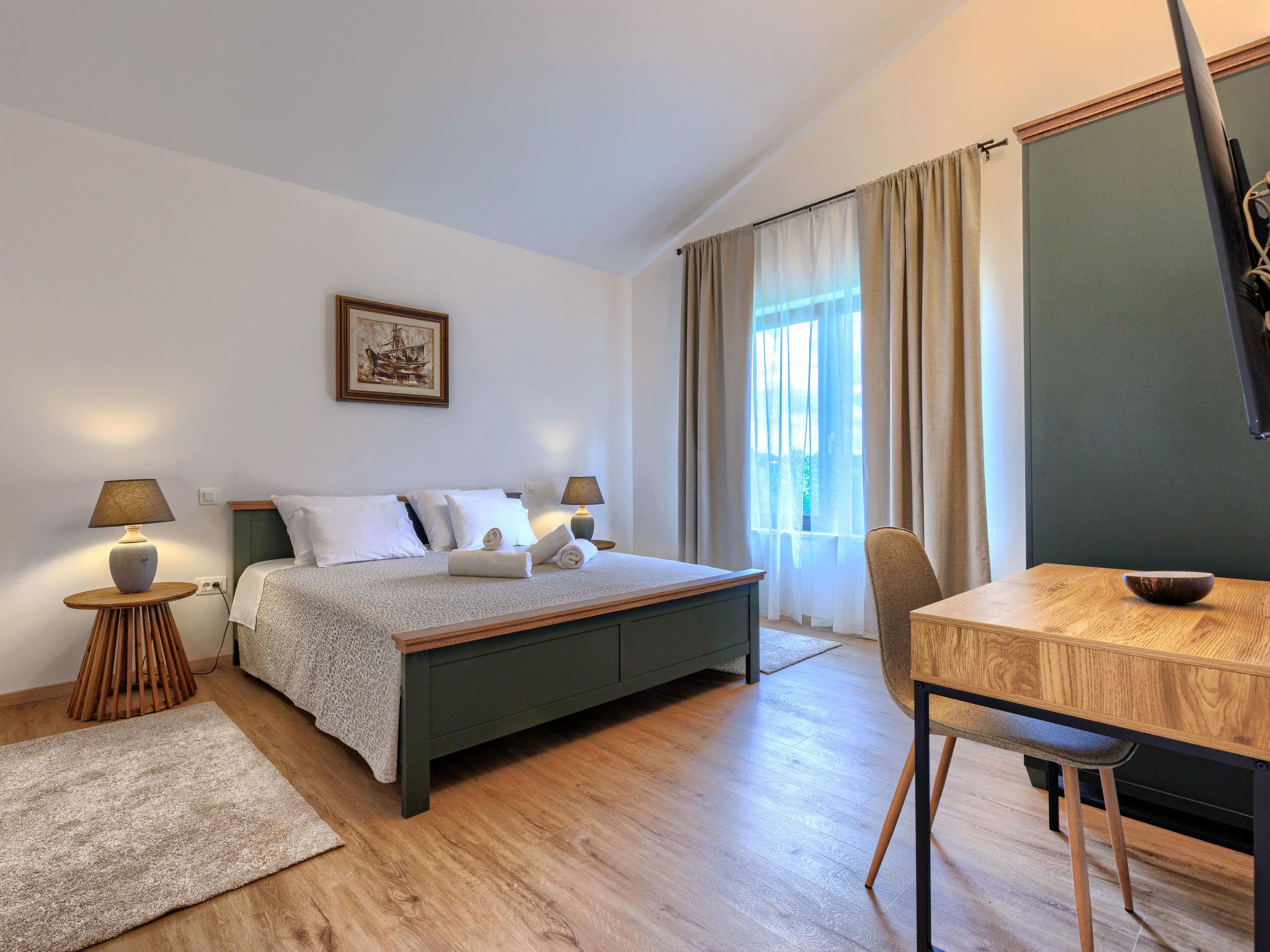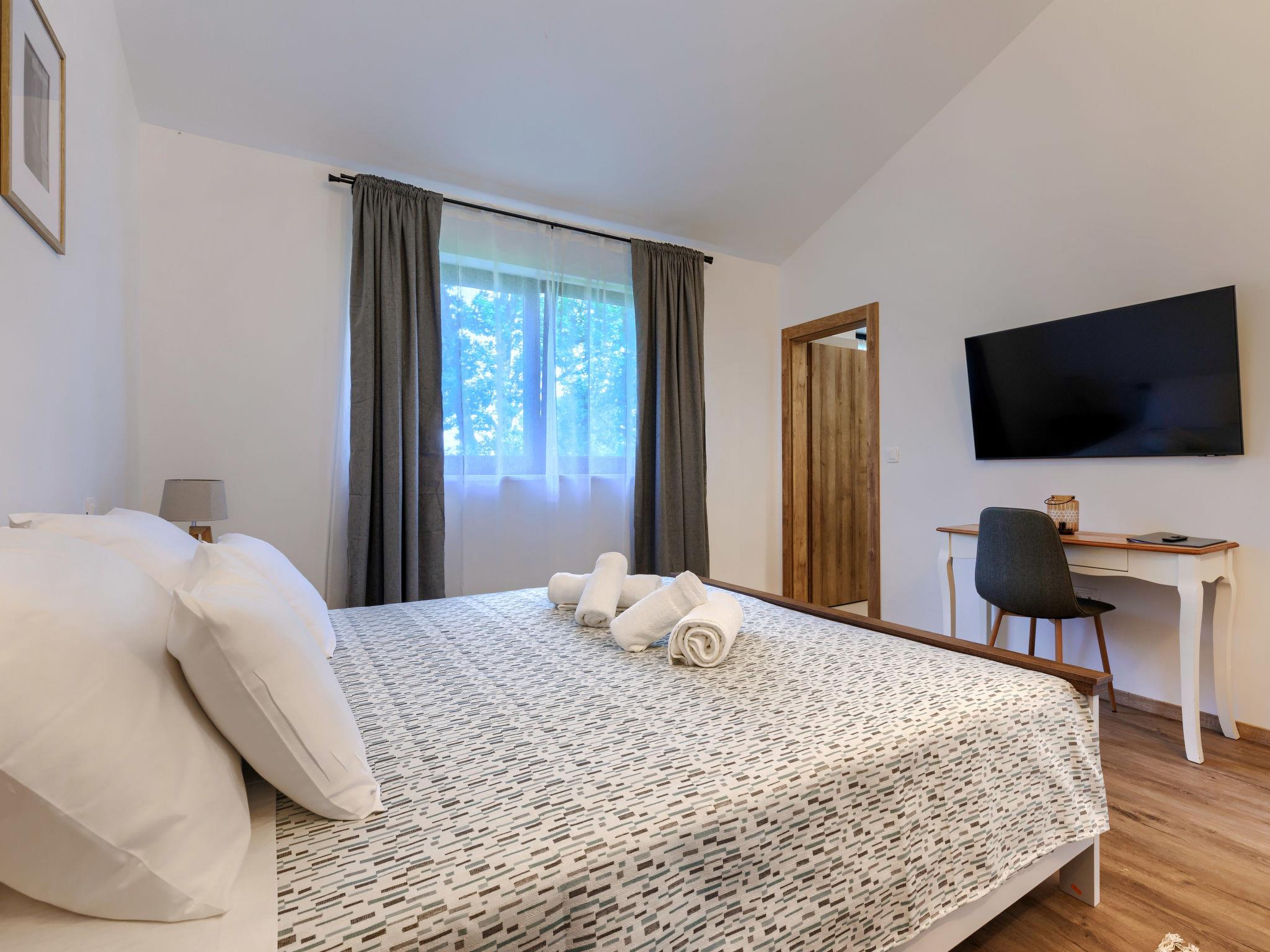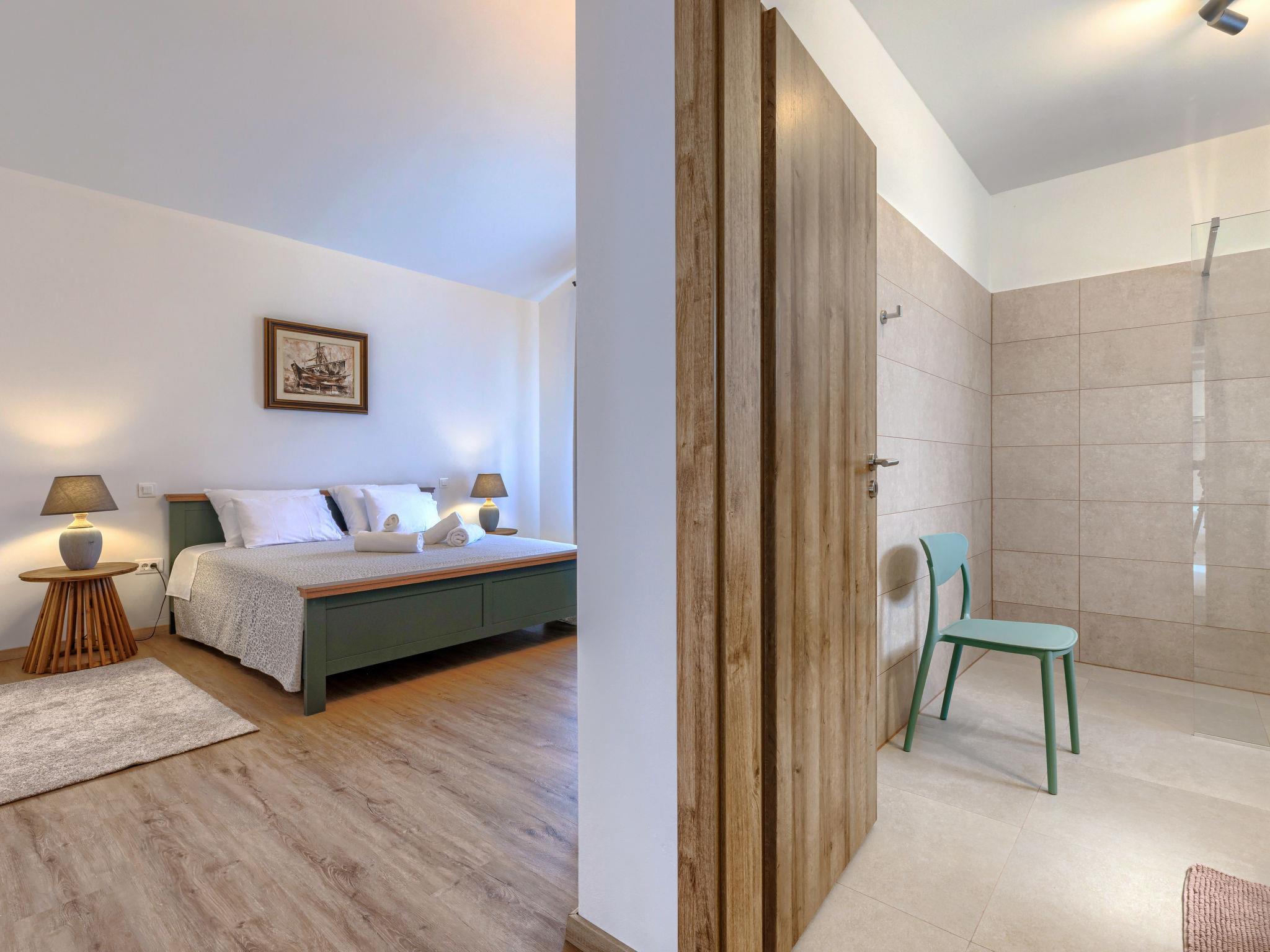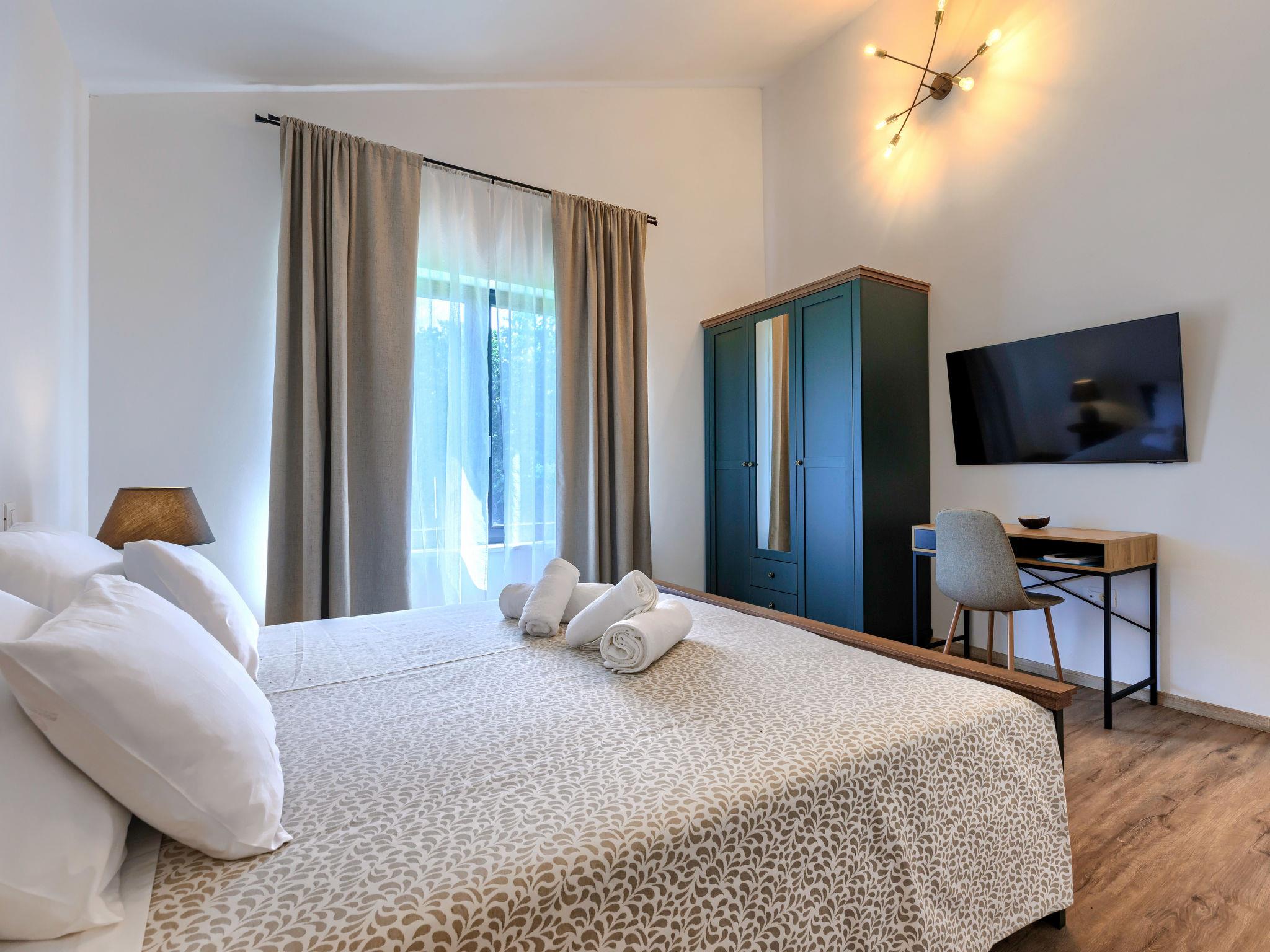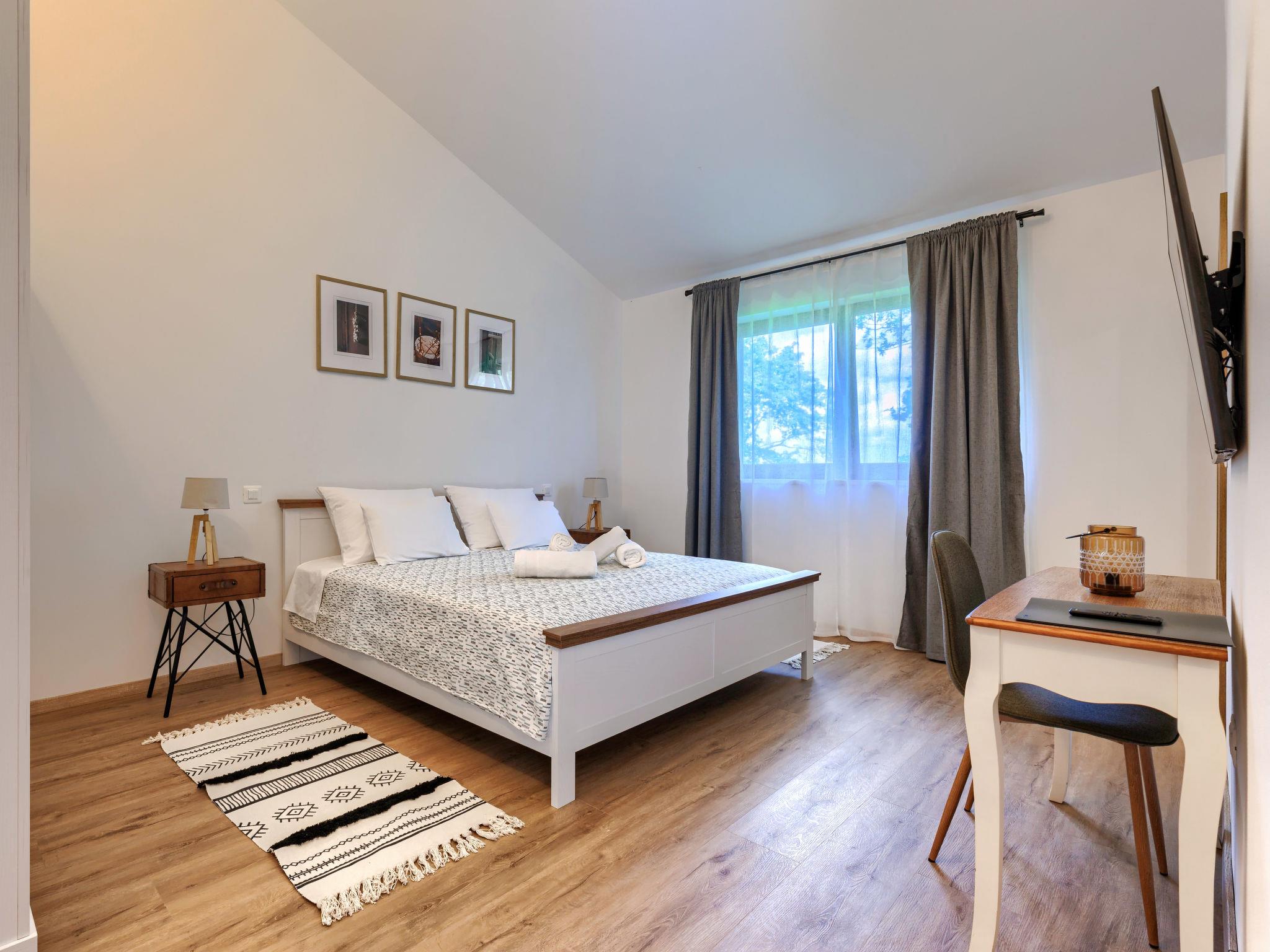 Luxurious villa "Ana", detached, built in 2023. In a hamlet 1.4 km from the centre of Žminj, 25 km from the centre of Rovinj, 25 km from the sea. Private: property 7'200 m2, swimming pool angular (10 x 3 m, 32 m2, seasonal availability: 11.May. - 28.Sep.) with internal staircase. Outdoor shower, garden furniture, barbecue. In the house: internet access, washing machine. Parking (for 2 cars) at the house on the premises. Shop 1.4 km, supermarket 2.5 km, restaurant 1.4 km, bus stop 1.7 km, pebble beach 25 km. Marina 25 km. Please note: airfield 38 km from the property.