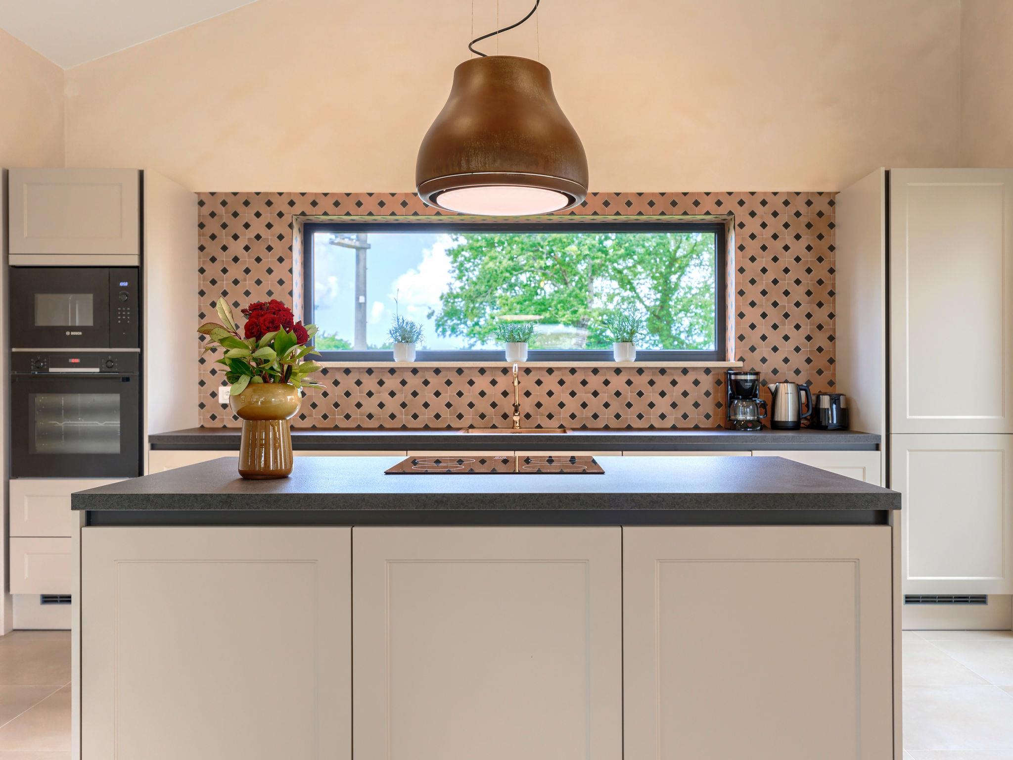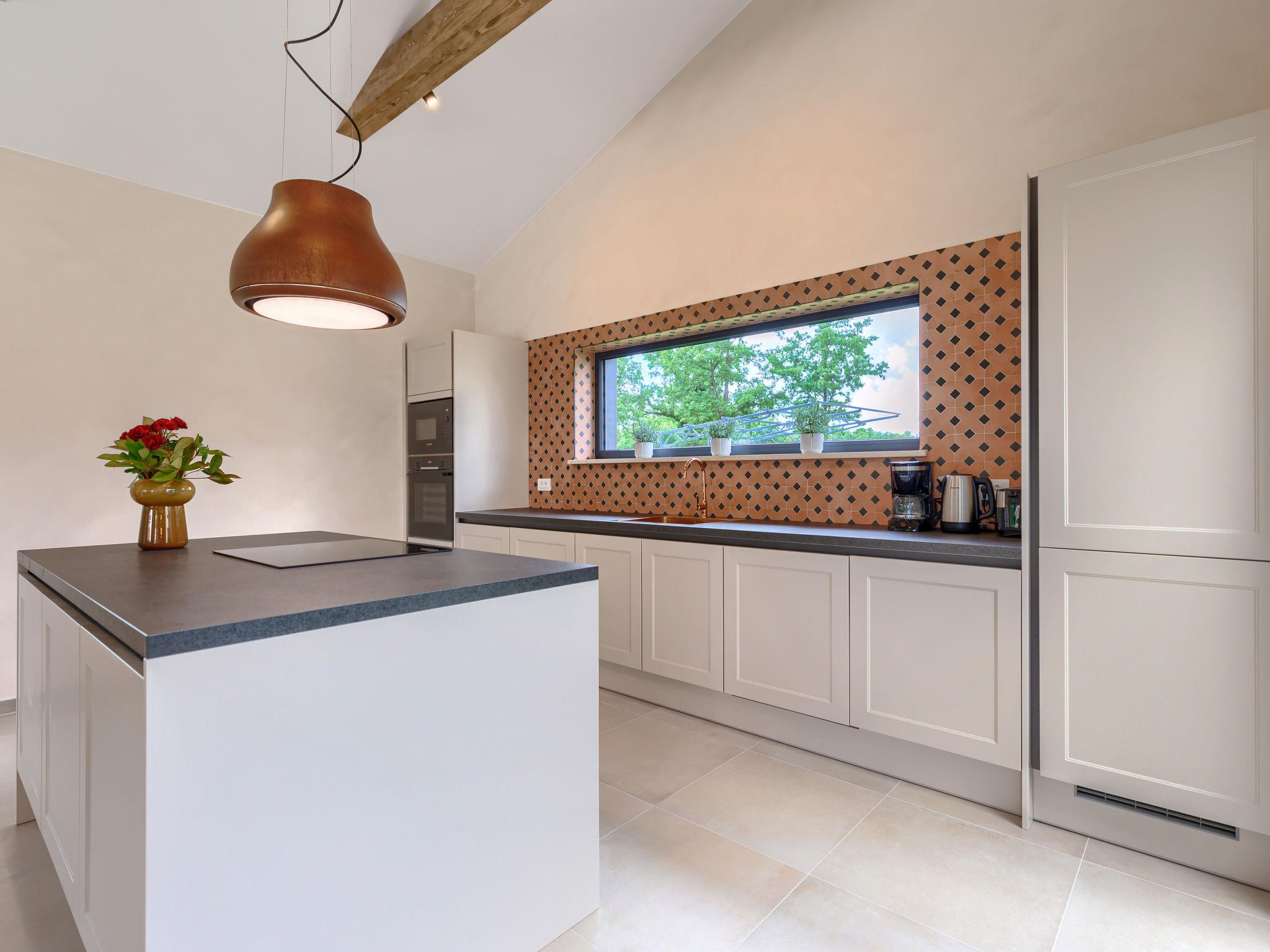 4-room villa 195 m2. Comfortable and luxurious furnishings: living/dining room with satellite TV (flat screen), air conditioning. Exit to the terrace, to the swimming pool. 1 room with 2 beds (90 cm, length 200 cm), shower/WC, satellite TV and air conditioning. 2 rooms, each room with 1 double bed (180 cm, length 200 cm), shower/WC, satellite TV and air conditioning. Open kitchen (oven, dishwasher, 4 induction hot plates, toaster, kettle, freezer, electric coffee machine). Exit to the terrace, to the swimming pool. Sep. WC. Air-conditioning. Terrace 20 m2, roofed. Terrace furniture, deck chairs. View of the swimming pool and the forest. Facilities: baby cot for up to 2 year olds. Internet (WiFi, free). Please note: non-smoking house.