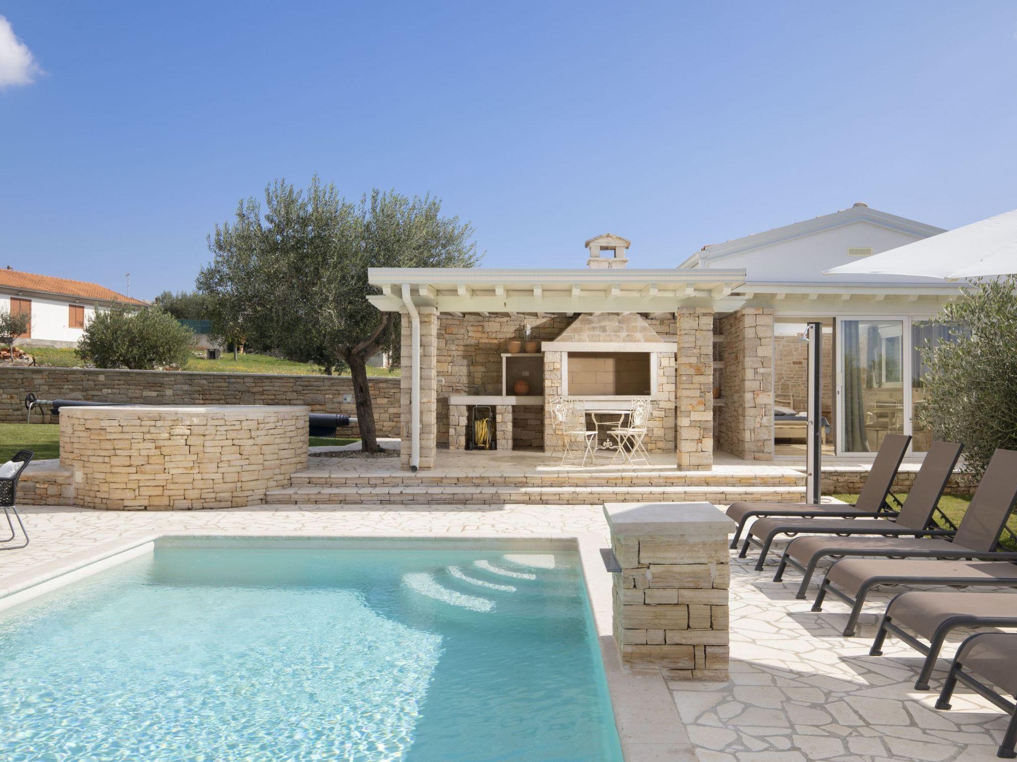 Villa Paradiso Piccolo is conveniently located for exploring the Istrian coast. Several beaches are within easy reach, including Balota Beach (8.2 km), Cuvi Beach (9.1 km), Mulini Beach (9.2 km), and Cisterna Beach (11.3 km). Nearby towns such as Rovinj, Porec, and Fažana are just a short drive away. The E751 highway and Pula Airport, about 33 km away, provide easy access.
