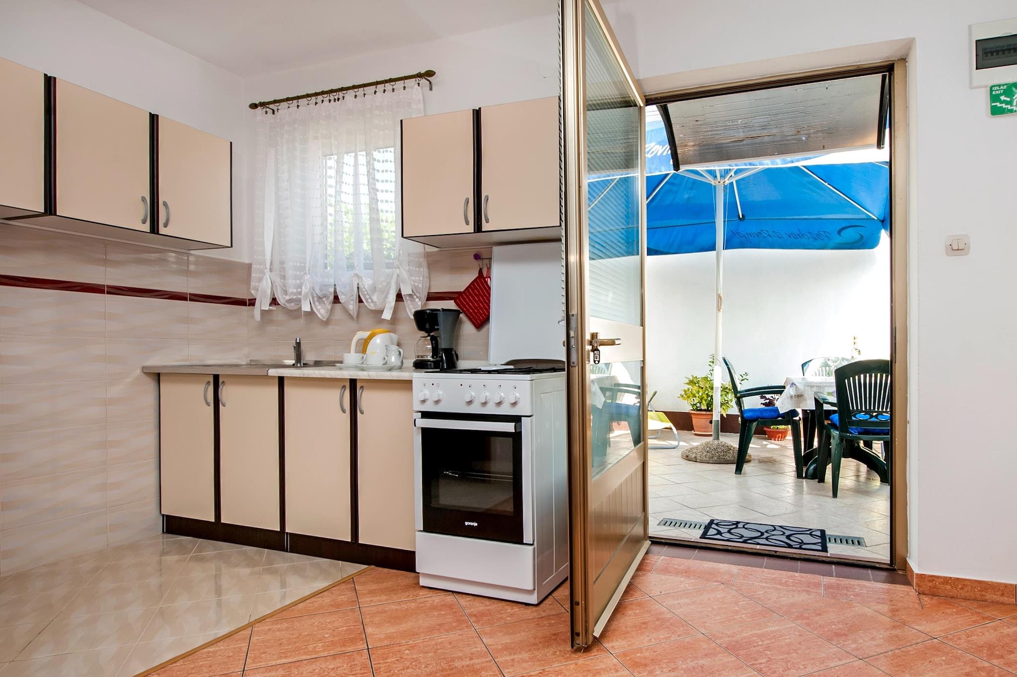 Stueetage: (Stue(enkeltsovesofa, Fjernsyn(fladskærm), pejs), Køkken(spisebord, elkedel, brødrister, komfur, kaffemaskine, mikrobølgeovn, køle-fryseskab, , Wine glasses), soveværelse(dobbeltseng), badeværelse(bruser, håndvask, toilet), terrasse(privat, 16 m2)) klimaanlæg, have, havemøbler, grill, parkering