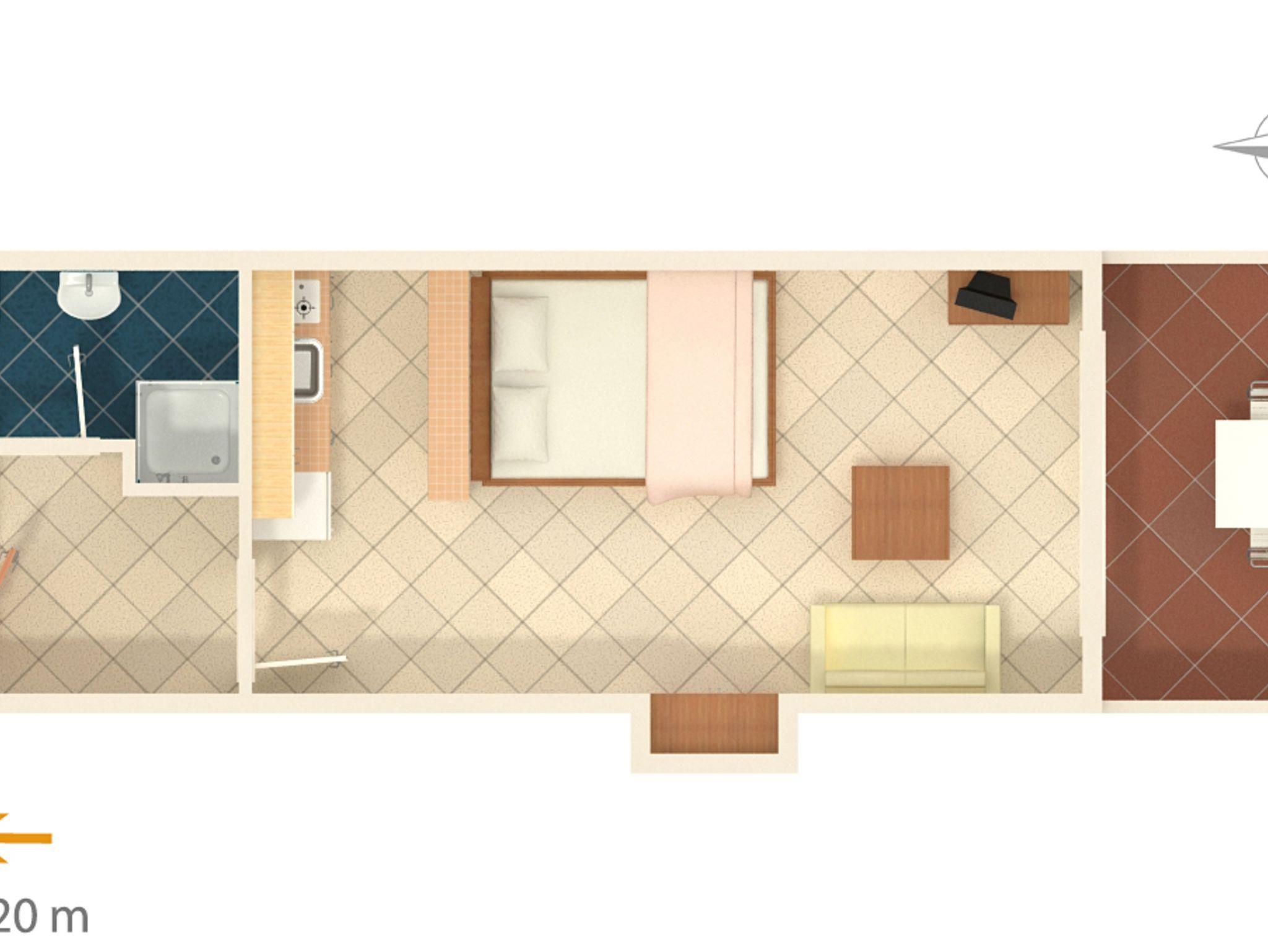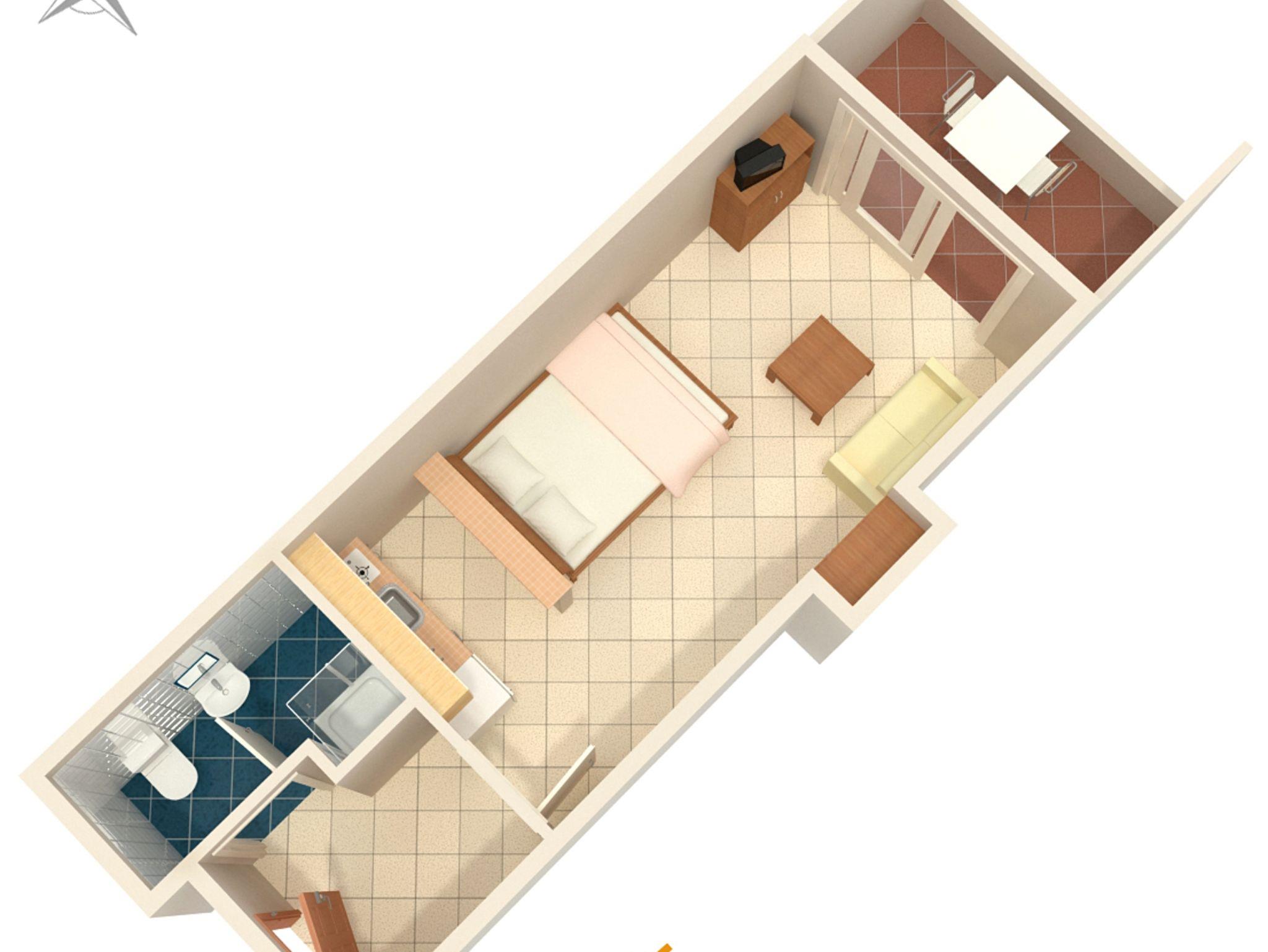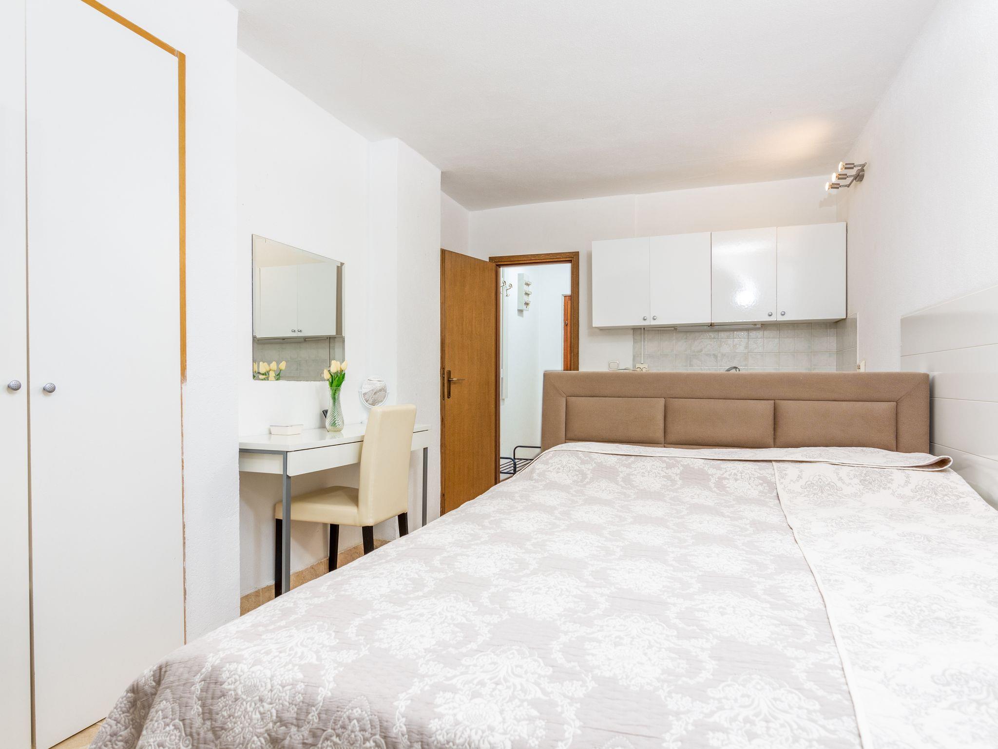 Studio bietet Platz für 2 Gäste. Die Betten sind in Schlafzimmern, die es 1 gibt, innerhalb einer Gesamtfläche von 24m2, angeordnet. Die Gäste haben eine eigene Terrasse zur Verfügung, auf der sie in warmen Sommernächten genießen können. IM PREIS INBEGRIFFEN: Kurtaxe, Endreinigung, Klimatisierung, Internet, Wäschewaschen, Bügeleisen, Bügelbrett, Föhn. VERBINDLICHE ZUSÄTZLICHE KOSTEN: Aufzahlung für Kurzaufenthalte (prozentualer Zuschlag pro Nächtigungsanzahl: 30% - 1, 20% - 2, 10% - 3). Die Verfügbarkeit zusätzlicher Dienstleistungen in Ihrem reservierten Termin und die Preise derselben (falls nicht aufgeführt) müssen im Voraus überprüft werden. Zusätzliche Dienstleistungen die in der Zahlungsaufforderung nicht aufgeführt sind werden direkt beim Vermieter bezahlt, angenommen der Gast nutzt auch diese. Ermäßigung auf den Grundpreis: Gratistag 14=13 (bei einem Aufenthalt von 14 Tagen oder mehr erhalten Sie einen Gratistag für den Aufenthalt bis 31.12.26).