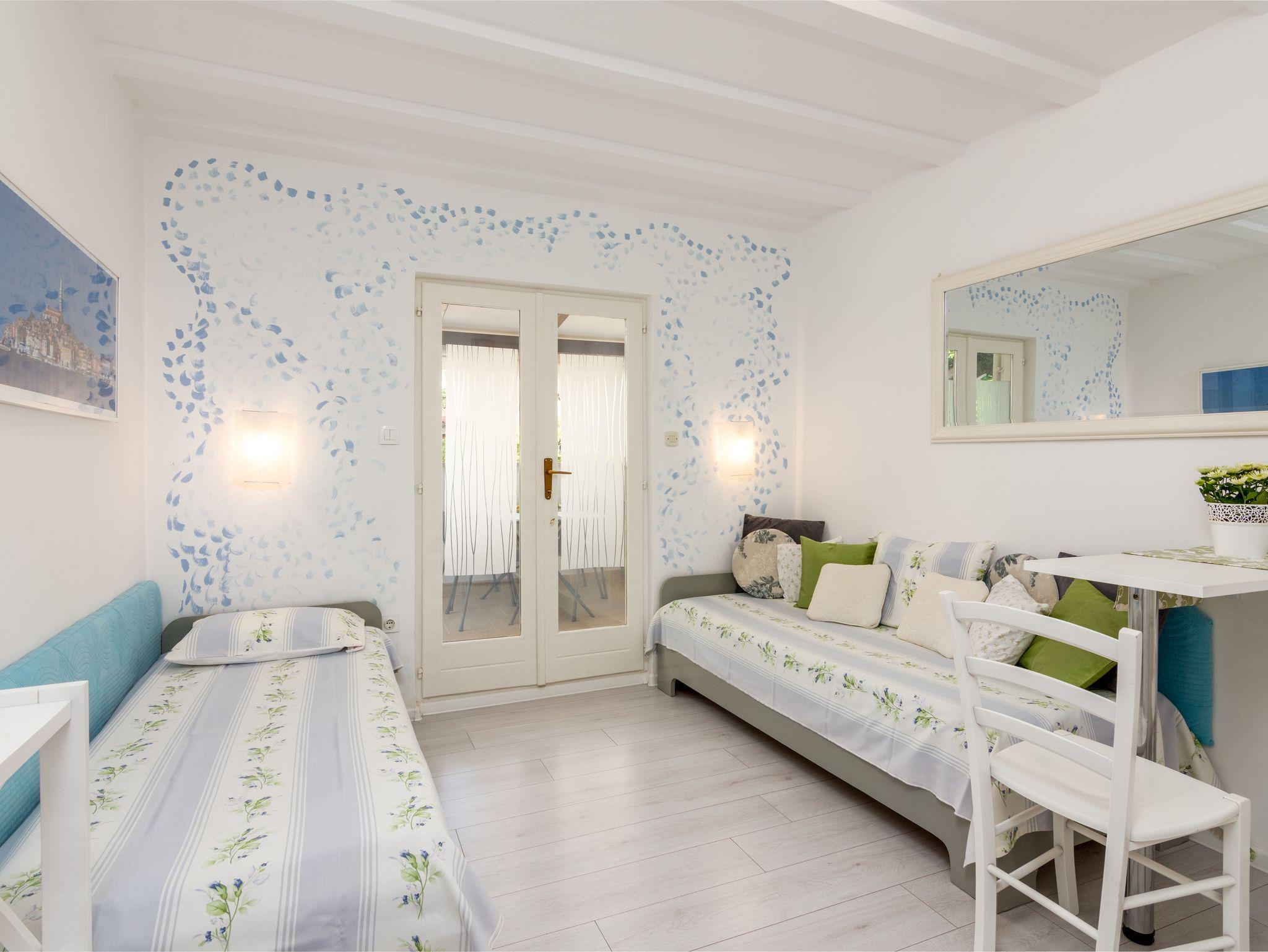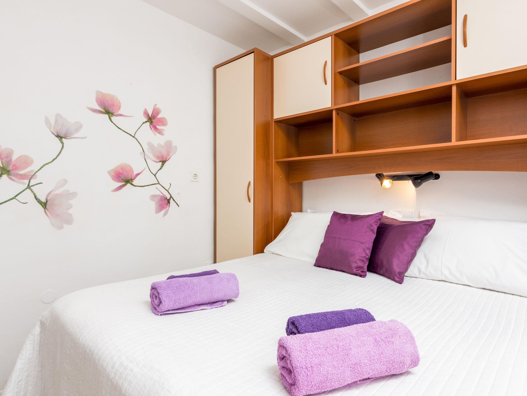 Ferienwohnung bietet Platz für 2 Gäste. Die Betten sind in Schlafzimmern, die es 1 gibt, innerhalb einer Gesamtfläche von 25m2, angeordnet. Die Gäste haben eine eigene Terrasse zur Verfügung, auf der sie in warmen Sommernächten genießen können. Es ist erlaubt, Speisen auf dem Gemeinschafts-Grill vorzubereiten. IM PREIS INBEGRIFFEN: Kurtaxe, Endreinigung, Klimatisierung, Parkplatz, Internet, Bügeleisen, Bügelbrett, Föhn. VERBINDLICHE ZUSÄTZLICHE KOSTEN: Aufzahlung für Kurzaufenthalte (prozentualer Zuschlag pro Nächtigungsanzahl: 30% - 1, 20% - 2, 10% - 3). Die Verfügbarkeit zusätzlicher Dienstleistungen in Ihrem reservierten Termin und die Preise derselben (falls nicht aufgeführt) müssen im Voraus überprüft werden. Zusätzliche Dienstleistungen die in der Zahlungsaufforderung nicht aufgeführt sind werden direkt beim Vermieter bezahlt, angenommen der Gast nutzt auch diese. Ermäßigung auf den Grundpreis: Gratistag 14=13 (bei einem Aufenthalt von 14 Tagen oder mehr erhalten Sie einen Gratistag für den Aufenthalt bis 31.12.26).