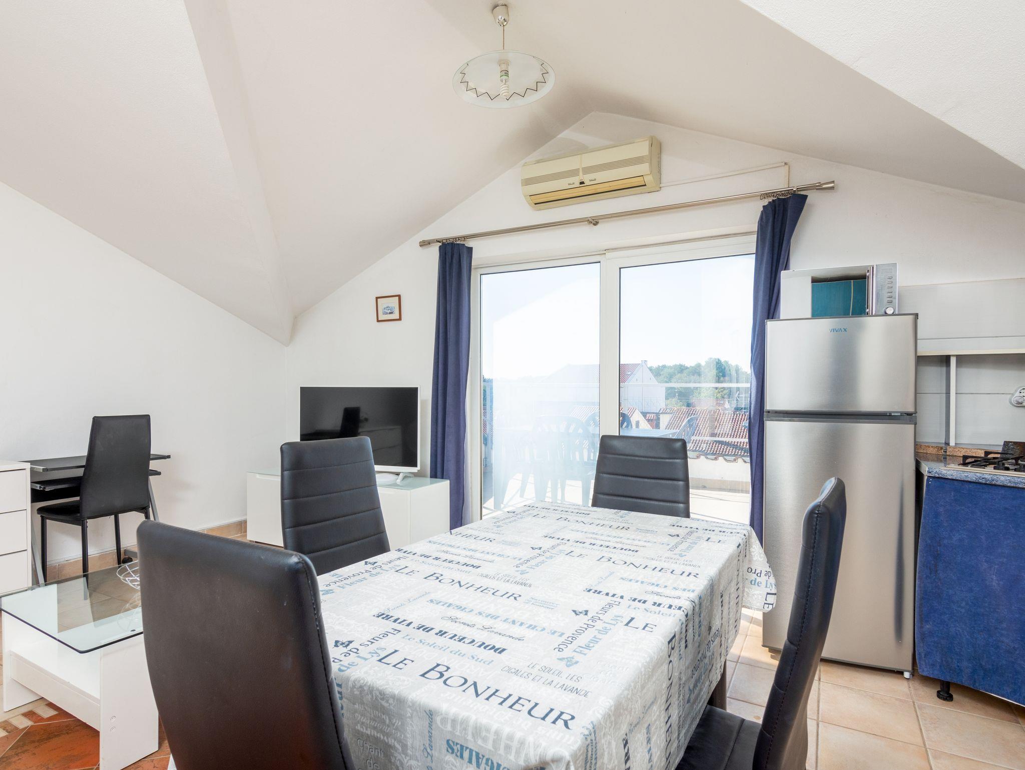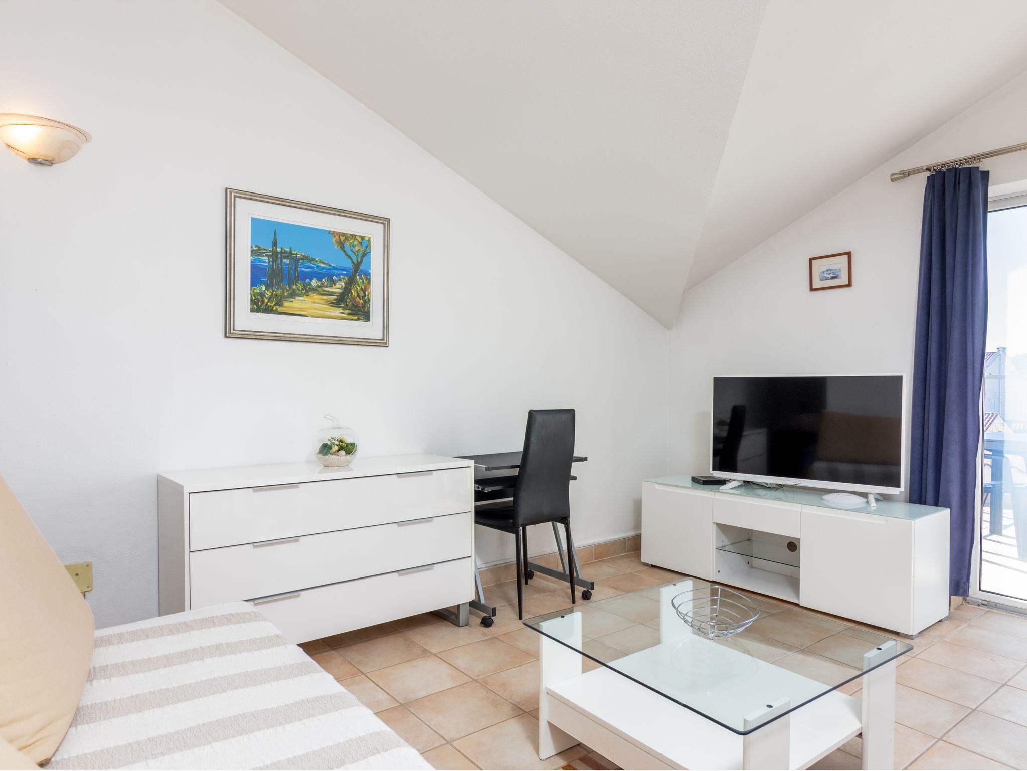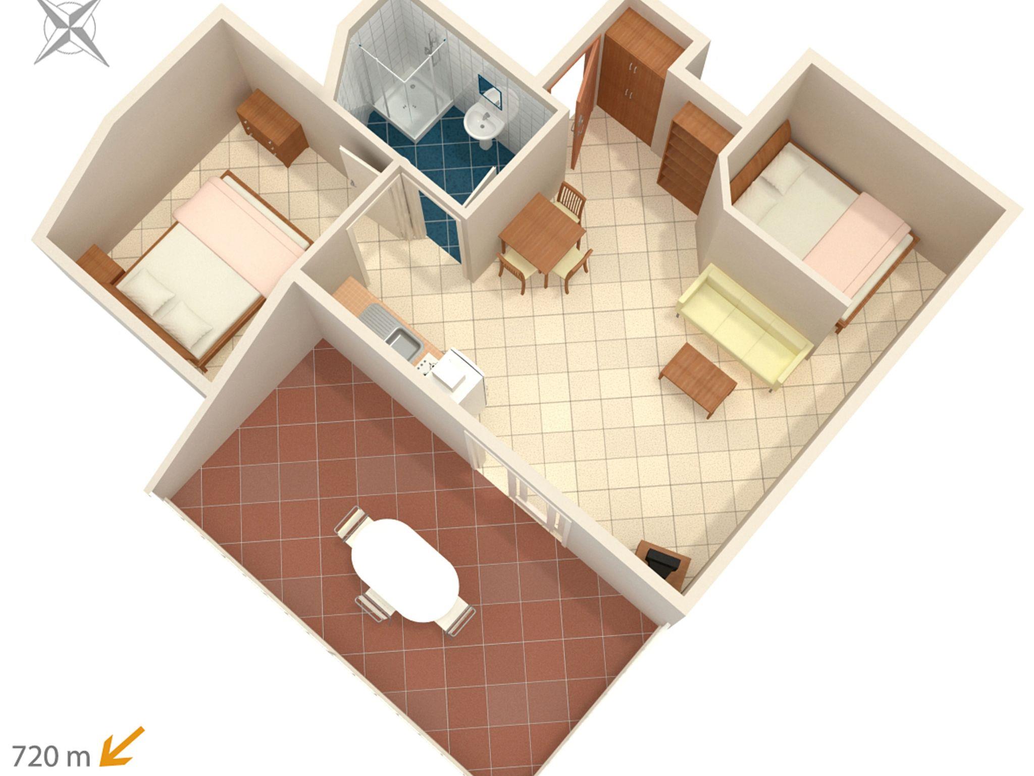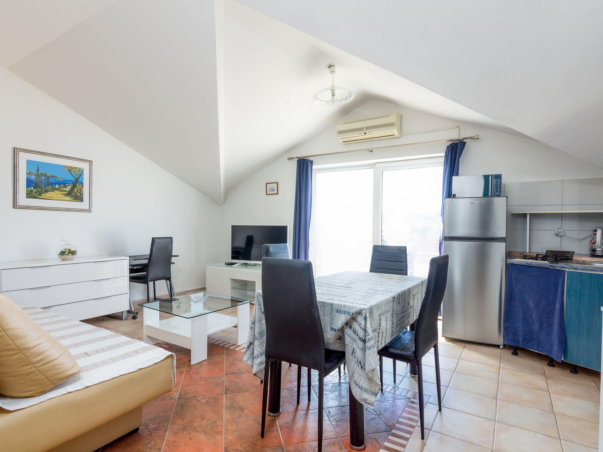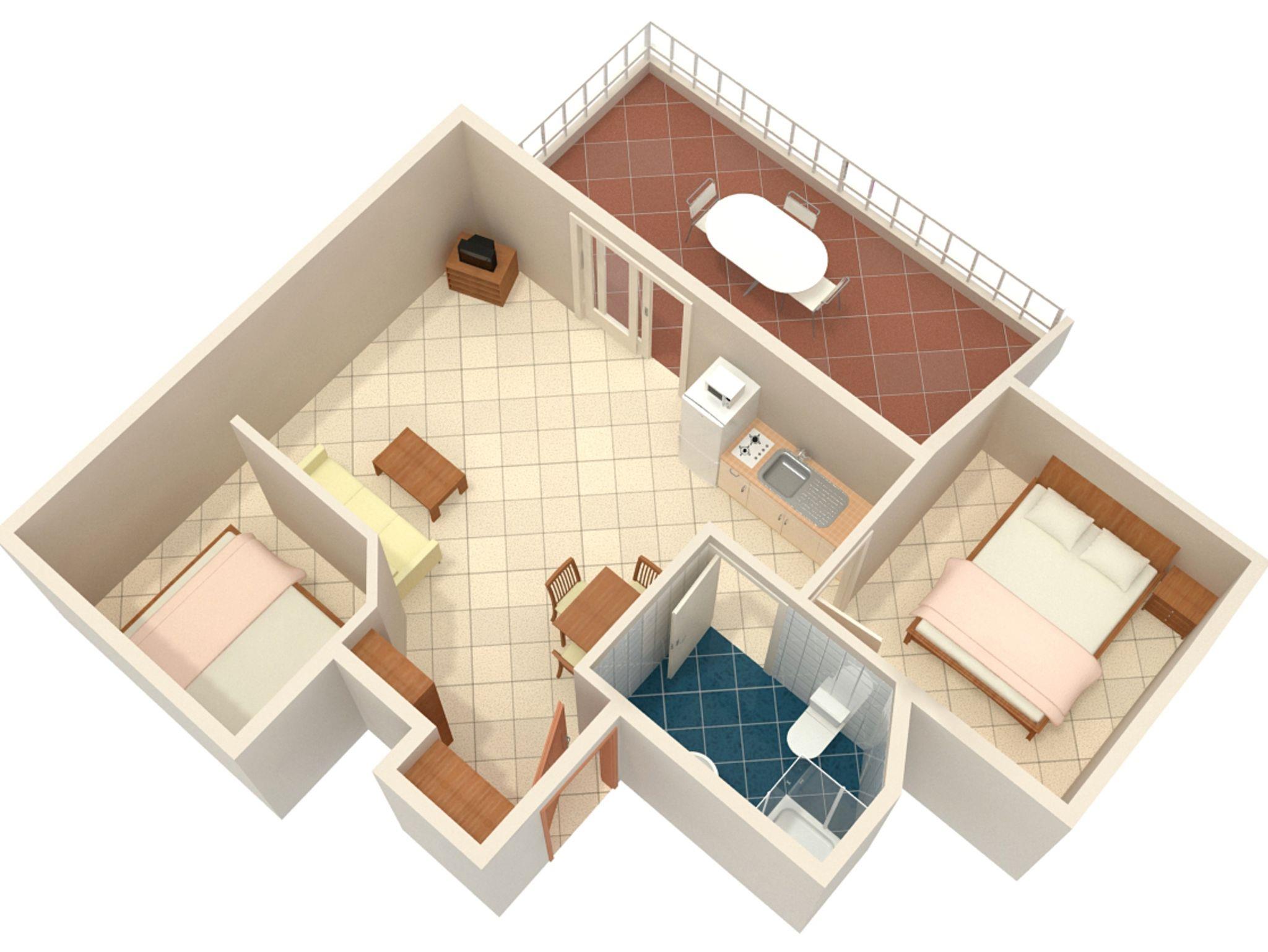 Studio bietet Platz für 4 Gäste. Die Betten sind in Schlafzimmern, die es 2 gibt, innerhalb einer Gesamtfläche von 42m2, angeordnet. Die Gäste haben eine eigene Terrasse zur Verfügung, auf der sie in warmen Sommernächten genießen können. IM PREIS INBEGRIFFEN: Kurtaxe, Endreinigung, Klimatisierung, Internet, Wäschewaschen, Bügeleisen, Bügelbrett, Föhn. VERBINDLICHE ZUSÄTZLICHE KOSTEN: Aufzahlung für Kurzaufenthalte (prozentualer Zuschlag pro Nächtigungsanzahl: 30% - 1, 20% - 2, 10% - 3). Die Verfügbarkeit zusätzlicher Dienstleistungen in Ihrem reservierten Termin und die Preise derselben (falls nicht aufgeführt) müssen im Voraus überprüft werden. Zusätzliche Dienstleistungen die in der Zahlungsaufforderung nicht aufgeführt sind werden direkt beim Vermieter bezahlt, angenommen der Gast nutzt auch diese. Ermäßigung auf den Grundpreis: Gratistag 14=13 (bei einem Aufenthalt von 14 Tagen oder mehr erhalten Sie einen Gratistag für den Aufenthalt bis 31.12.26).