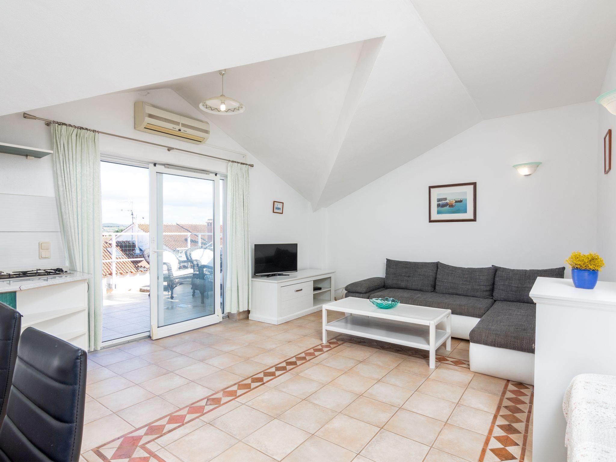 Ferienwohnung bietet Platz für 4 Gäste. Die Betten sind in Schlafzimmern, die es 1 gibt, und in Esszimmer, innerhalb einer Gesamtfläche von 40m2, angeordnet. Die Gäste haben eine eigene Terrasse zur Verfügung, auf der sie in warmen Sommernächten genießen können. IM PREIS INBEGRIFFEN: Kurtaxe, Endreinigung, Klimatisierung, Internet, Wäschewaschen, Bügeleisen, Bügelbrett, Föhn. VERBINDLICHE ZUSÄTZLICHE KOSTEN: Aufzahlung für Kurzaufenthalte (prozentualer Zuschlag pro Nächtigungsanzahl: 30% - 1, 20% - 2, 10% - 3). Die Verfügbarkeit zusätzlicher Dienstleistungen in Ihrem reservierten Termin und die Preise derselben (falls nicht aufgeführt) müssen im Voraus überprüft werden. Zusätzliche Dienstleistungen die in der Zahlungsaufforderung nicht aufgeführt sind werden direkt beim Vermieter bezahlt, angenommen der Gast nutzt auch diese. Ermäßigung auf den Grundpreis: Gratistag 14=13 (bei einem Aufenthalt von 14 Tagen oder mehr erhalten Sie einen Gratistag für den Aufenthalt bis 31.12.26).