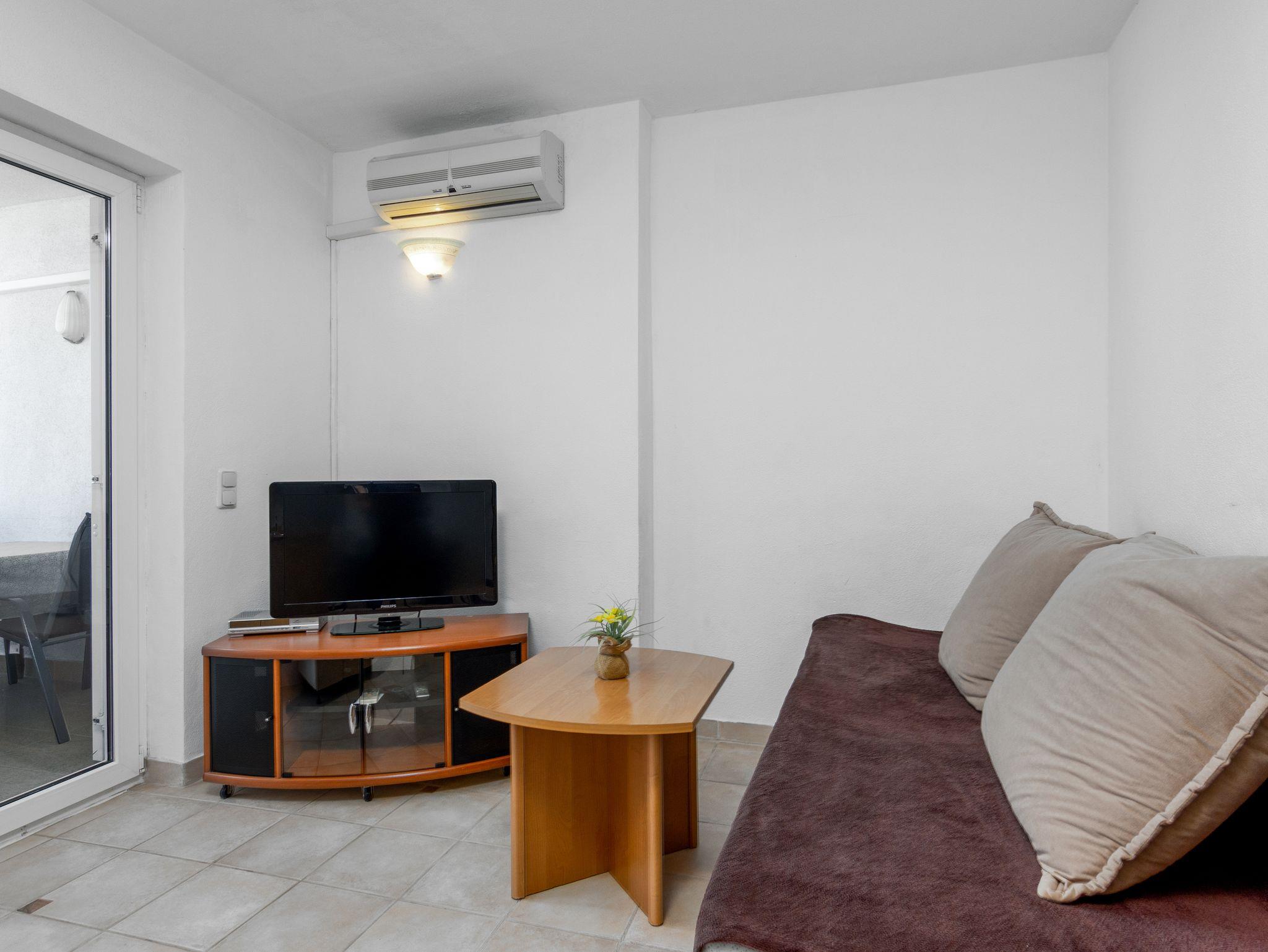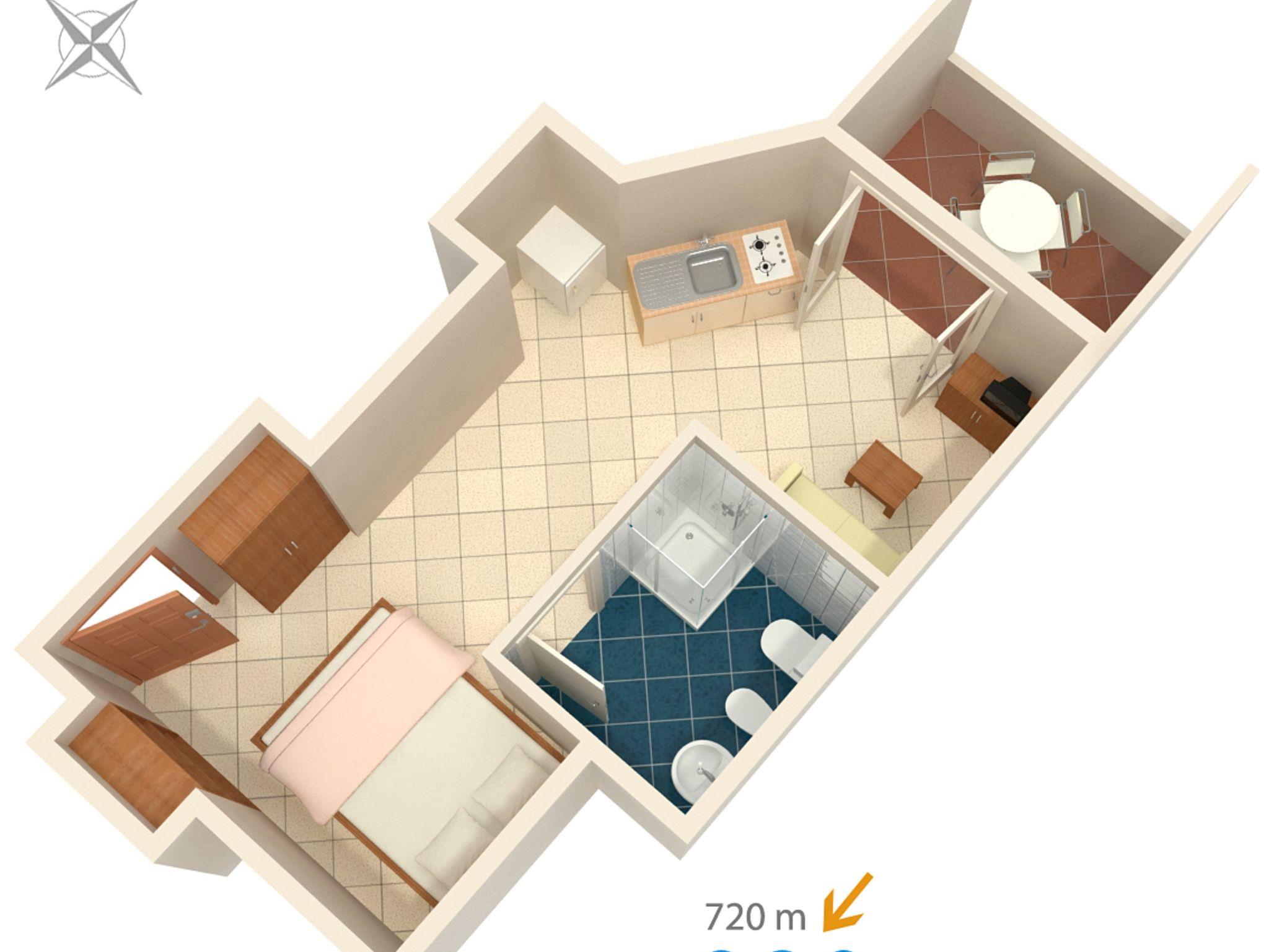 Studio bietet Platz für 3 Gäste. Die Betten sind in Schlafzimmern, die es 1 gibt, und in Wohnzimmer, innerhalb einer Gesamtfläche von 24m2, angeordnet. Die Gäste haben eine eigene Terrasse zur Verfügung, auf der sie in warmen Sommernächten genießen können. IM PREIS INBEGRIFFEN: Kurtaxe, Endreinigung, Klimatisierung, Internet, Wäschewaschen, Bügeleisen, Bügelbrett, Föhn. VERBINDLICHE ZUSÄTZLICHE KOSTEN: Aufzahlung für Kurzaufenthalte (prozentualer Zuschlag pro Nächtigungsanzahl: 30% - 1, 20% - 2, 10% - 3). Die Verfügbarkeit zusätzlicher Dienstleistungen in Ihrem reservierten Termin und die Preise derselben (falls nicht aufgeführt) müssen im Voraus überprüft werden. Zusätzliche Dienstleistungen die in der Zahlungsaufforderung nicht aufgeführt sind werden direkt beim Vermieter bezahlt, angenommen der Gast nutzt auch diese.